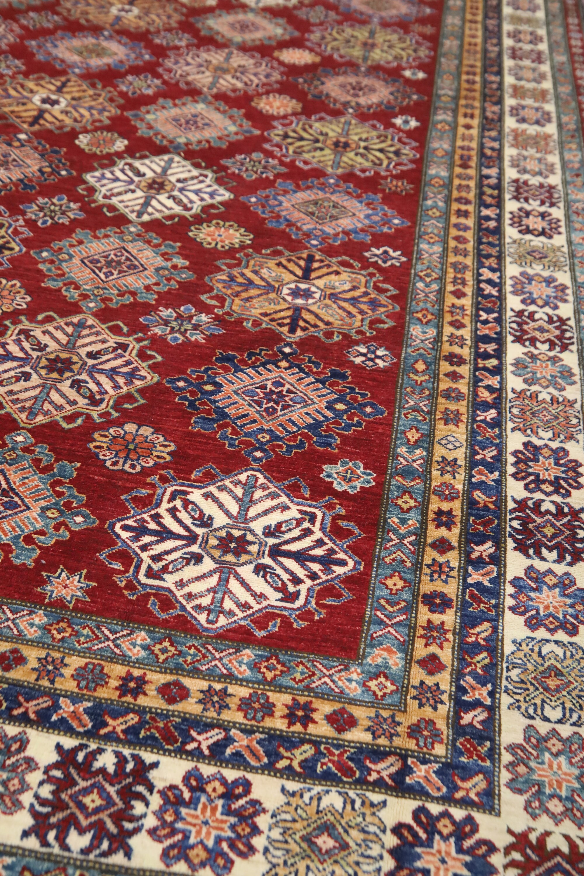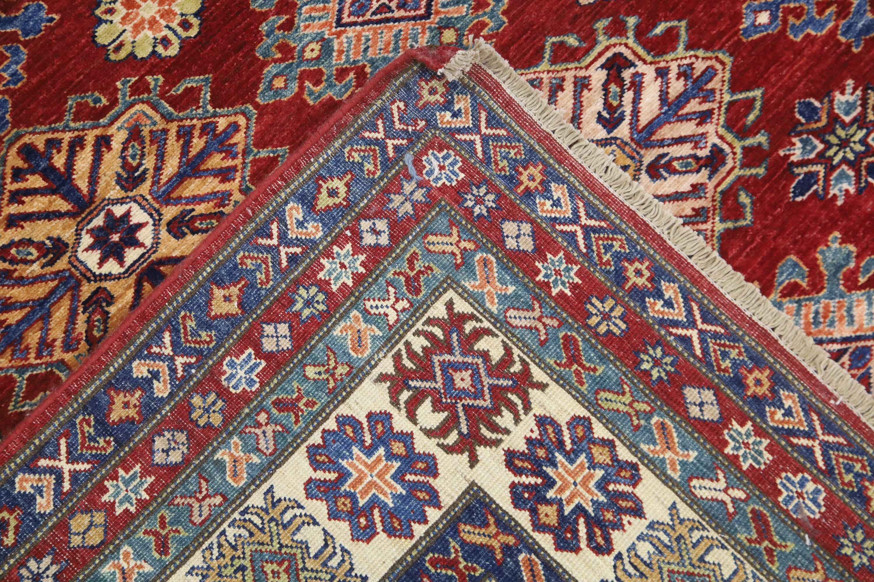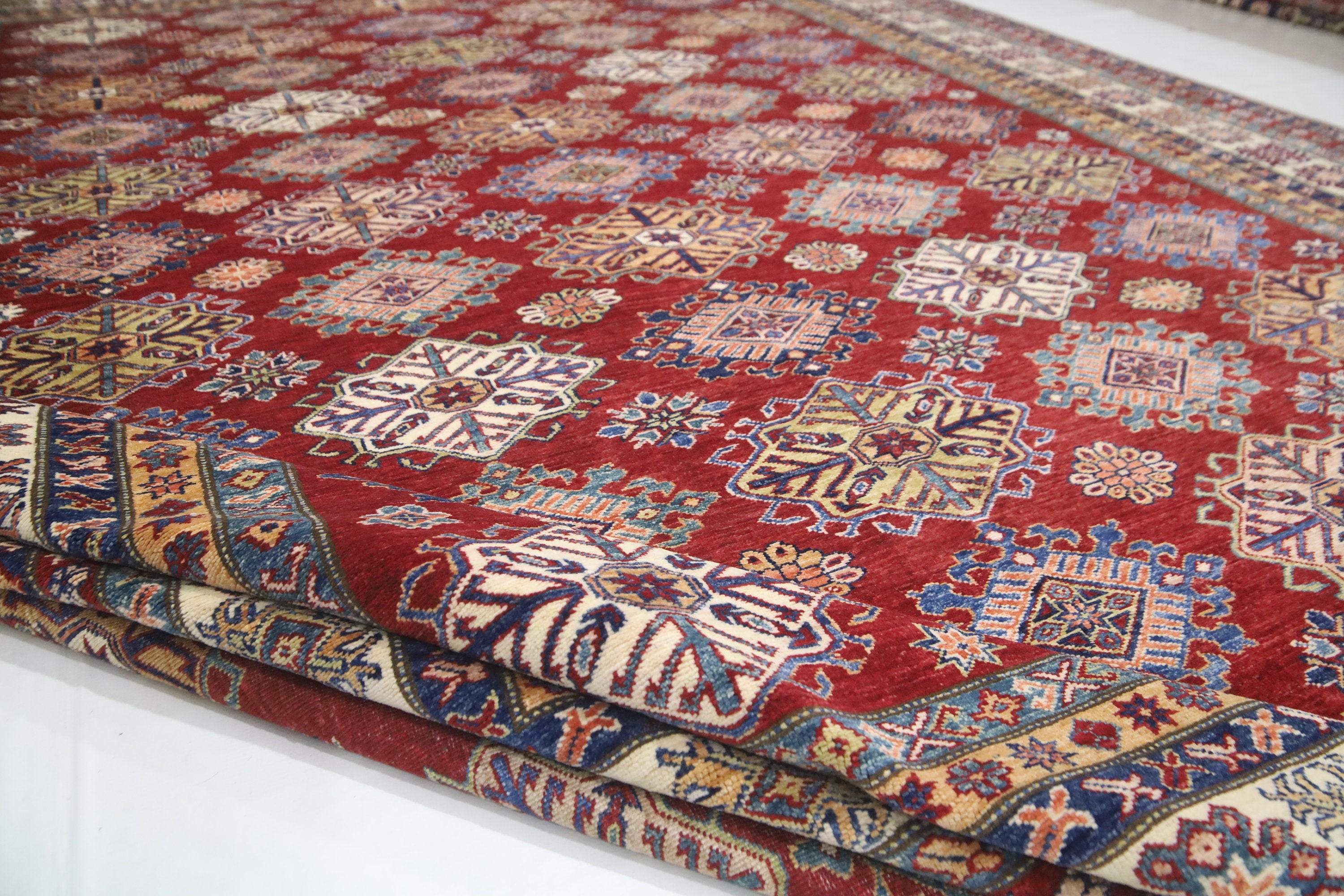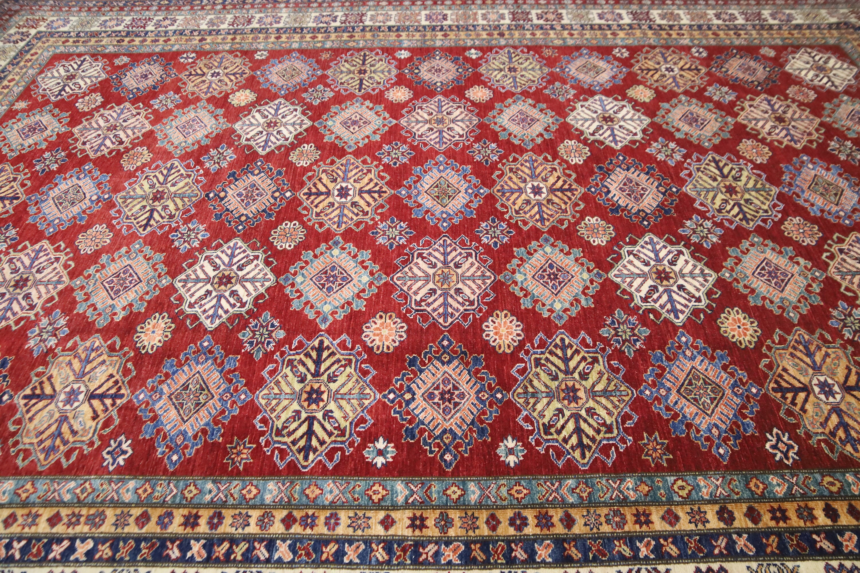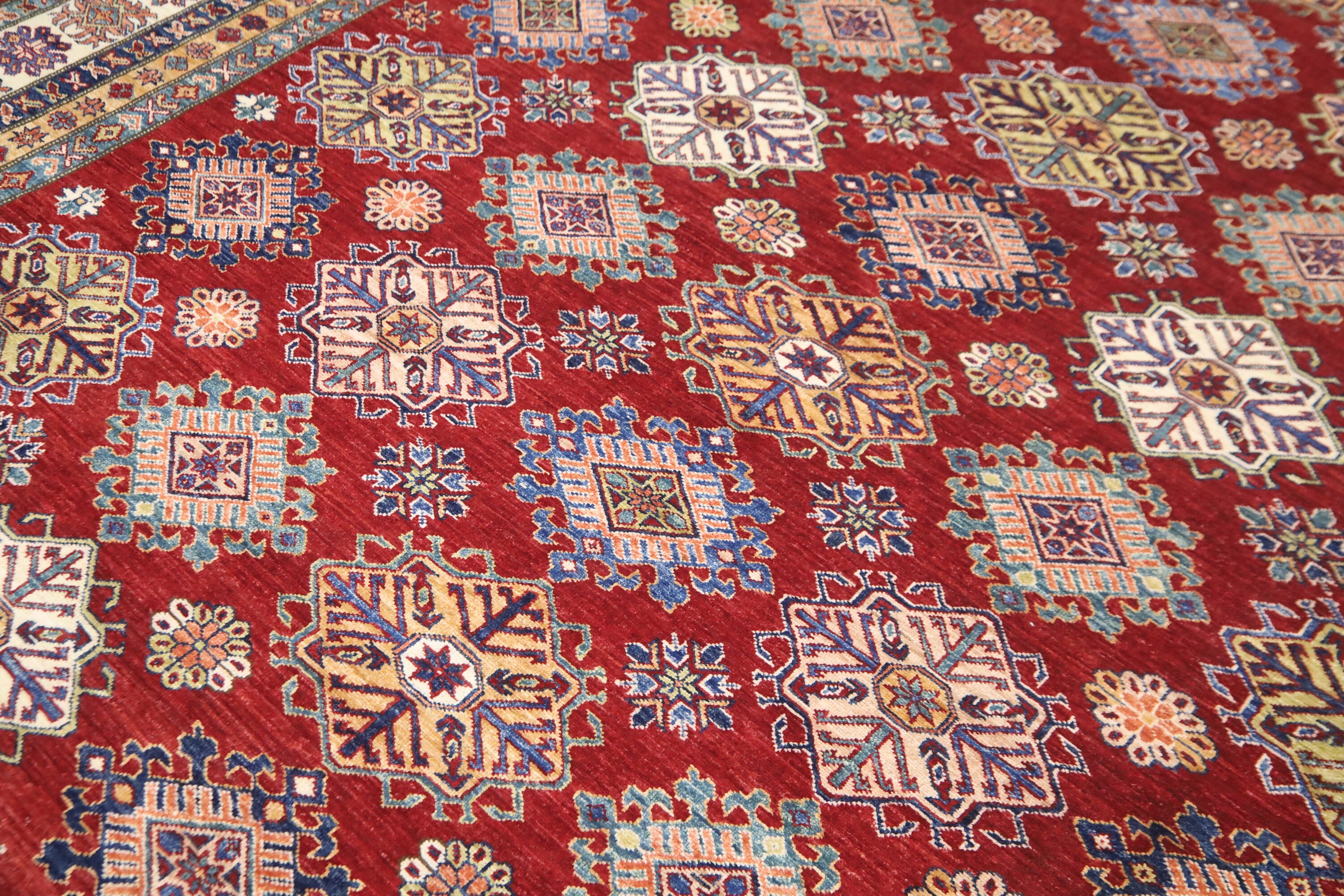 Red 9x12 Kazak Area Rug - Afghan Hand Made Geometric Design Fine Quality Wool Rug - Traditional Rug - Dining Room Rug - Living Room Rug