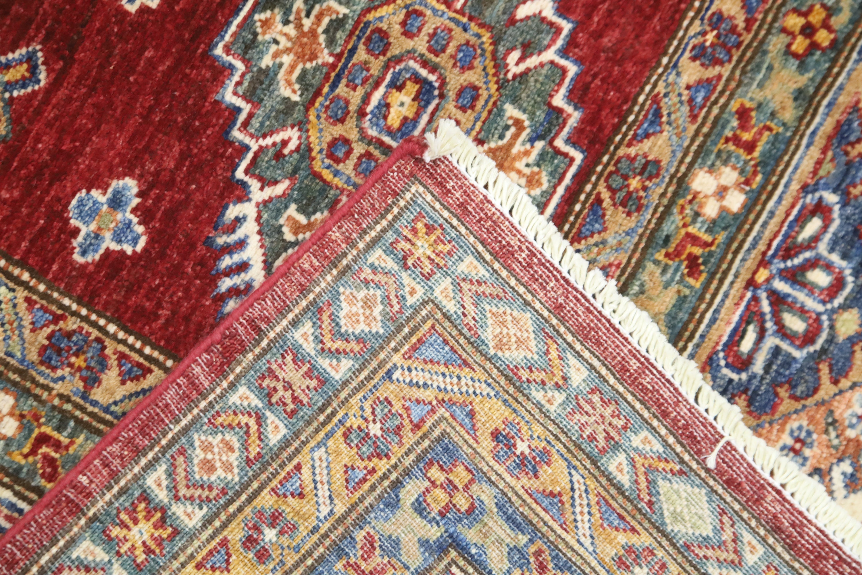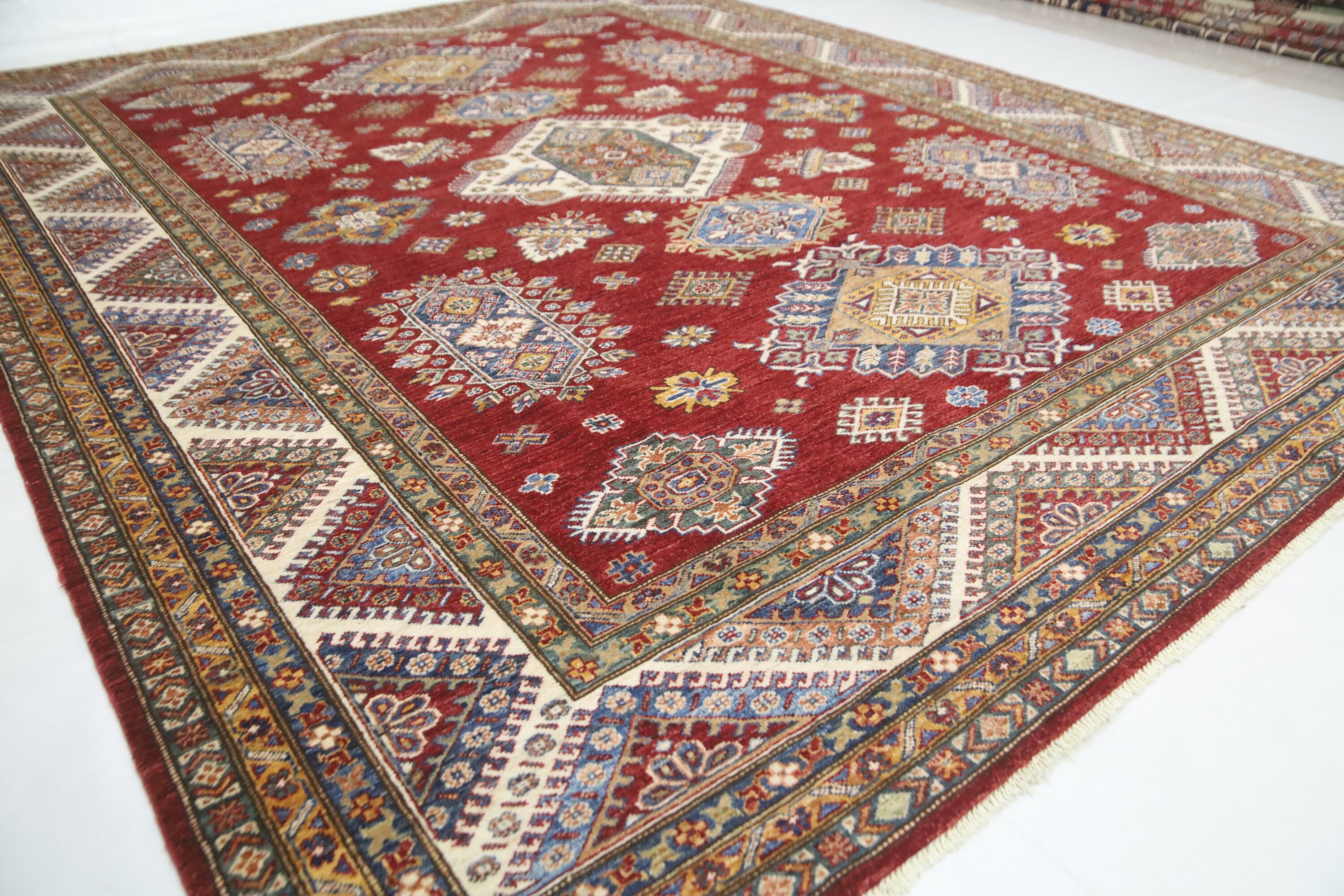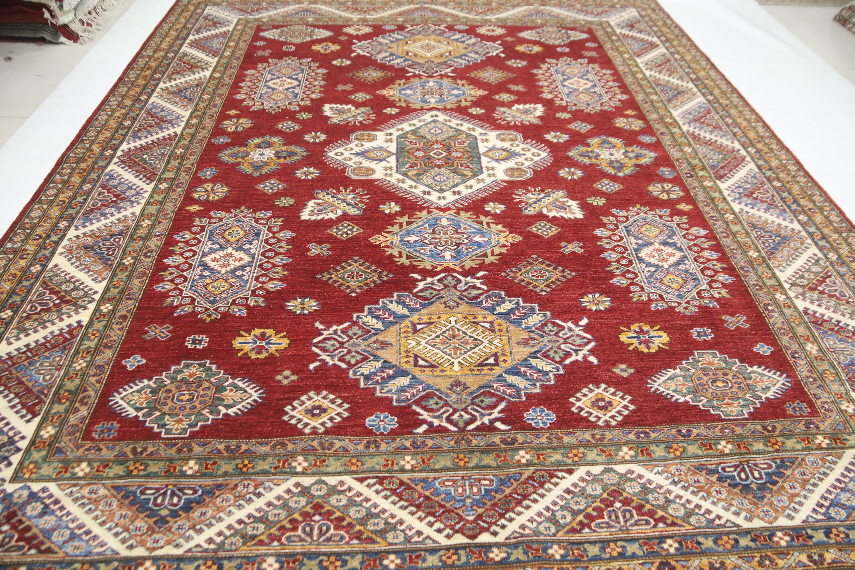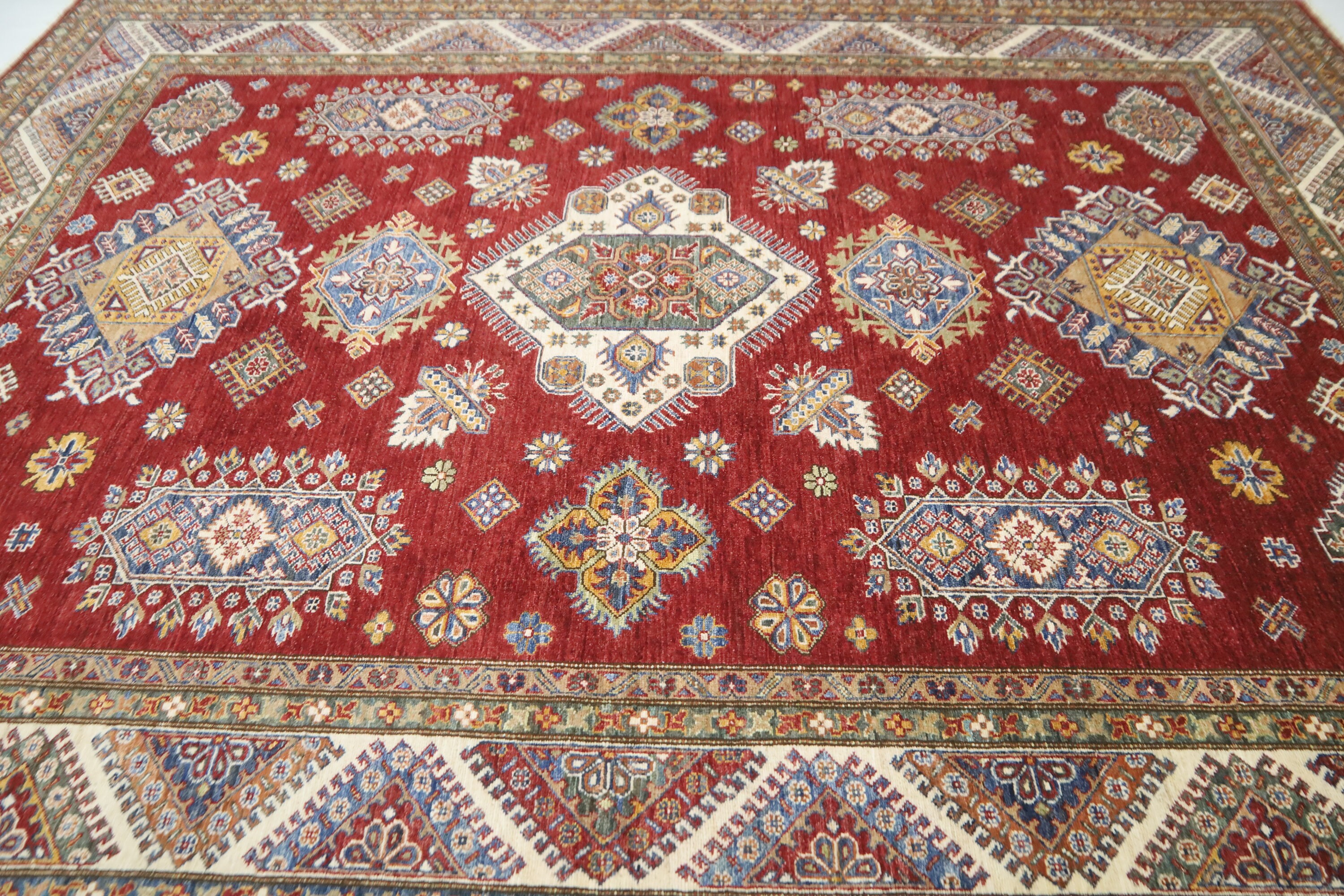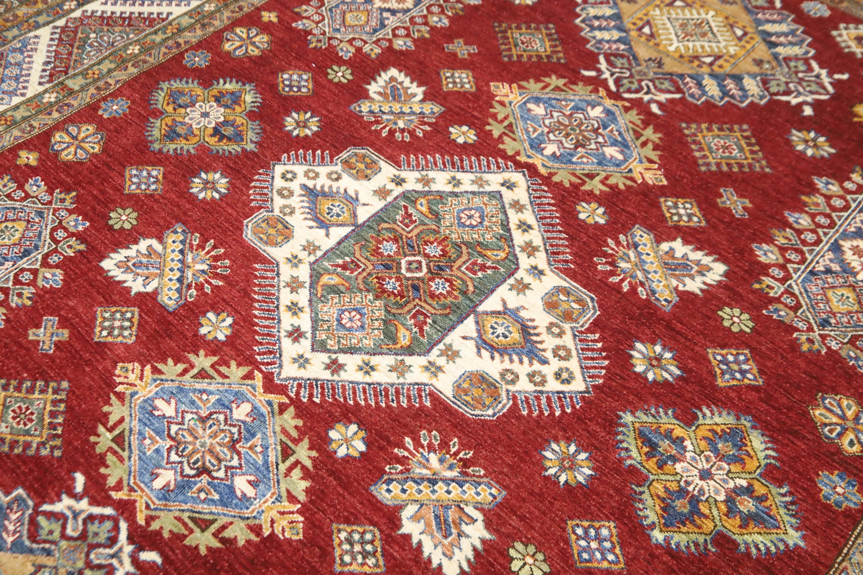 Red 8x10 Kazak Area Rug - Afghan Hand Made Geometric Design Fine Quality Wool Rug - Red Bedroom Rug - Living Room Red Rug - Office Red Rug