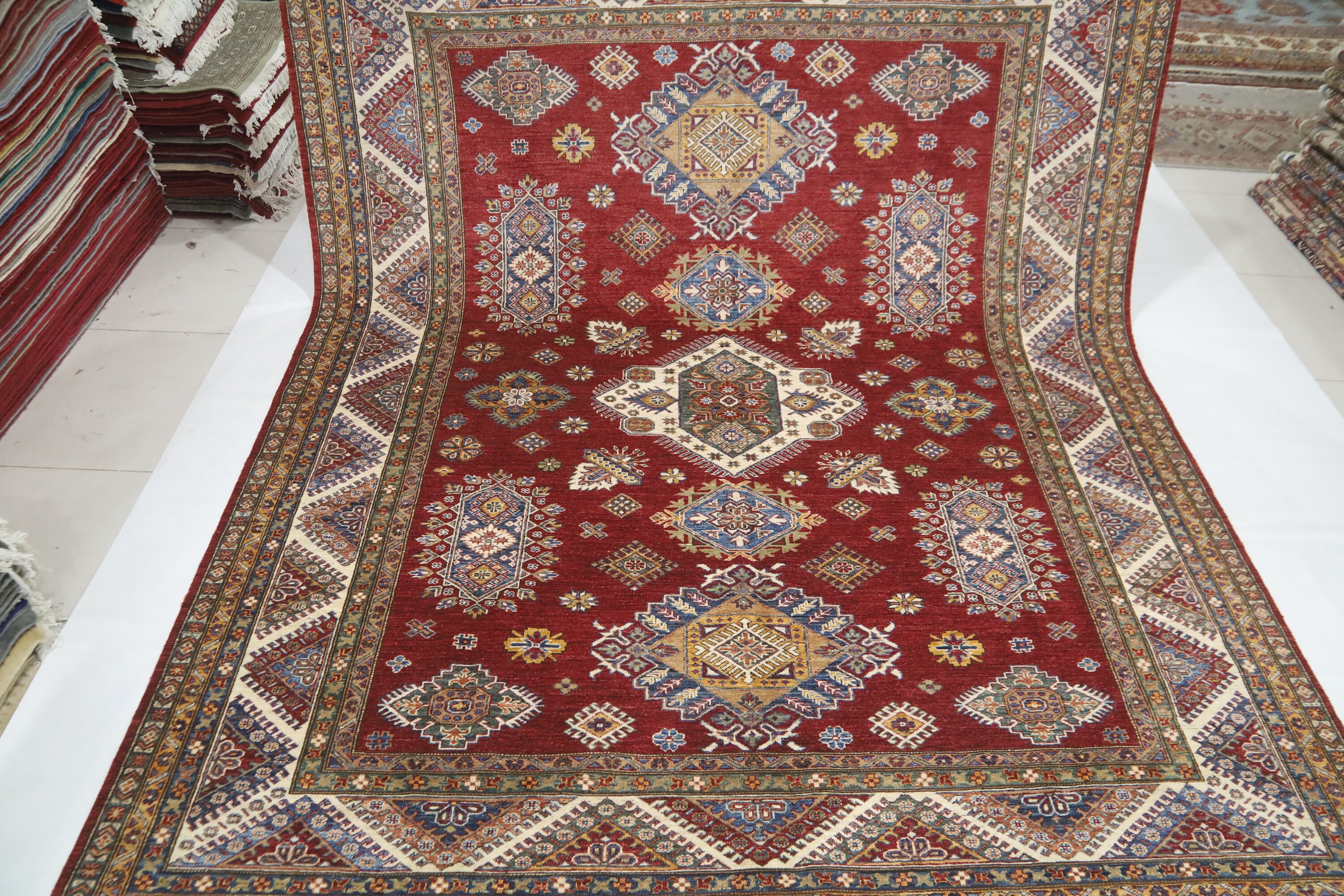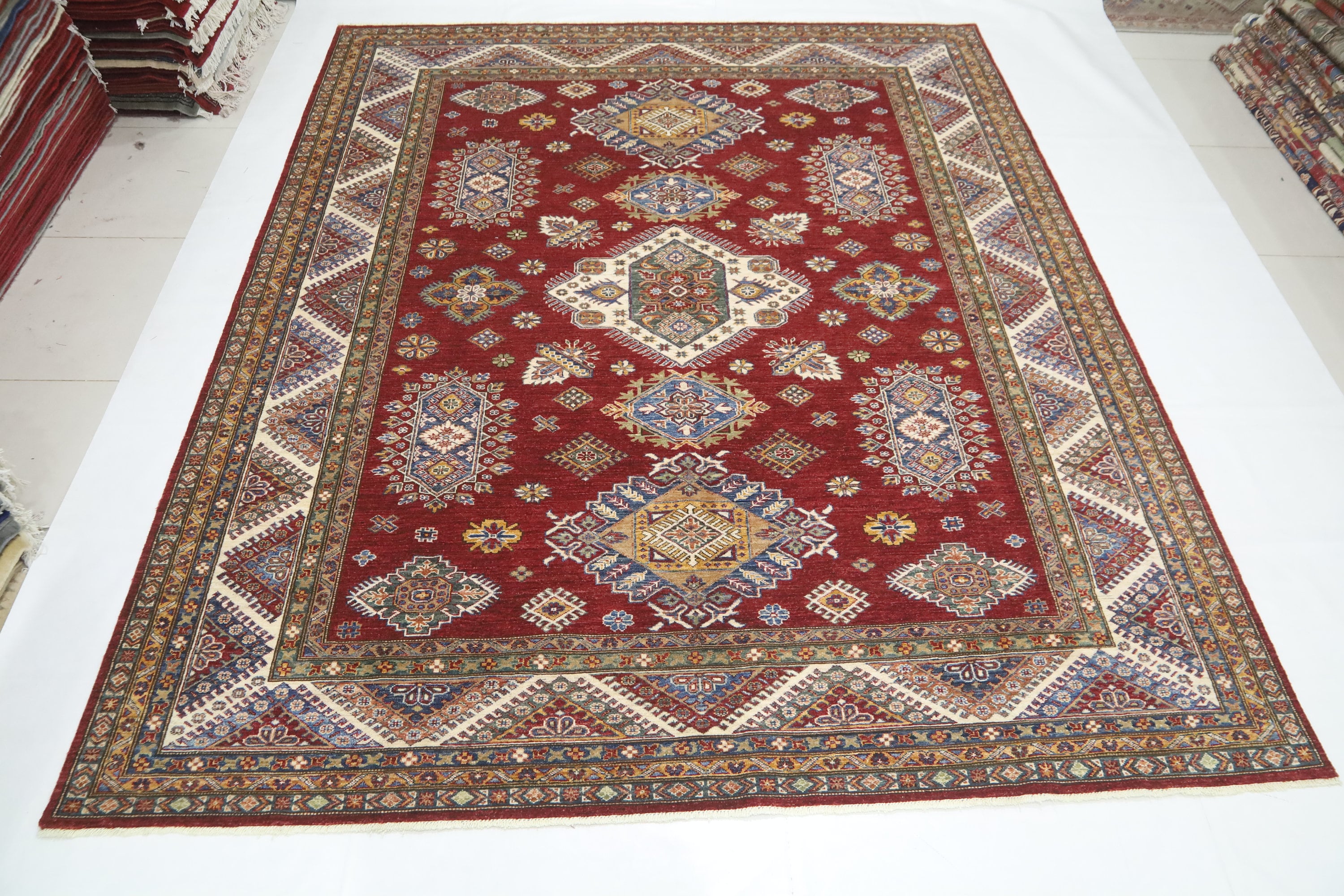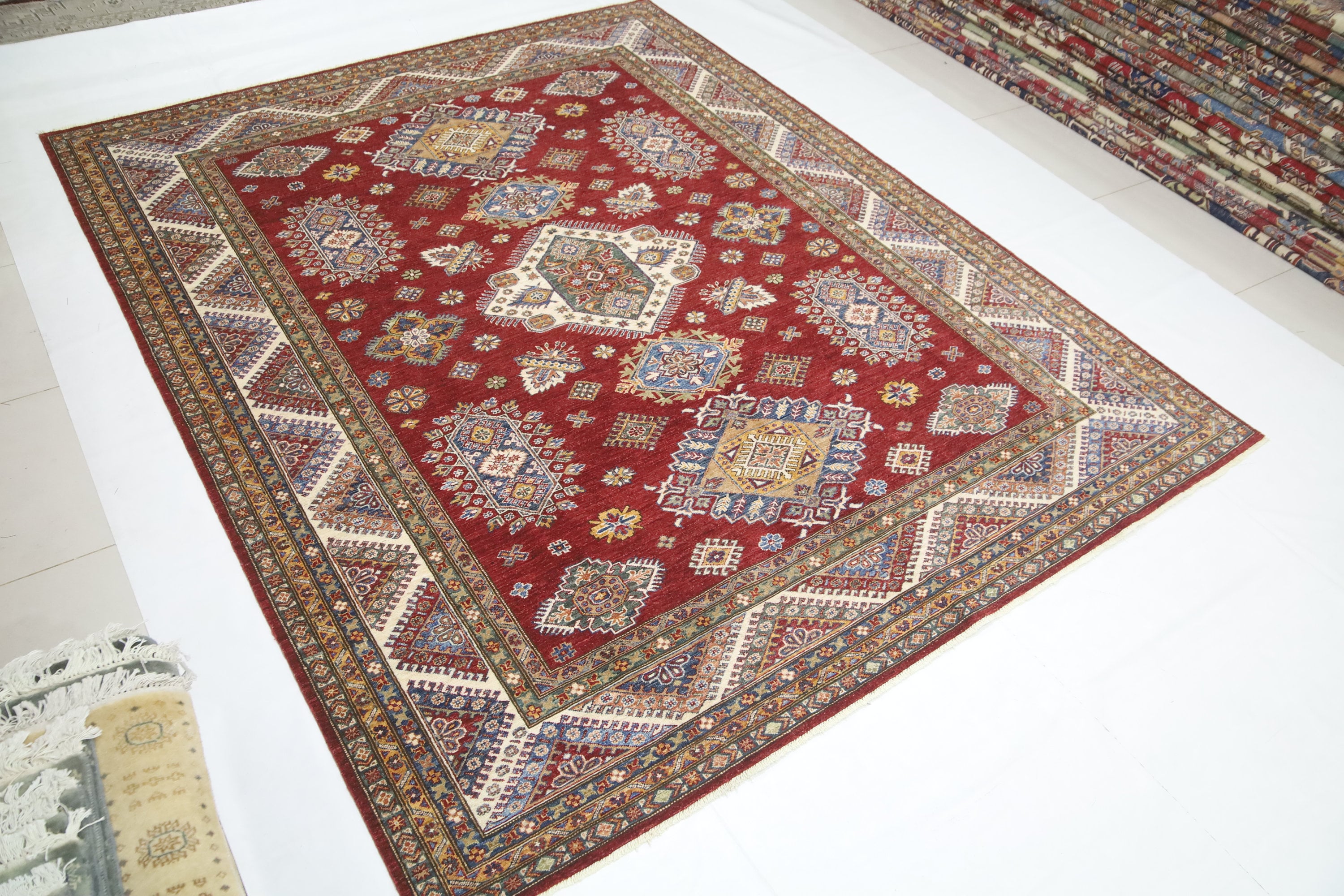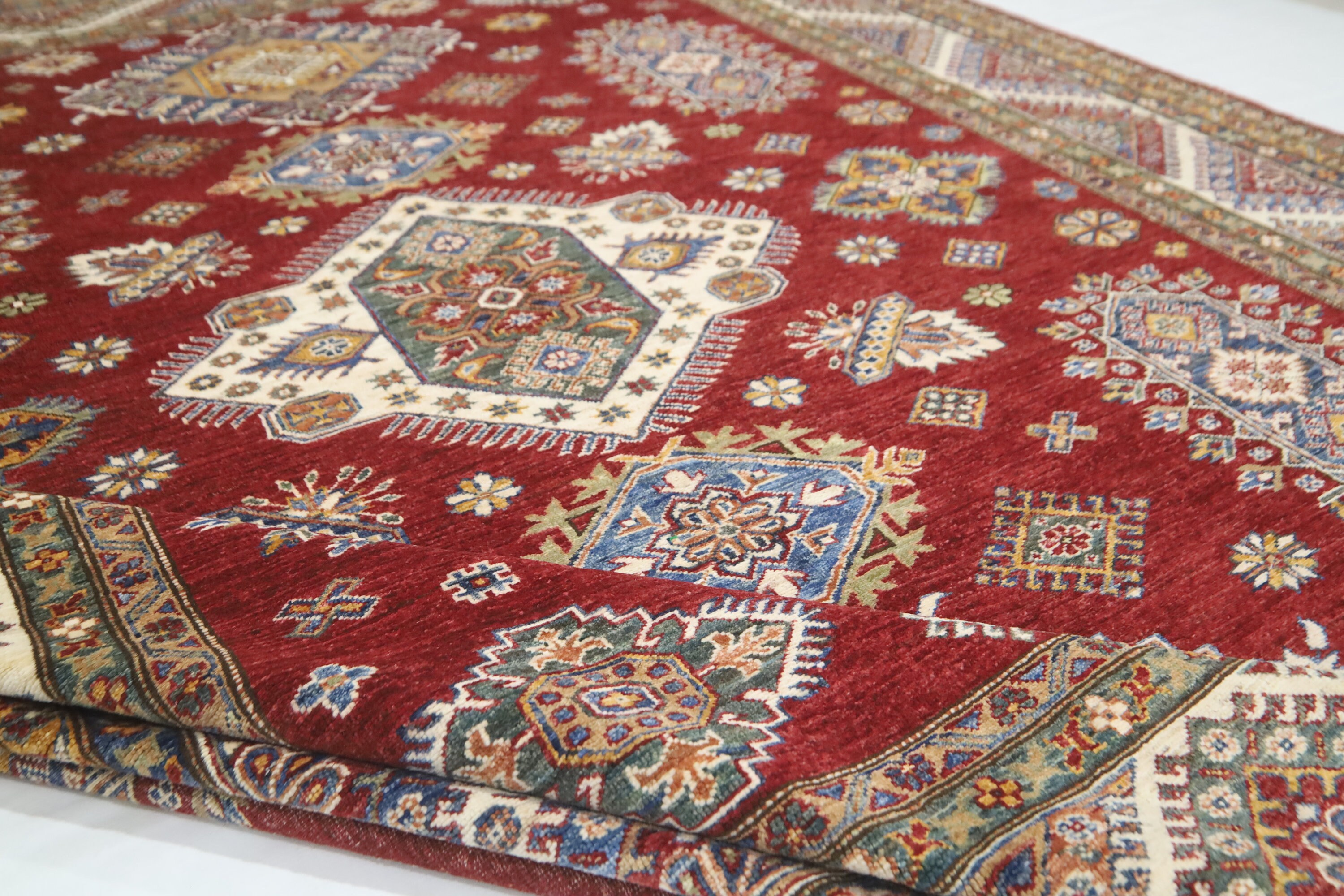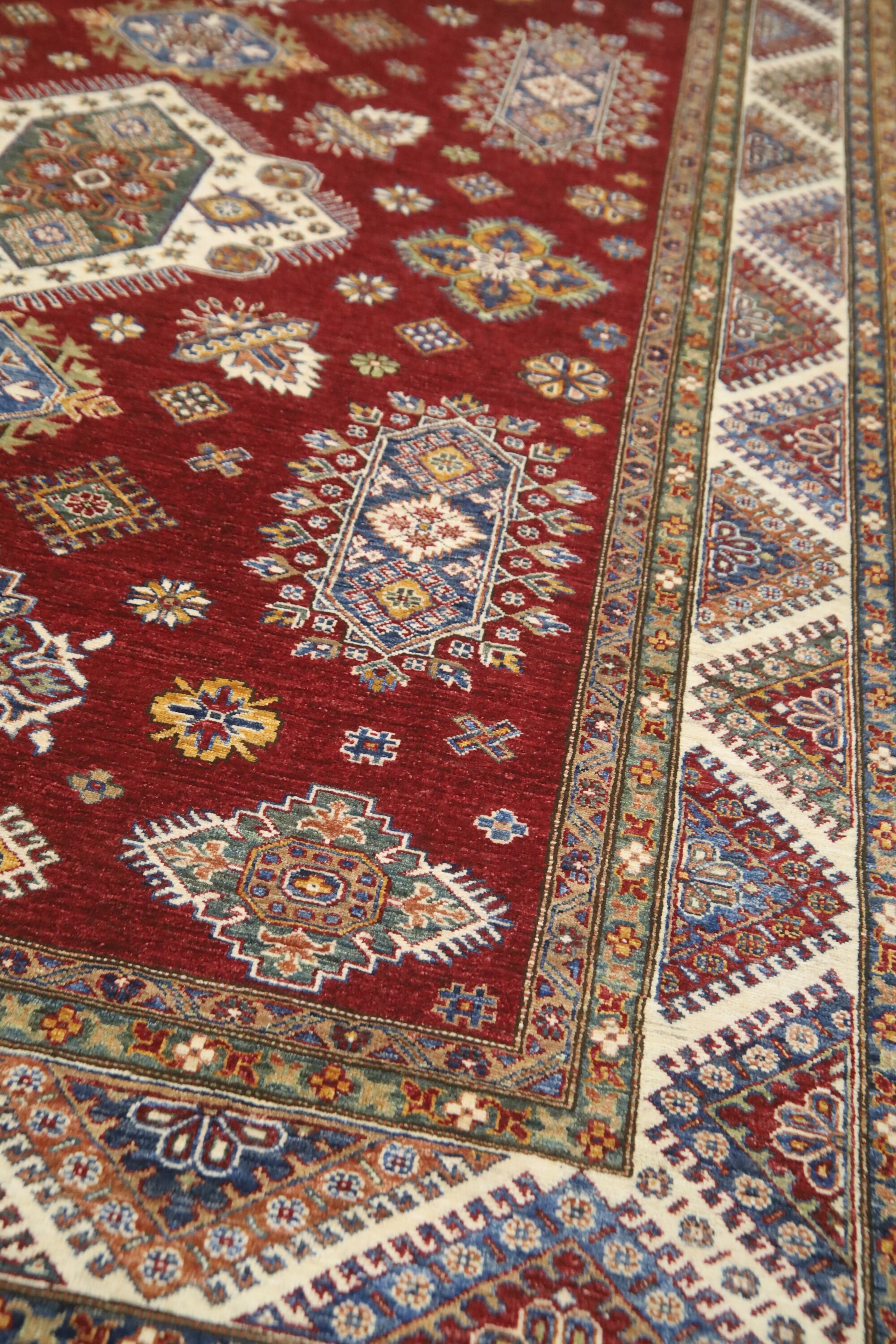 Red 8x10 Kazak Area Rug - Afghan Hand Made Geometric Design Fine Quality Wool Rug - Red Bedroom Rug - Living Room Red Rug - Office Red Rug