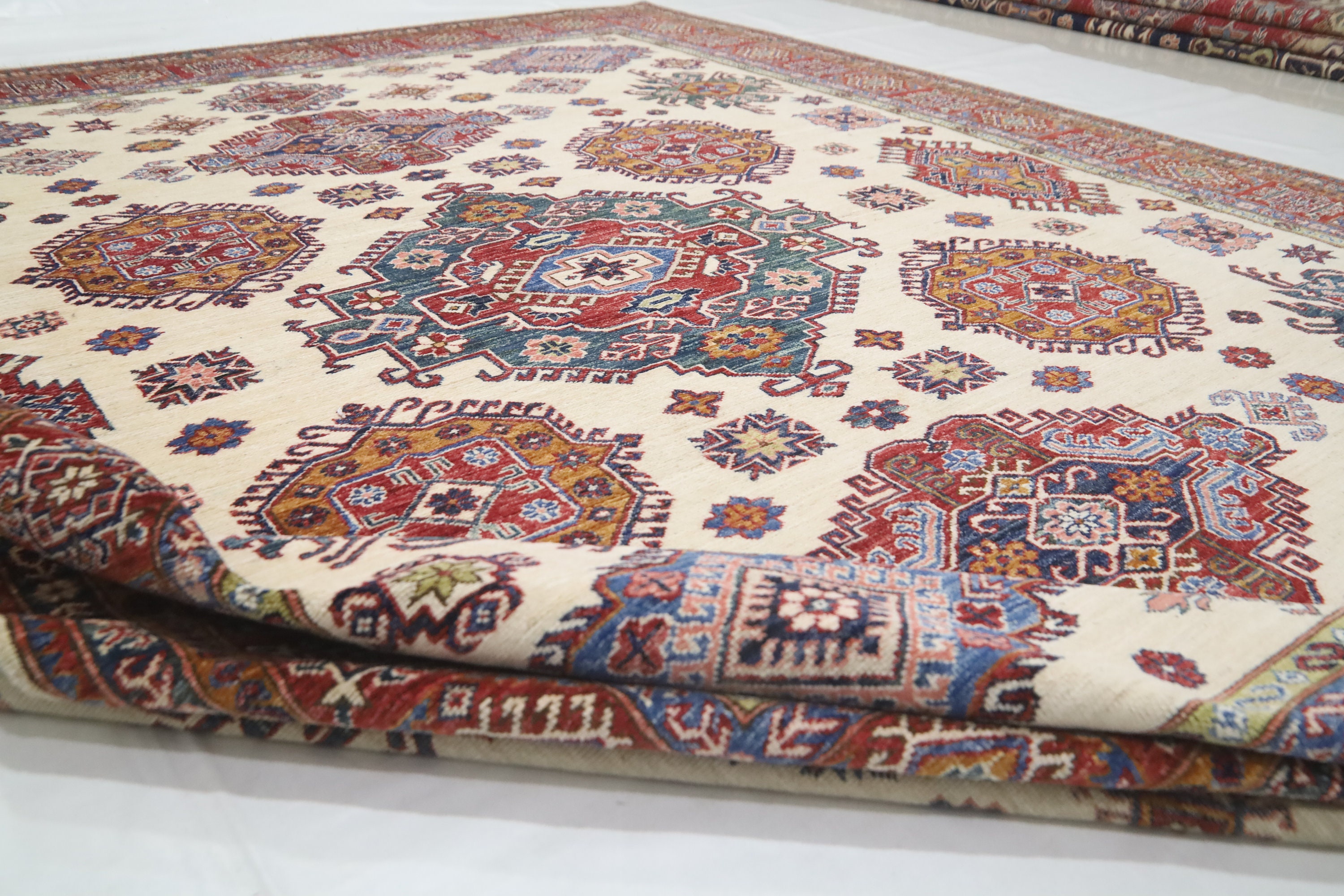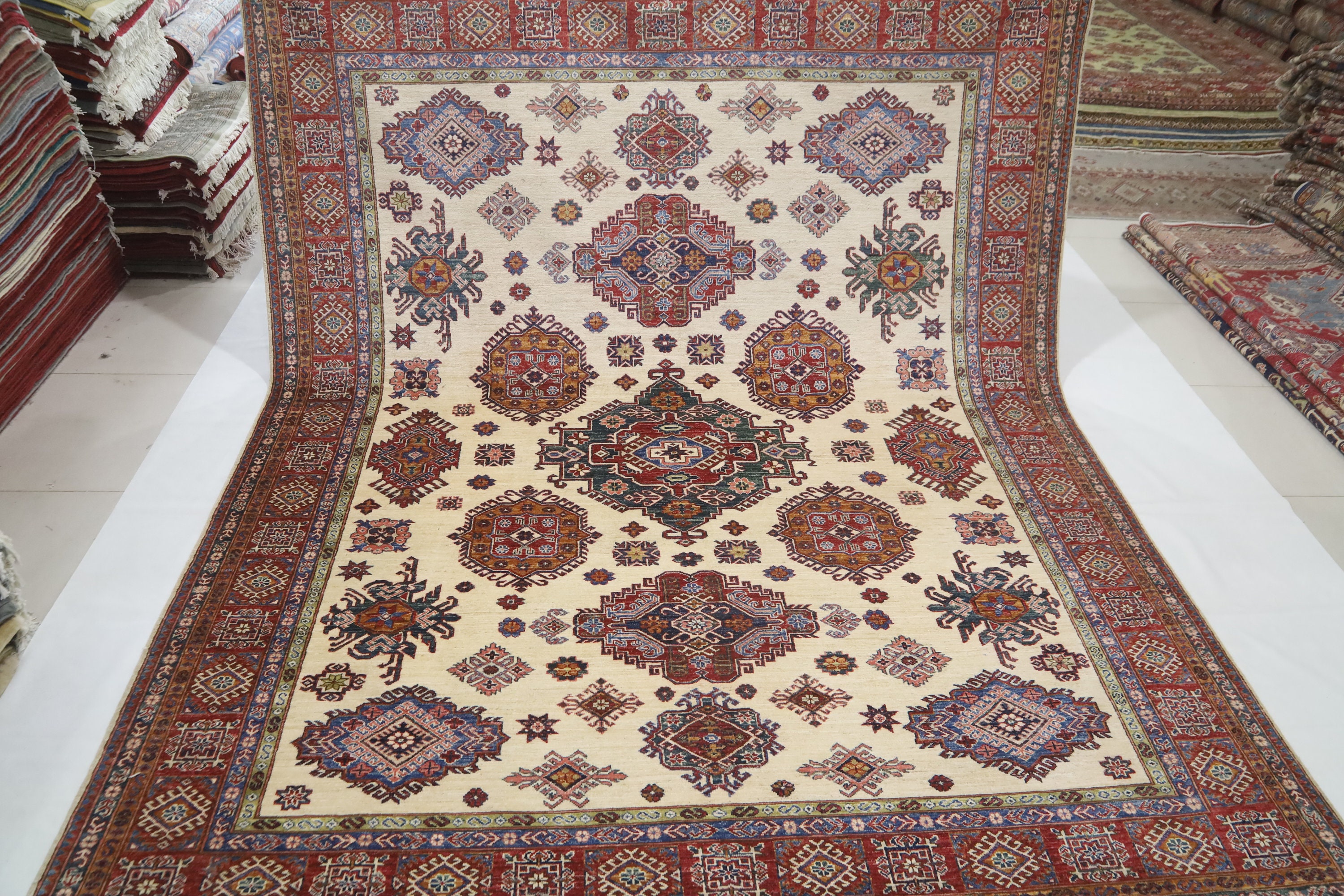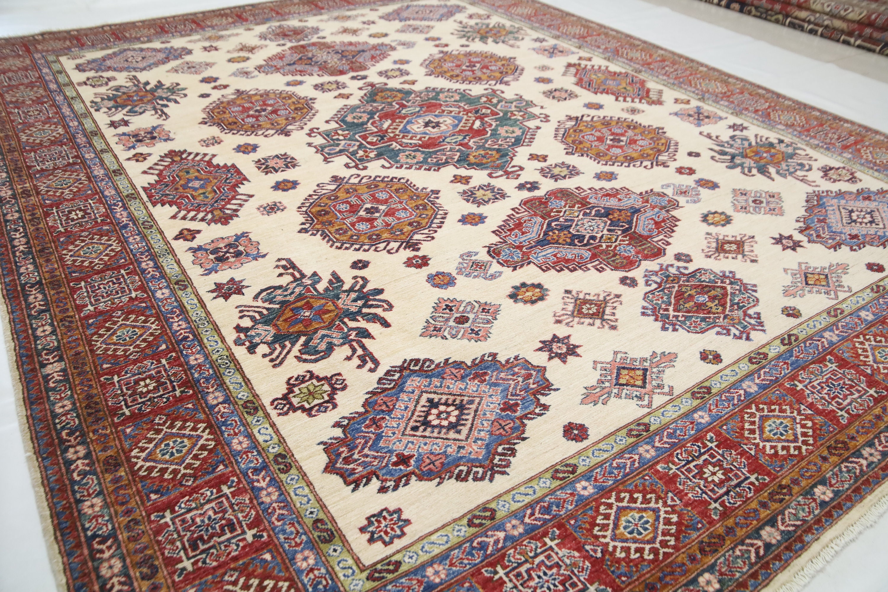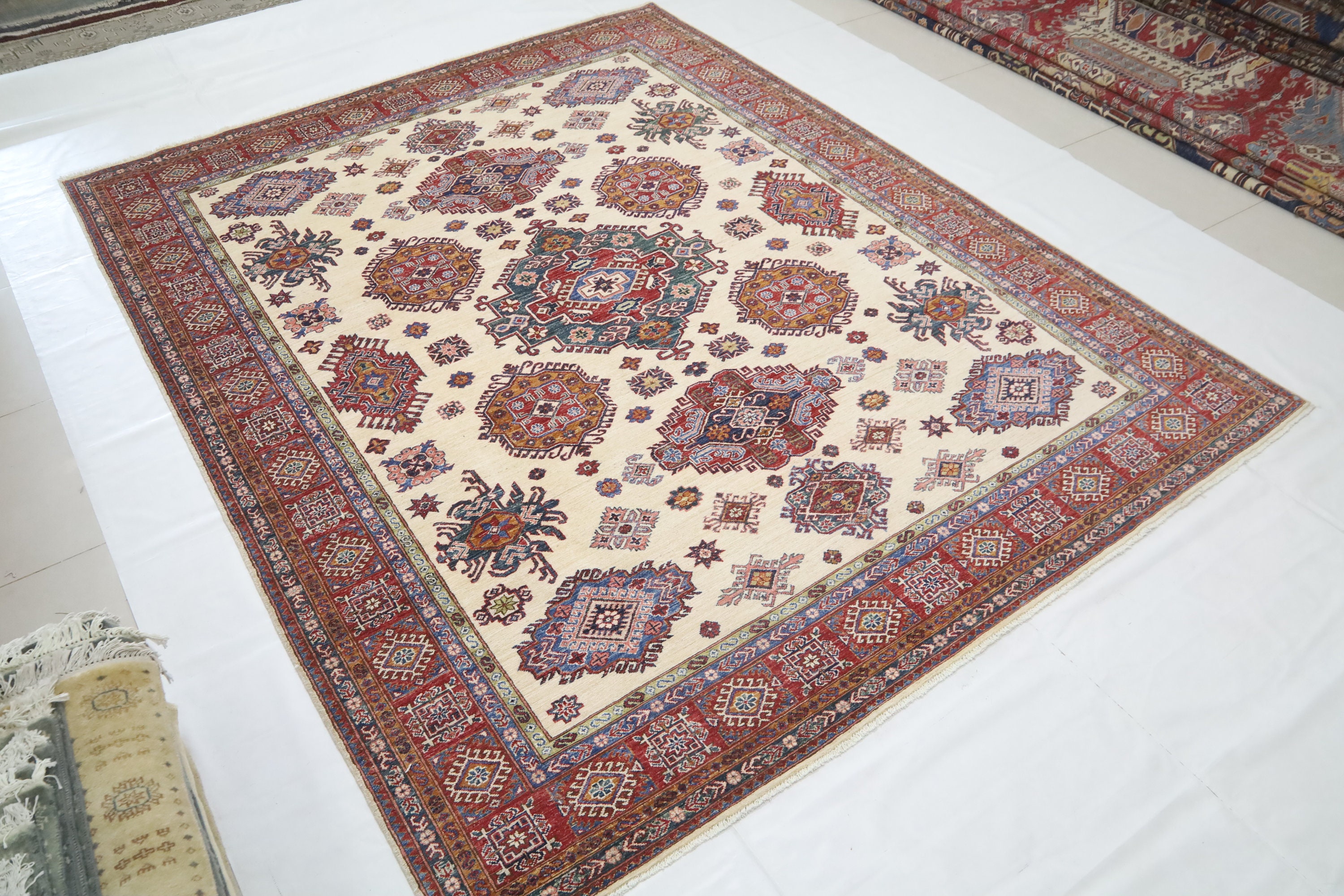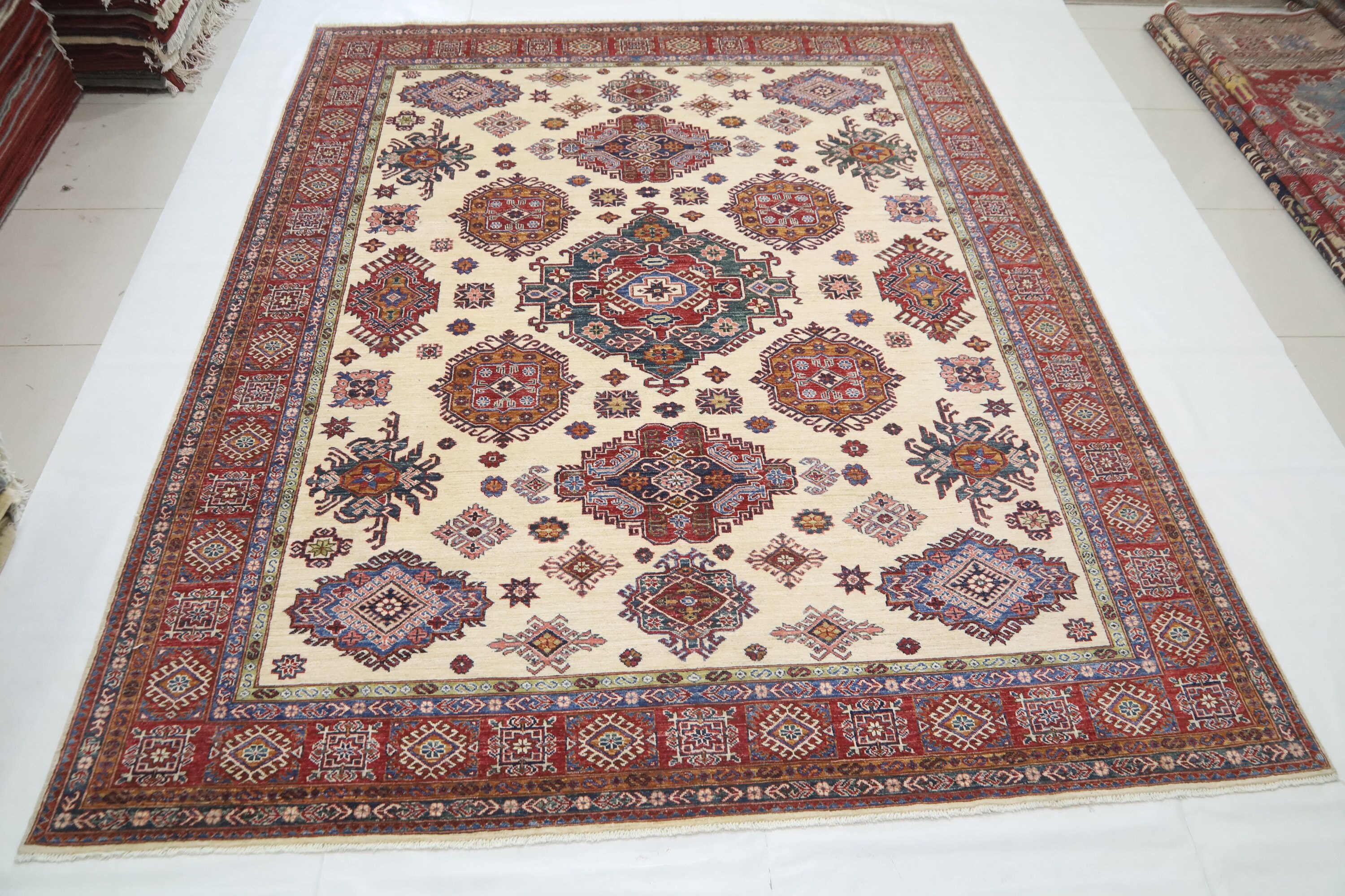 Beige 8x10 Kazak Area Rug - Afghan Hand Made Traditional Fine Quality Wool Rug - Caucasian Rug - Geometric Rug - Bedroom Rug - Farmhouse Rug