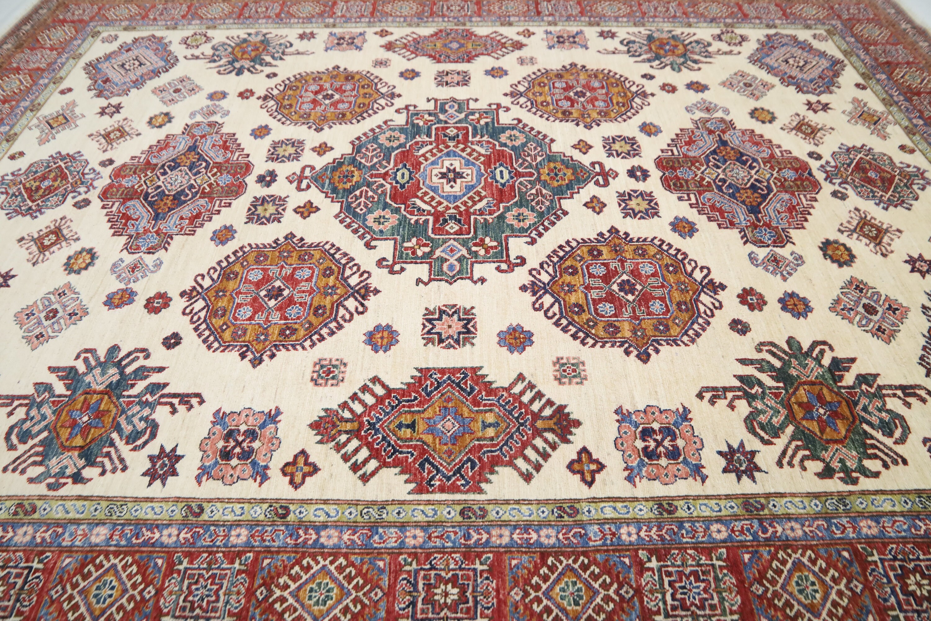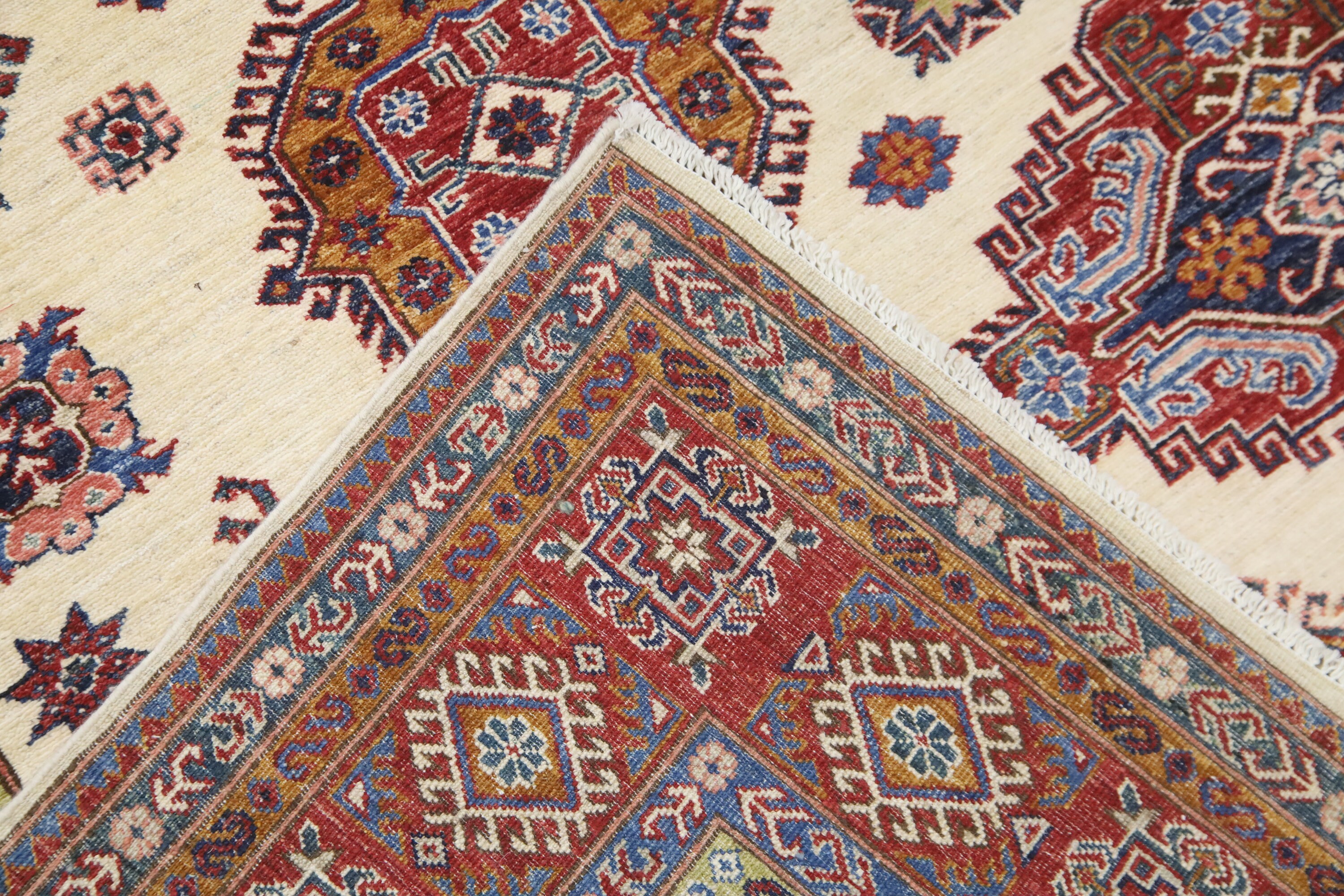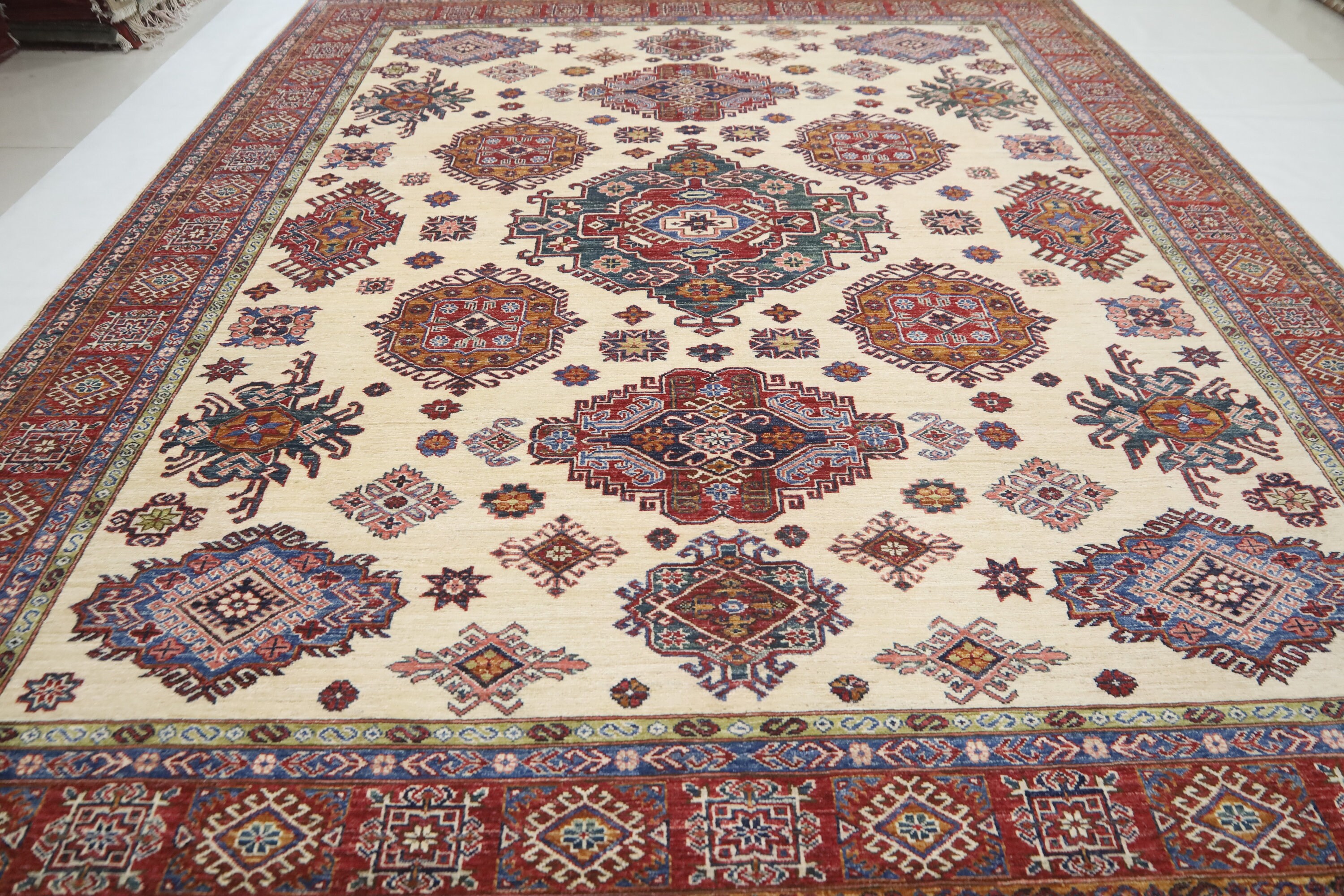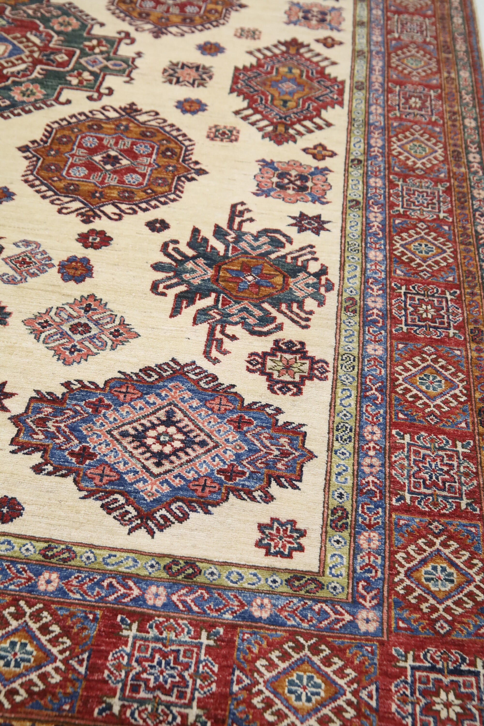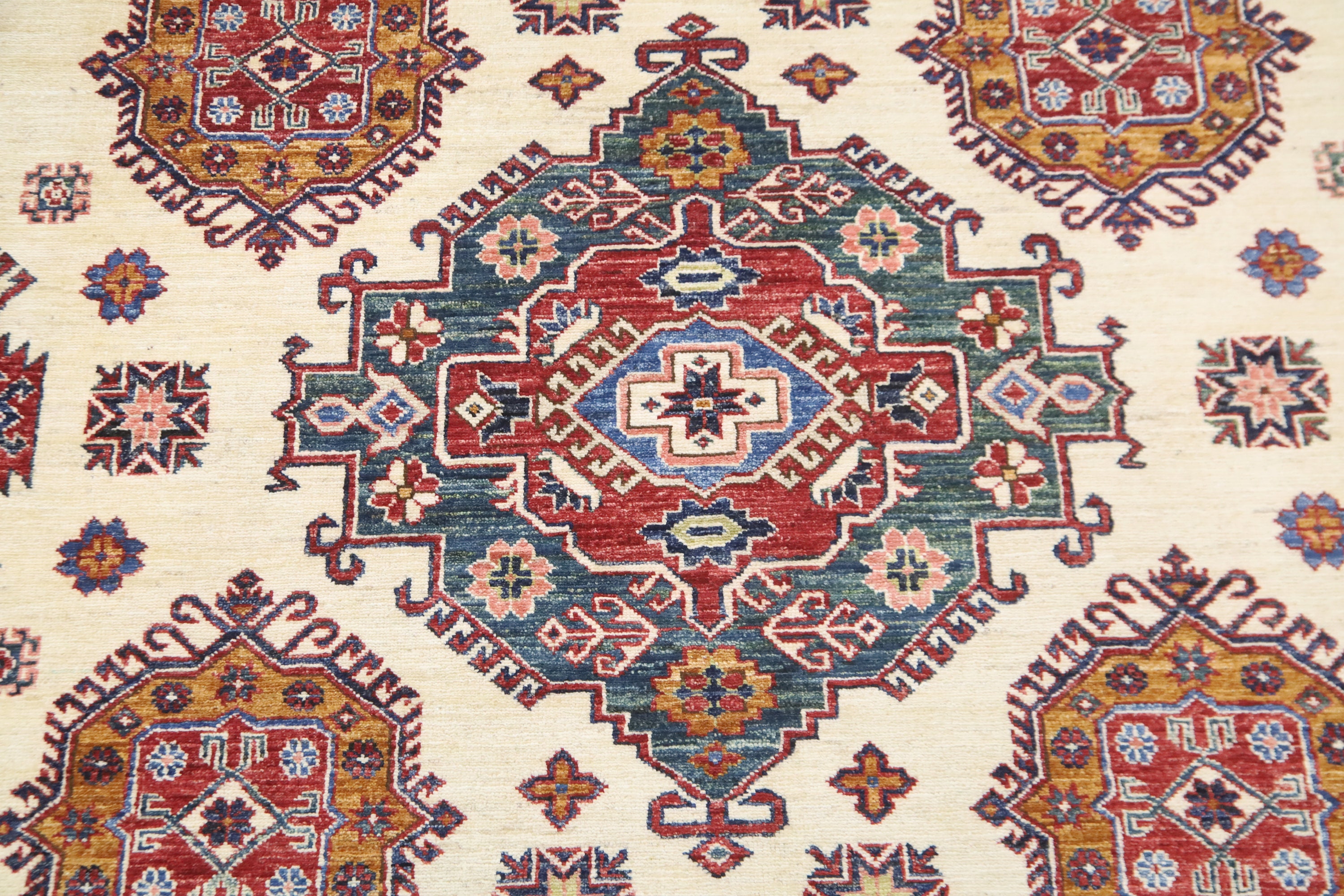 Beige 8x10 Kazak Area Rug - Afghan Hand Made Traditional Fine Quality Wool Rug - Caucasian Rug - Geometric Rug - Bedroom Rug - Farmhouse Rug