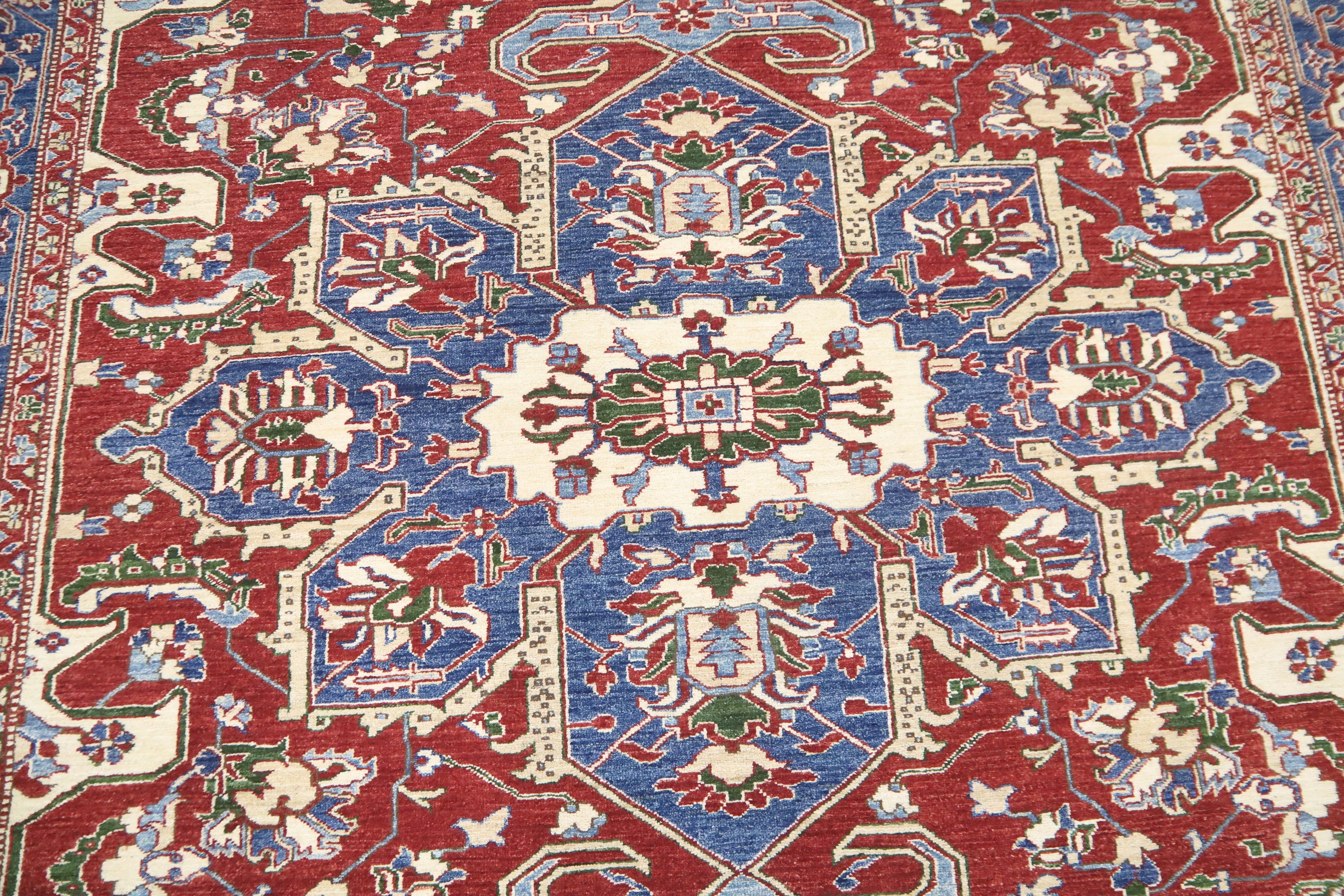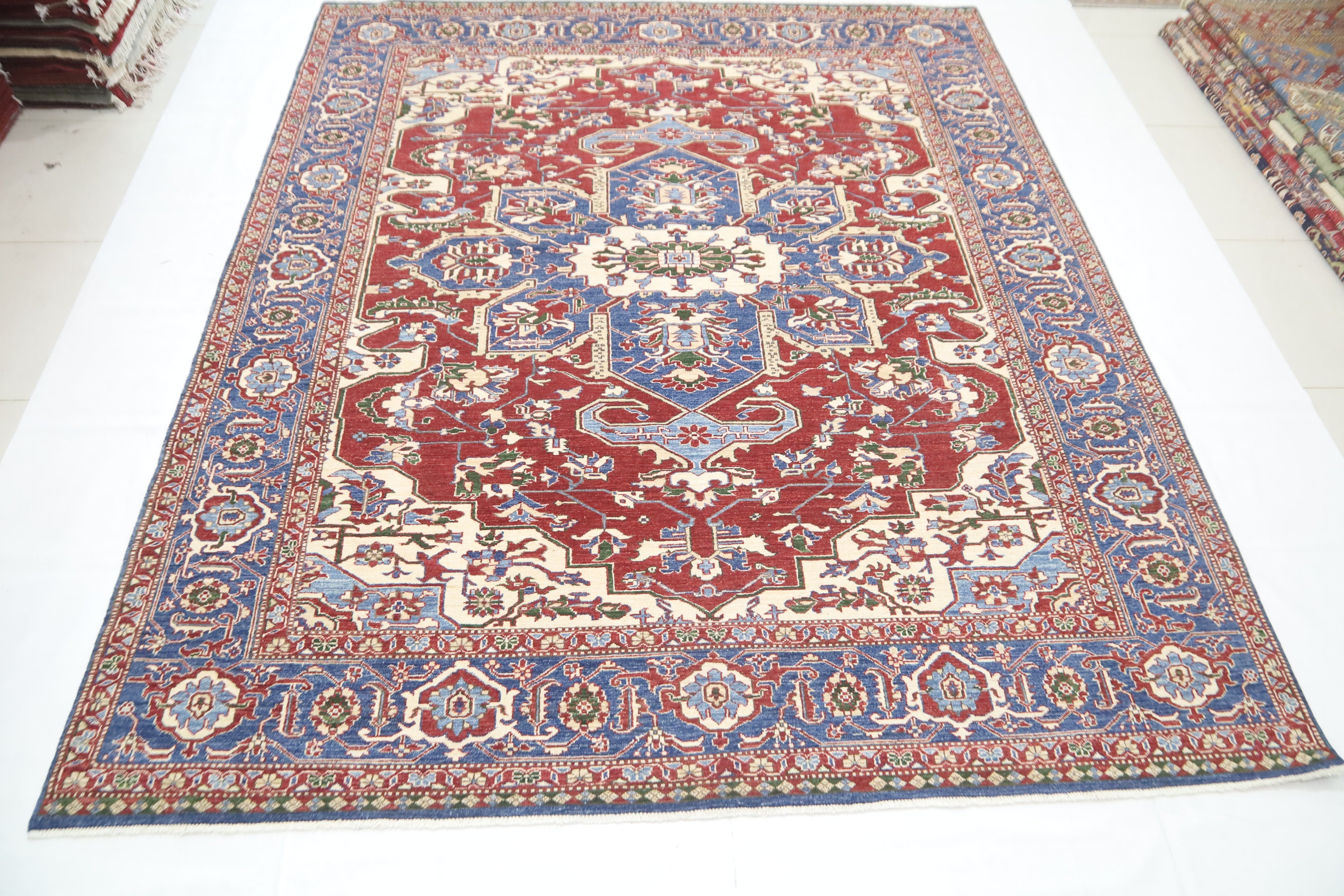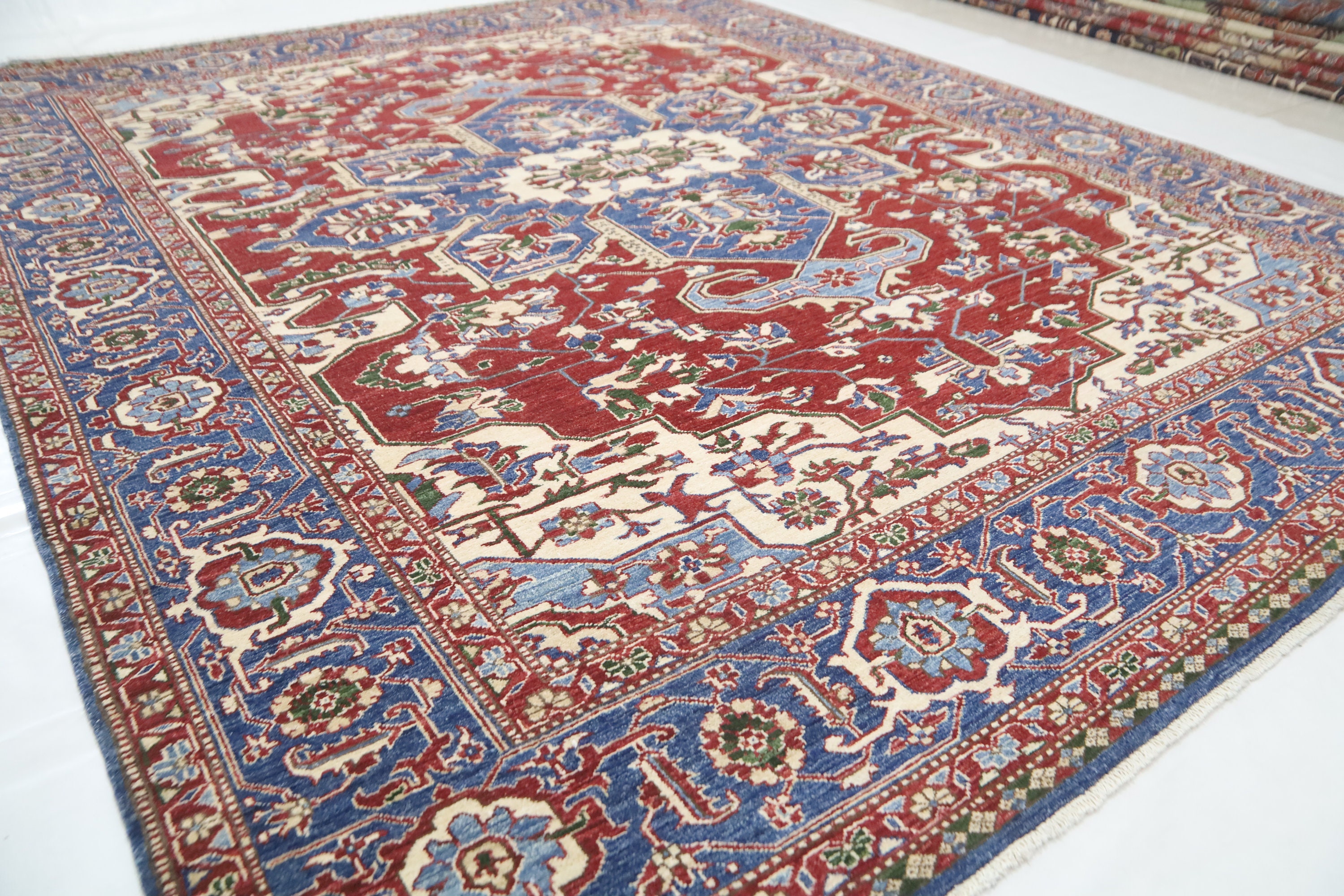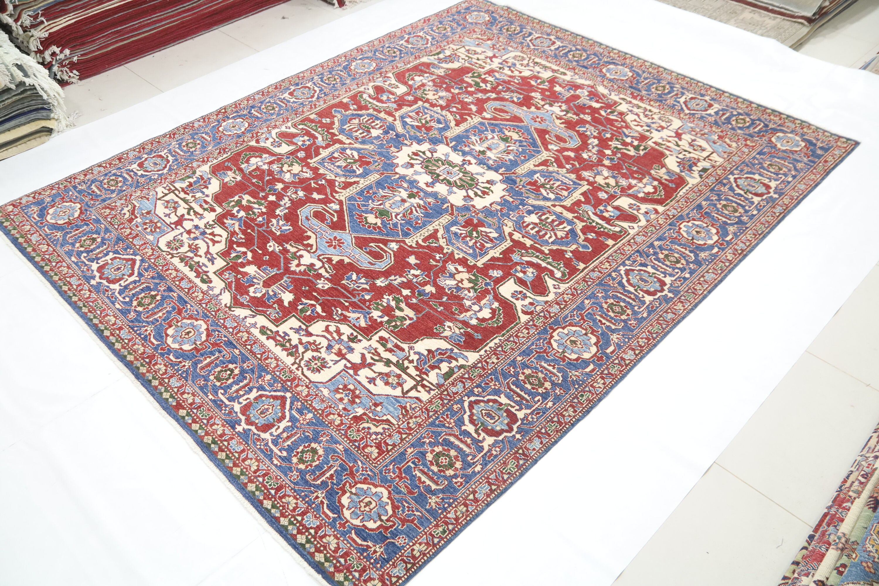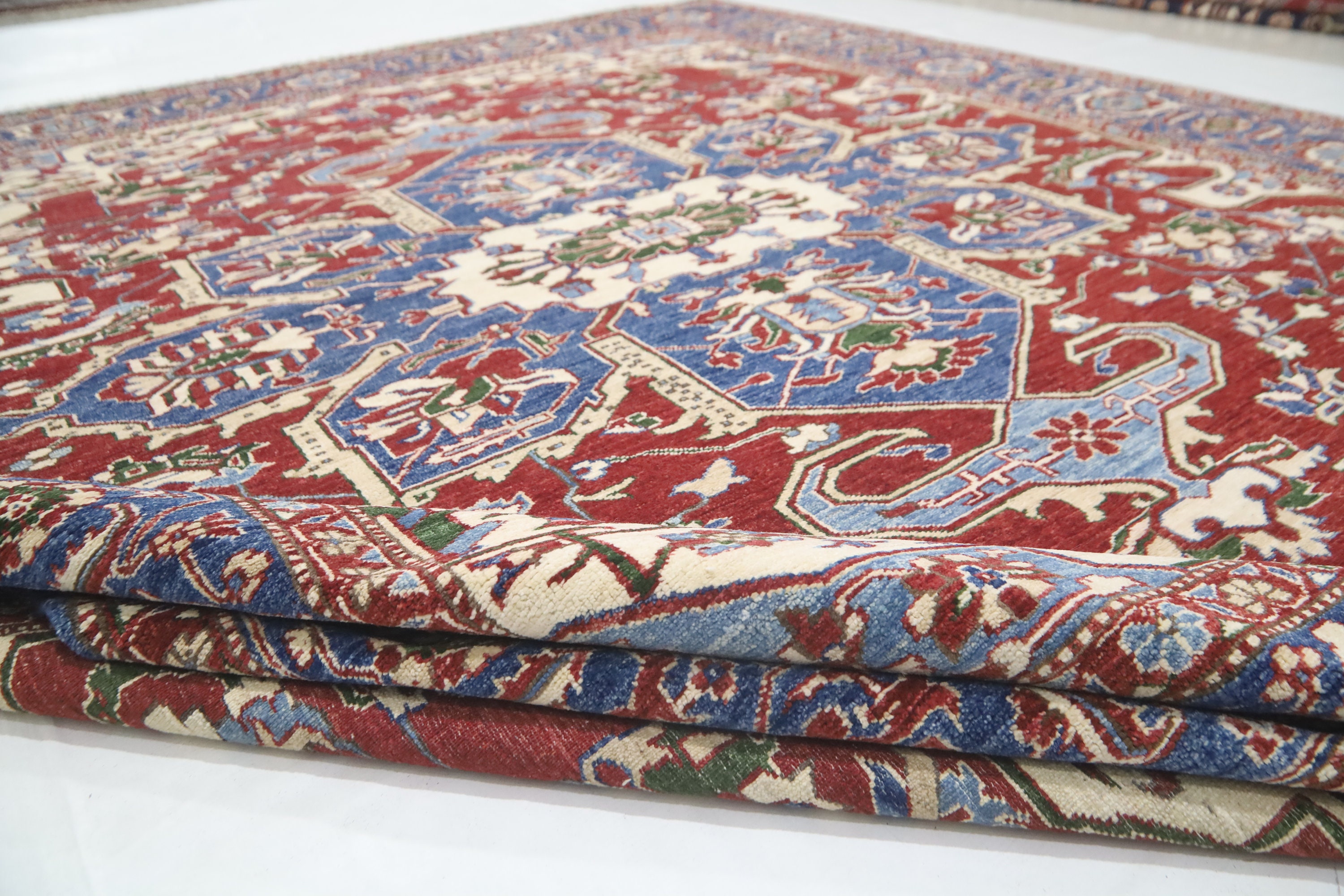 8x10 Heriz Area Rug - Blue Red Persian Style Afghan Handmade Traditional Fine Quality Wool Rug - Dining Room Rug - Living Room Rug