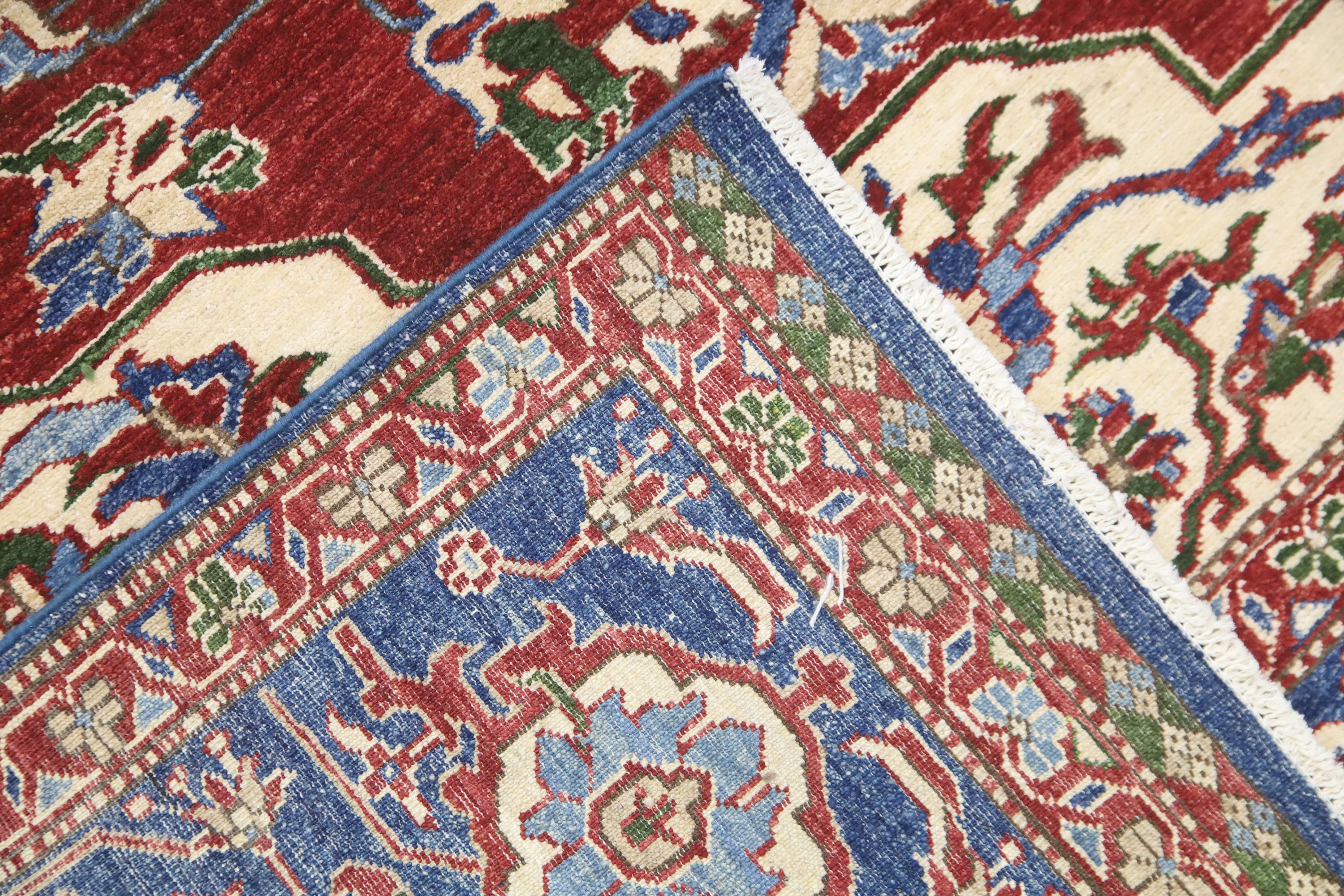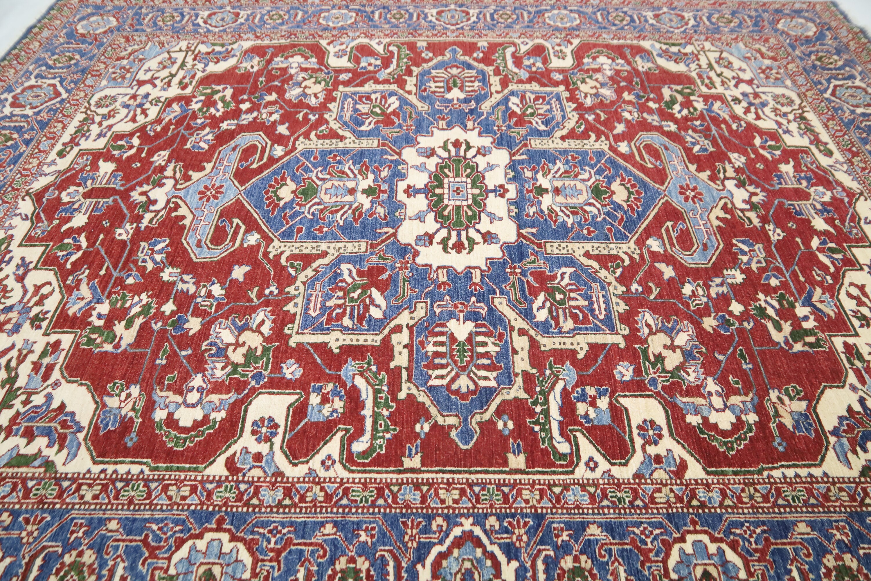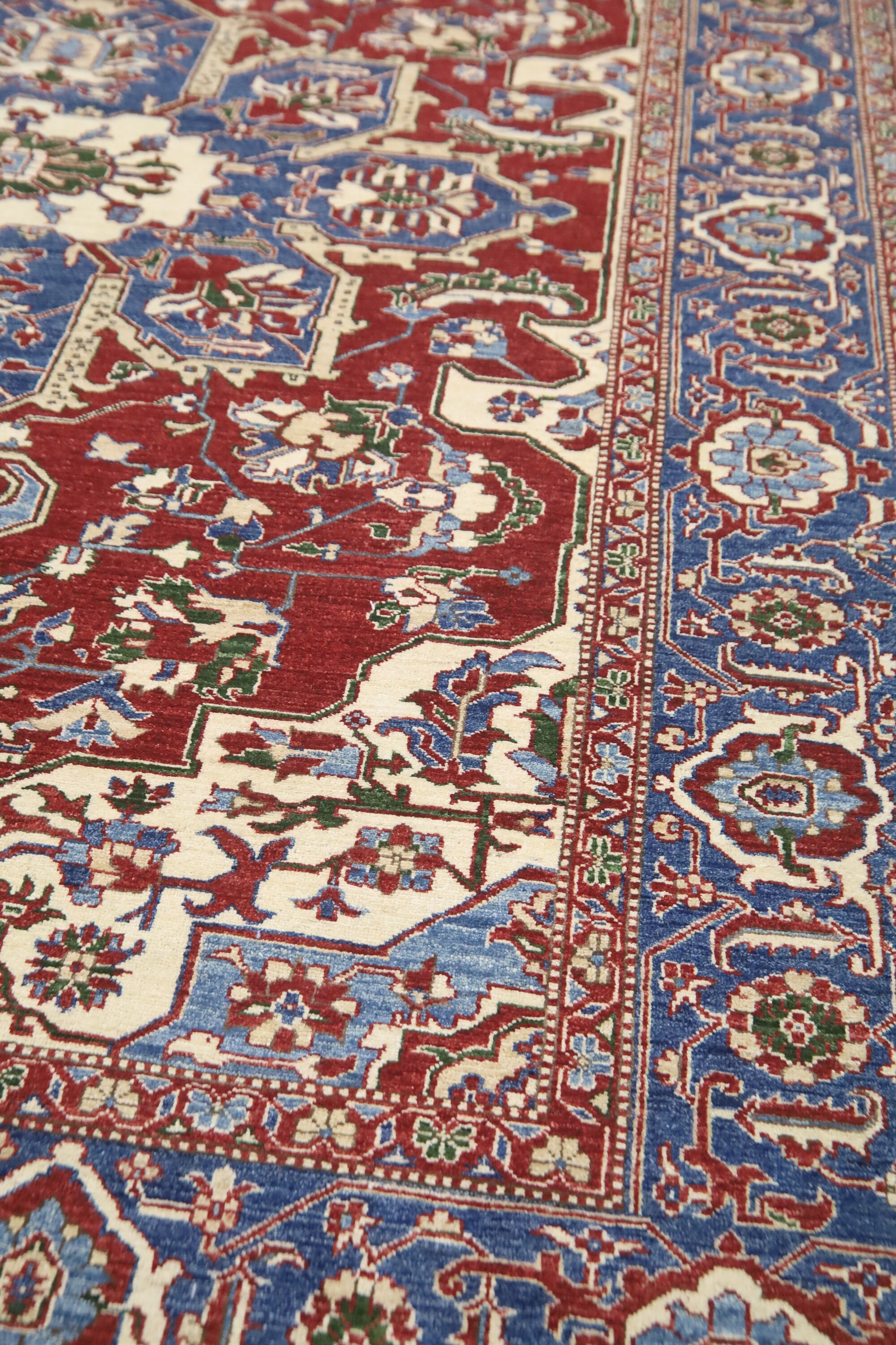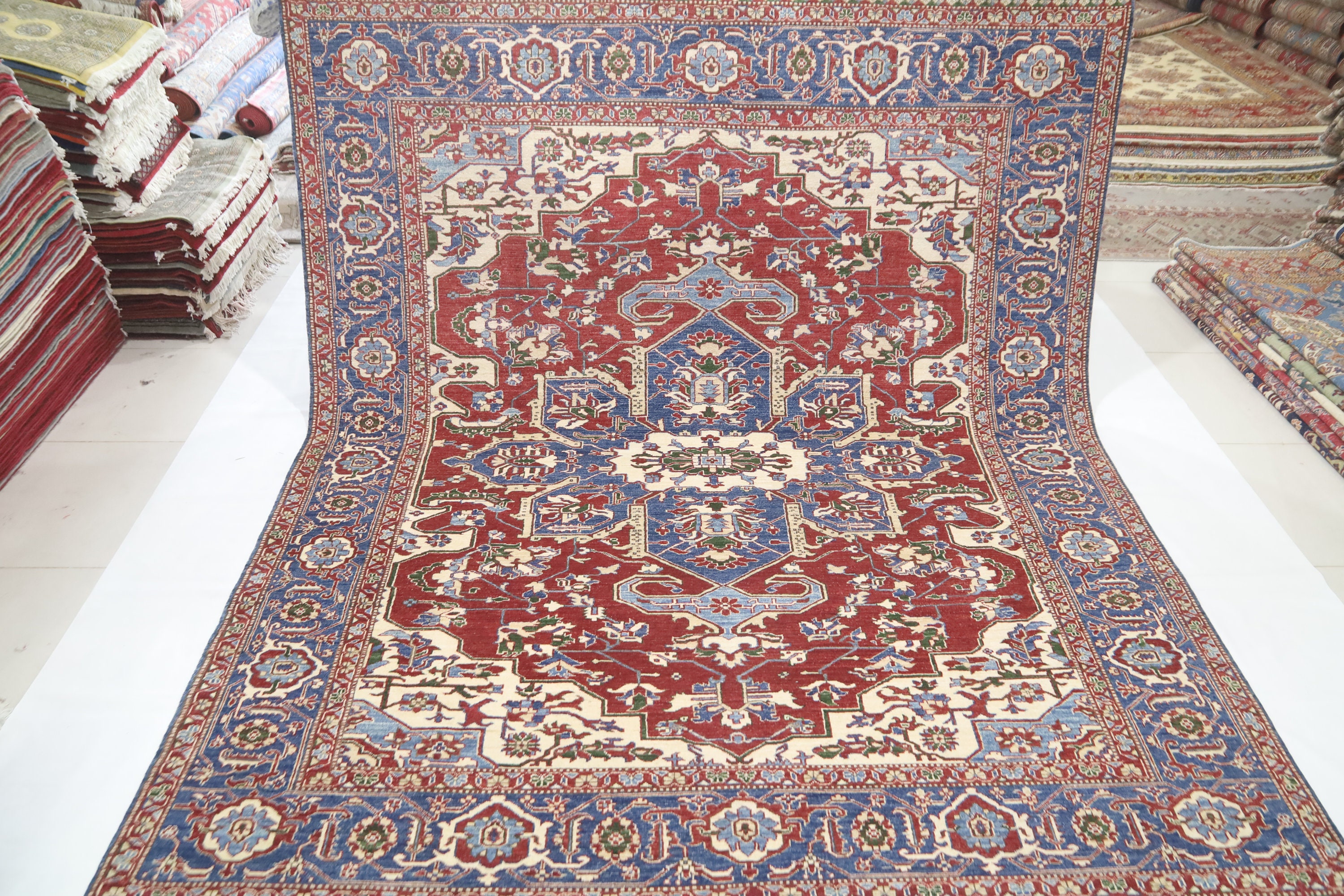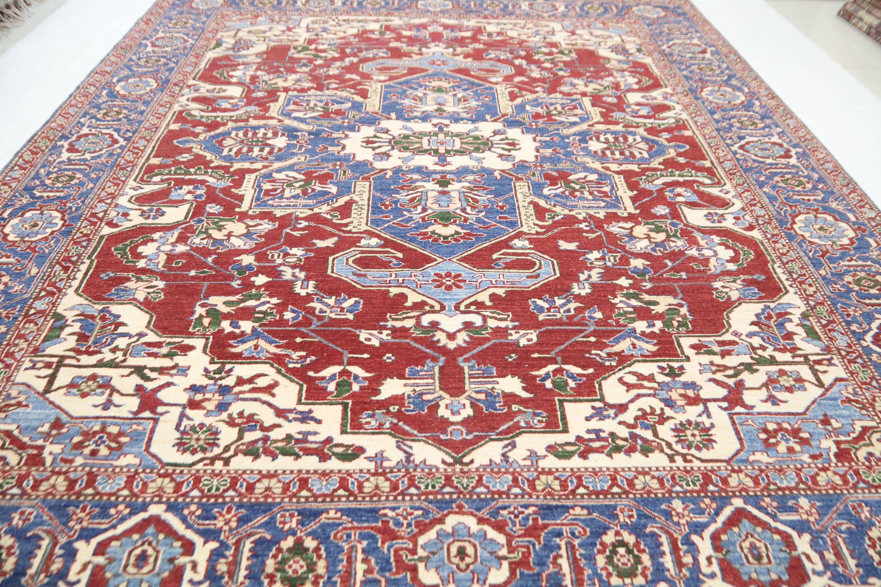 8x10 Heriz Area Rug - Blue Red Persian Style Afghan Handmade Traditional Fine Quality Wool Rug - Dining Room Rug - Living Room Rug