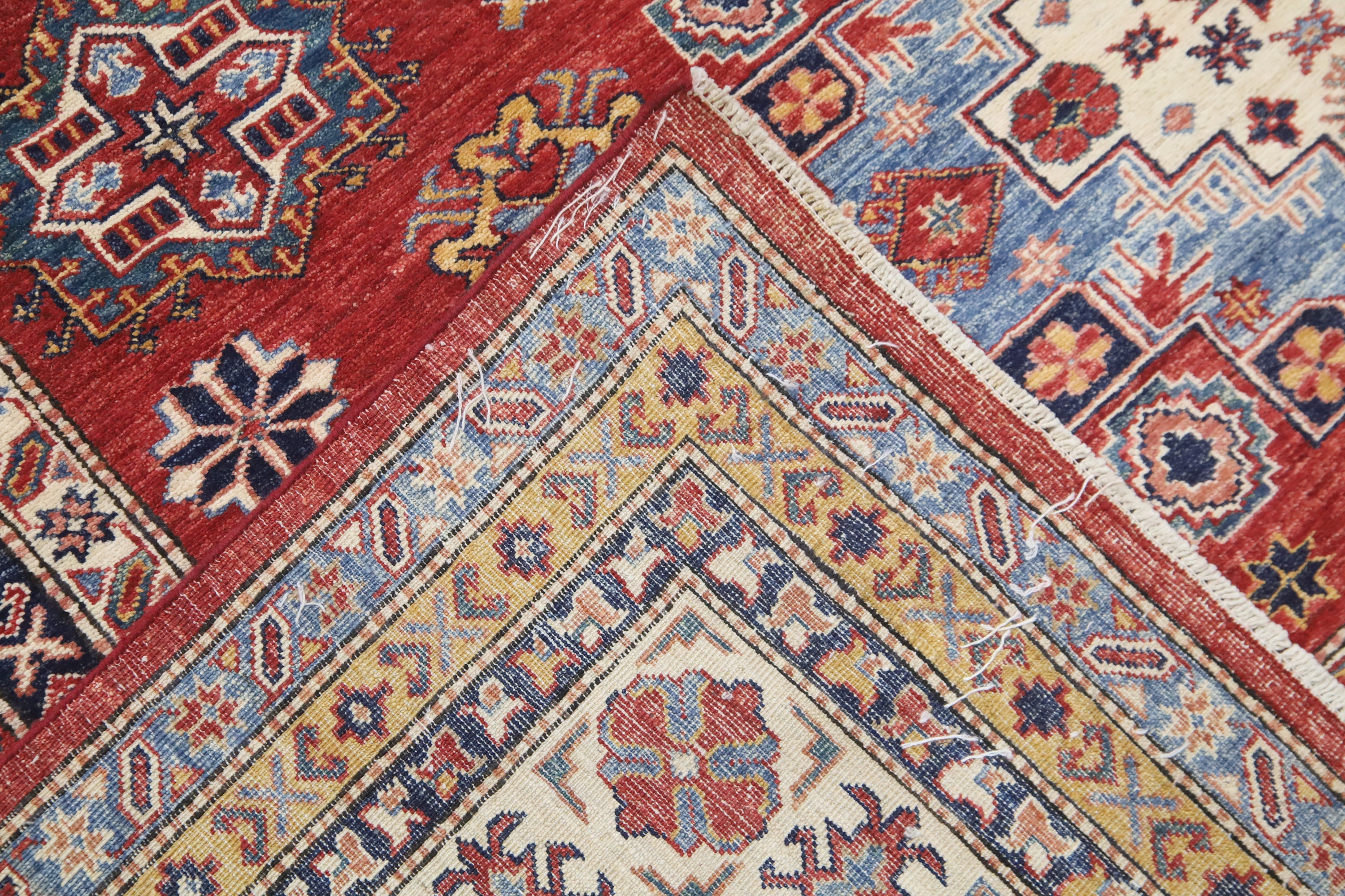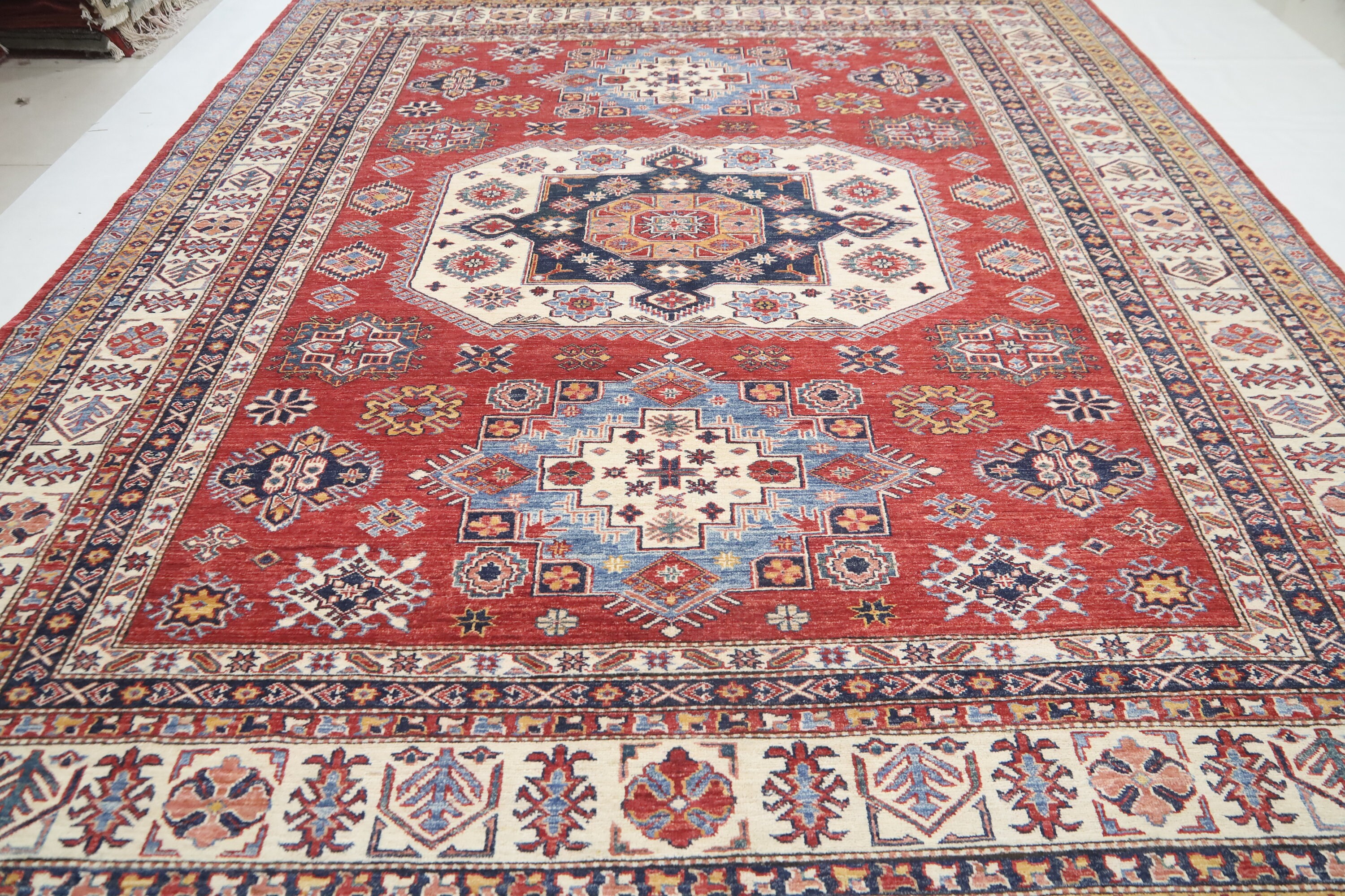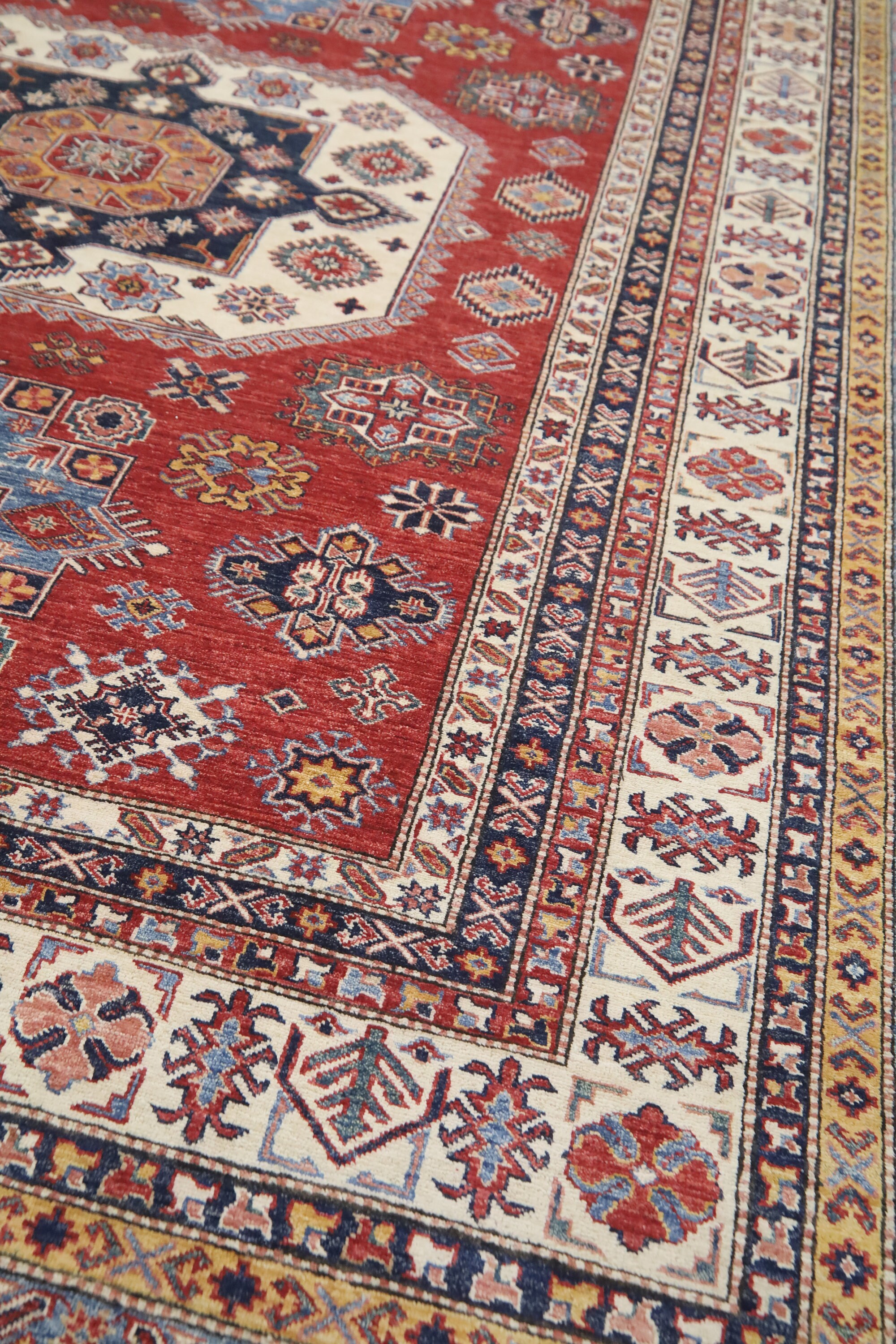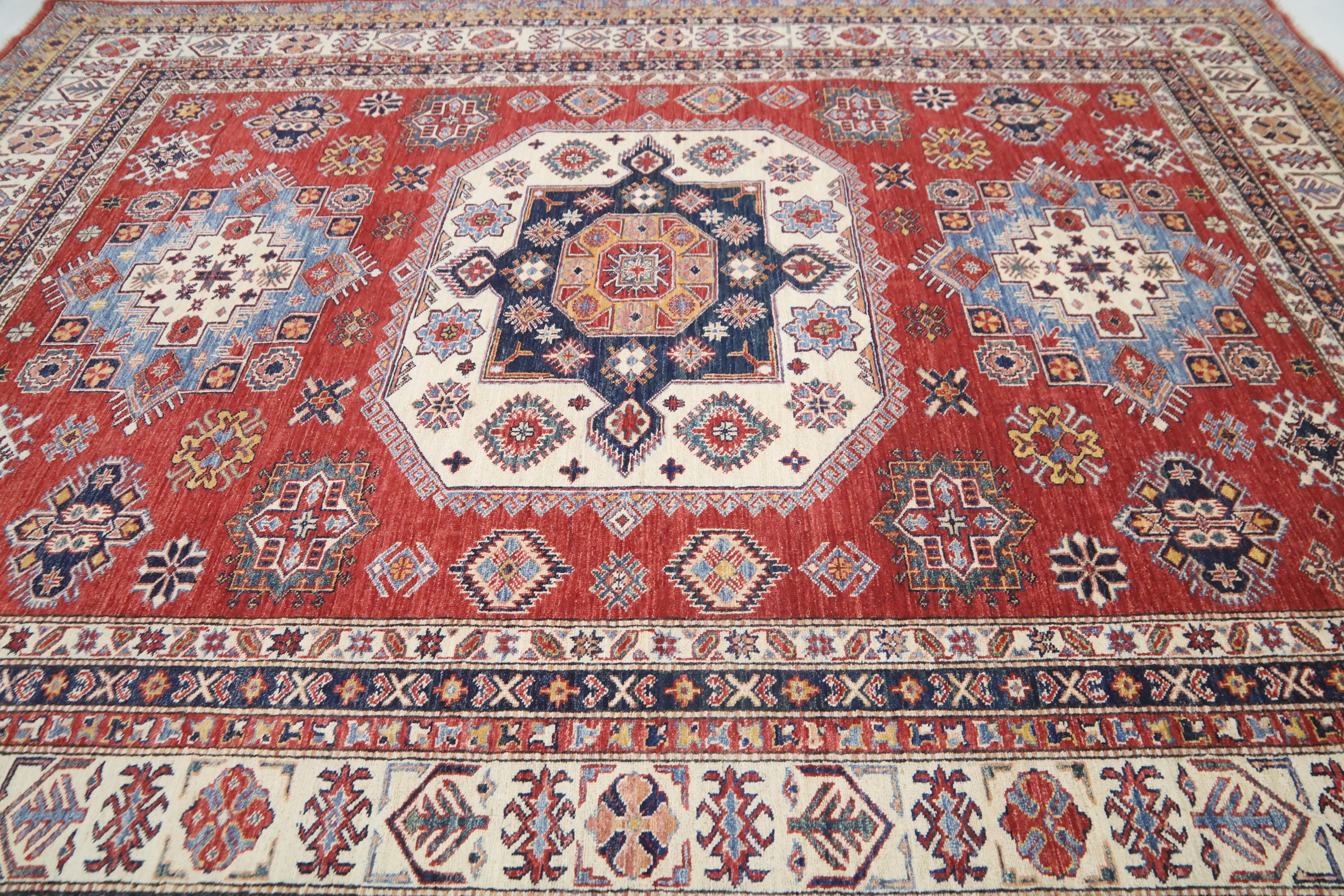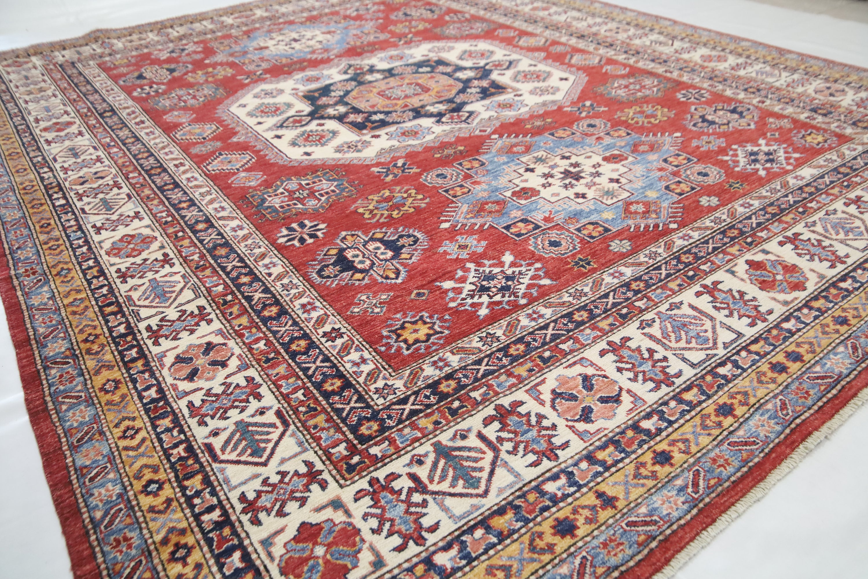 8x10 Kazak Fine Quality Area Rug - Red Afghan Handmade Geometric Organic Dye Wool Rug - Dining Room Rug - Living Room Rug - Bedroom Rug
