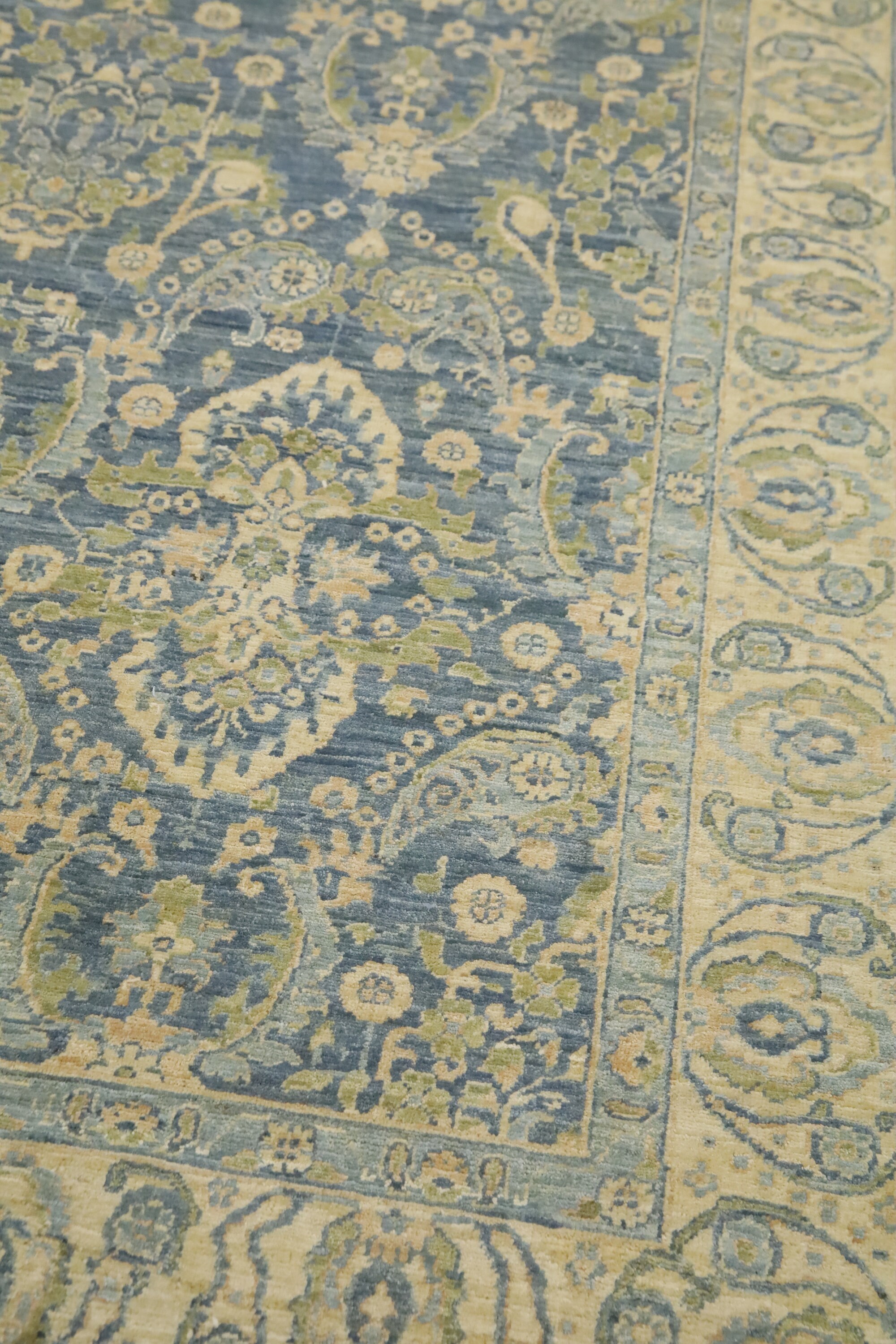 This hand-knotted pile rug is crafted using 100% natural dyes and handspun wool, giving it a rich texture and vibrant colors.