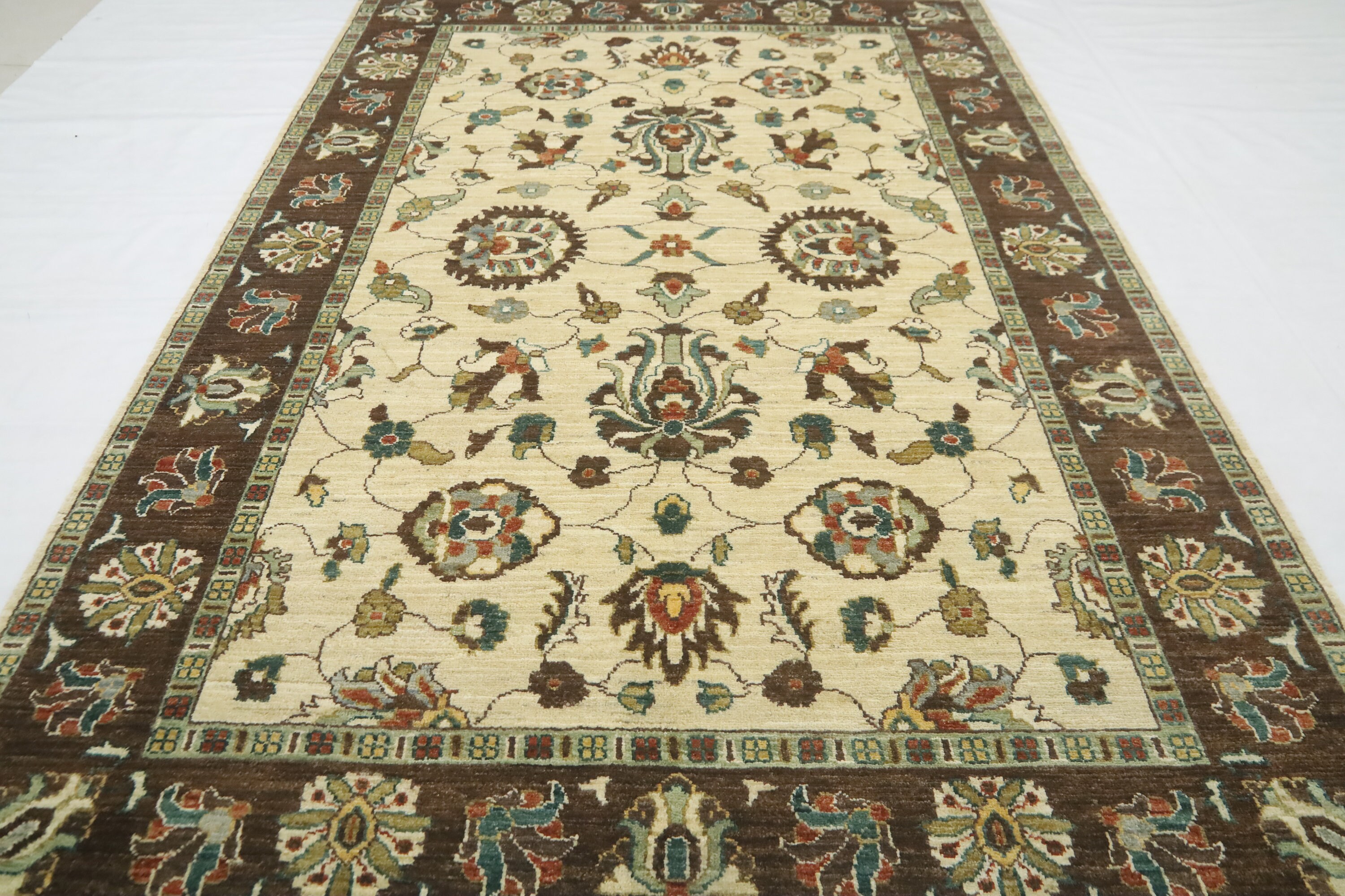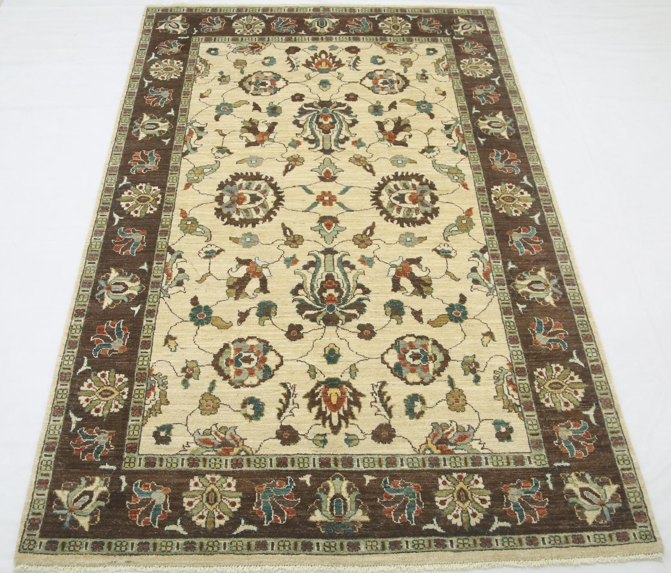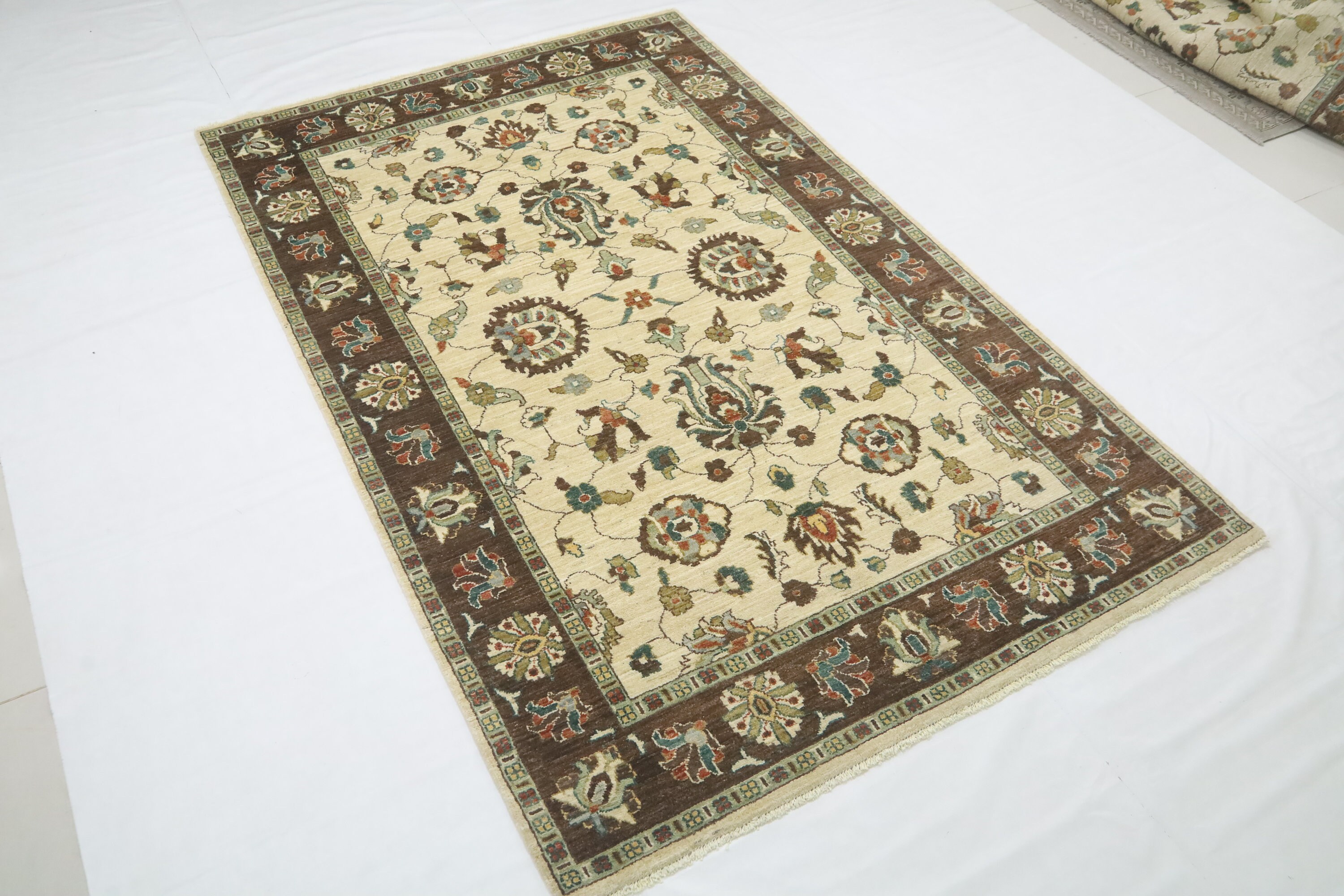 5x8 Feet Chobi Area Rug - Beige Brown Afghan Hand Made Floral Veg Dye Wool Rug - Traditional Rug - Foyer Rug - Bedroom Rug - Living Room Rug