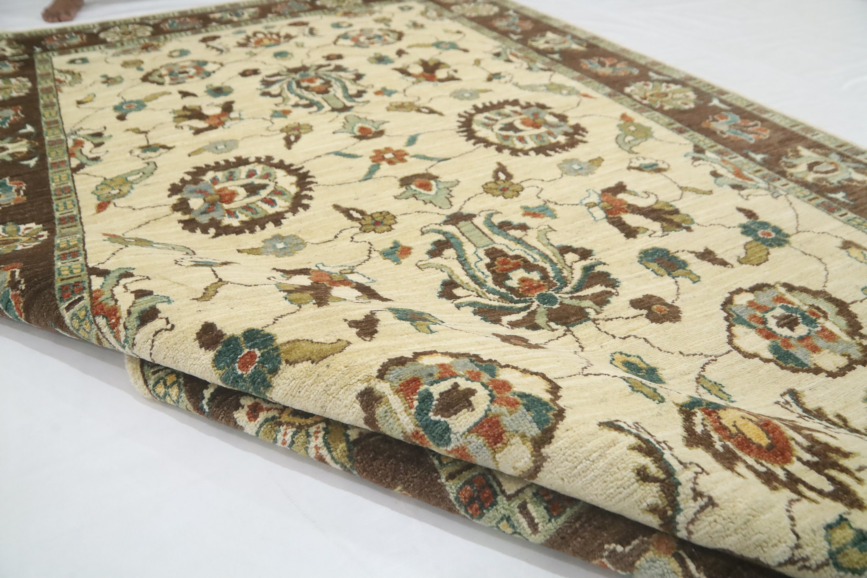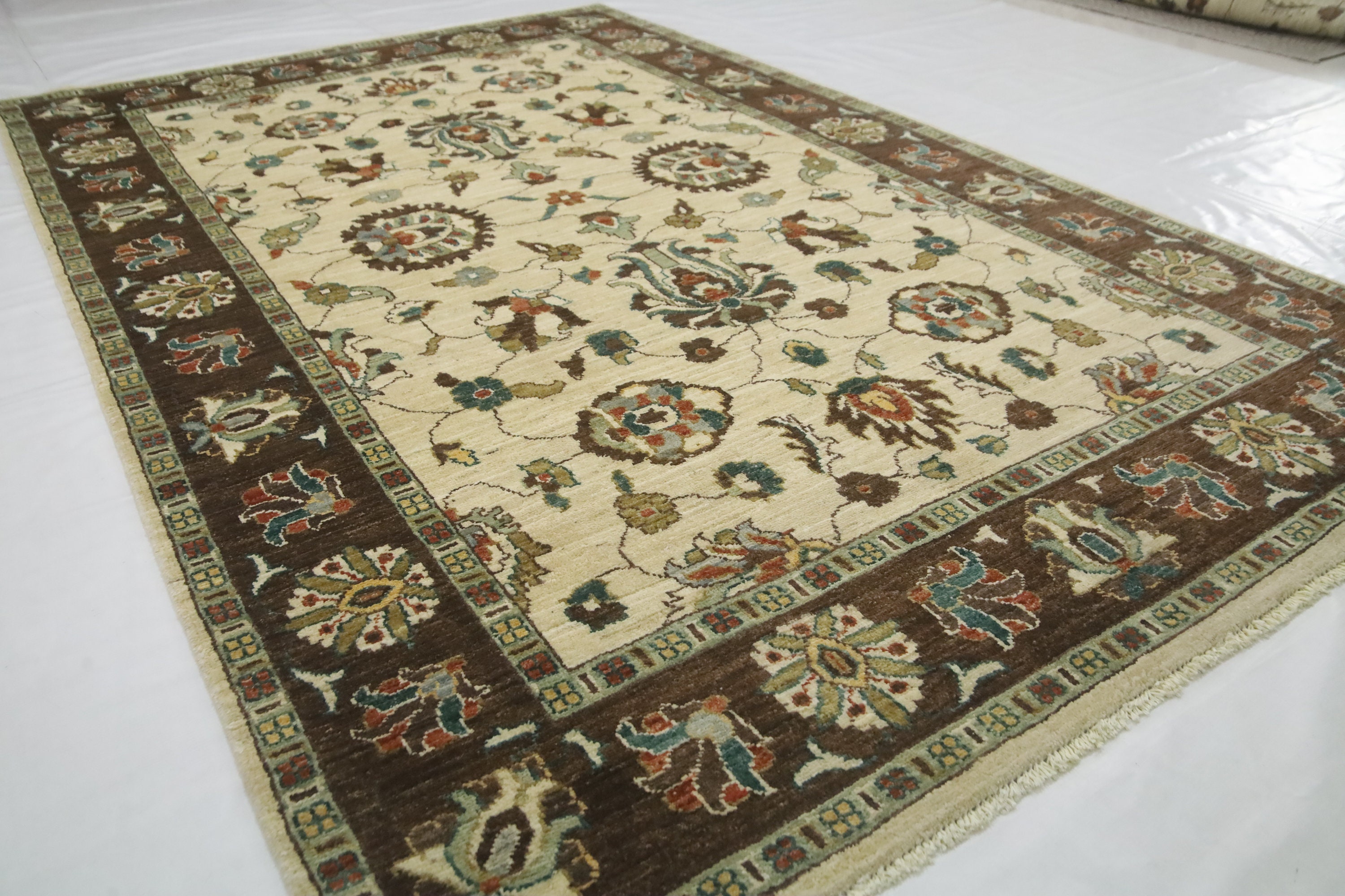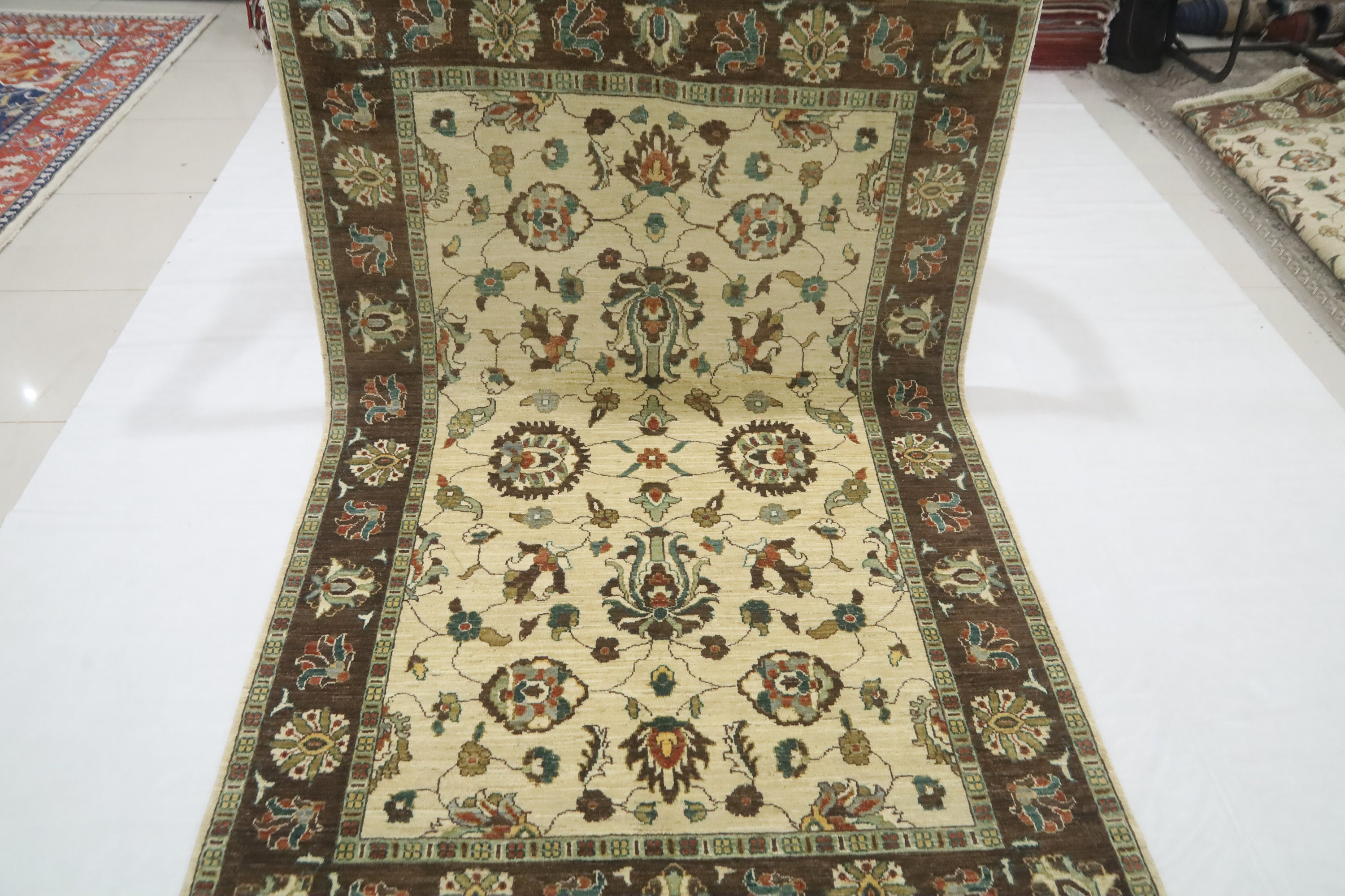 5x8 Feet Chobi Area Rug - Beige Brown Afghan Hand Made Floral Veg Dye Wool Rug - Traditional Rug - Foyer Rug - Bedroom Rug - Living Room Rug