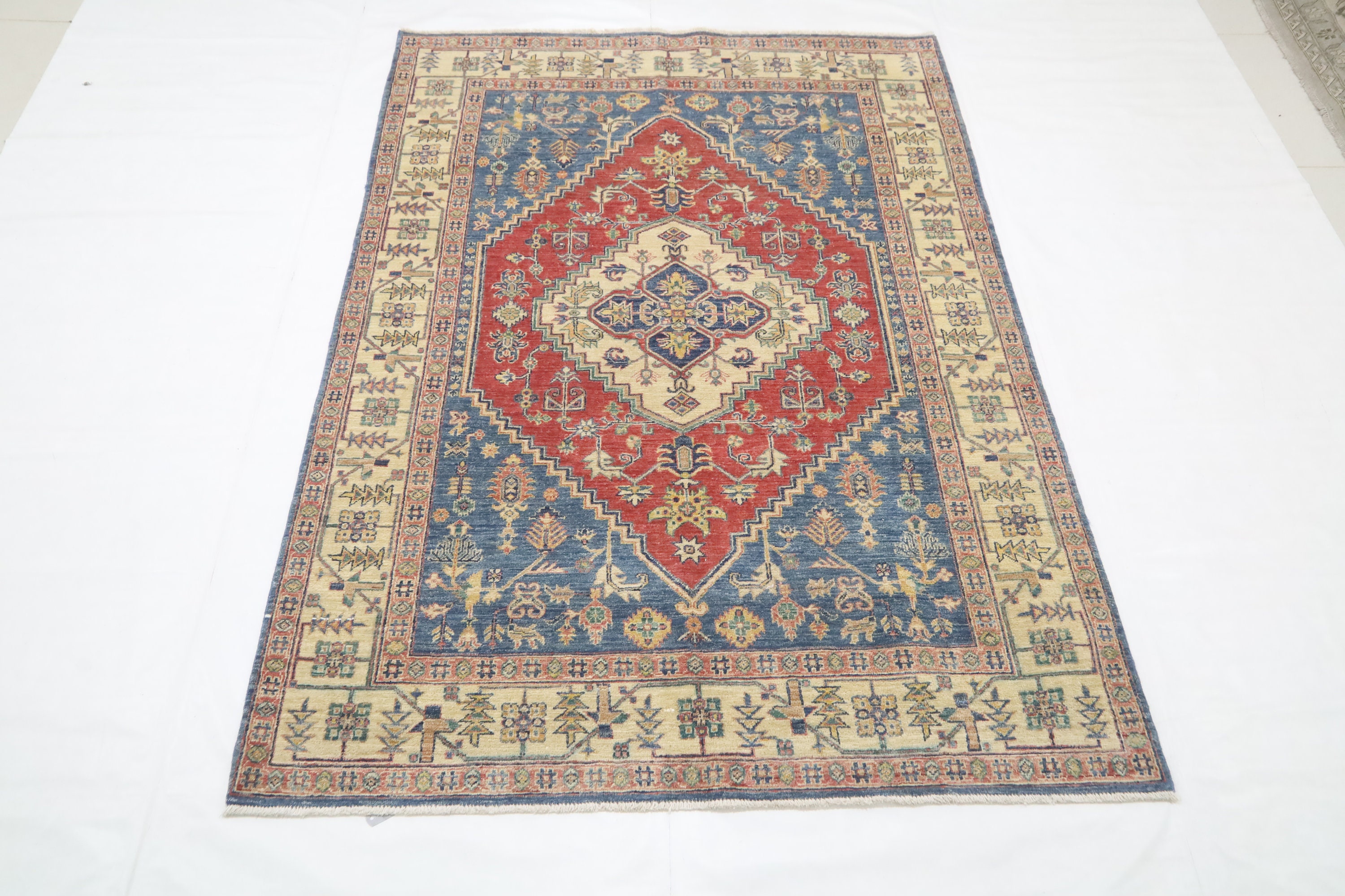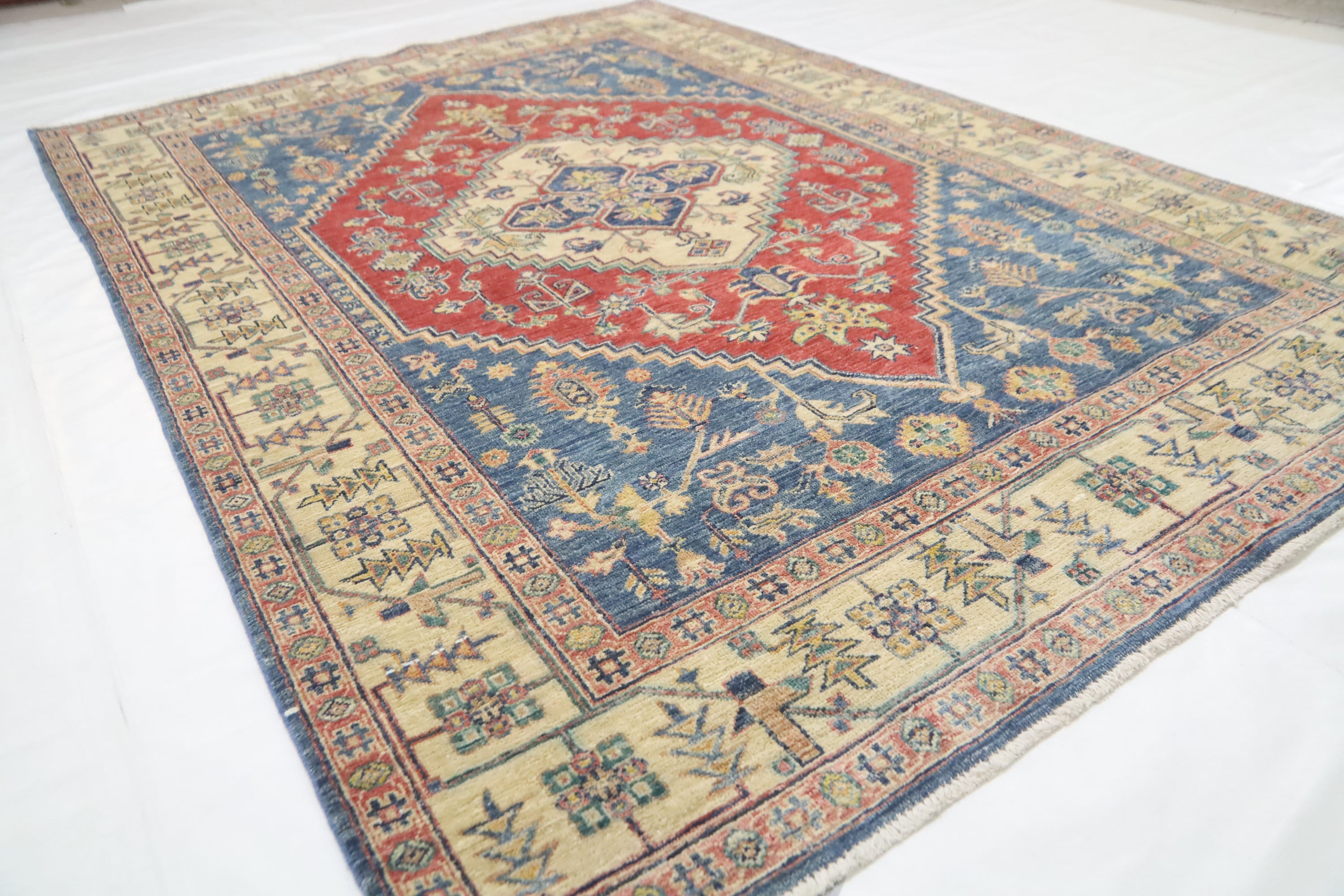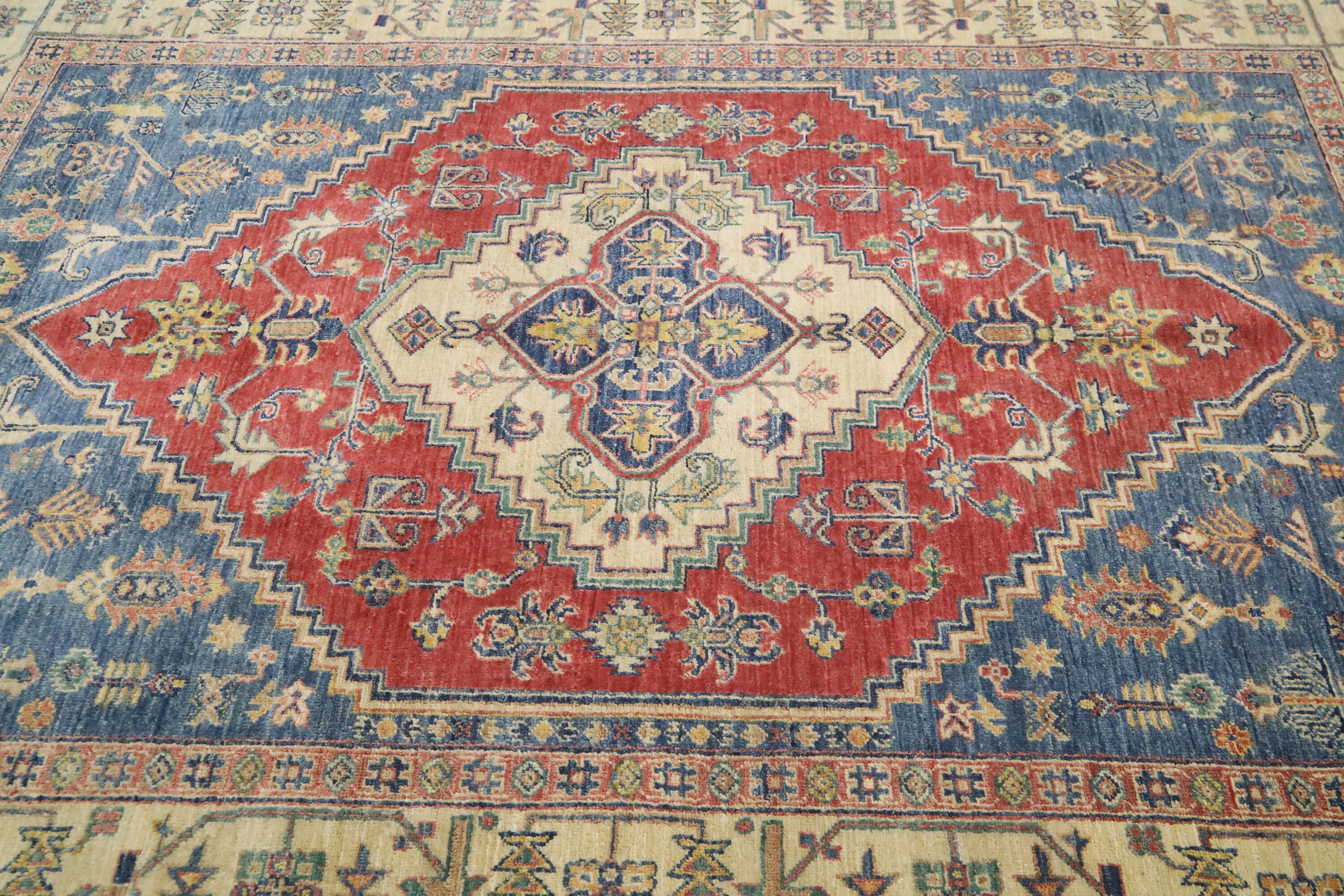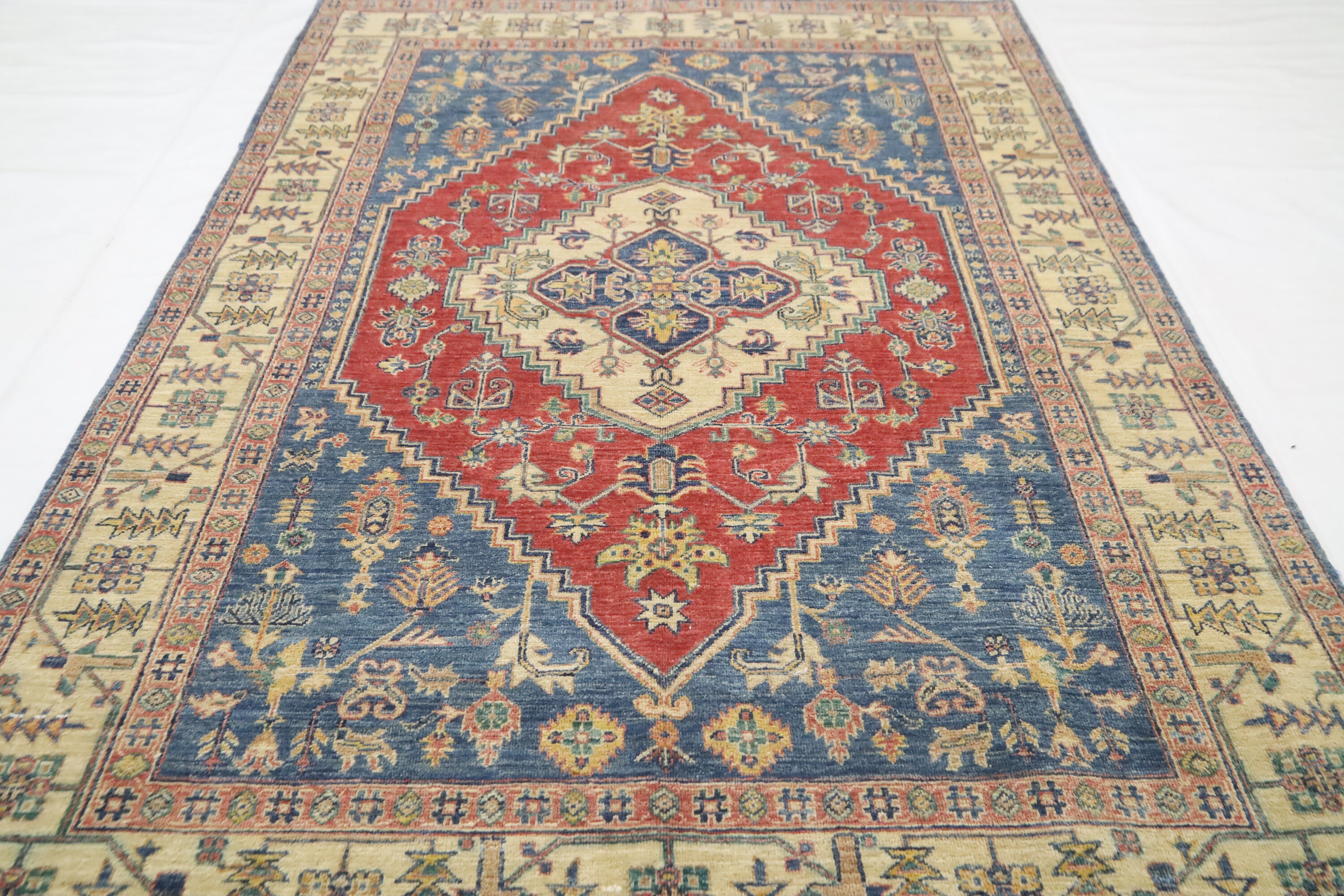 5x7 Heriz Persian Style Area Rug - Blue Red Afghan Hand Made Medallion Fine Quality Wool Rug - Kitchen Rug - Office Rug - Foyer Rug
