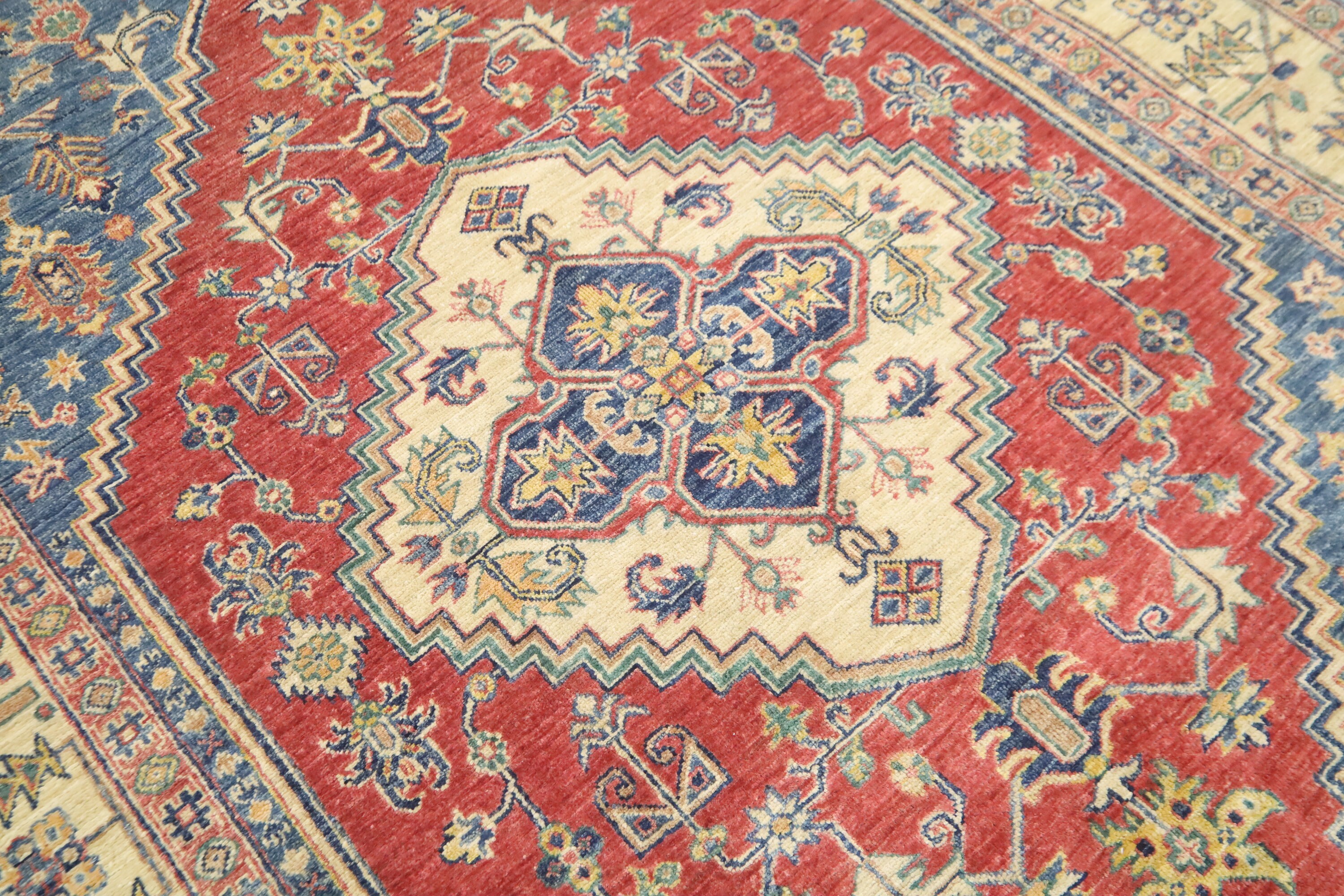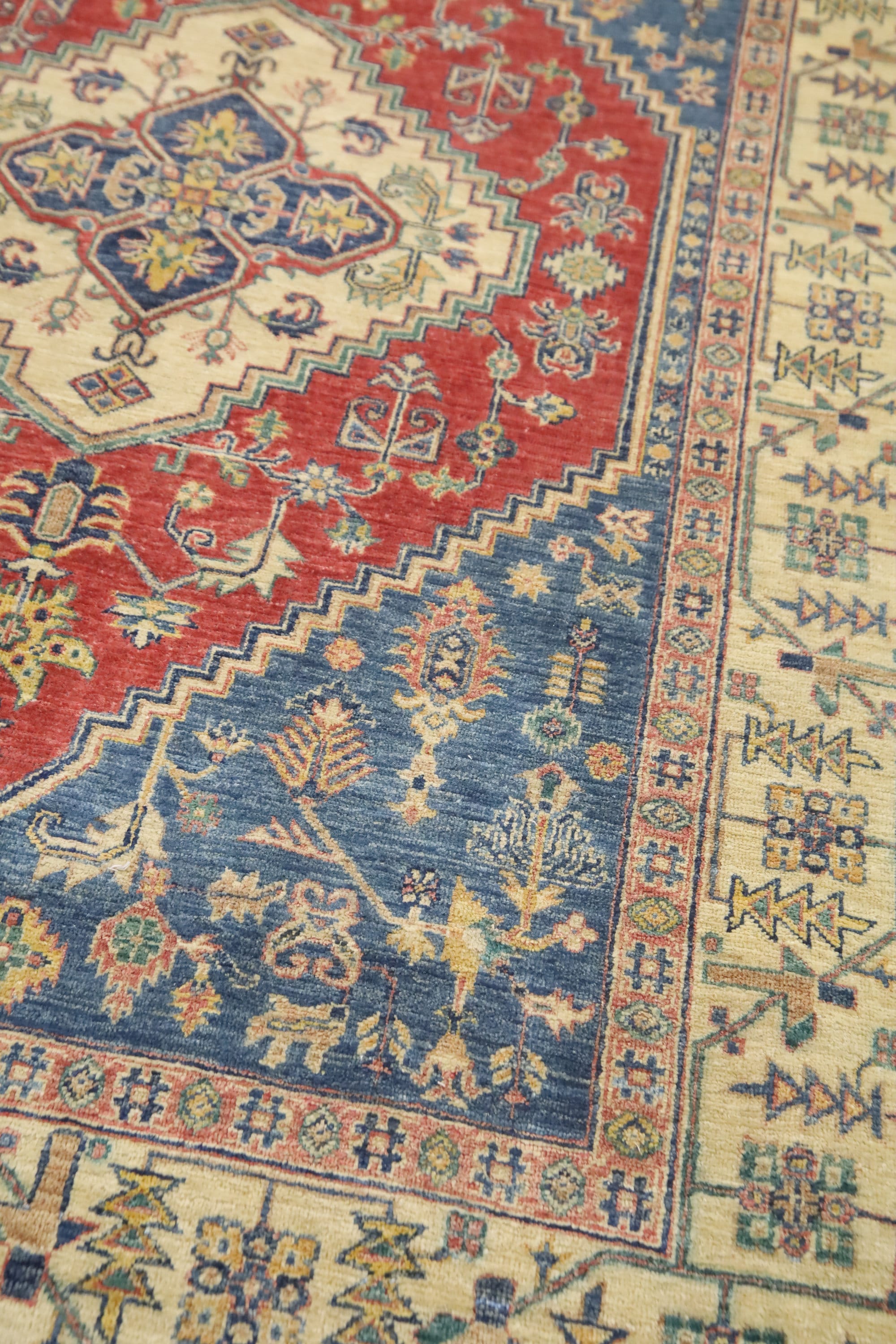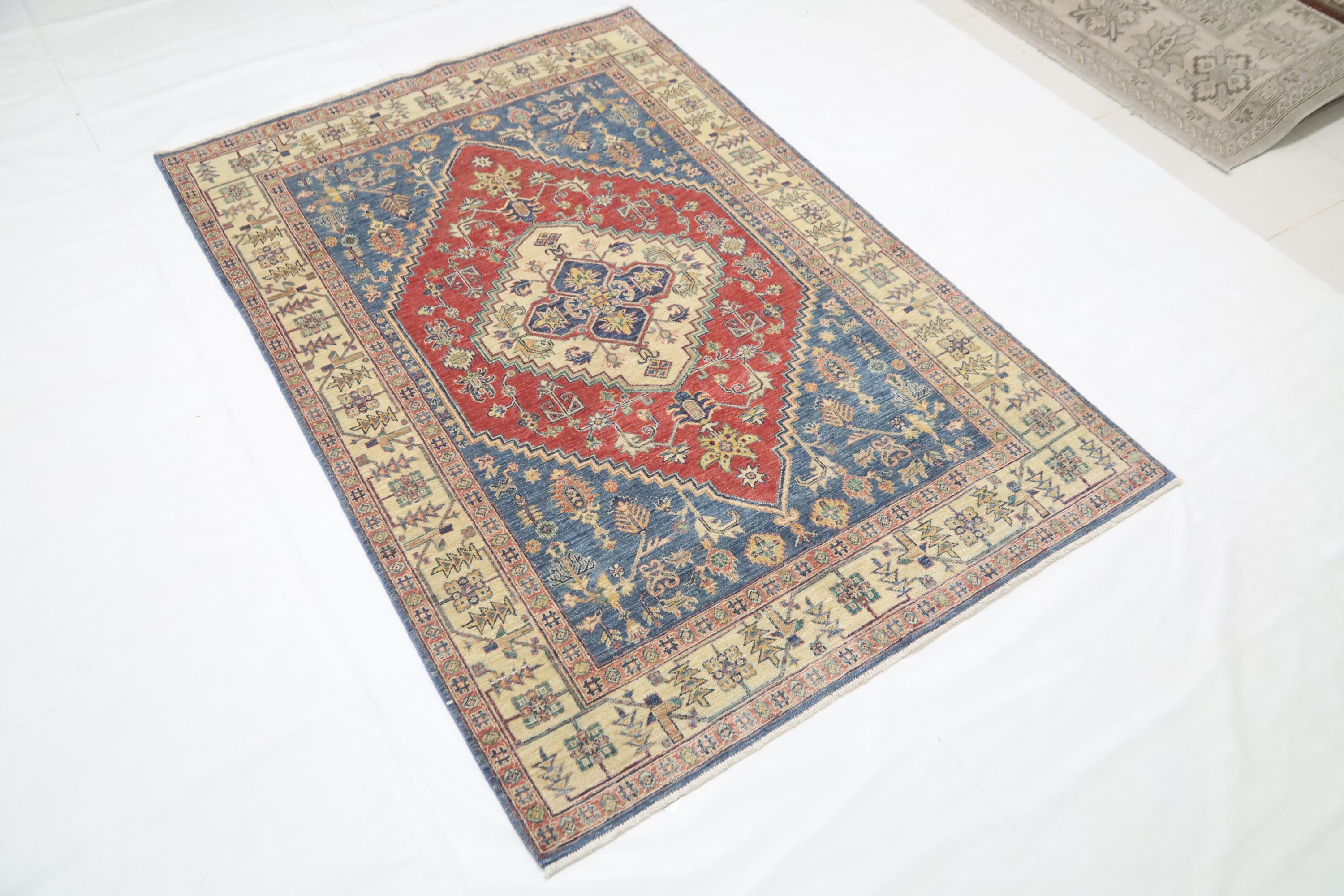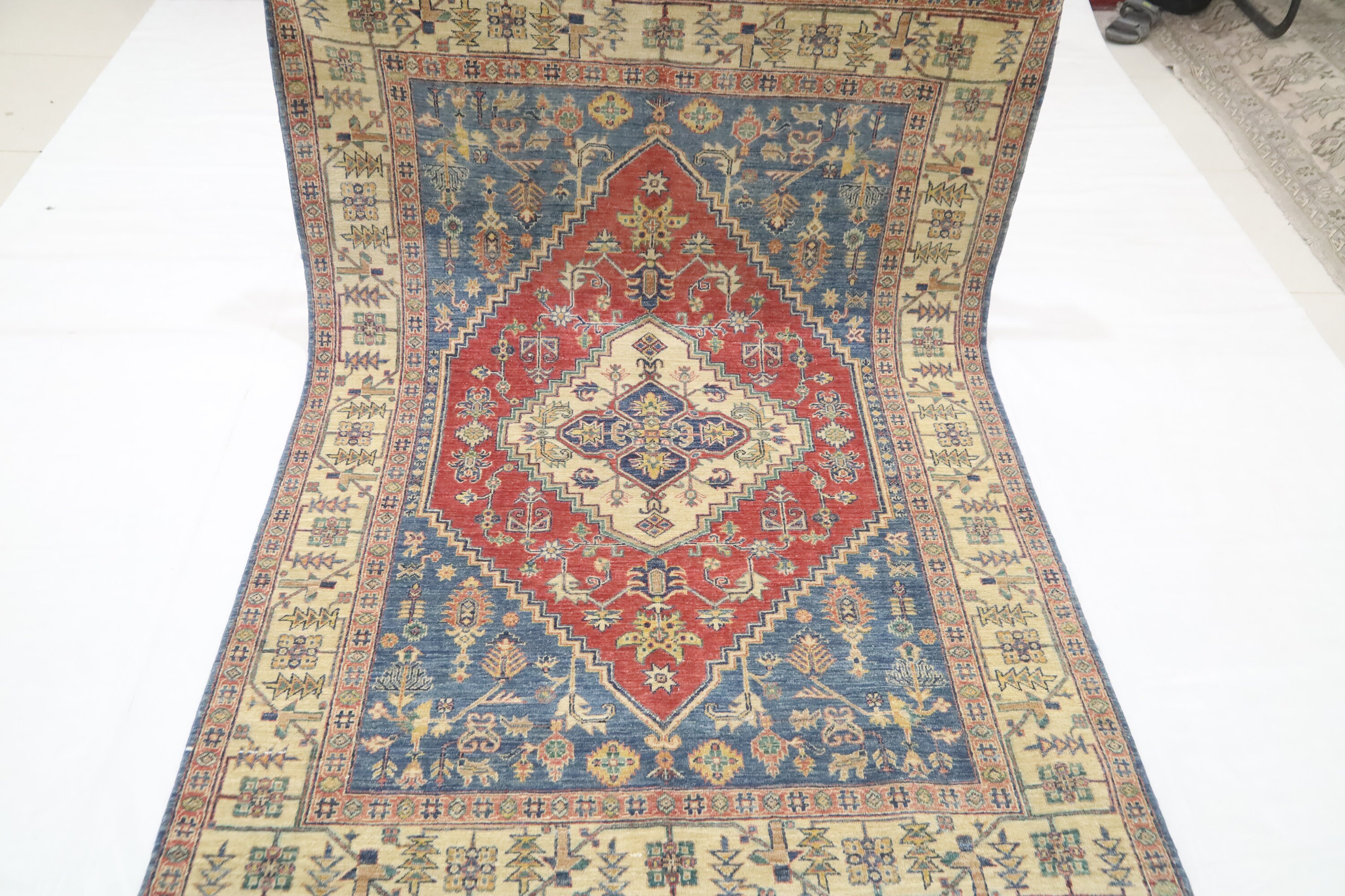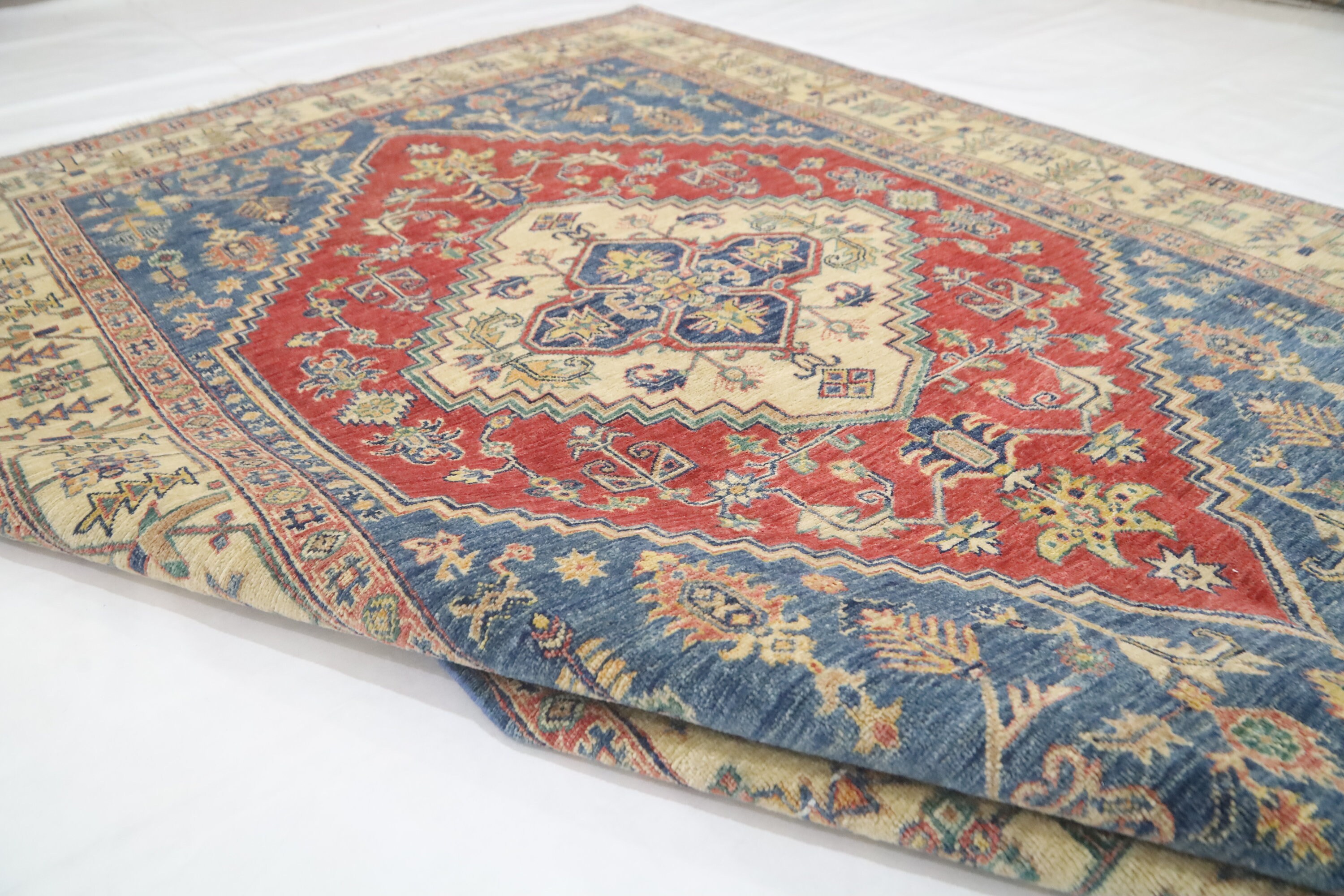 5x7 Heriz Persian Style Area Rug - Blue Red Afghan Hand Made Medallion Fine Quality Wool Rug - Kitchen Rug - Office Rug - Foyer Rug