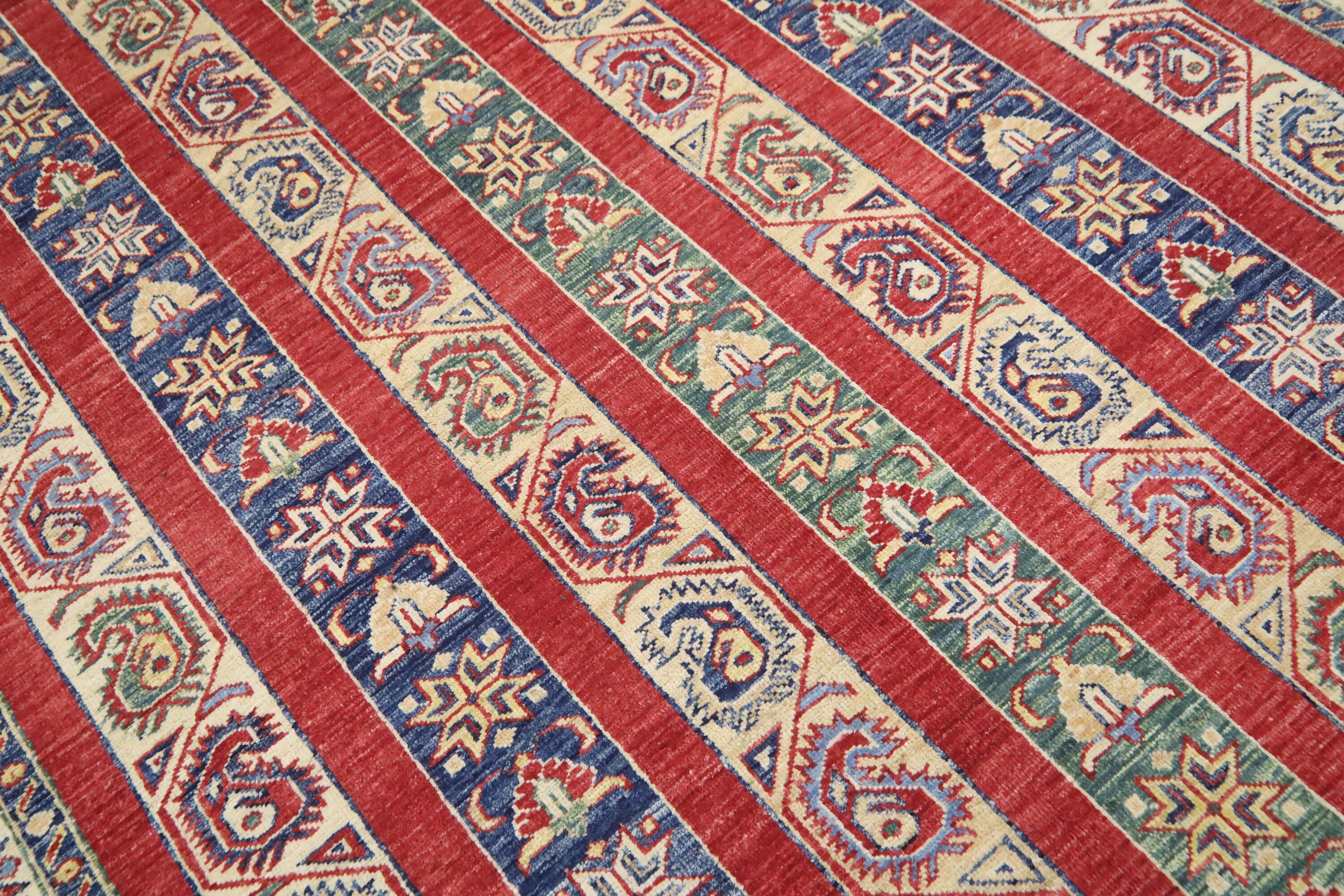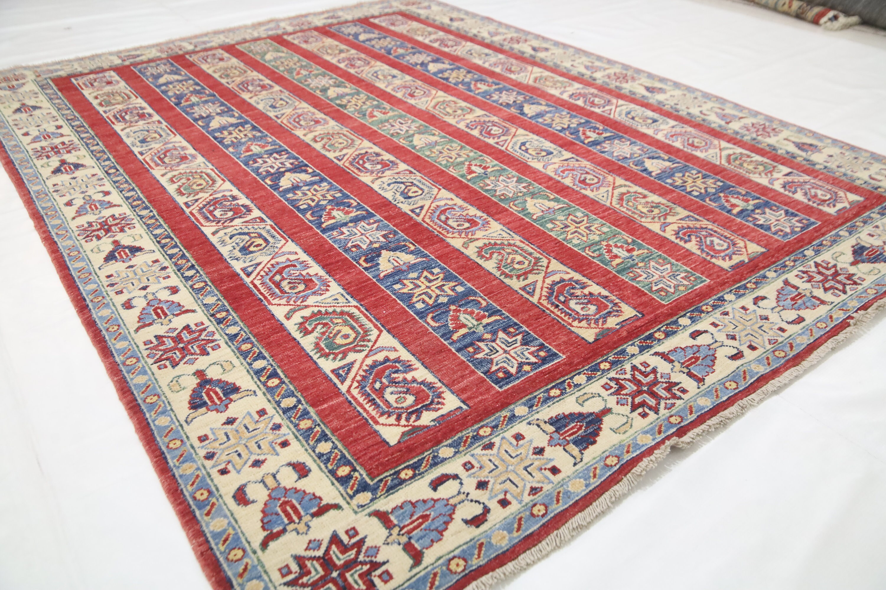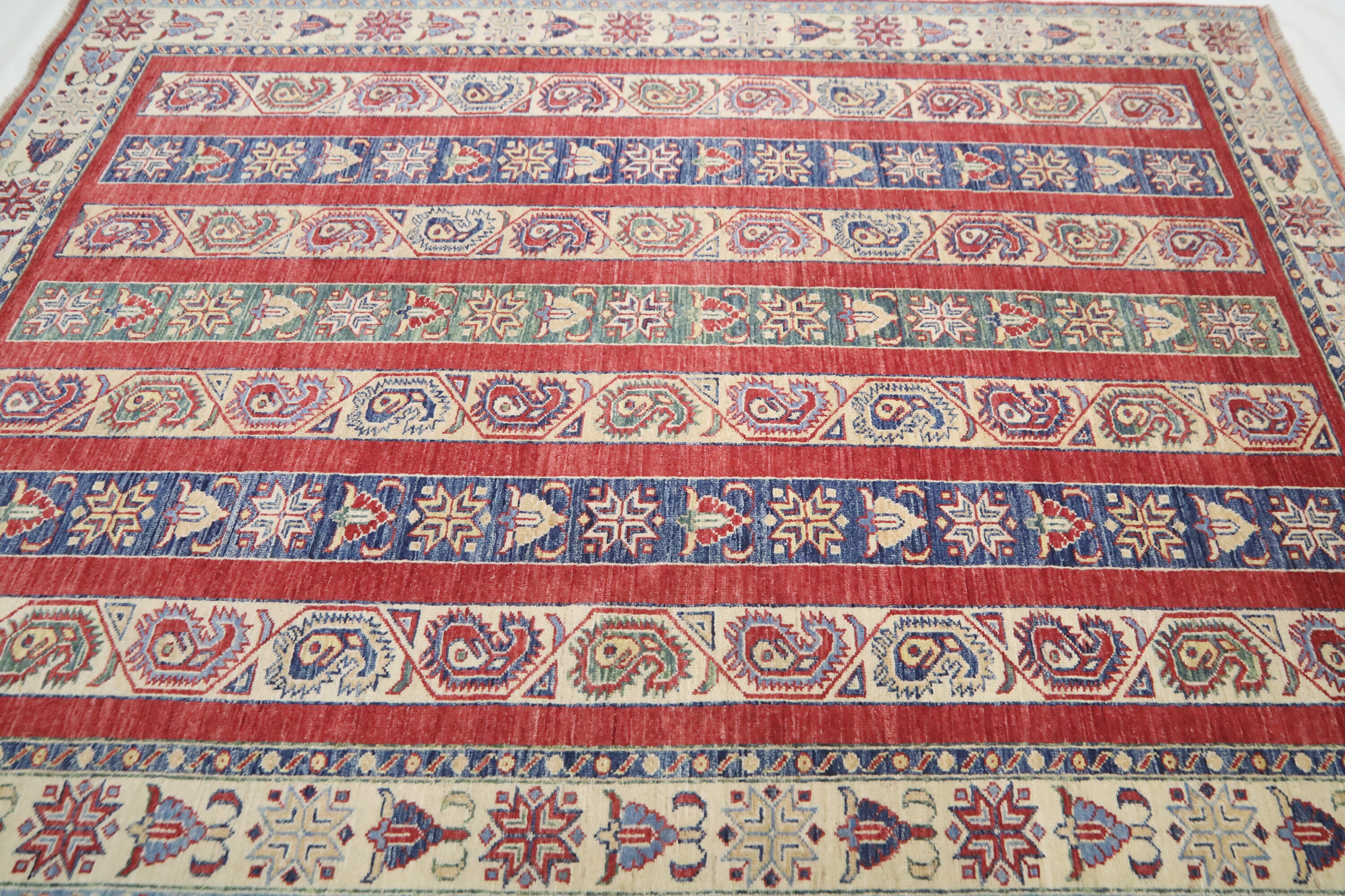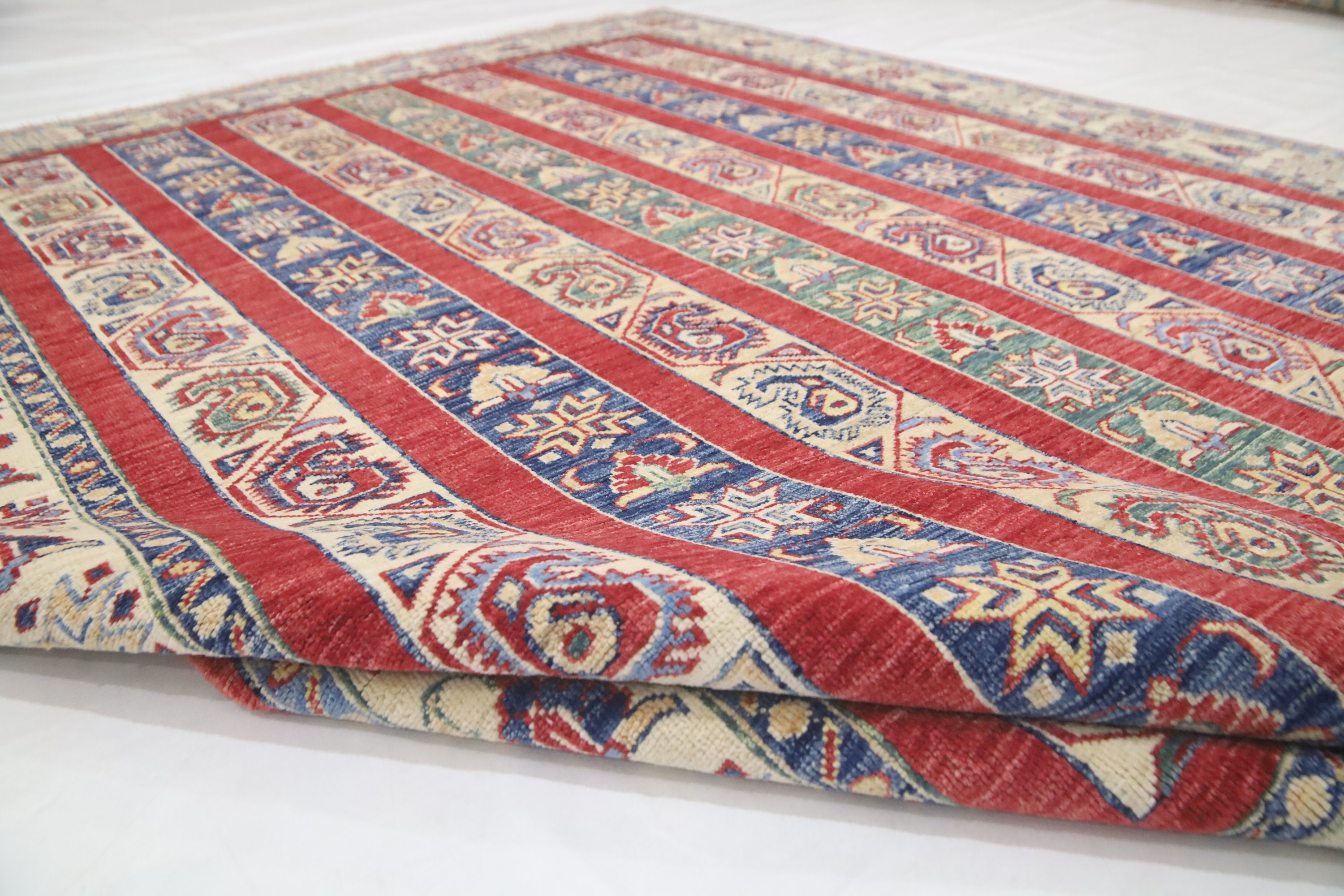 5x7 Red Shawl Pattern Area Rug - Turkish Hand Made Oriental Fine Quality Wool Rug - Striped Rug - 5x7 Kitchen Rug - Foyer Rug - Bedroom Rug