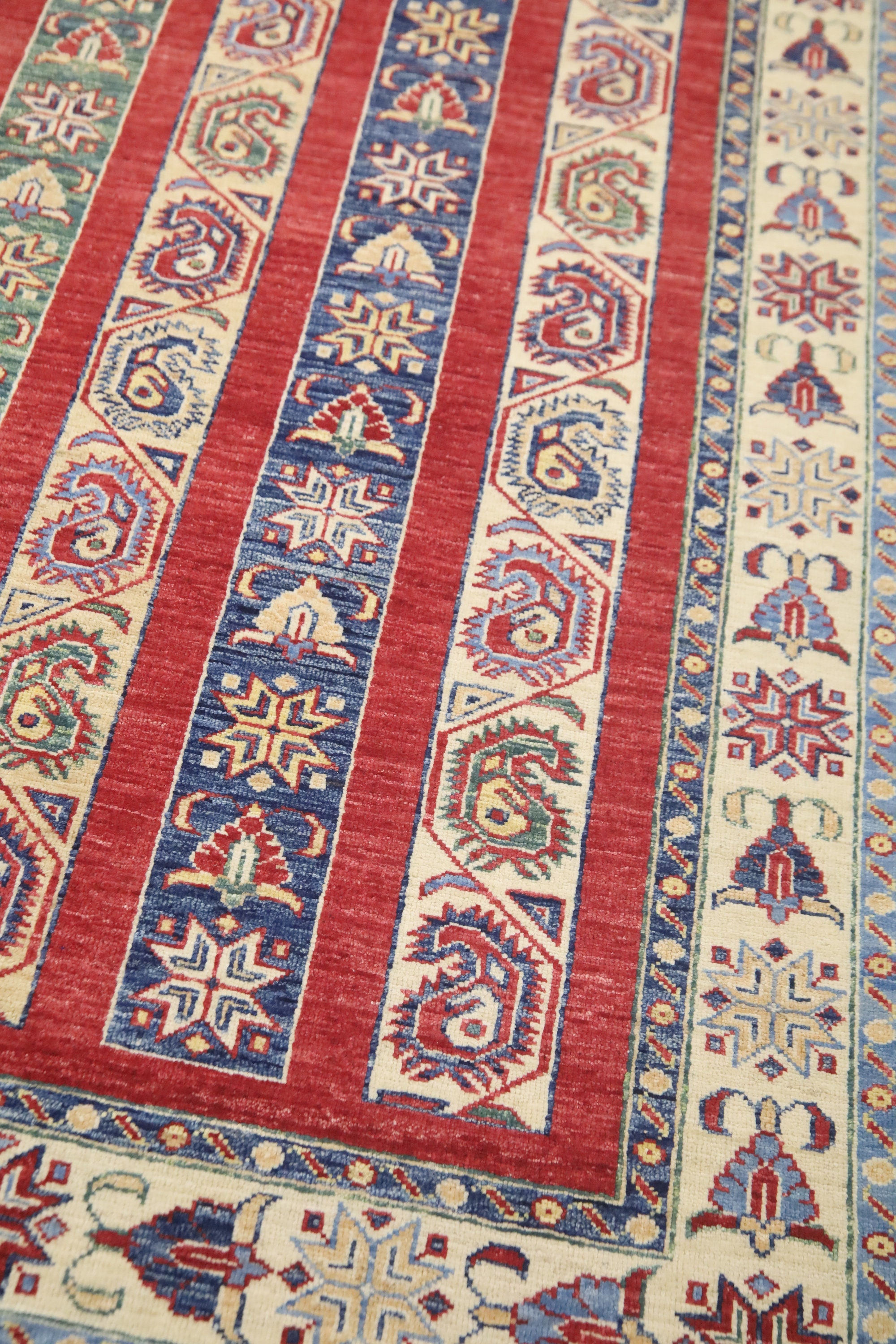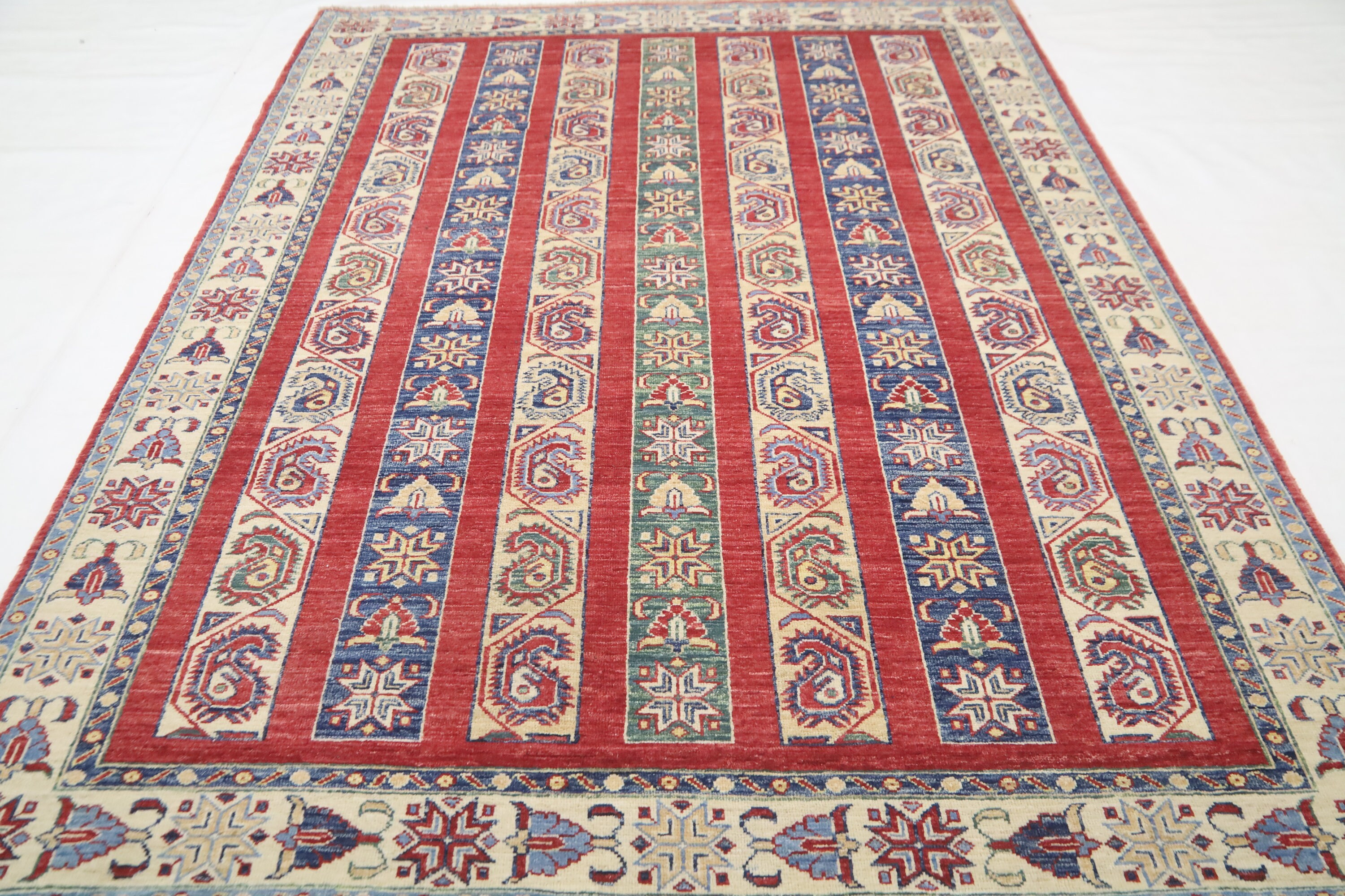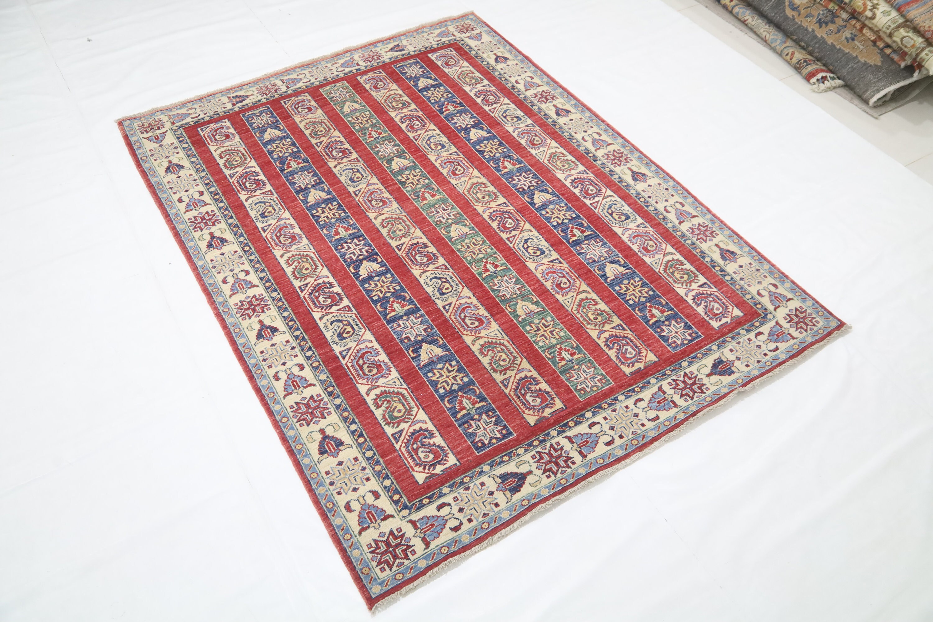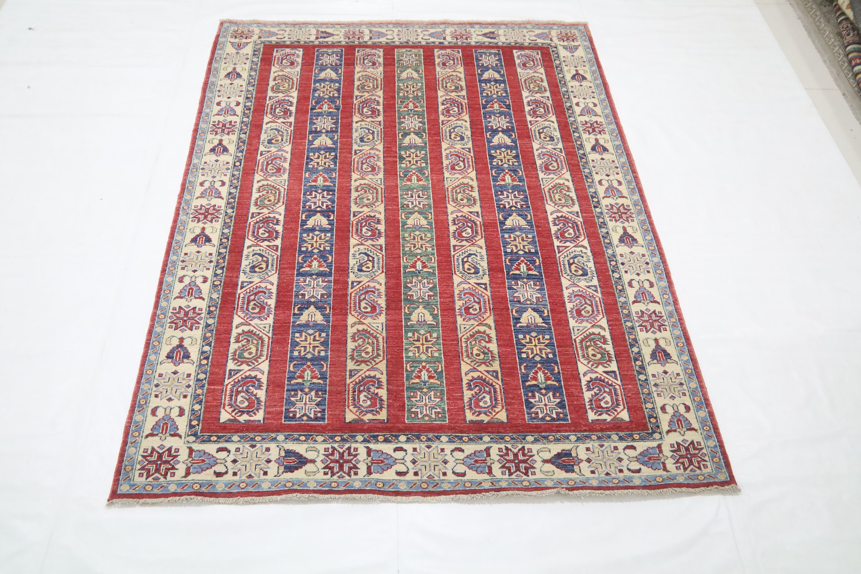 5x7 Red Shawl Pattern Area Rug - Turkish Hand Made Oriental Fine Quality Wool Rug - Striped Rug - 5x7 Kitchen Rug - Foyer Rug - Bedroom Rug