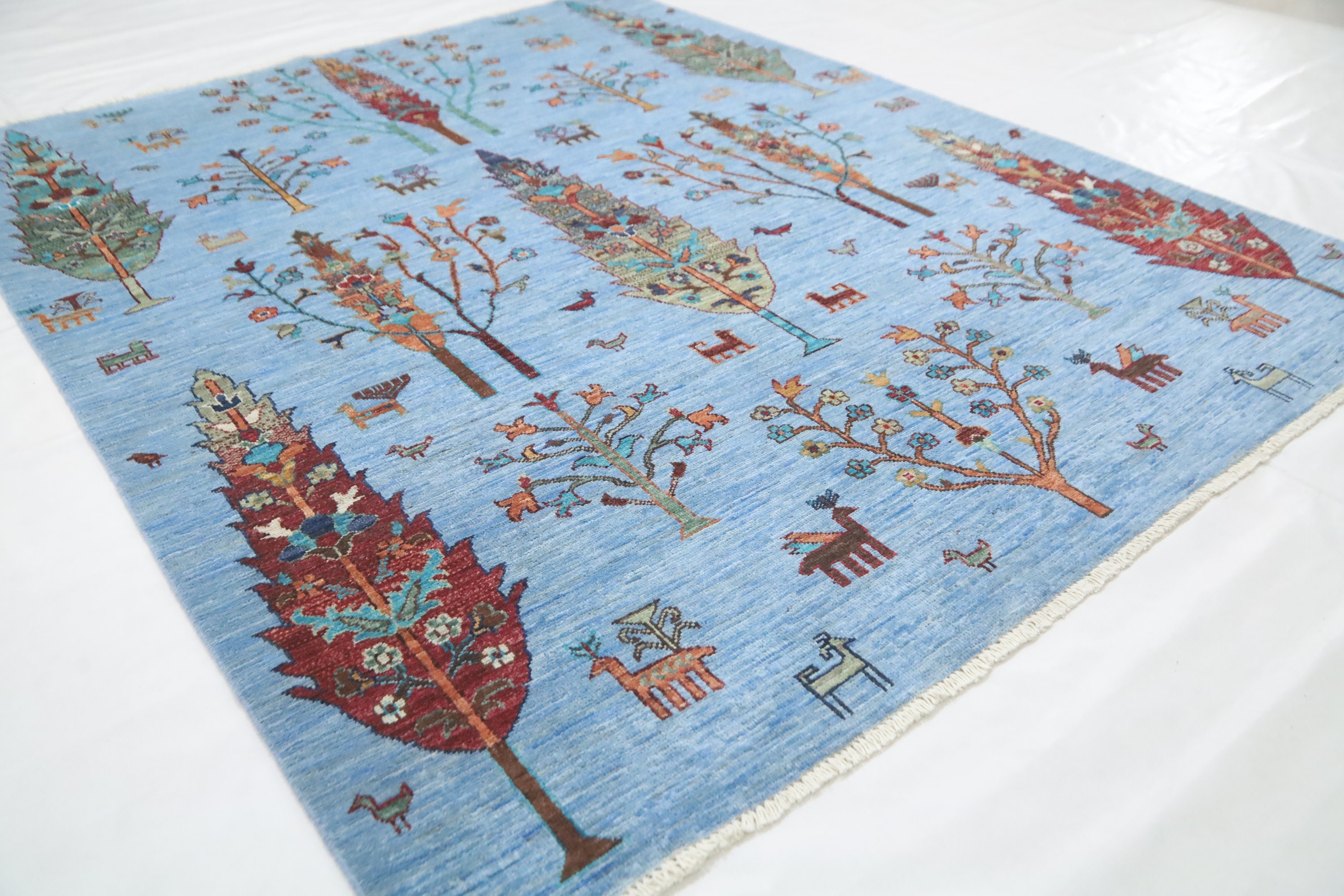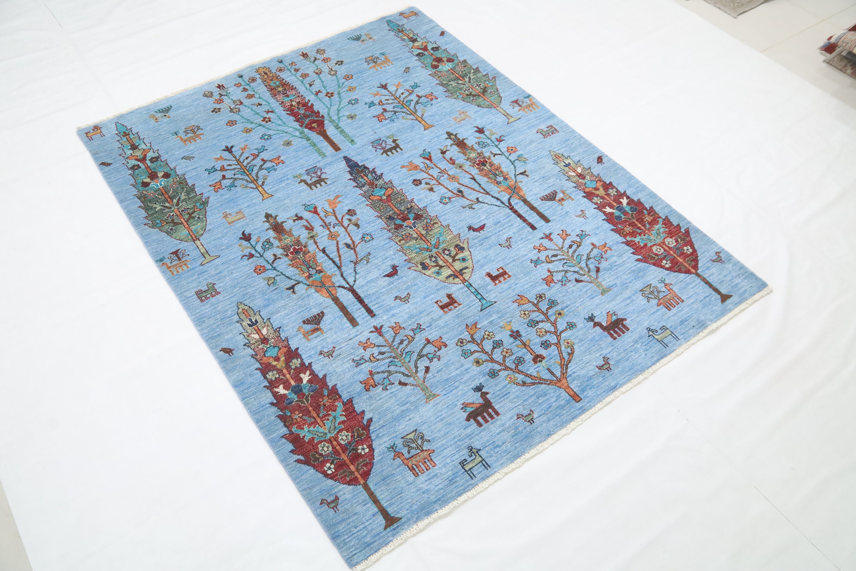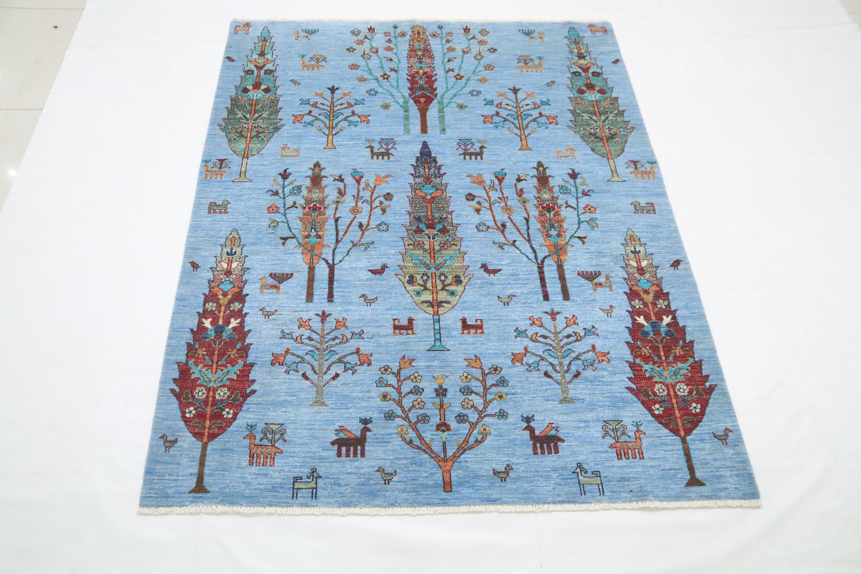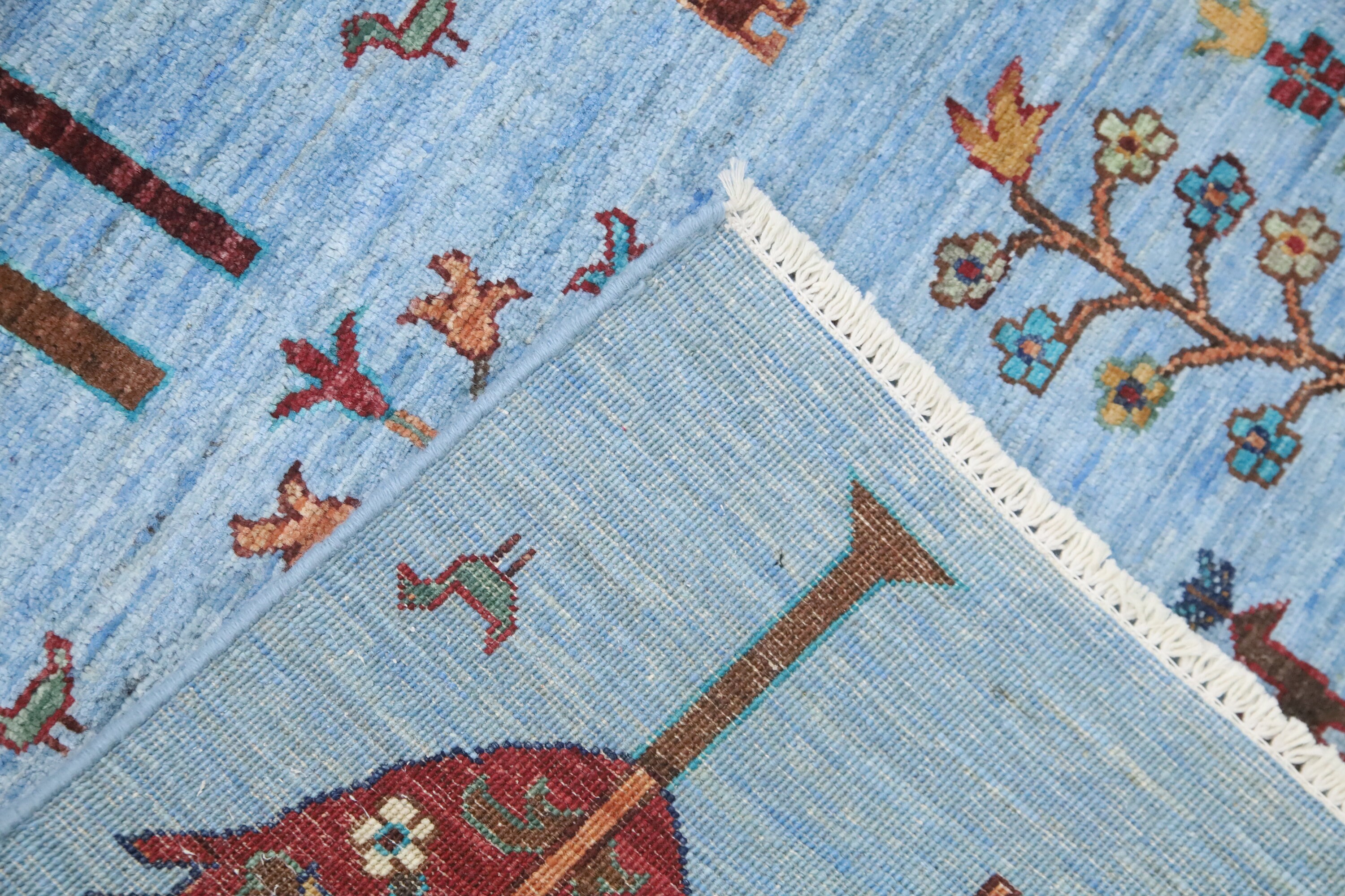 5x6'4 Tree Of Life Area Rug - Light Blue Afghan Hand Made Tribal Fine Quality Wool Rug - Kitchen Rug - Foyer Rug - Kids Room Rug - Dorm Rug