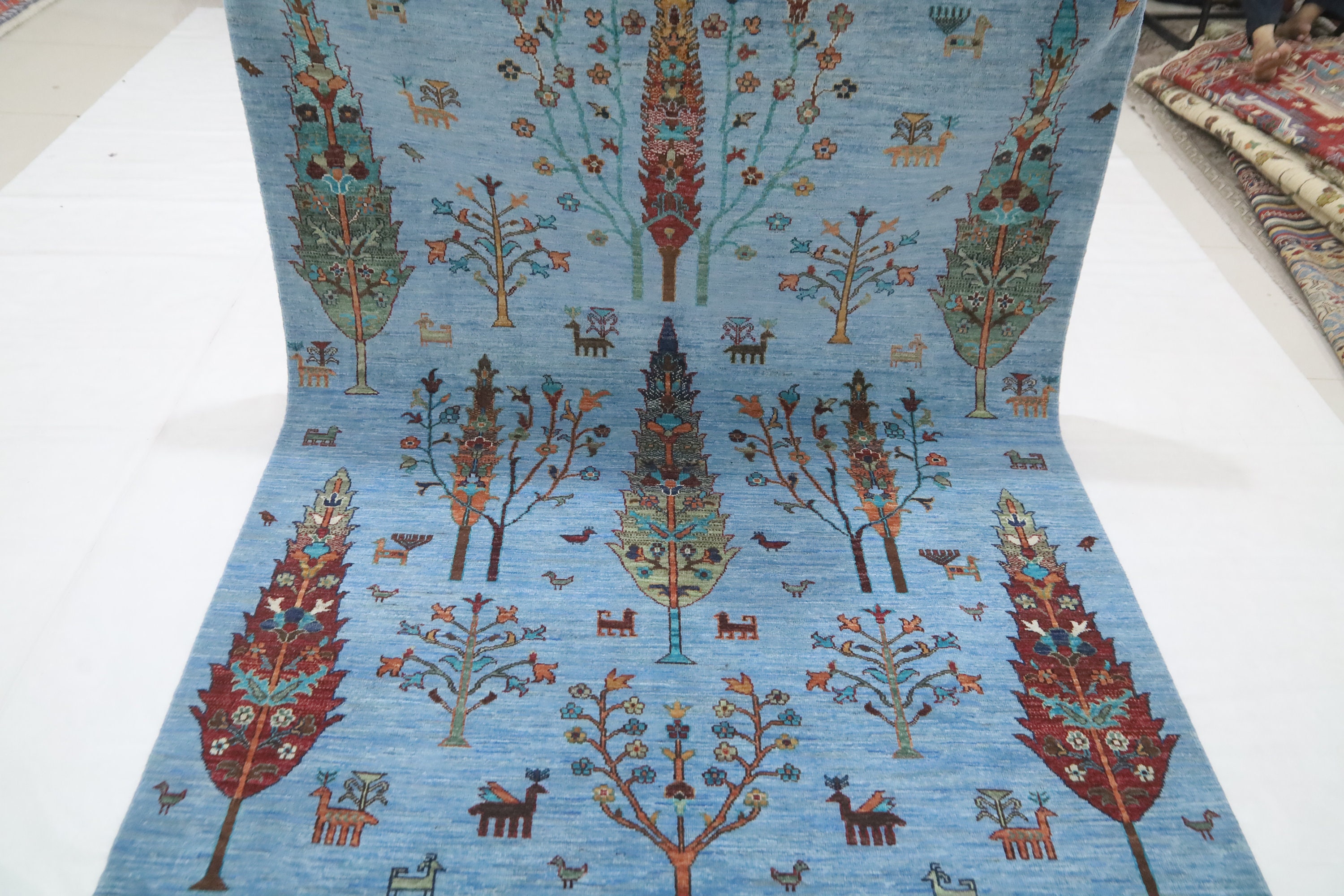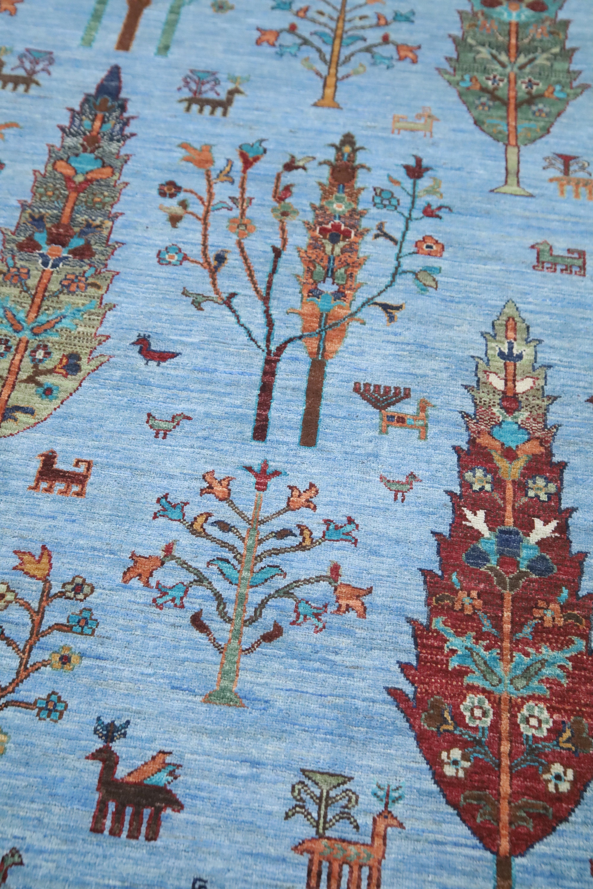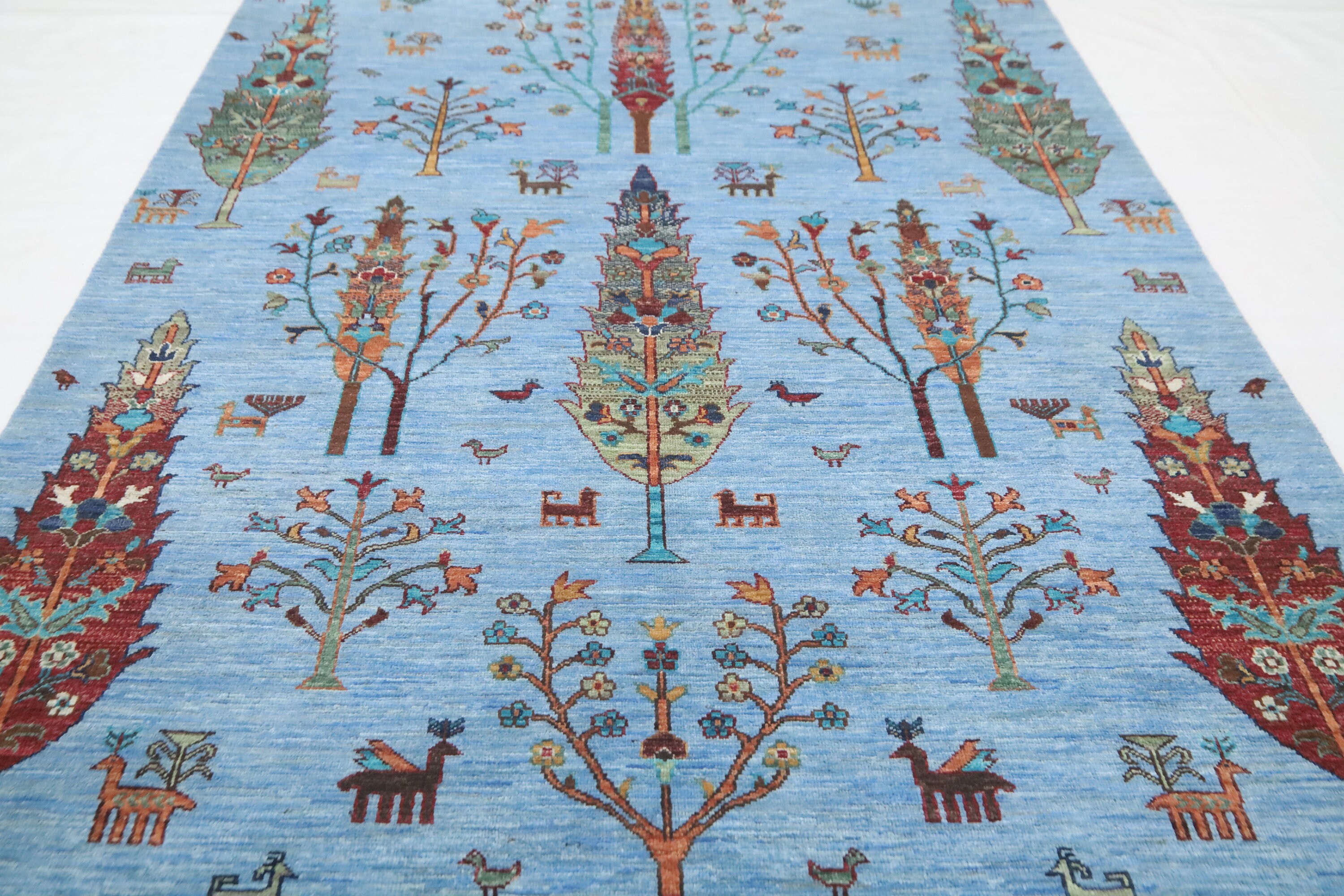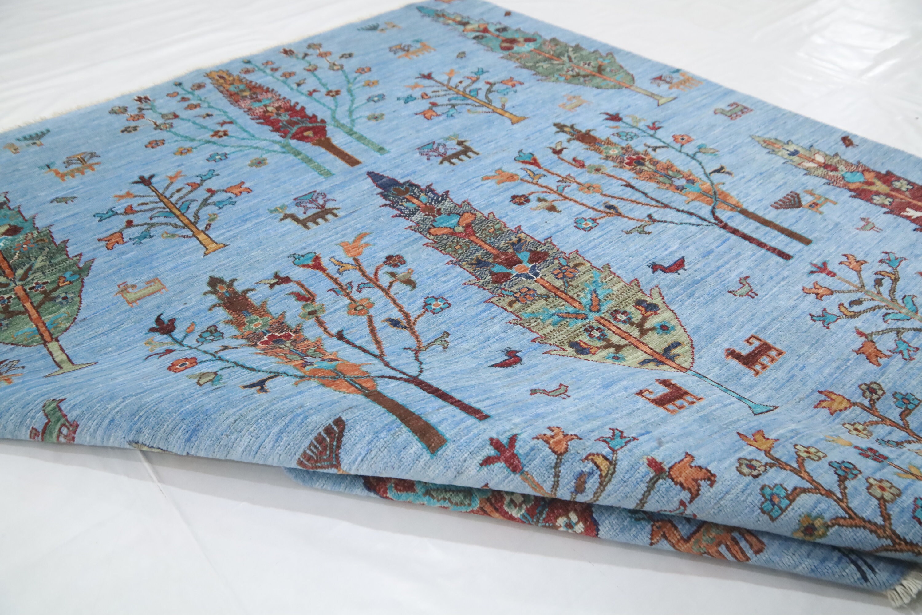 5x6'4 Tree Of Life Area Rug - Light Blue Afghan Hand Made Tribal Fine Quality Wool Rug - Kitchen Rug - Foyer Rug - Kids Room Rug - Dorm Rug