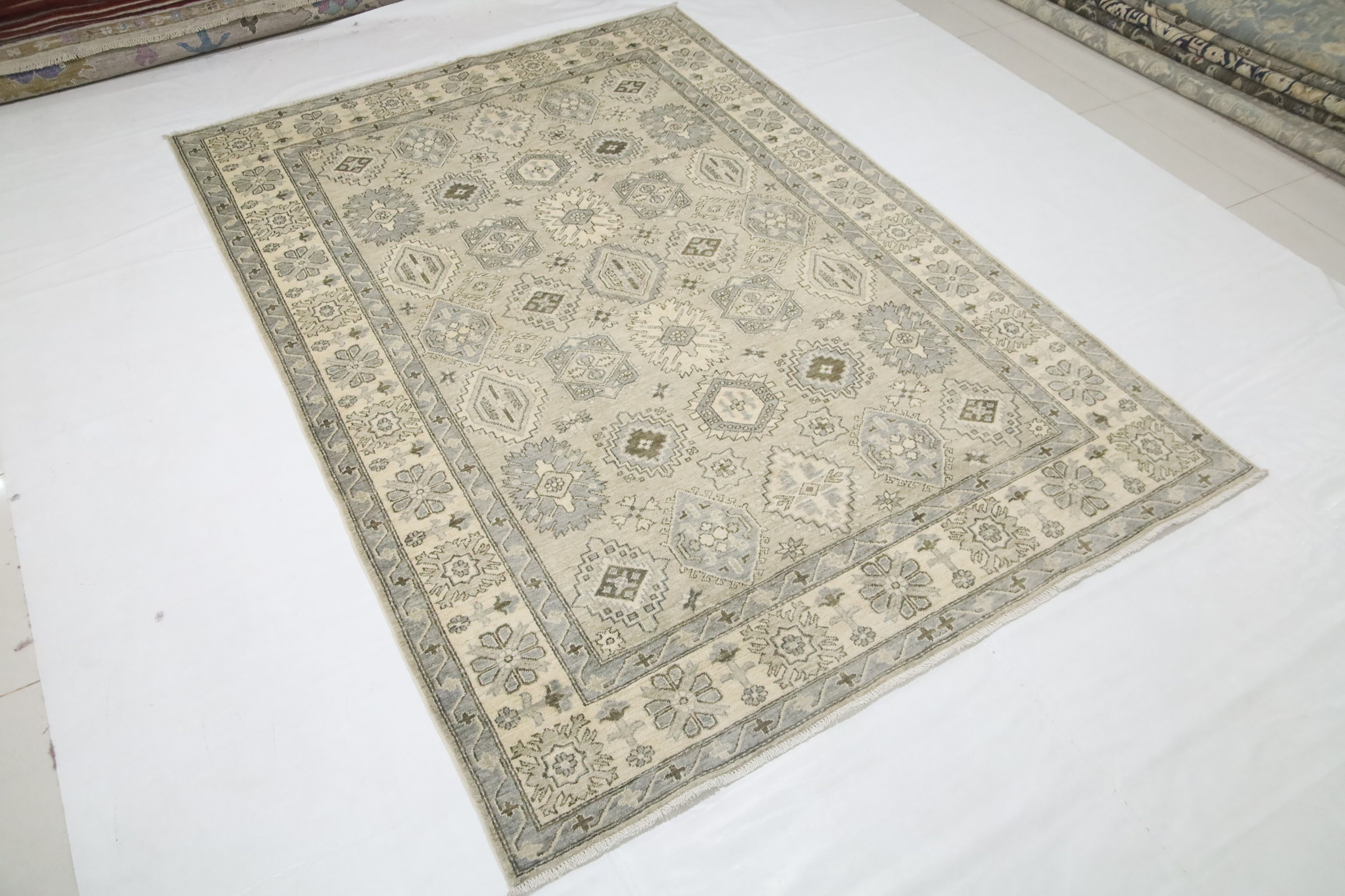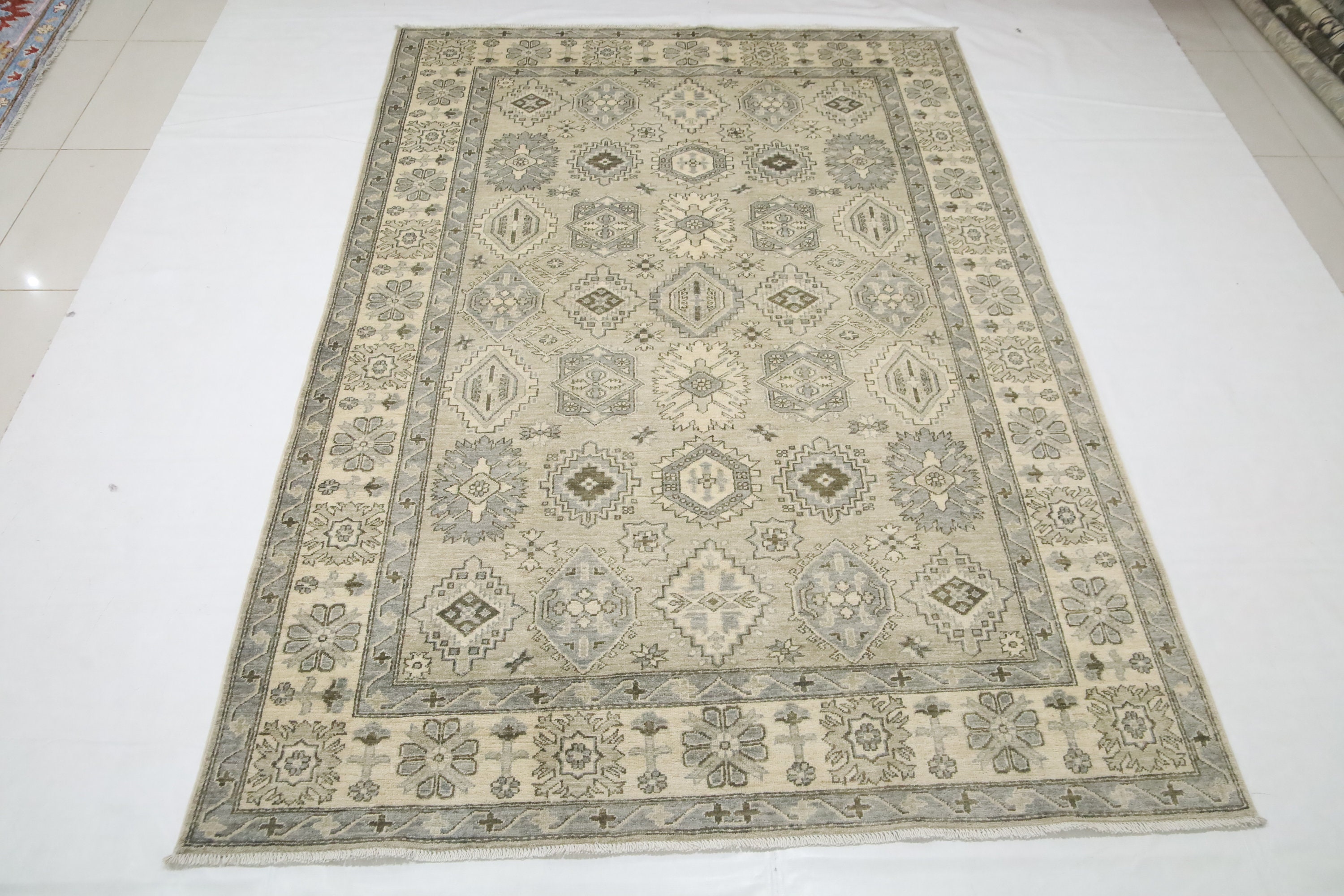 6x9 Gray Chobi Area Rug - Afghan Hand Made Traditional Organic Dye Wool Rug - Kitchen Rug - Bedroom Rug - Foyer Rug - Living Room Rug