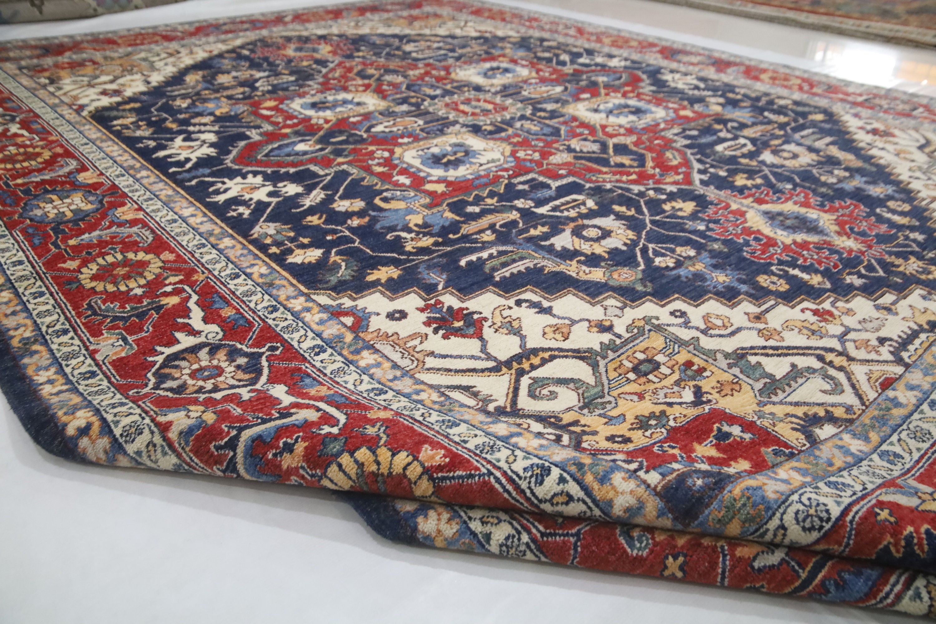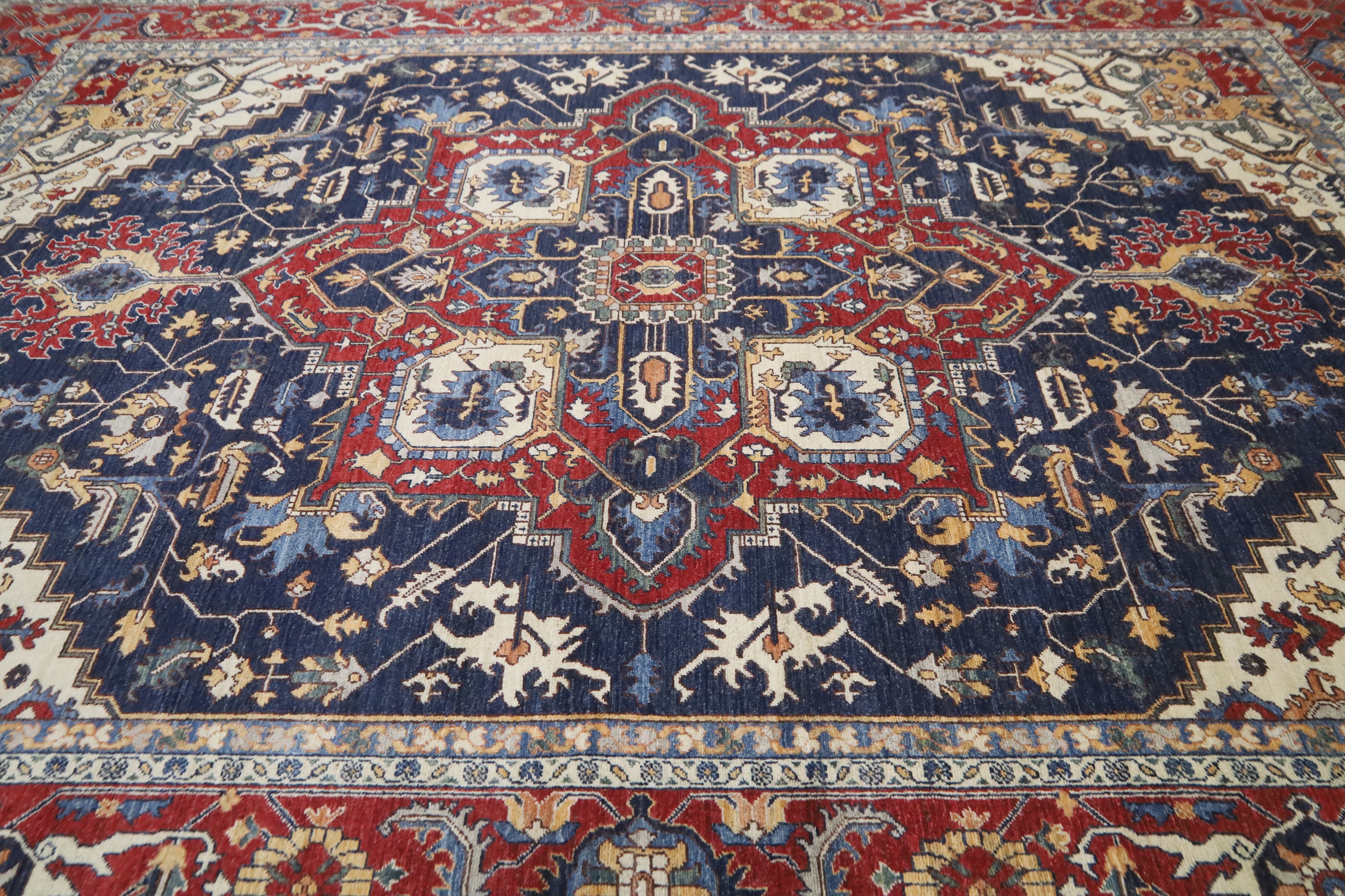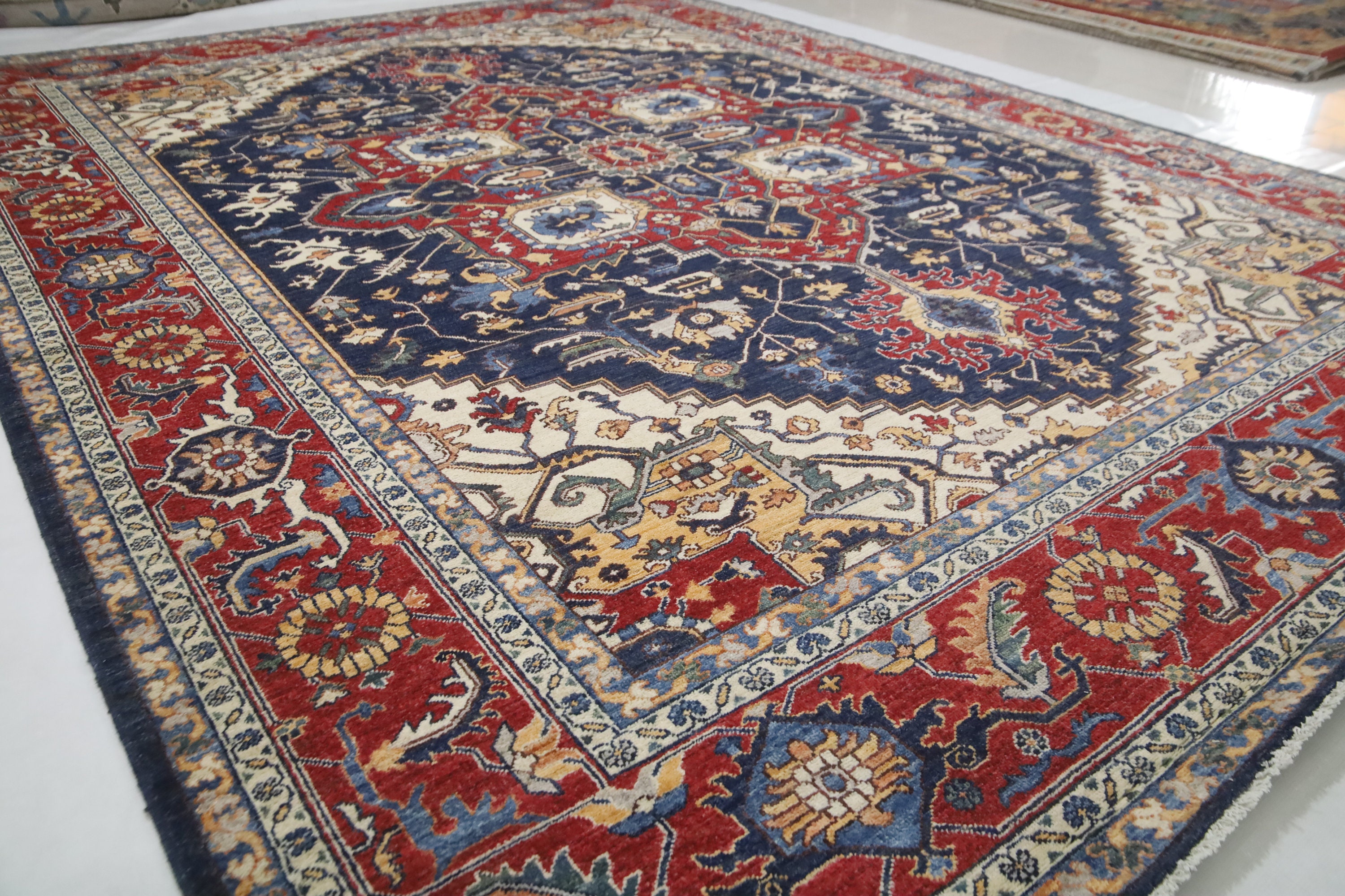 9x12 Heriz Area Rug - Blue Red Persian Style Afghan Hand Made Medallion Fine Quality Wool Rug - Farmhouse Rug - Living Room Rug - Office Rug