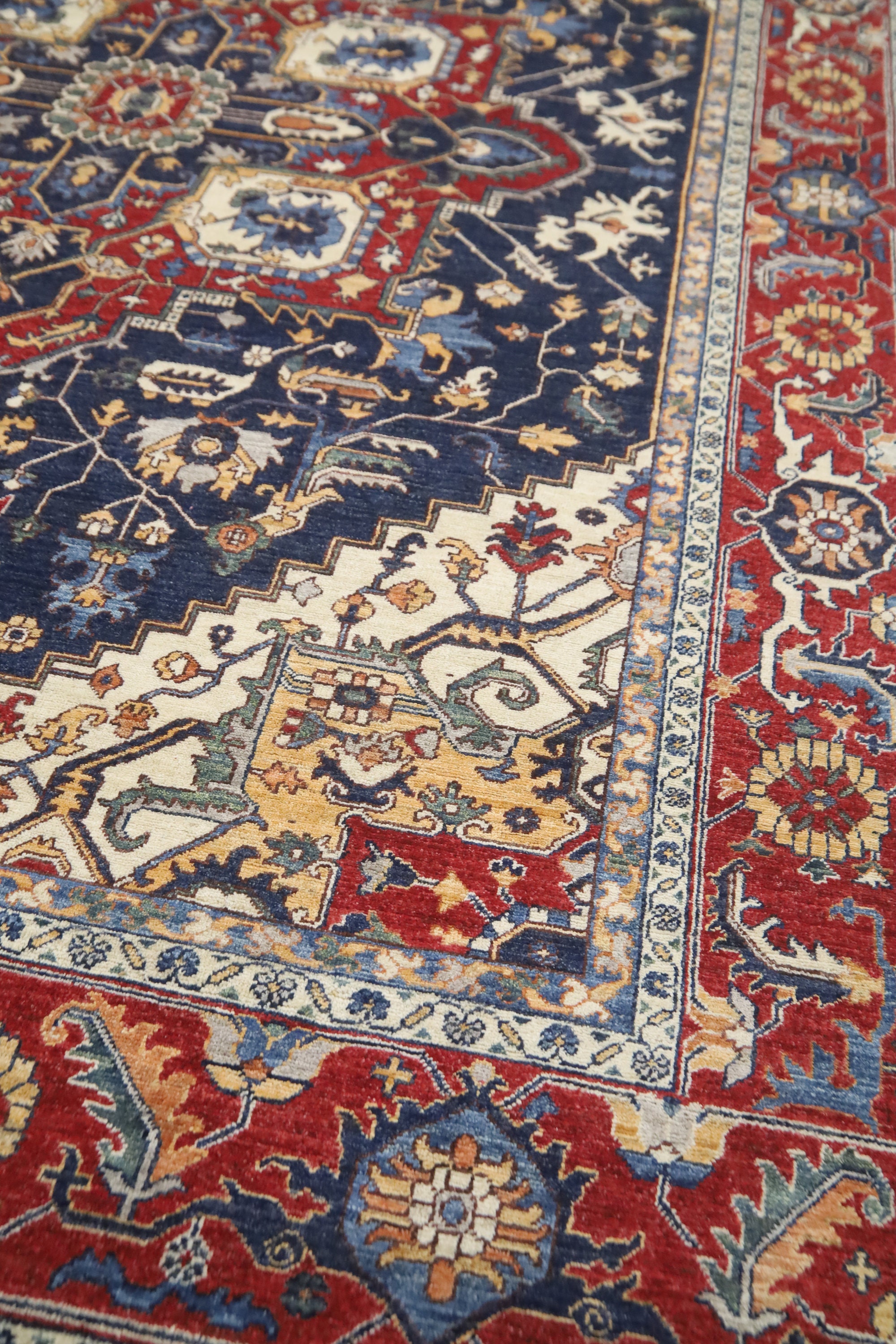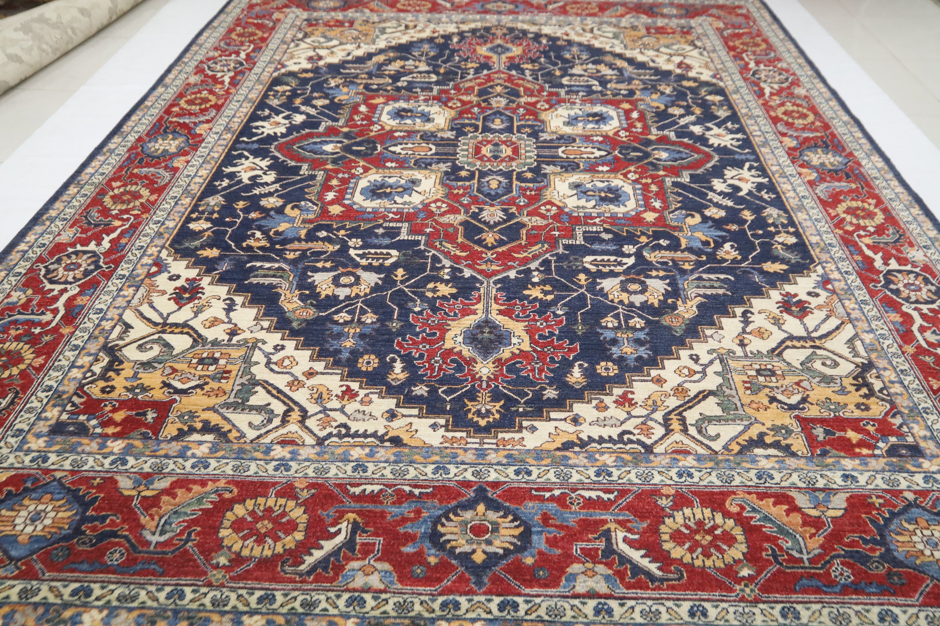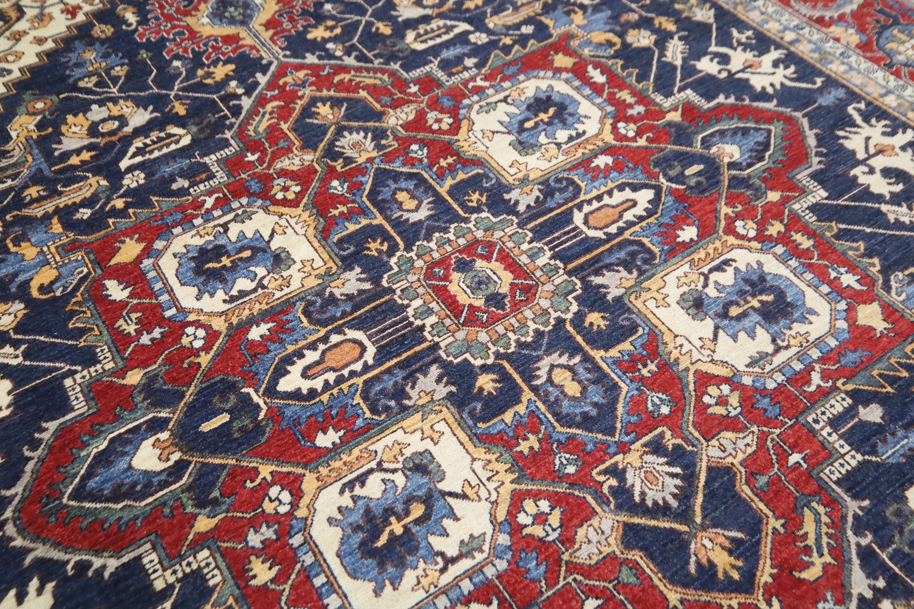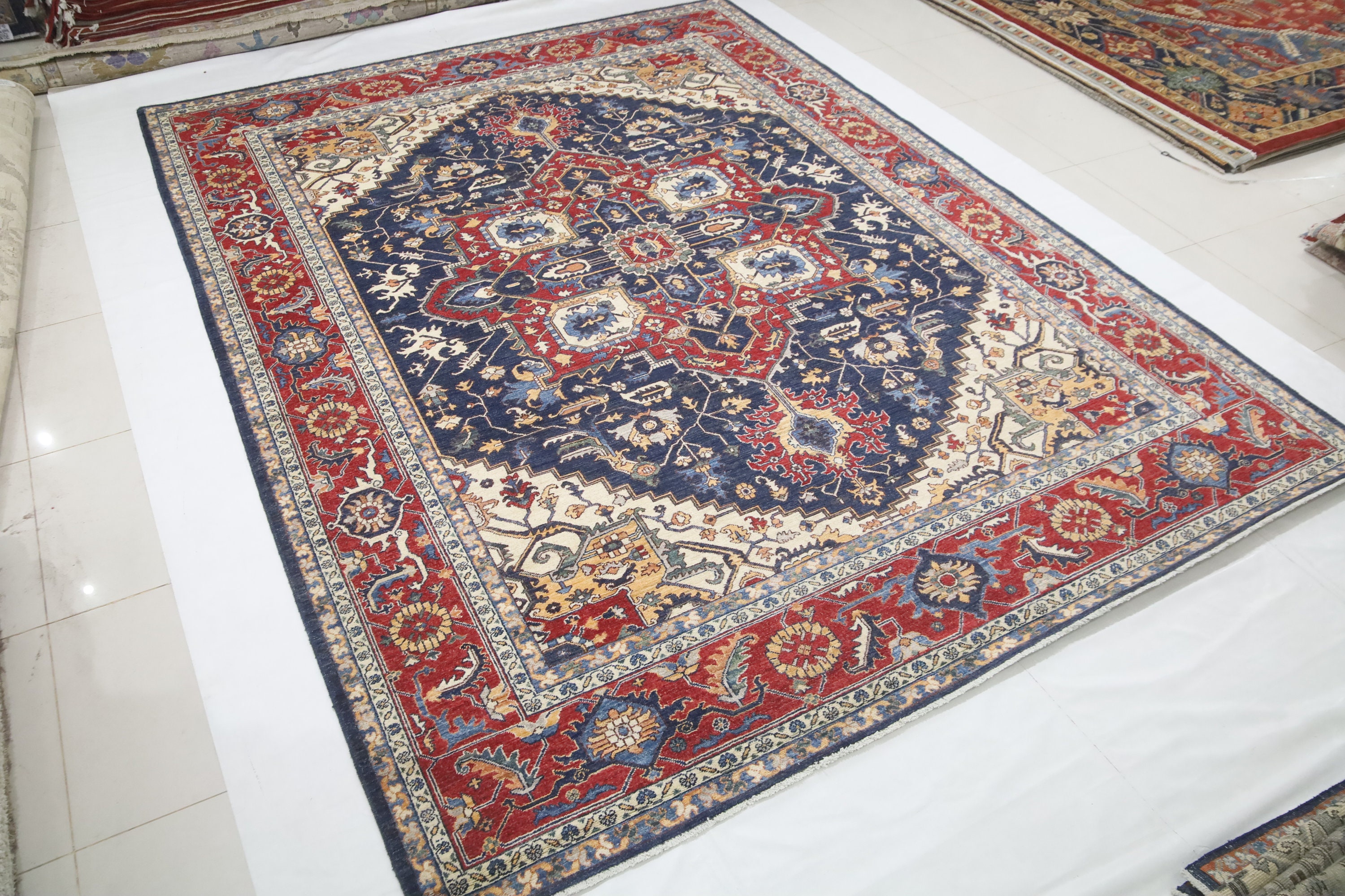 9x12 Heriz Area Rug - Blue Red Persian Style Afghan Hand Made Medallion Fine Quality Wool Rug - Farmhouse Rug - Living Room Rug - Office Rug