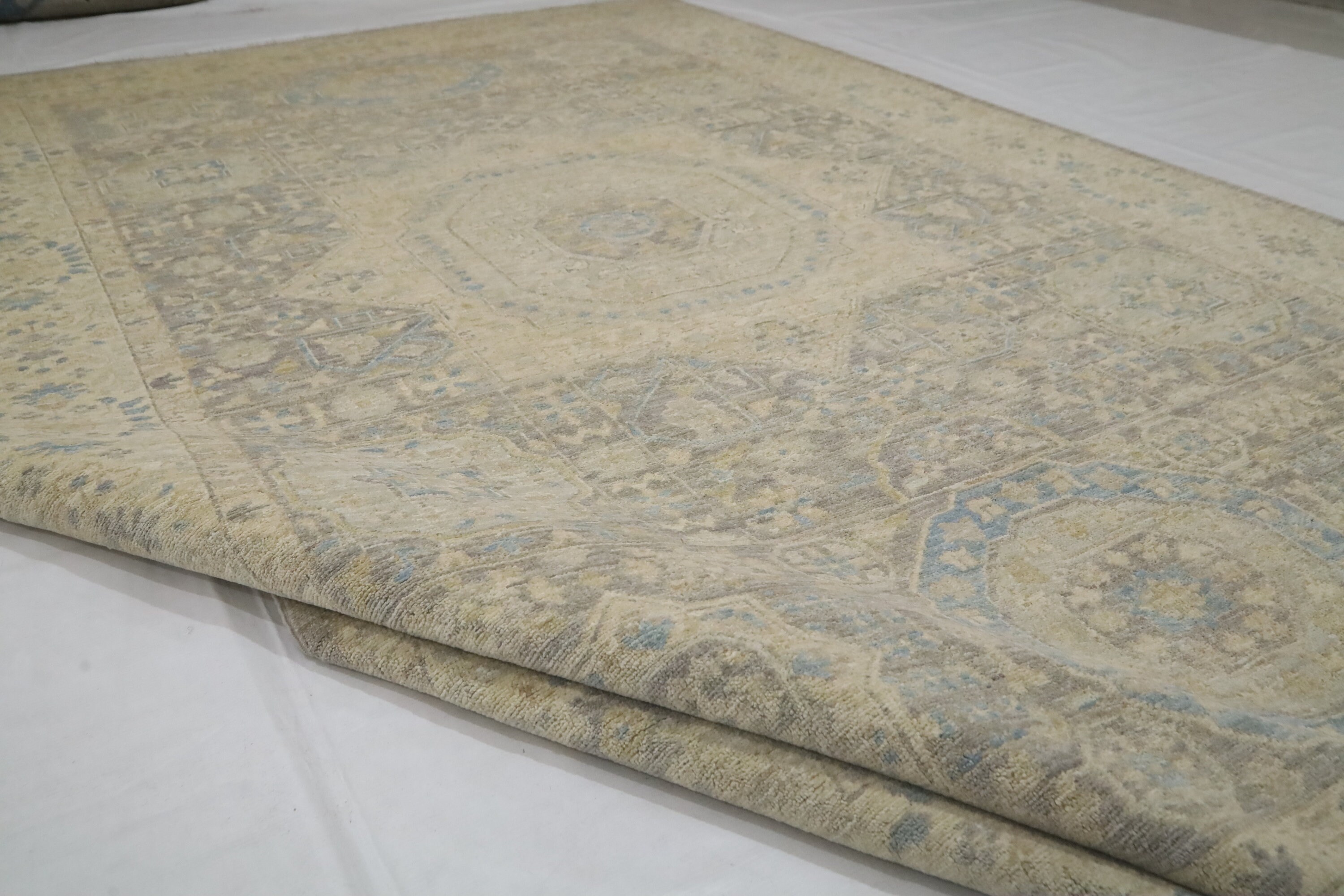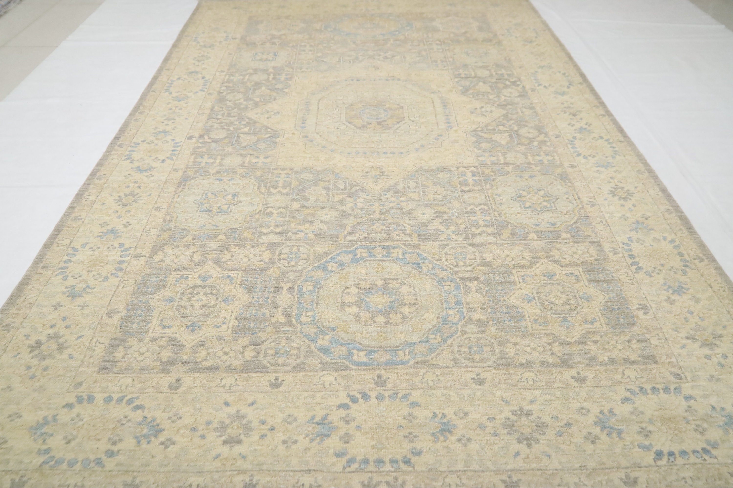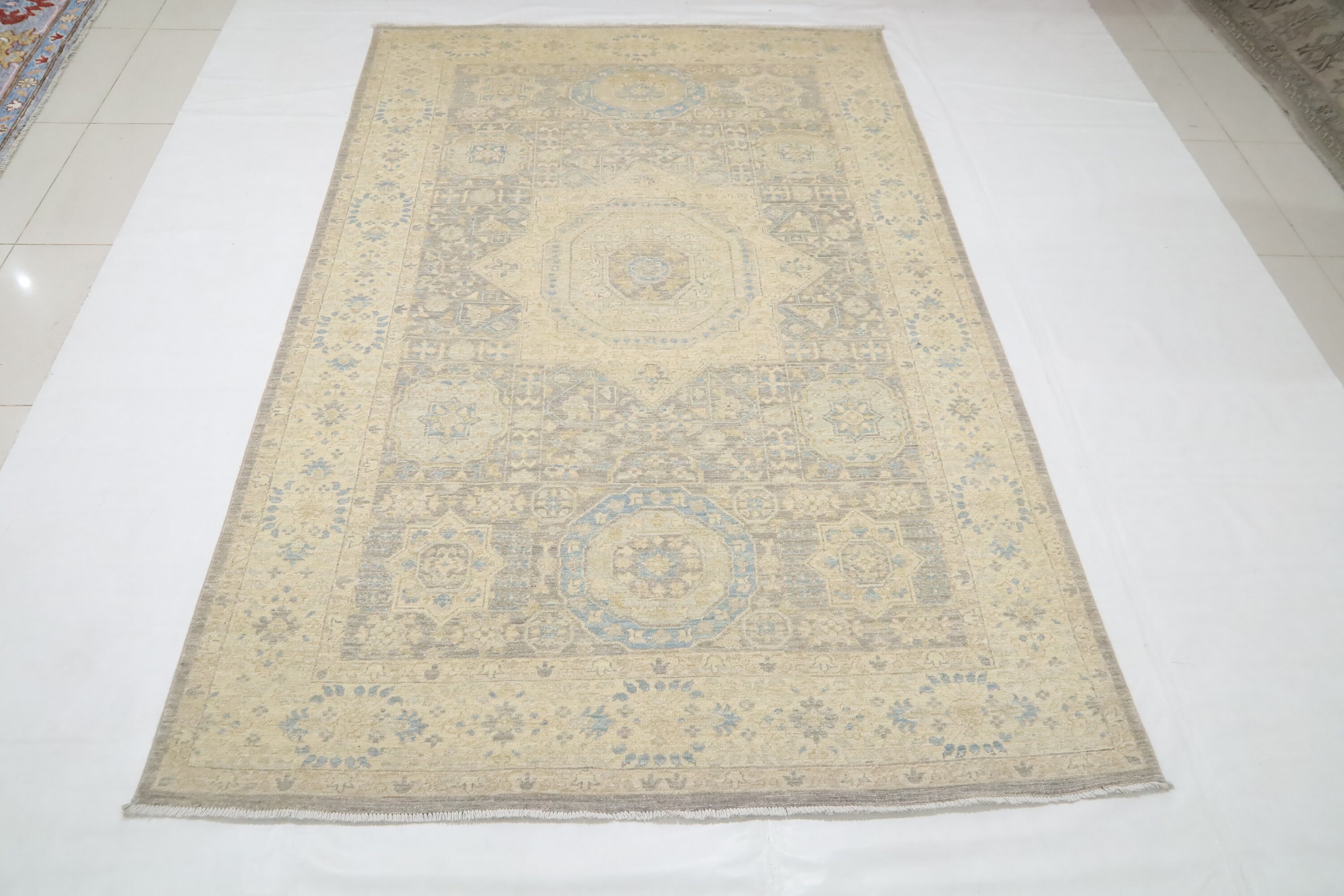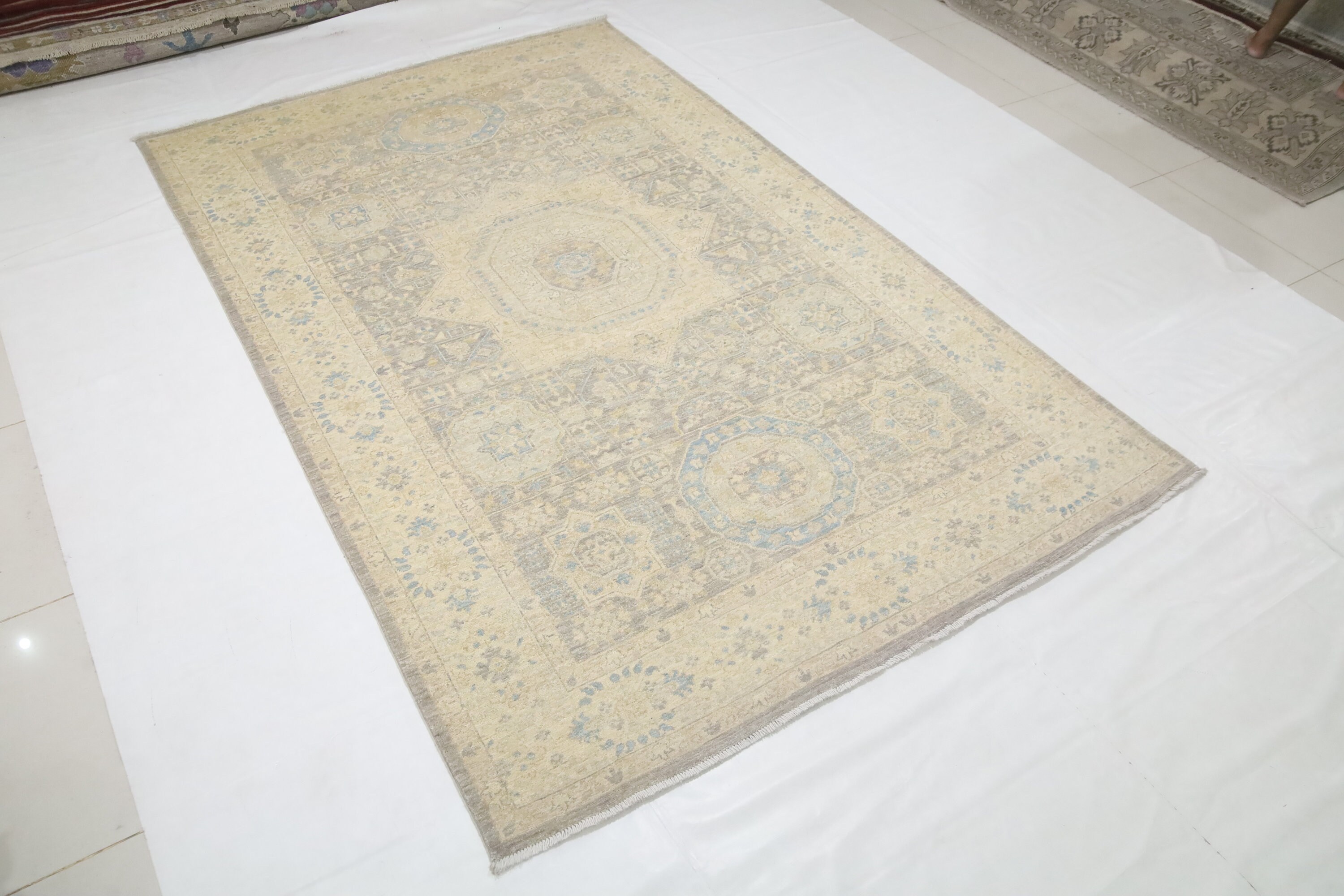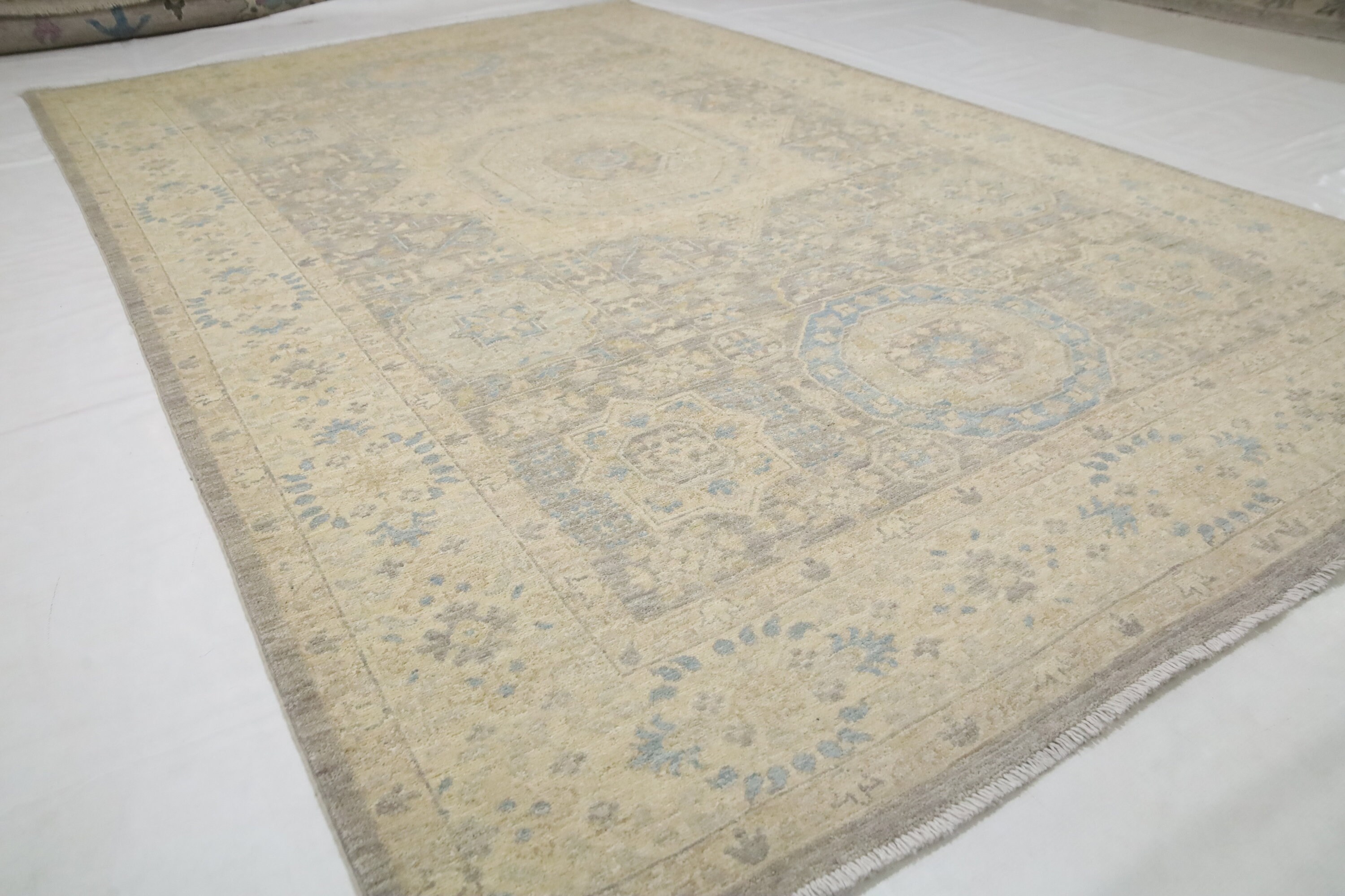 6x9 Mamluk Area Rug - Muted Gray Turkish Hand Made Geometric Fine Quality Wool Rug - Traditional Rug - Bedroom Rug - Living Room Rug