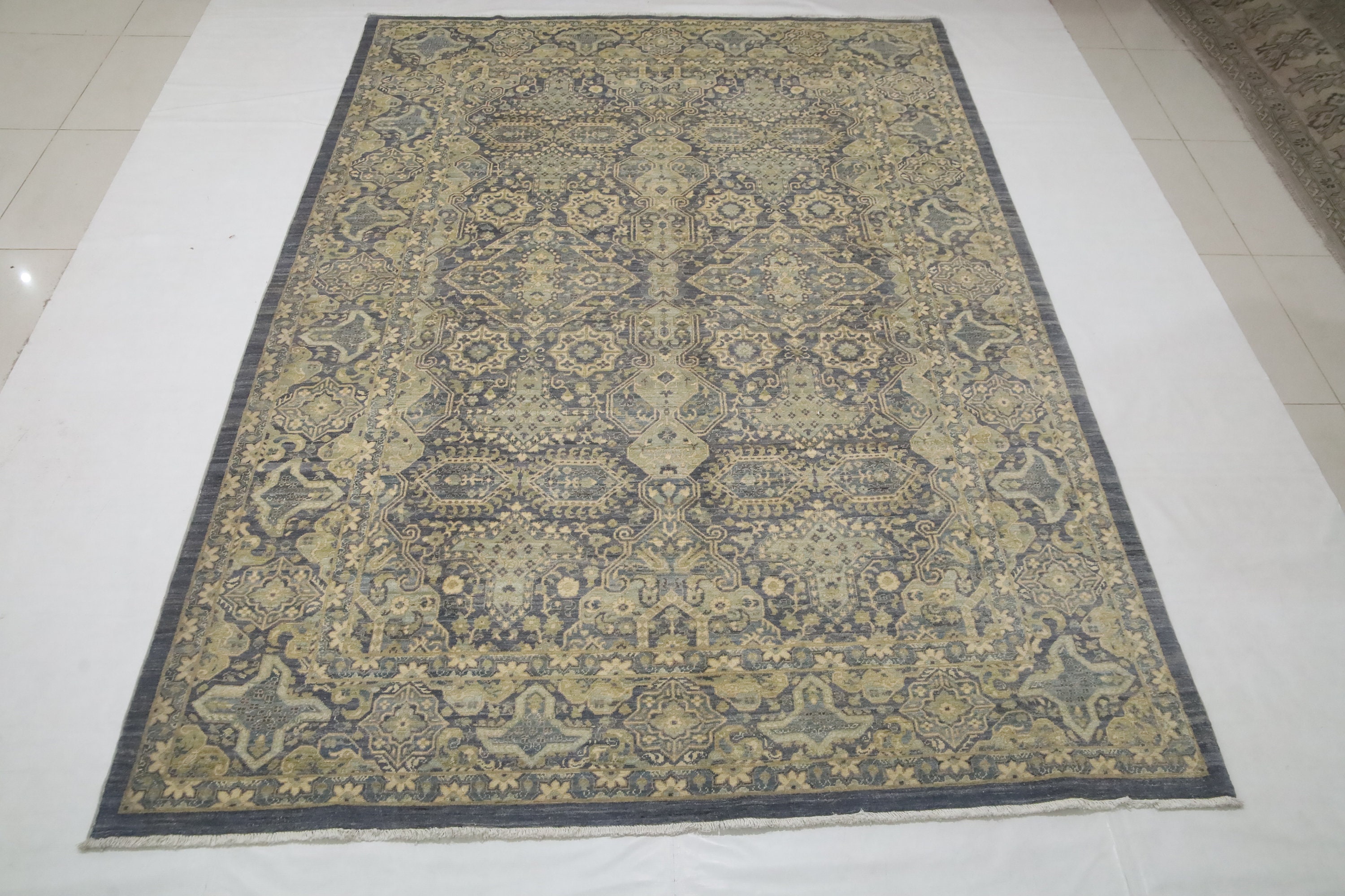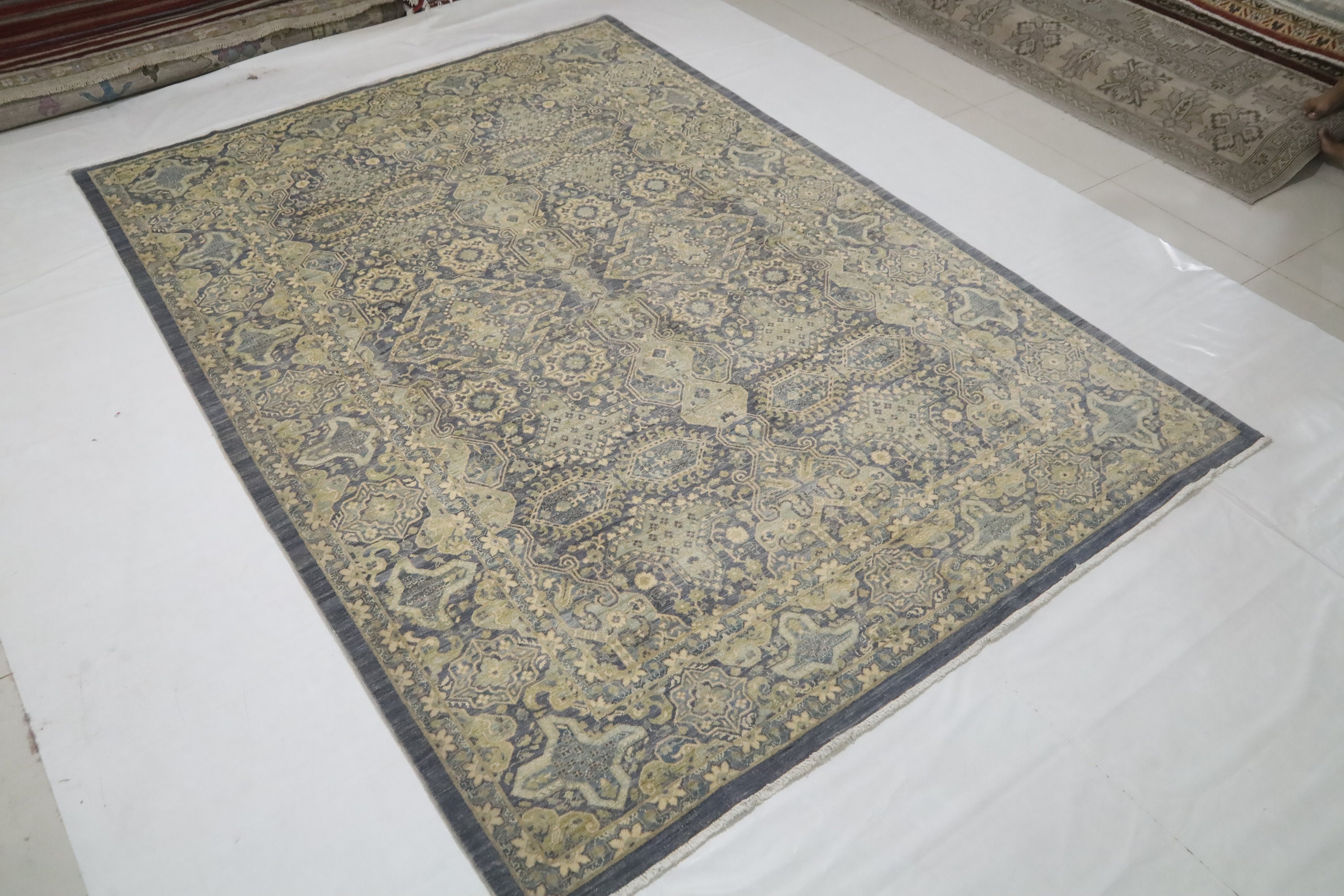 7x10 Mamluk High Quality Area Rug - Gray Turkish Hand Made Traditional Organic Dye Wool Rug - Geometric Rug - Bedroom Rug - Living Room Rug