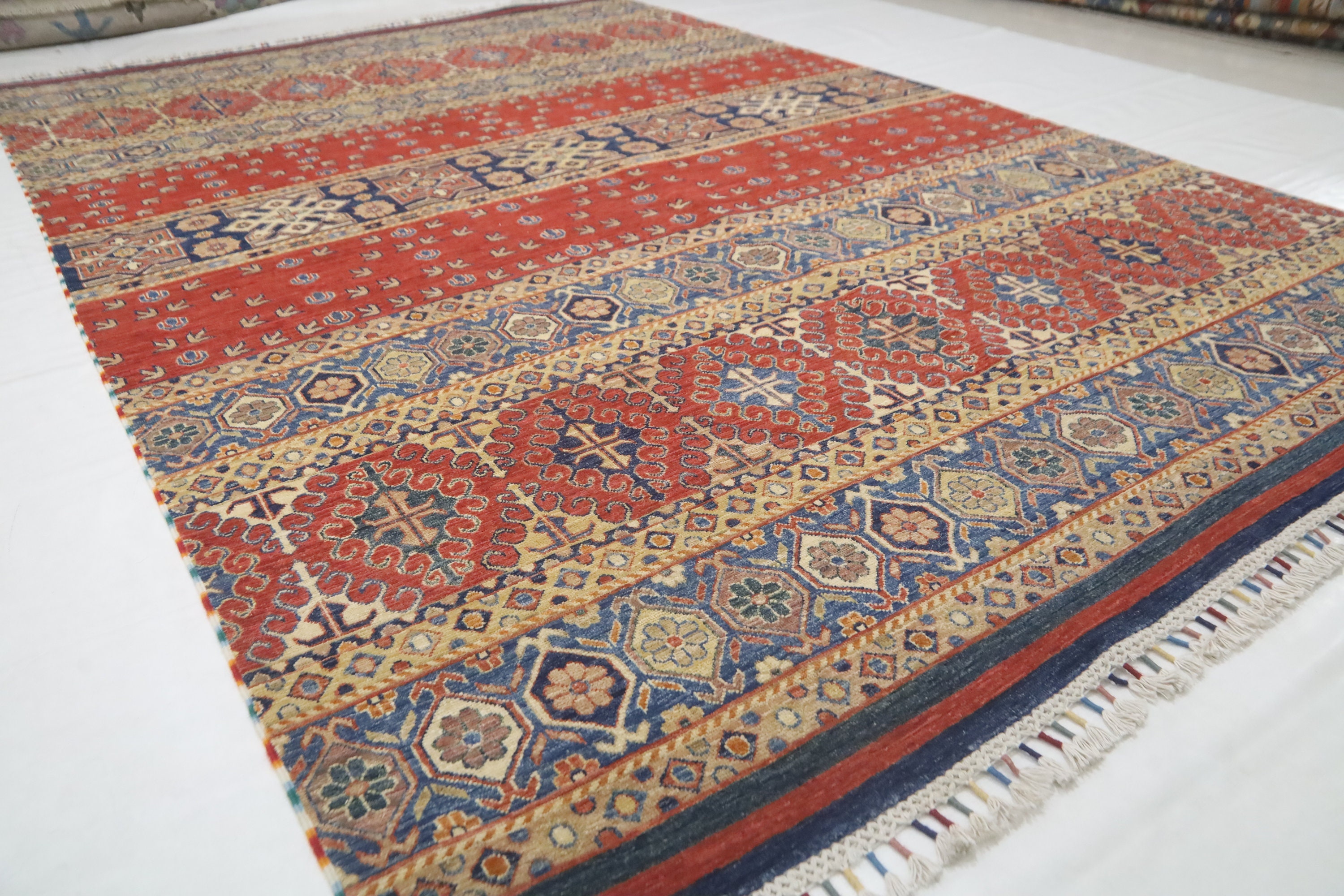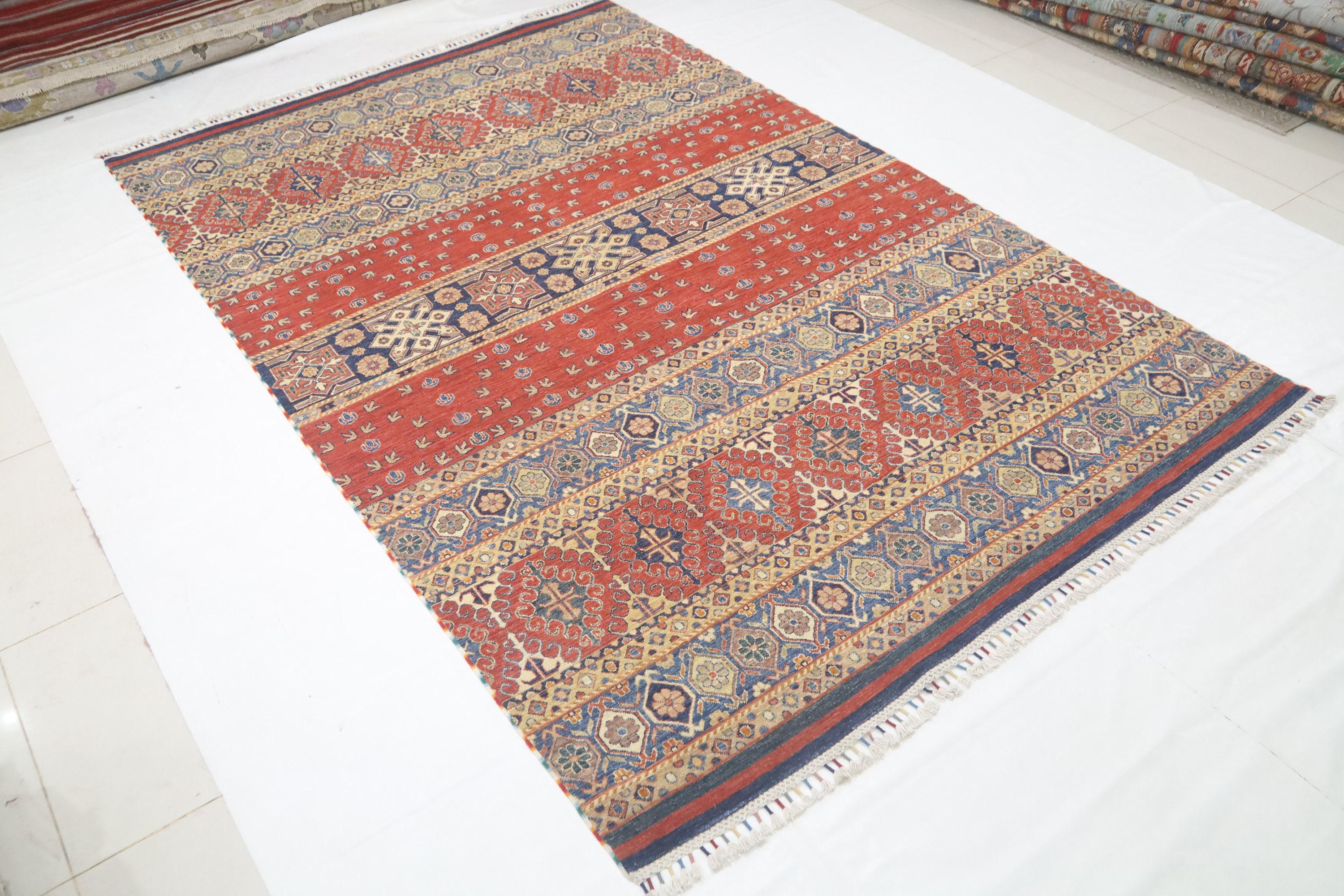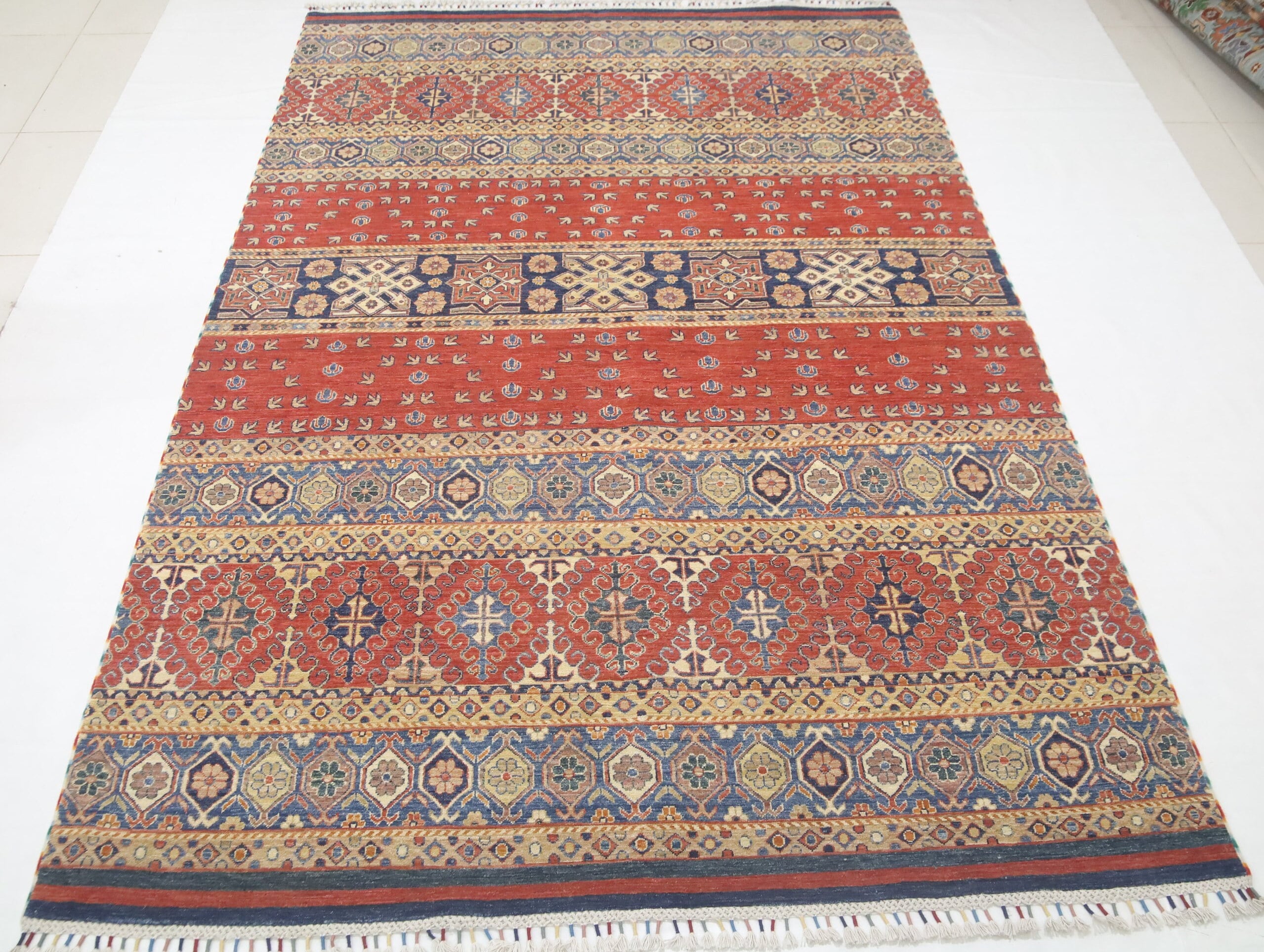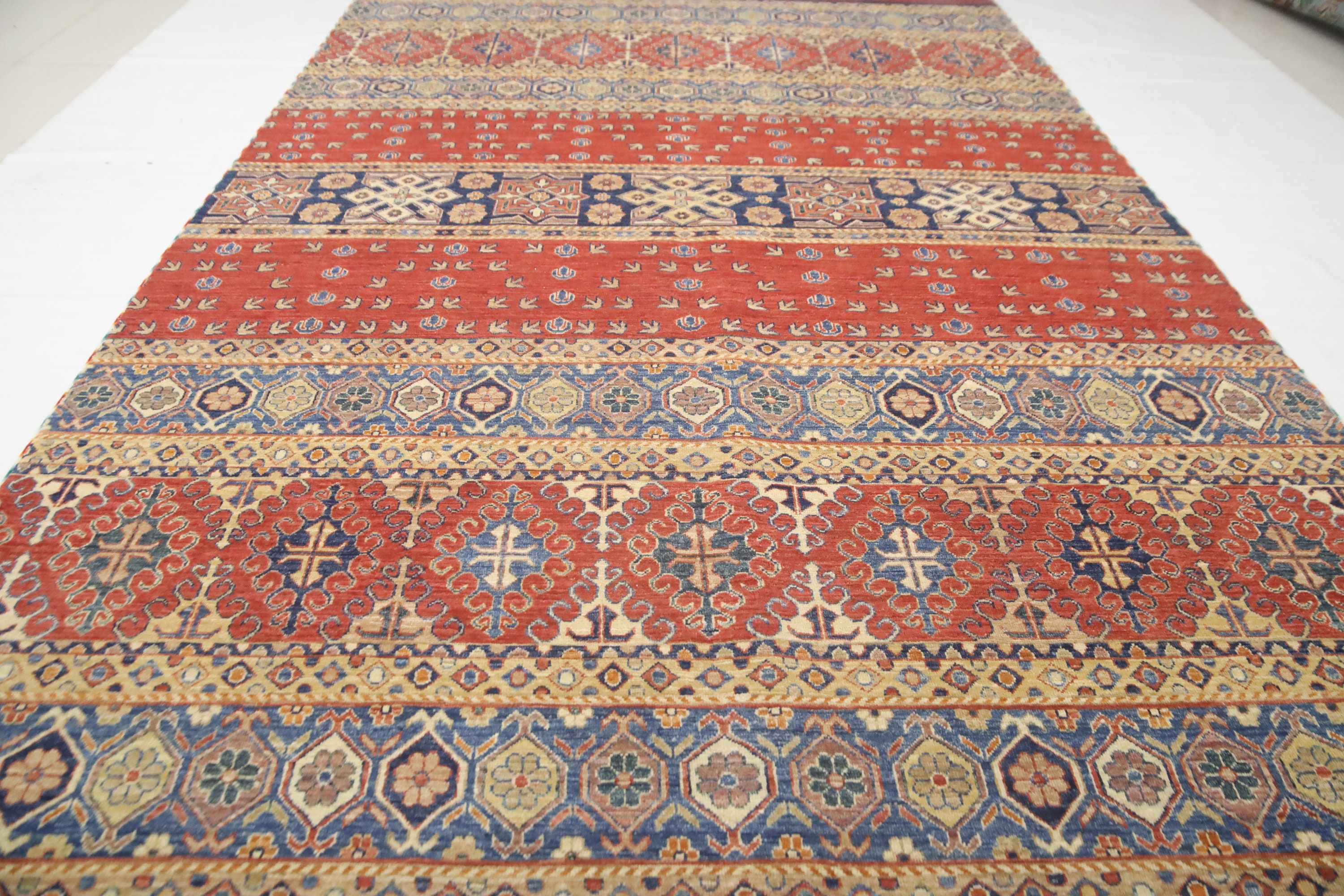 7x10 Khorjin Area Rug - Red Afghan Hand Made Geometric Fine Quality Wool Rug - Tribal Rug - Bedroom Rug - Living Room Rug - Dining Room Rug