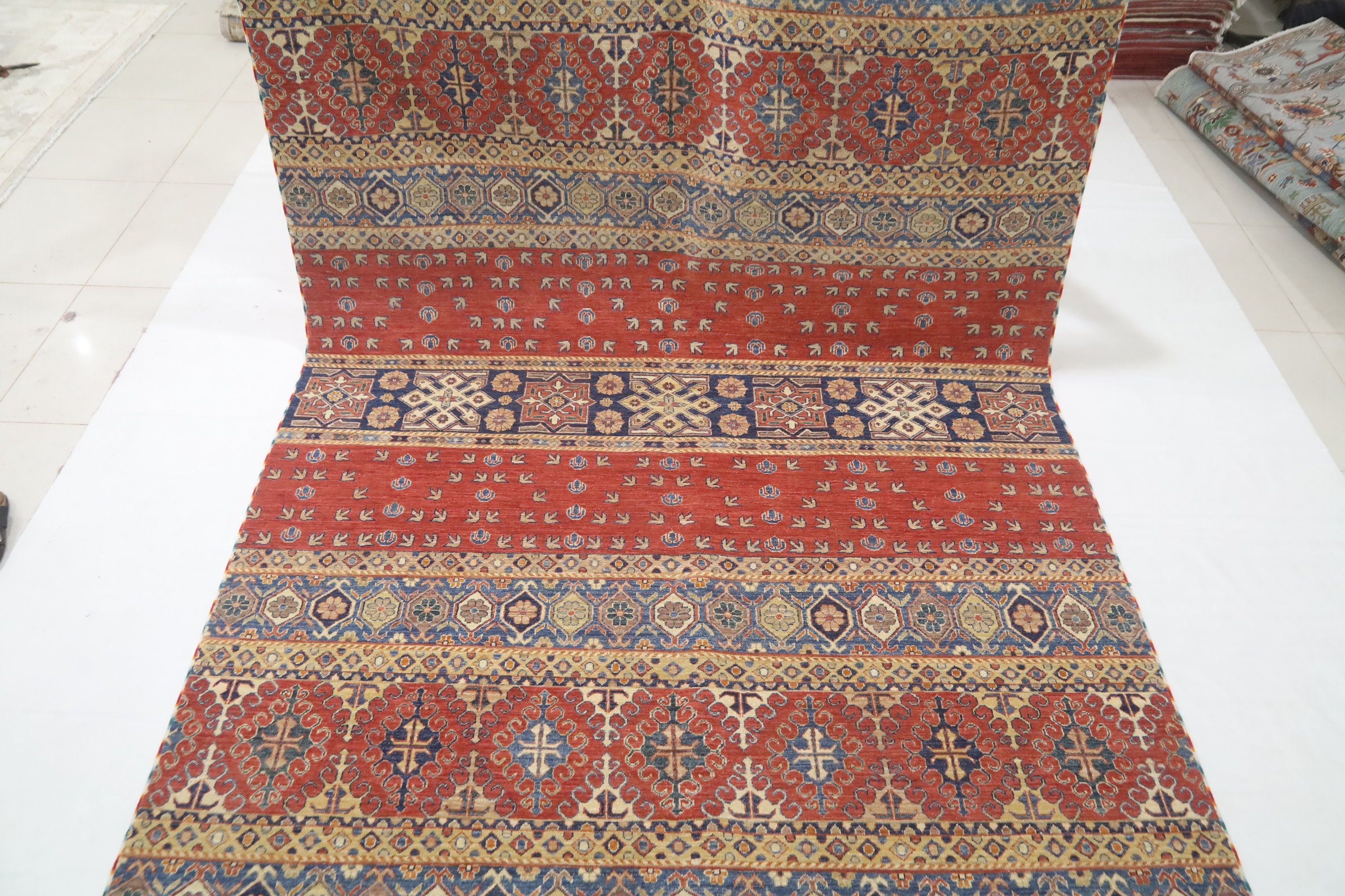 The carpet is professionally washed and ready for display and use. At The Rugs Heritage, we pride ourselves on offering quality products at affordable prices, with a 100% guarantee on all handmade items. Our mission is 100% customer satisfaction.