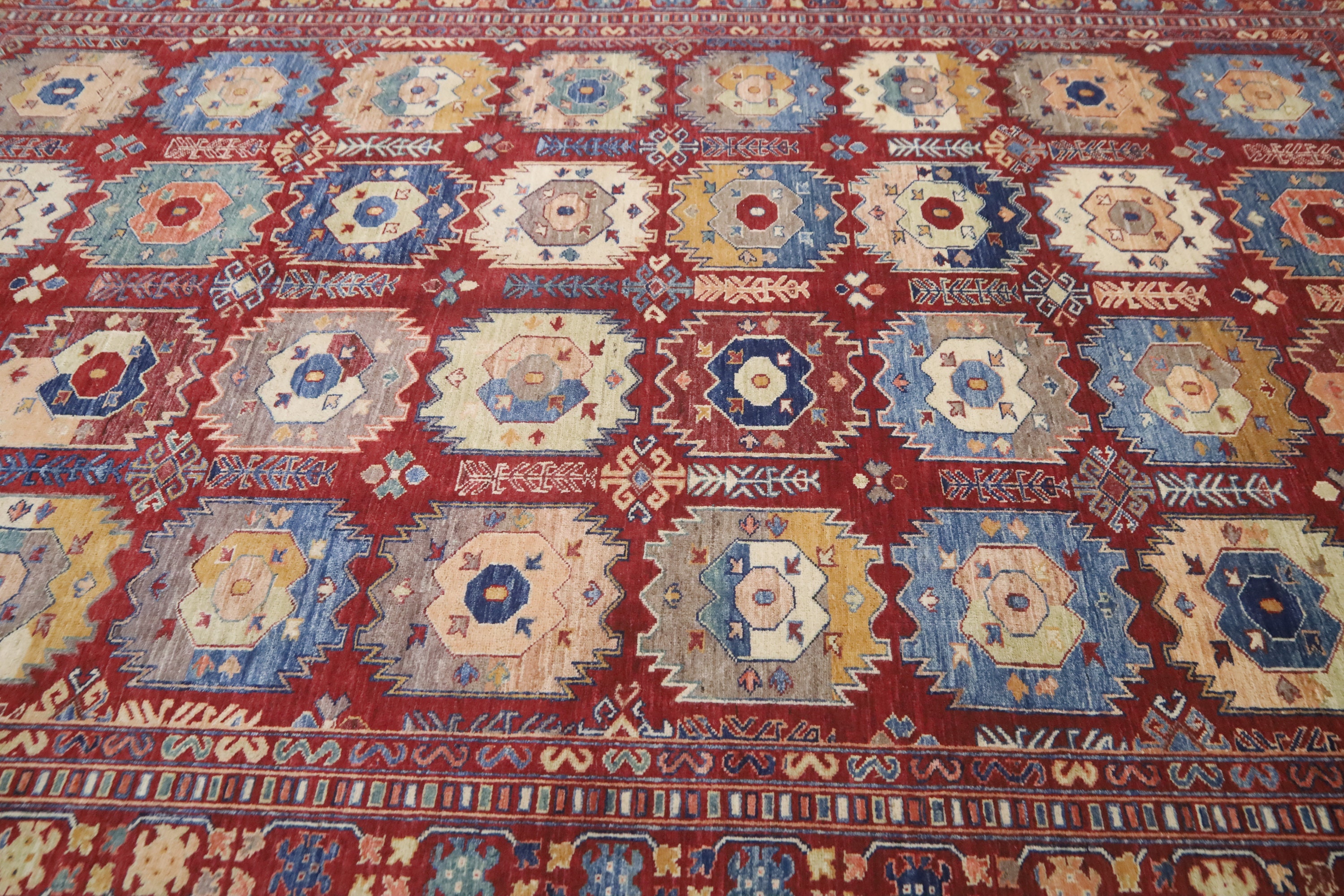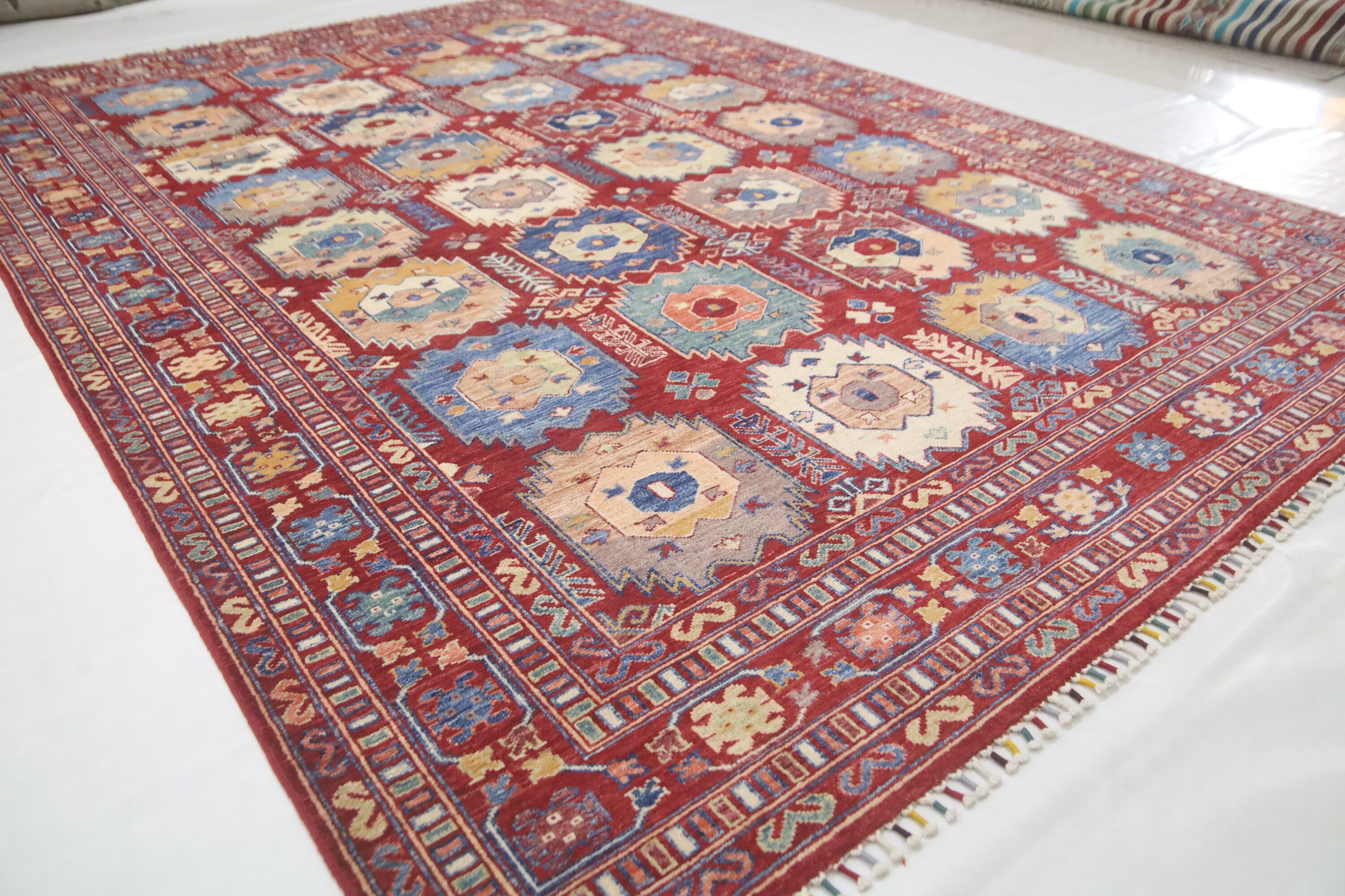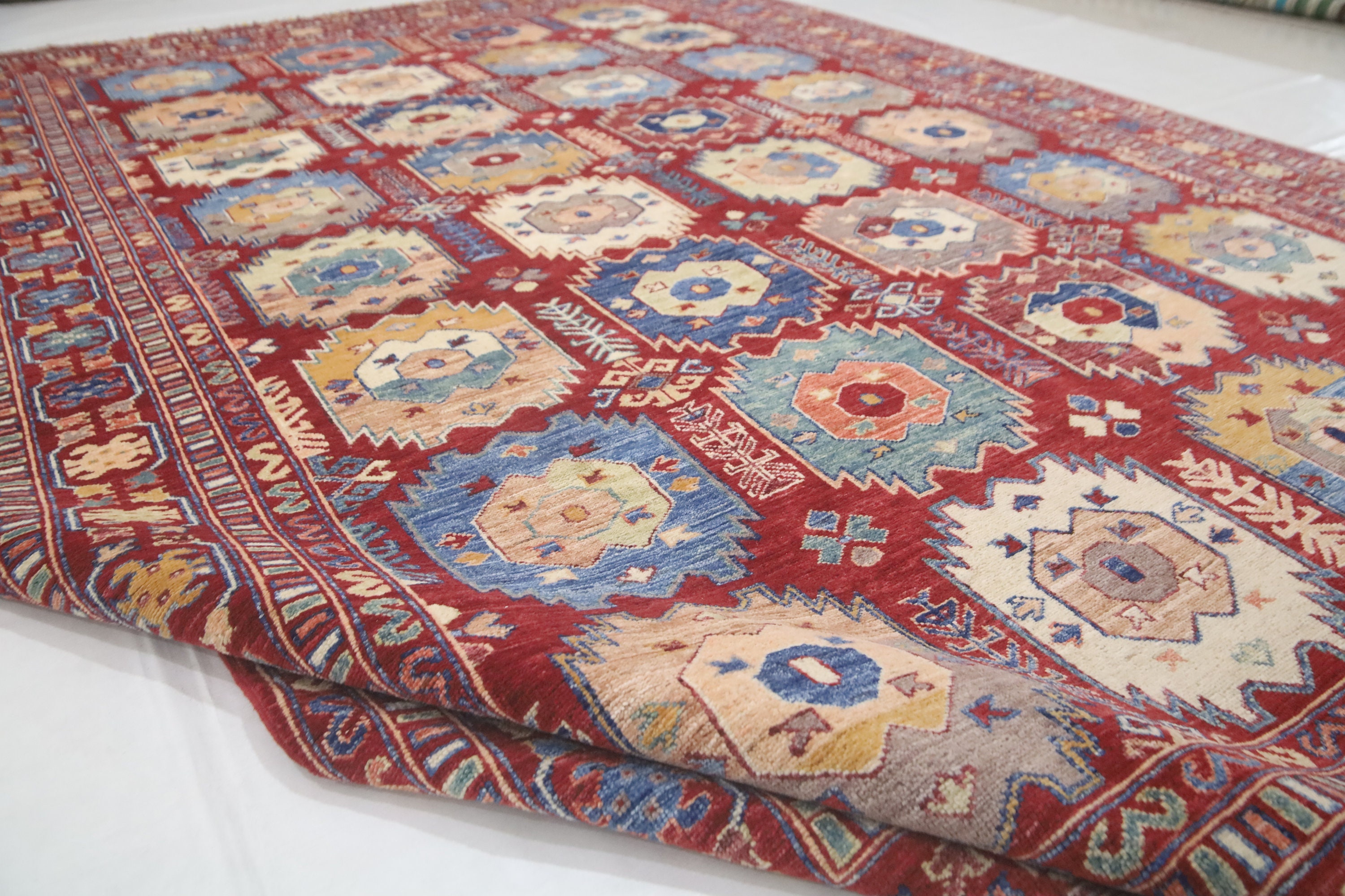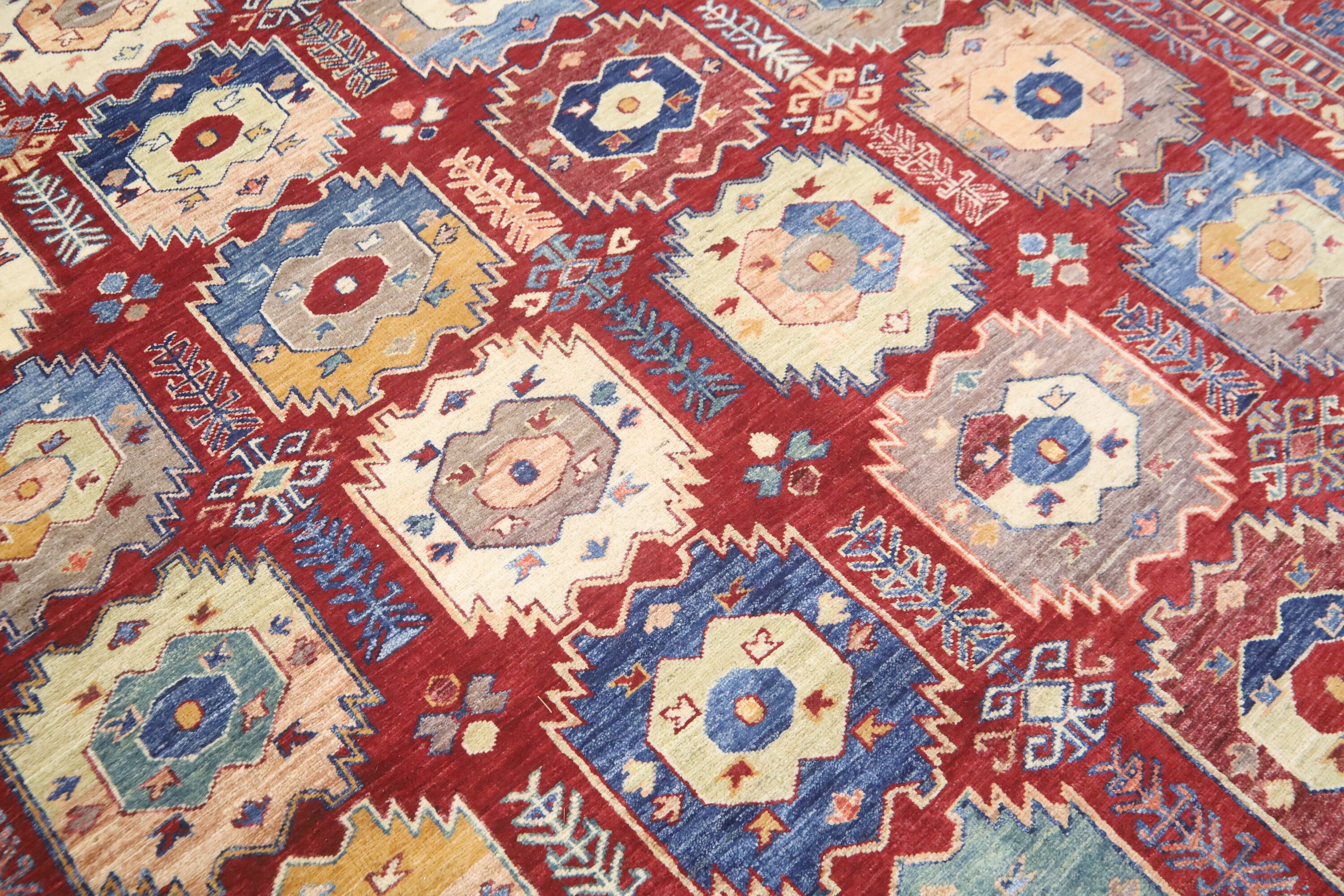 Red 7x10 Feet Ersari Area Rug - Afghan Hand Made Geometric Organic Dye Wool Rug - Tribal Rug - Traditional Rug - Living Room Rug - Foyer Rug