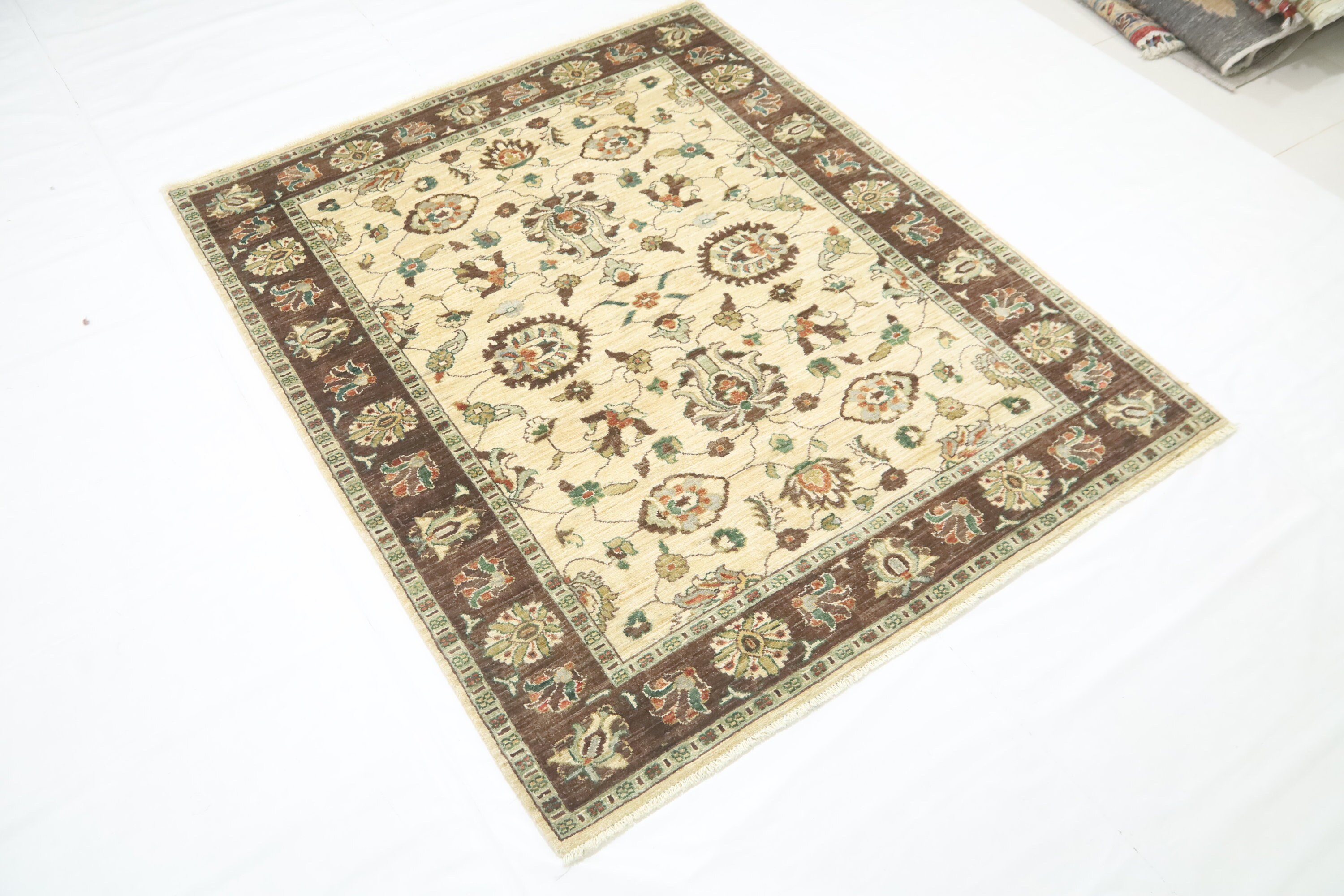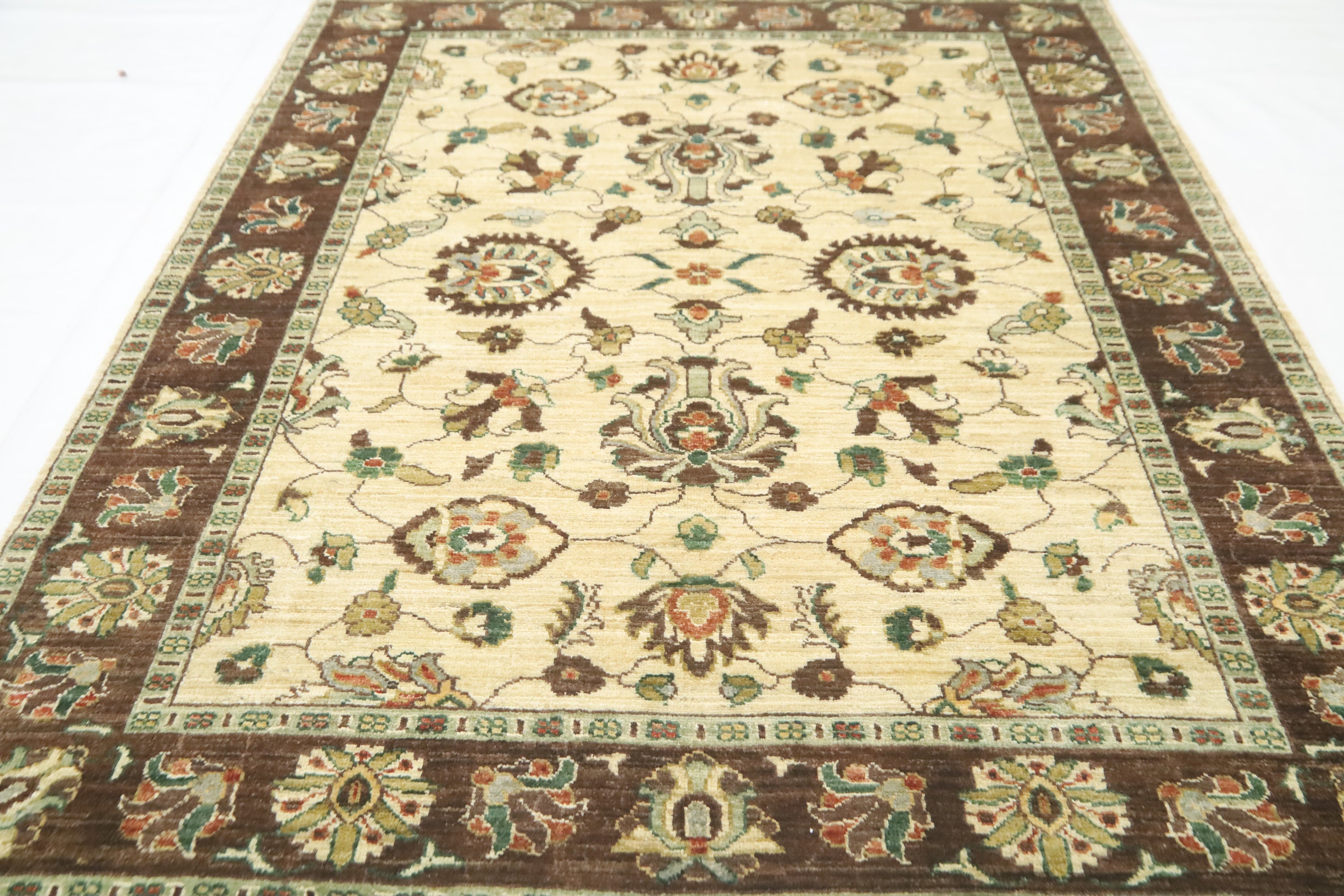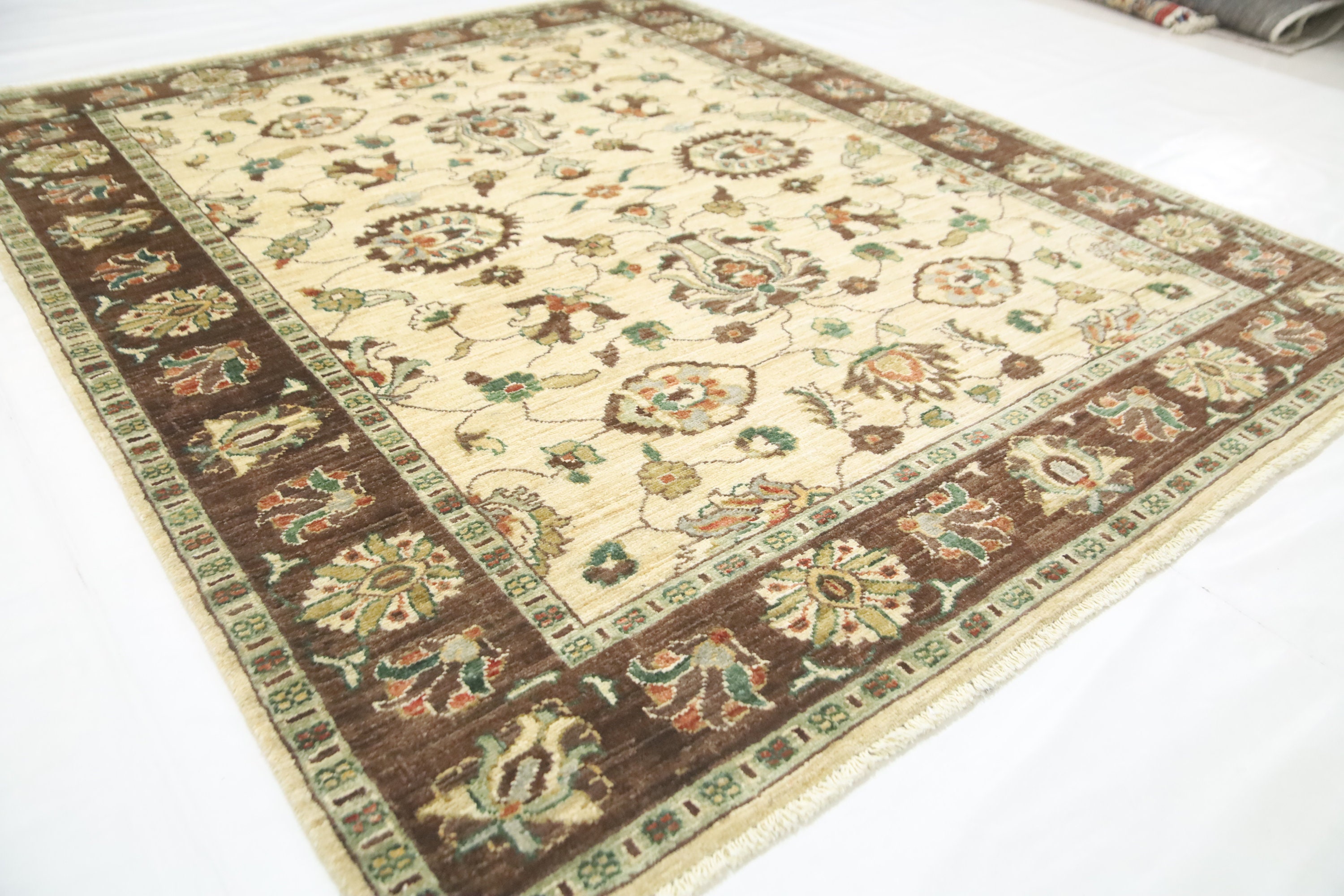 5x6'3 Ft Chobi Area Rug, Beige Brown Afghan Hand Knotted Floral Veg Dye Wool Rug, Oriental Rug, Bedroom Rug, Kitchen Rug, Foyer Rug, Rugs