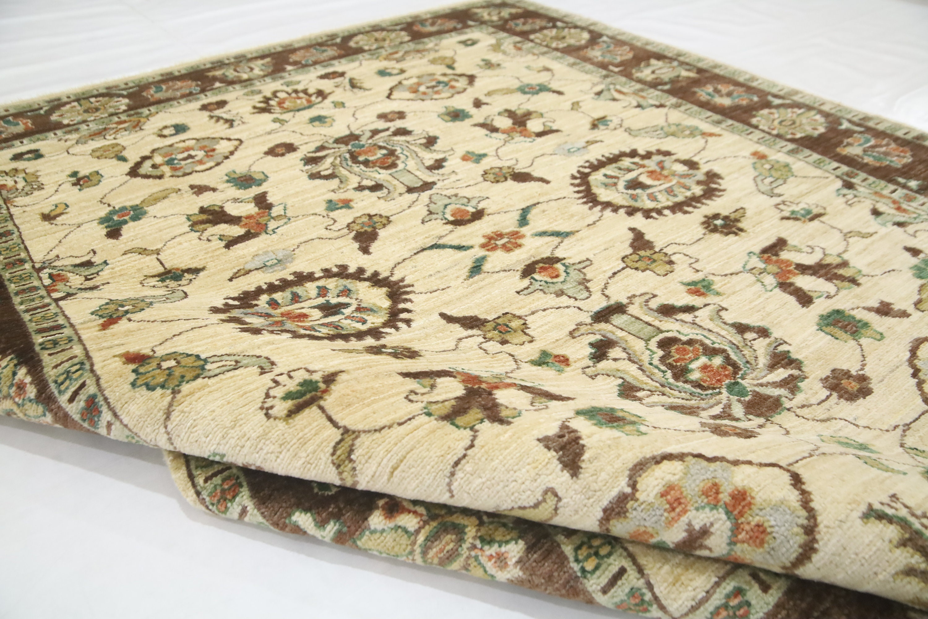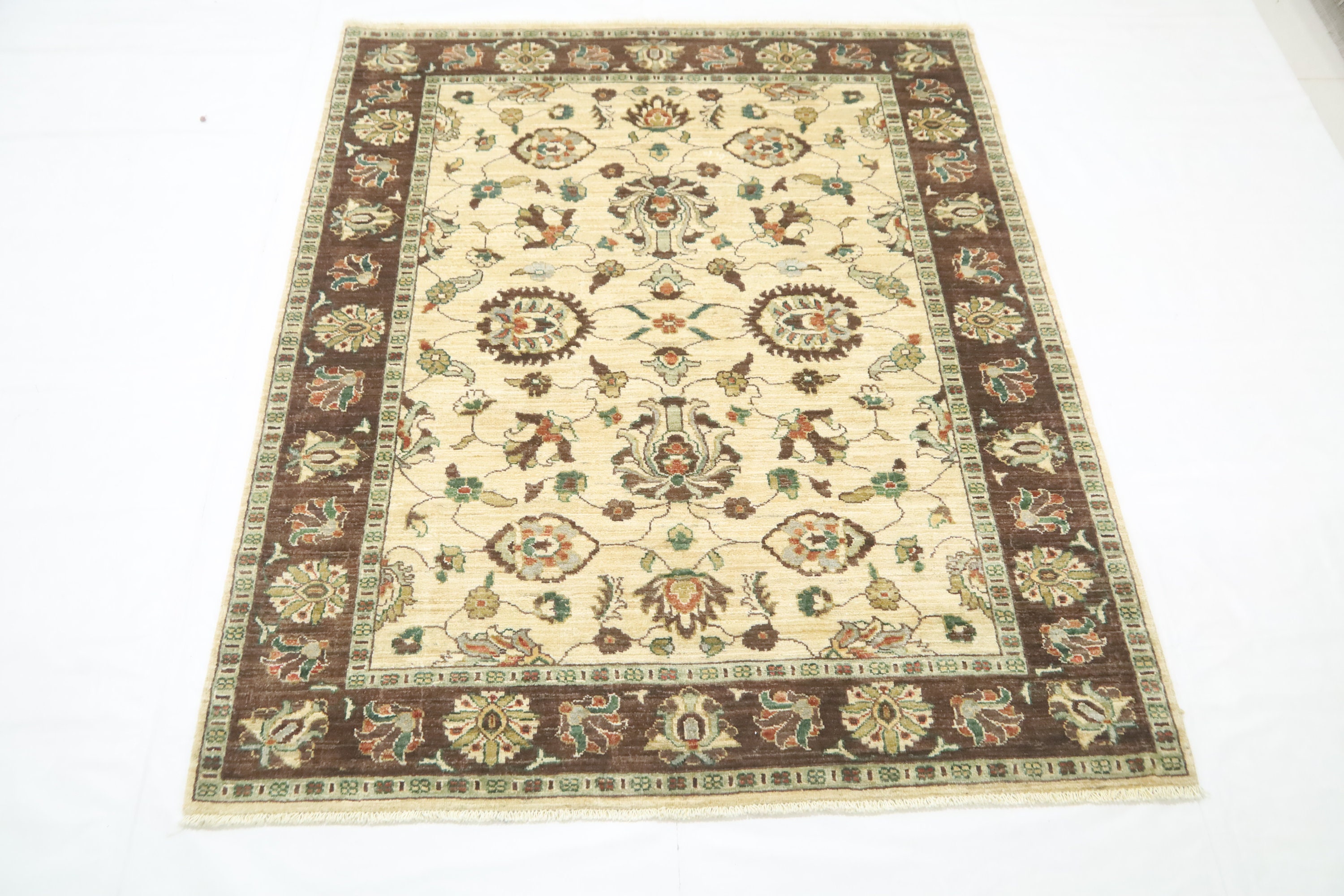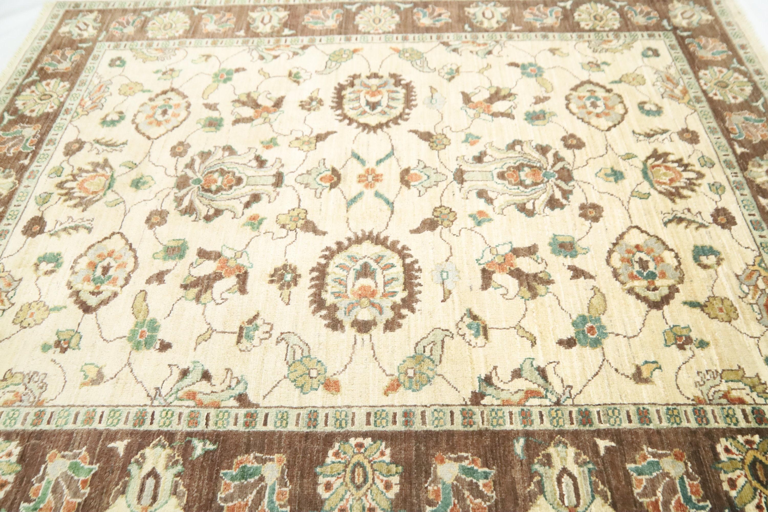 5x6'3 Ft Chobi Area Rug, Beige Brown Afghan Hand Knotted Floral Veg Dye Wool Rug, Oriental Rug, Bedroom Rug, Kitchen Rug, Foyer Rug, Rugs