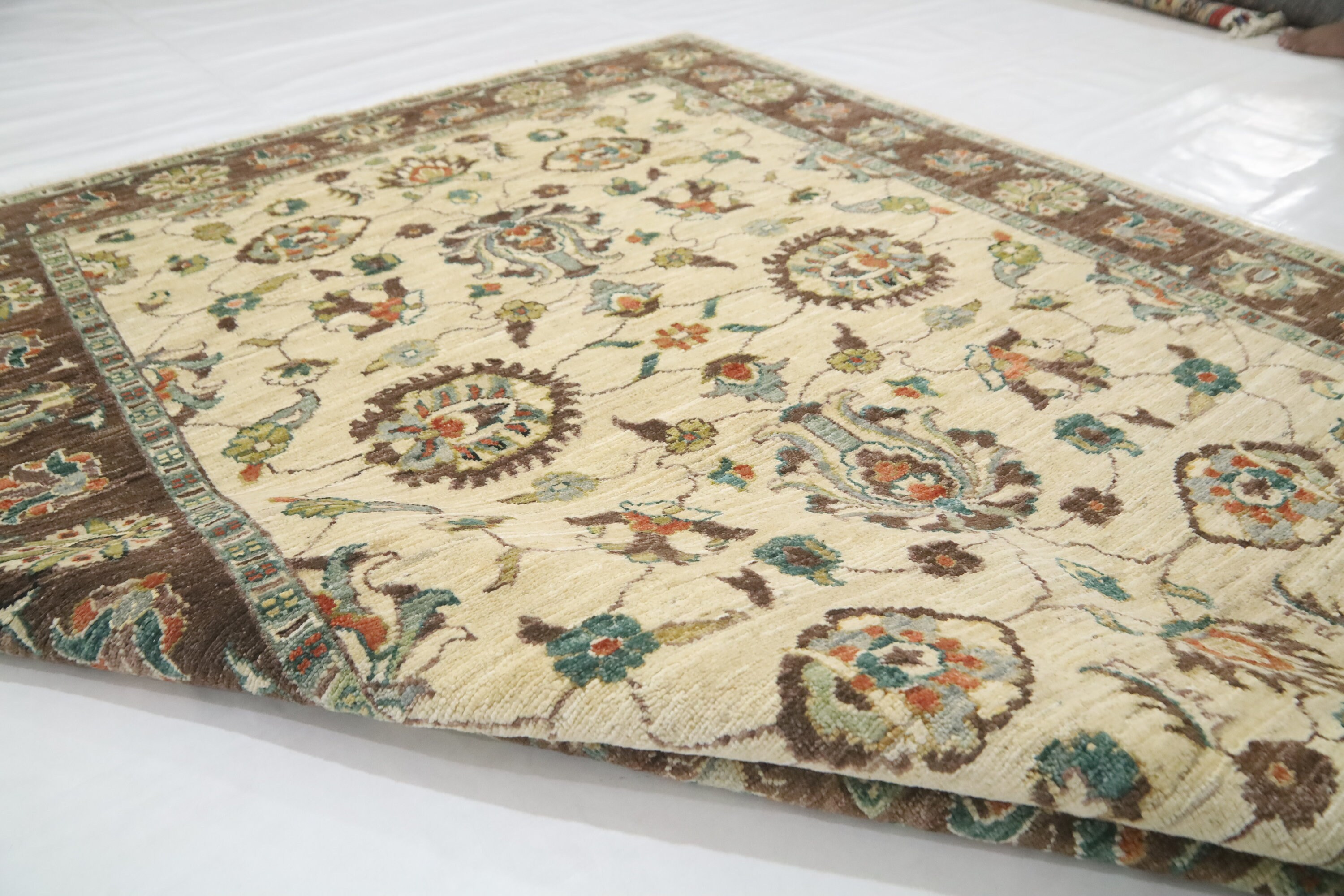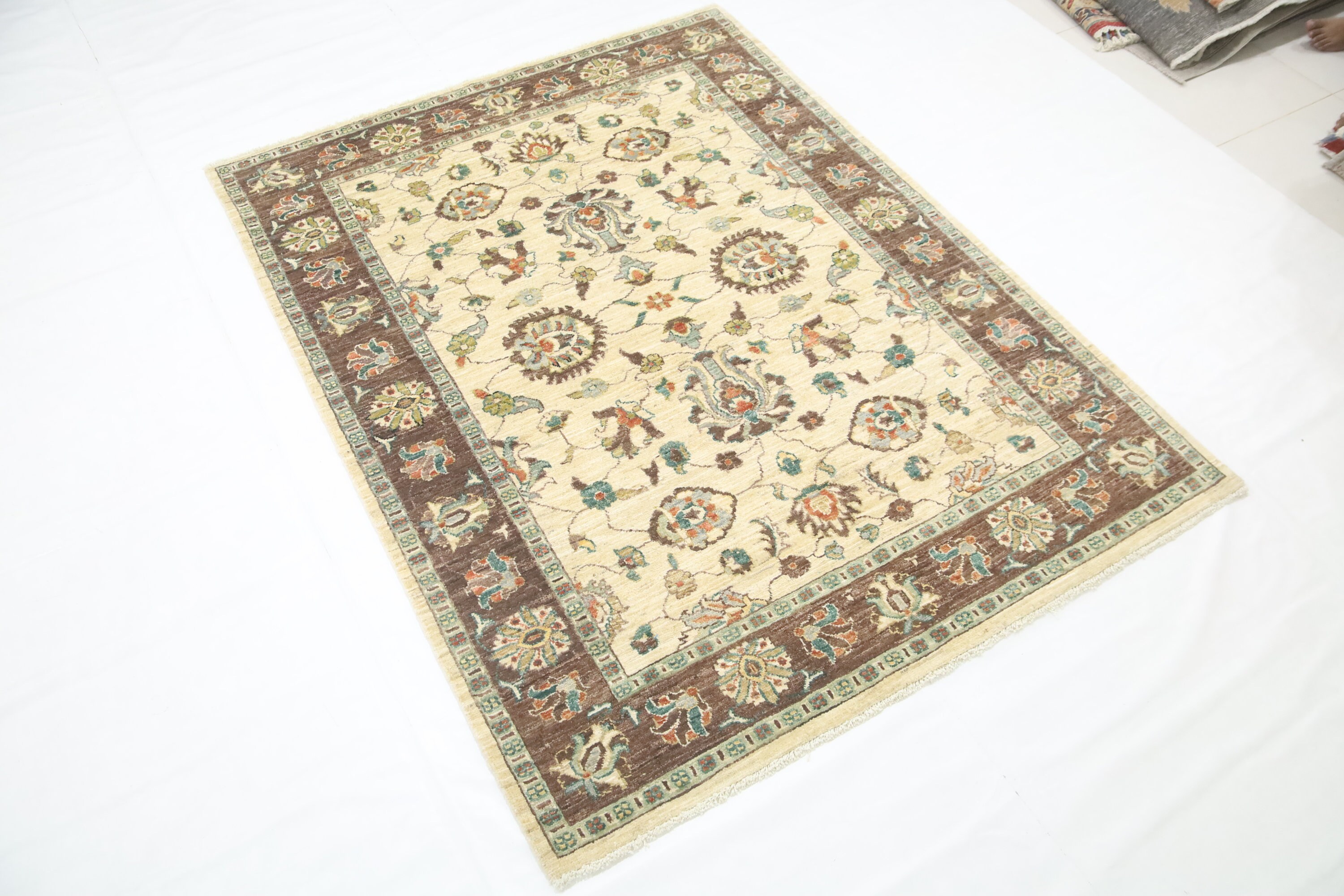 5x7 Feet Chobi Area Rug - Beige Brown Afghan Hand Made Traditional Fine Quality Wool Rug - Oriental Rug - Kitchen Rug - Foyer Rug - Dorm Rug