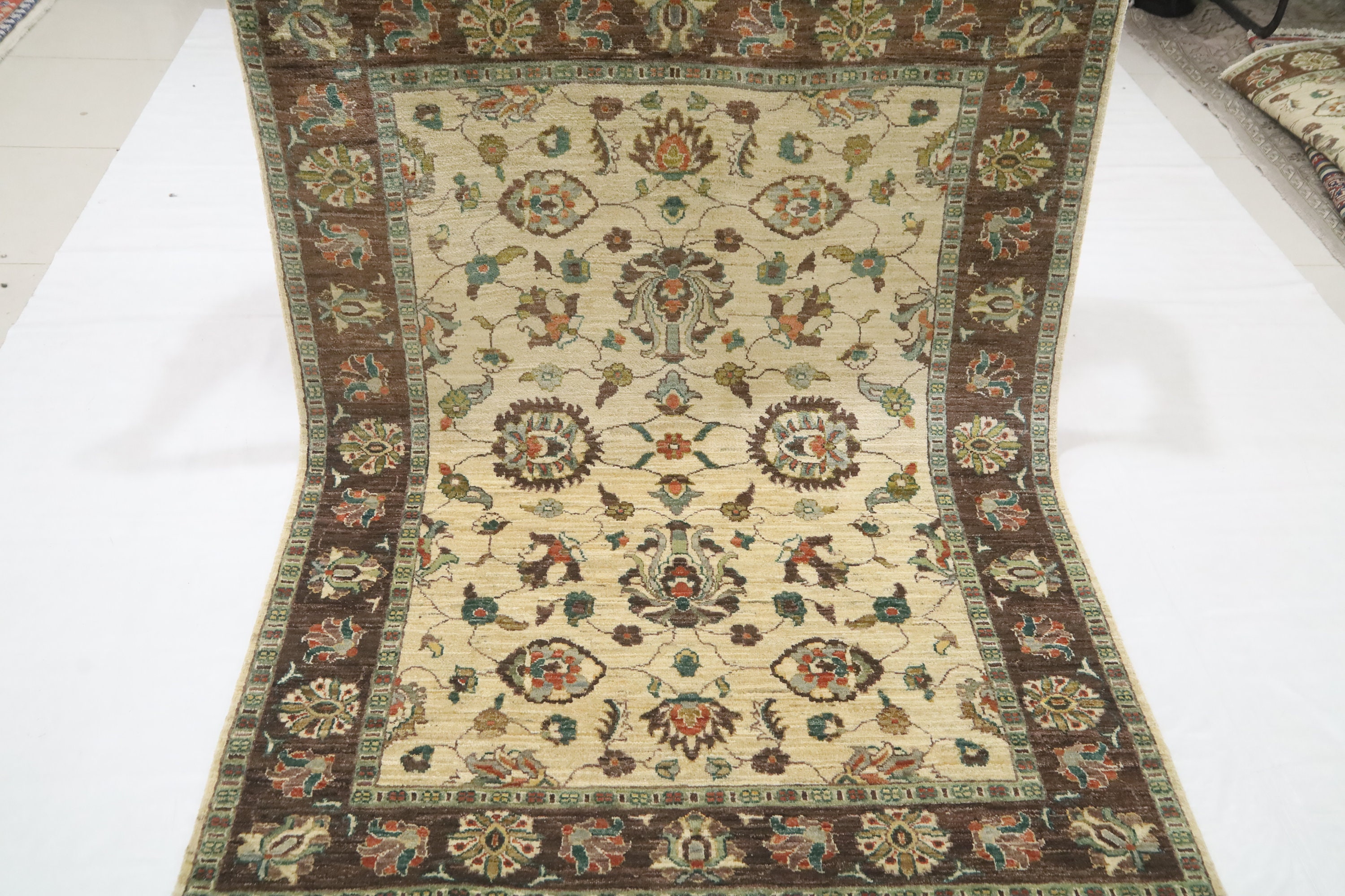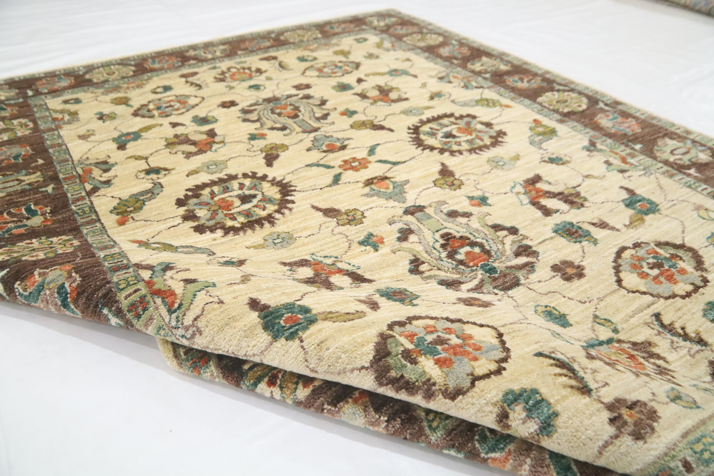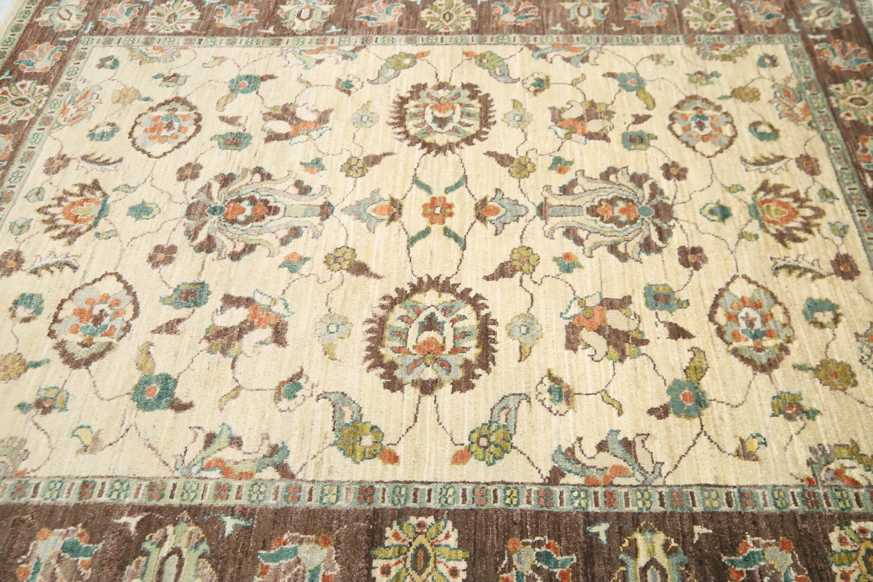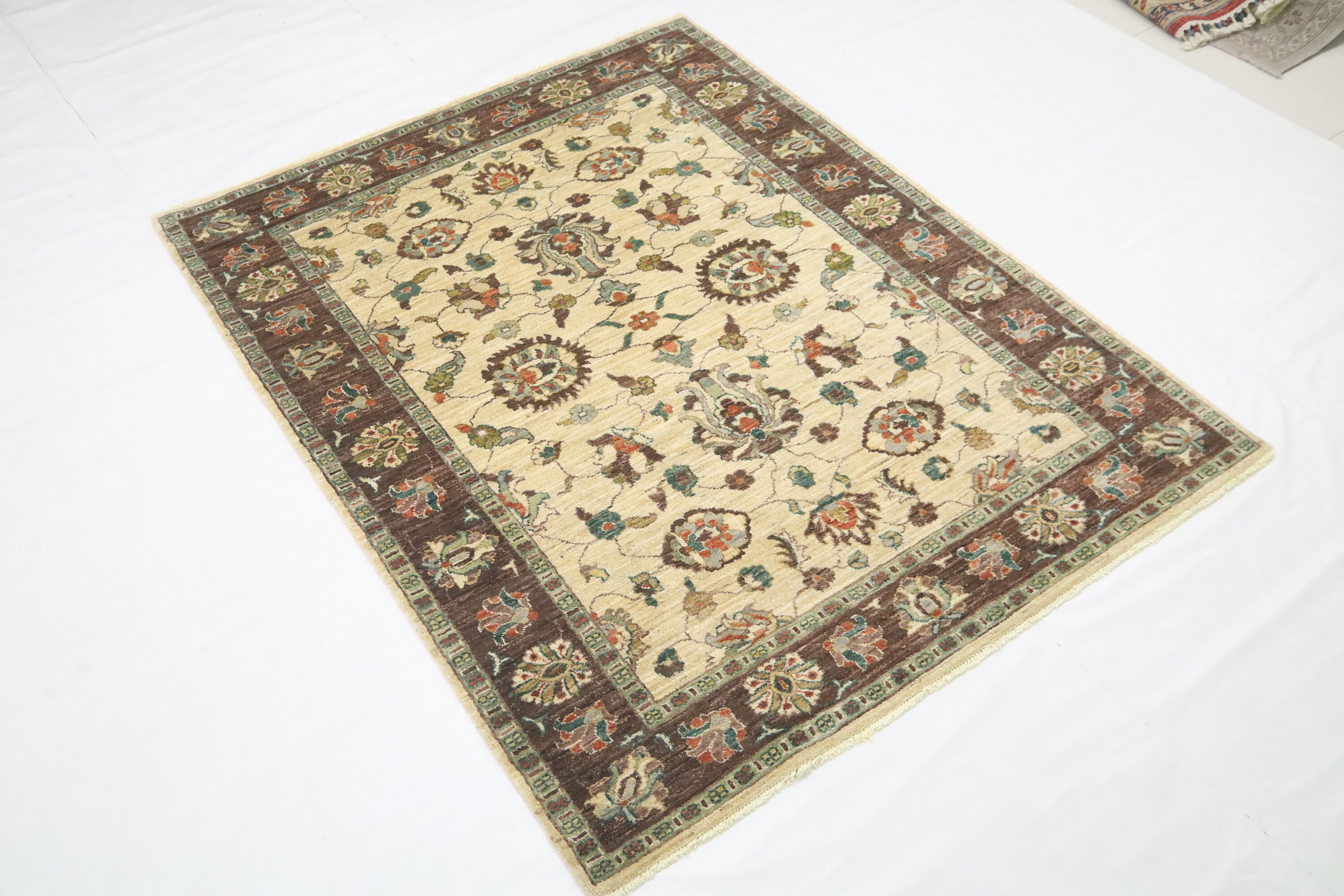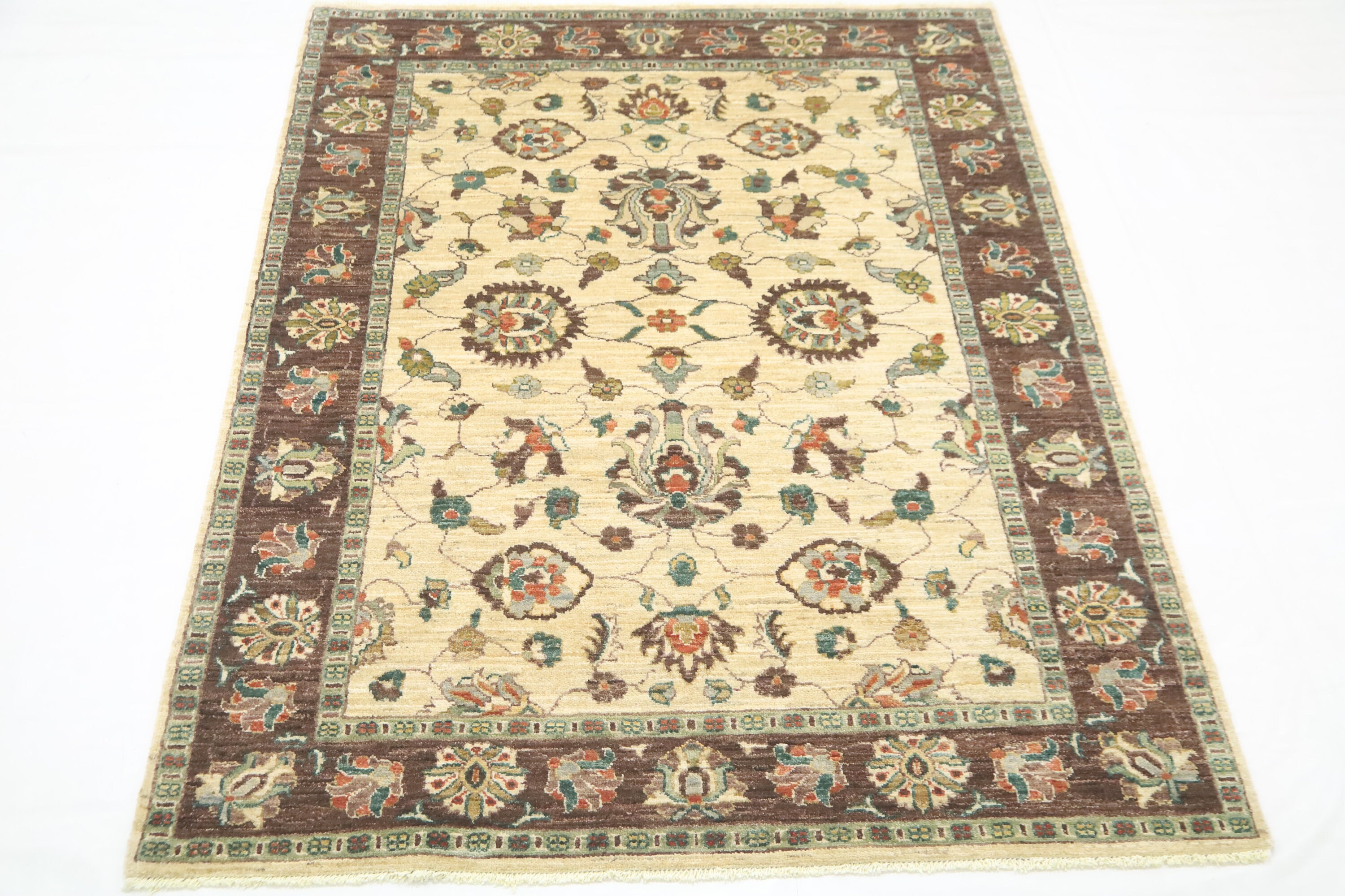 5x7 Chobi Area Rug - Beige Brown Wool Rug - Afghan Handmade Rug - Floral Rugs - Traditional Rugs - Foyer Rug - Bedroom Rug - Living Room Rug