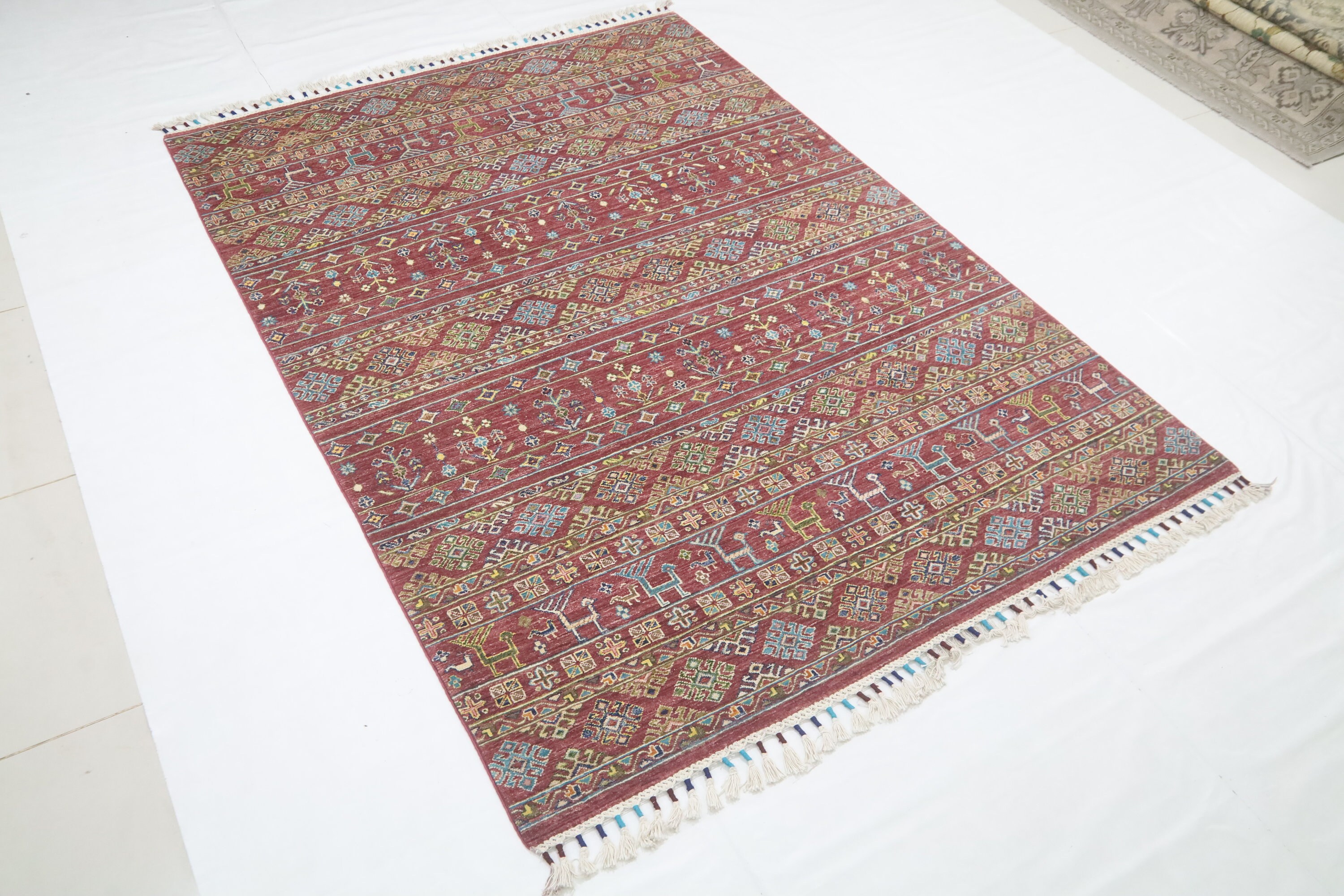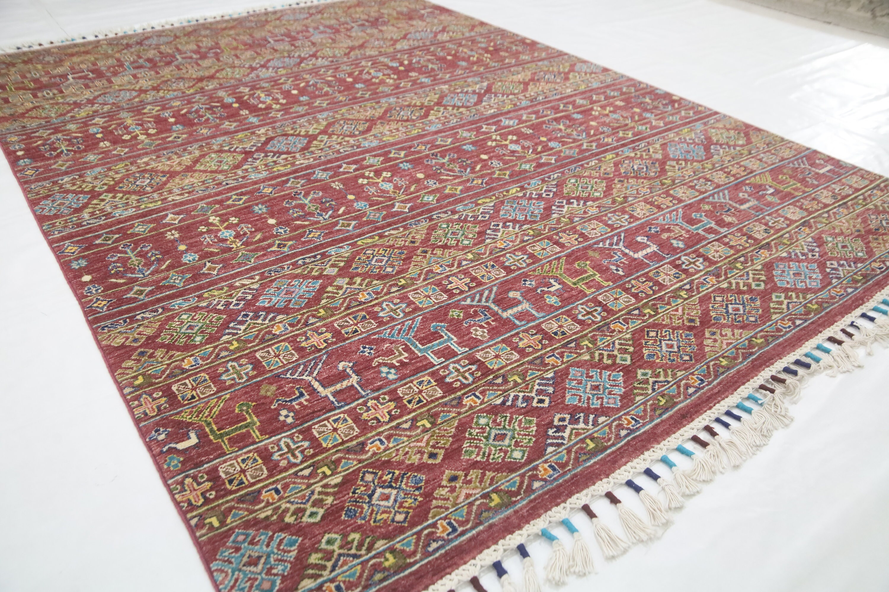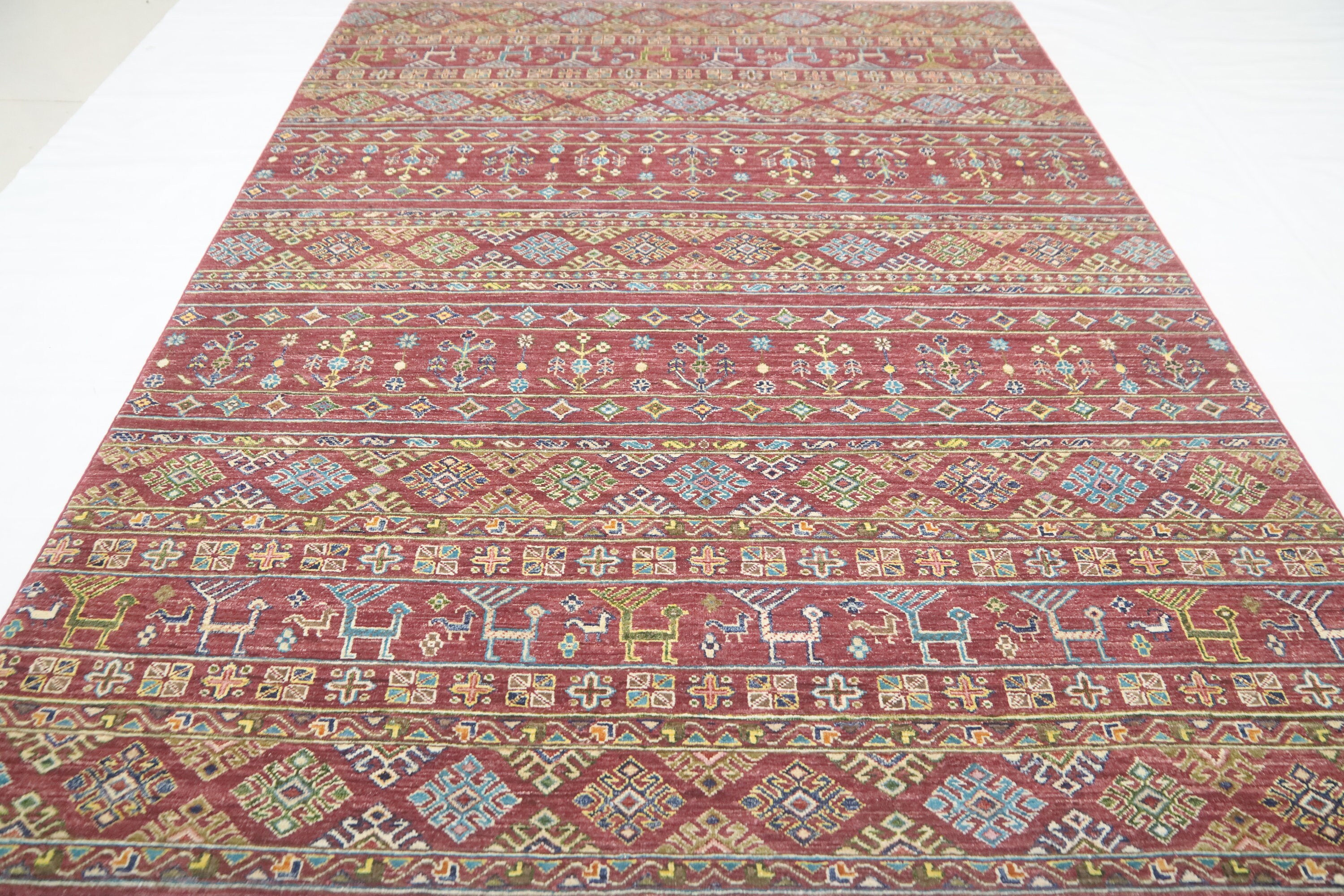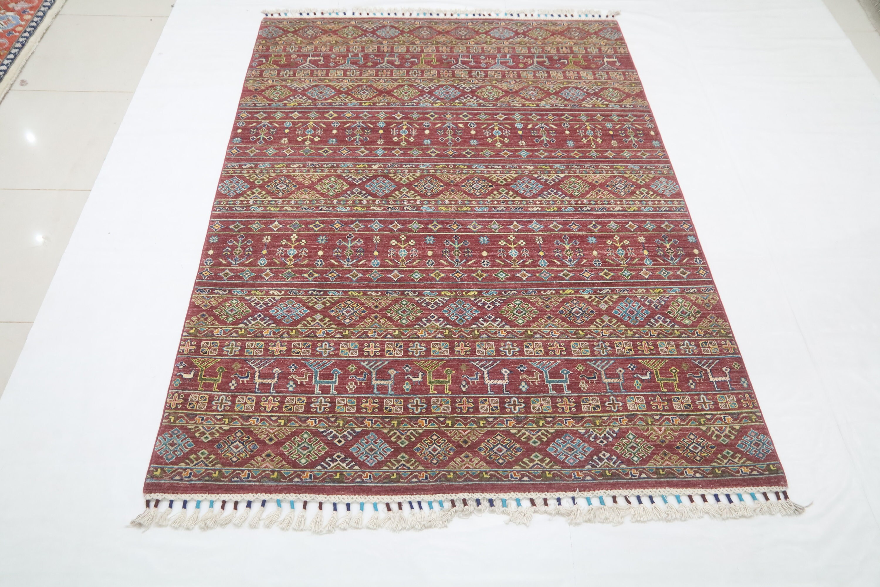 6x8 Tribal Khorjin Area Rug - Red Afghan Hand Made Oriental Fine Quality Wool Rug - Animal Rug - Geometric Rug - Bedroom Rug - Office Rug