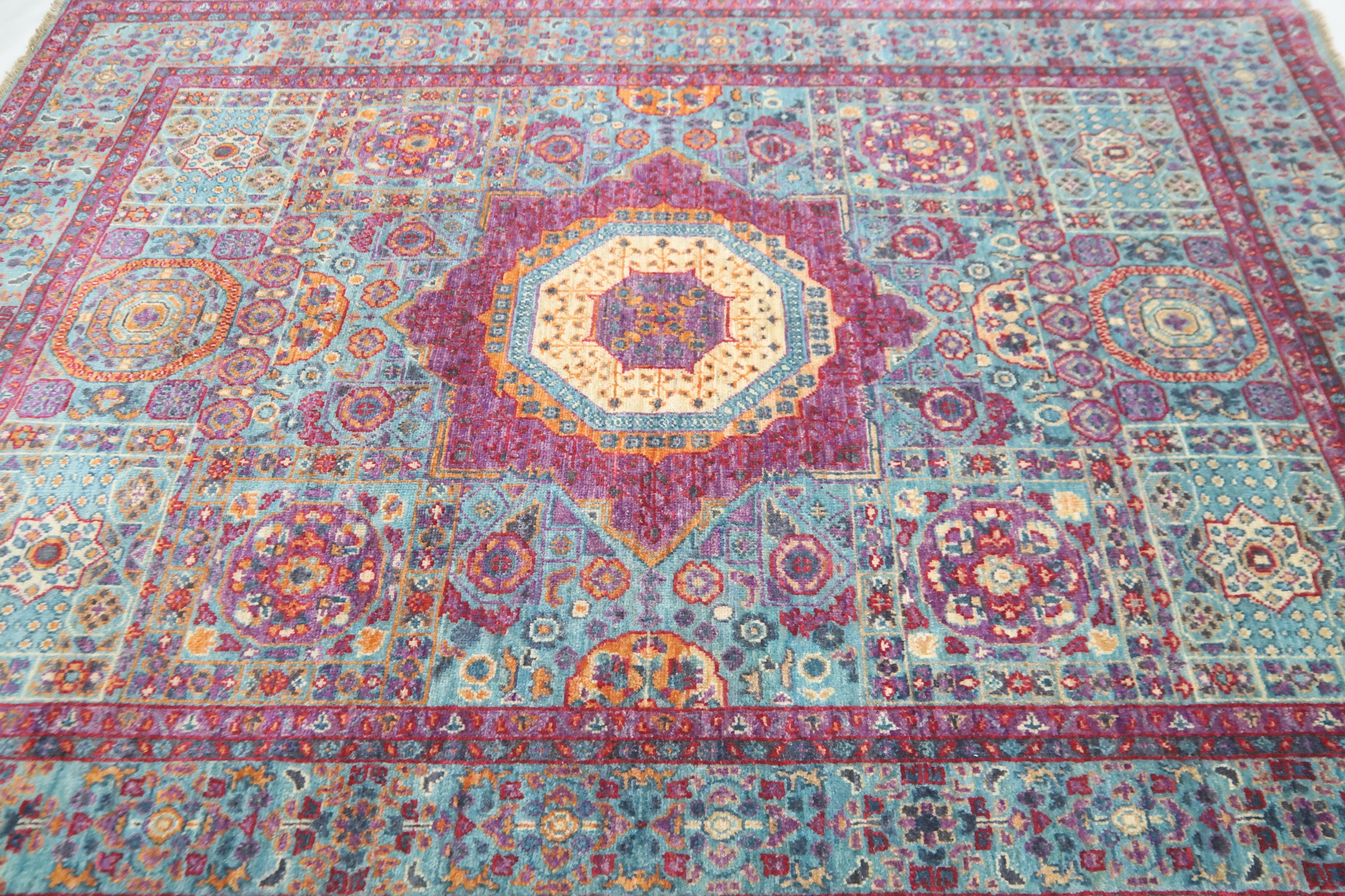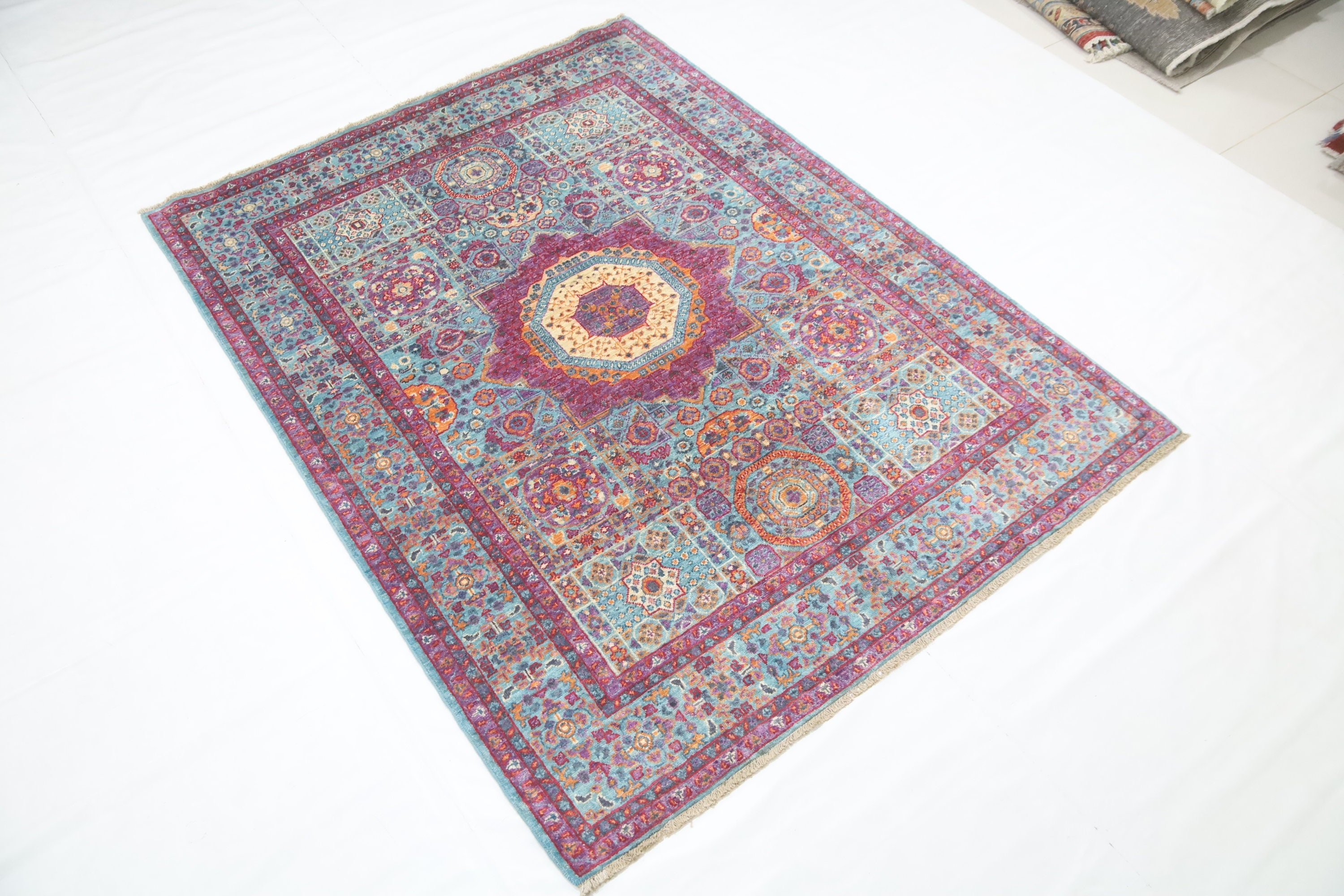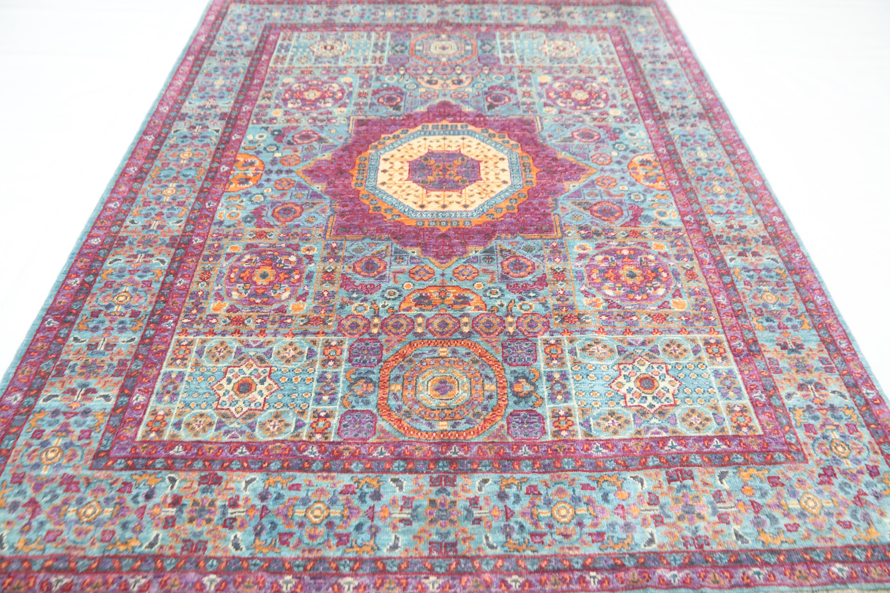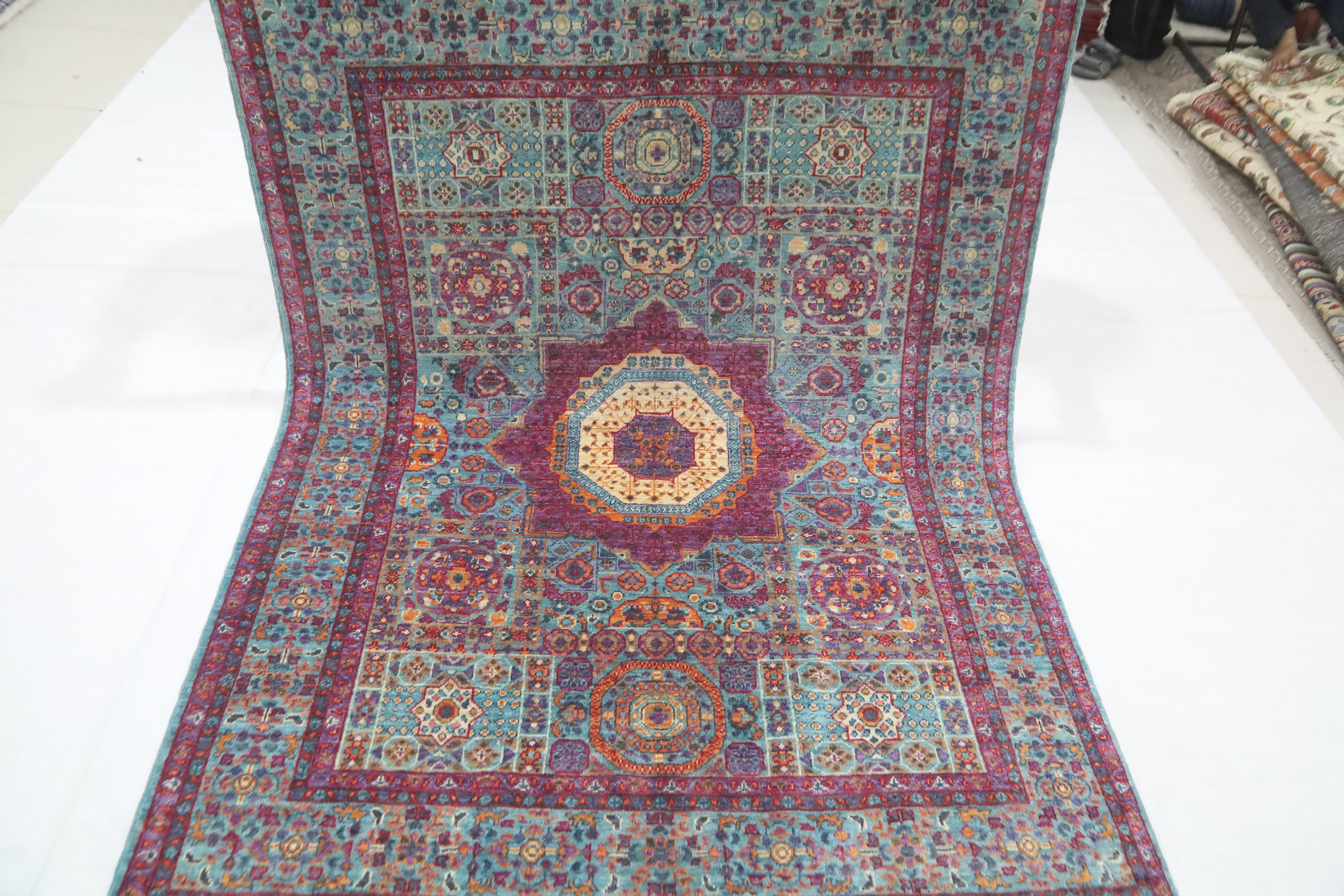 5x7 Feet Mamluk Area Rug - Turquoise Blue Turkish Hand Made Geometric High Quality Wool Rug - Bedroom Rug - Kitchen Rug - Hallway Rug
