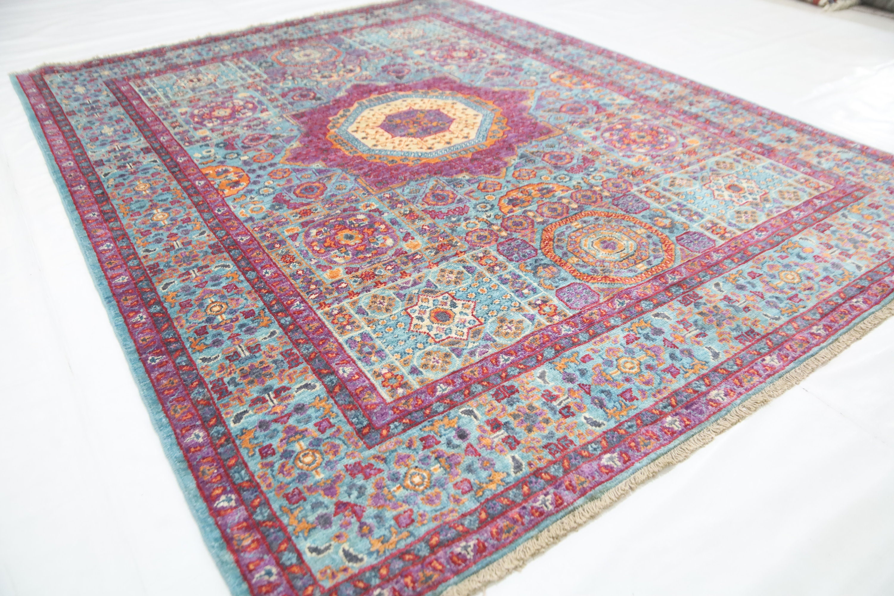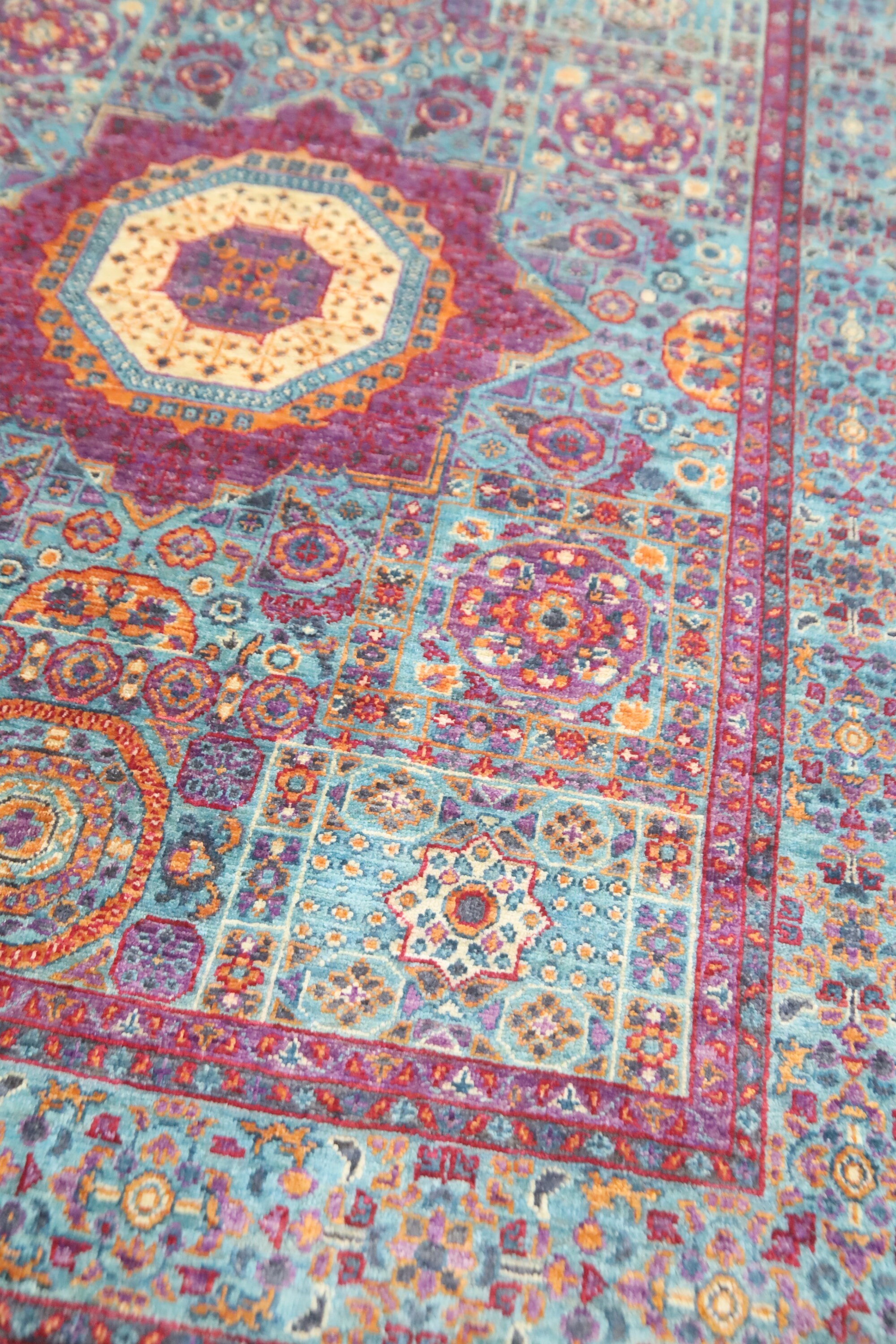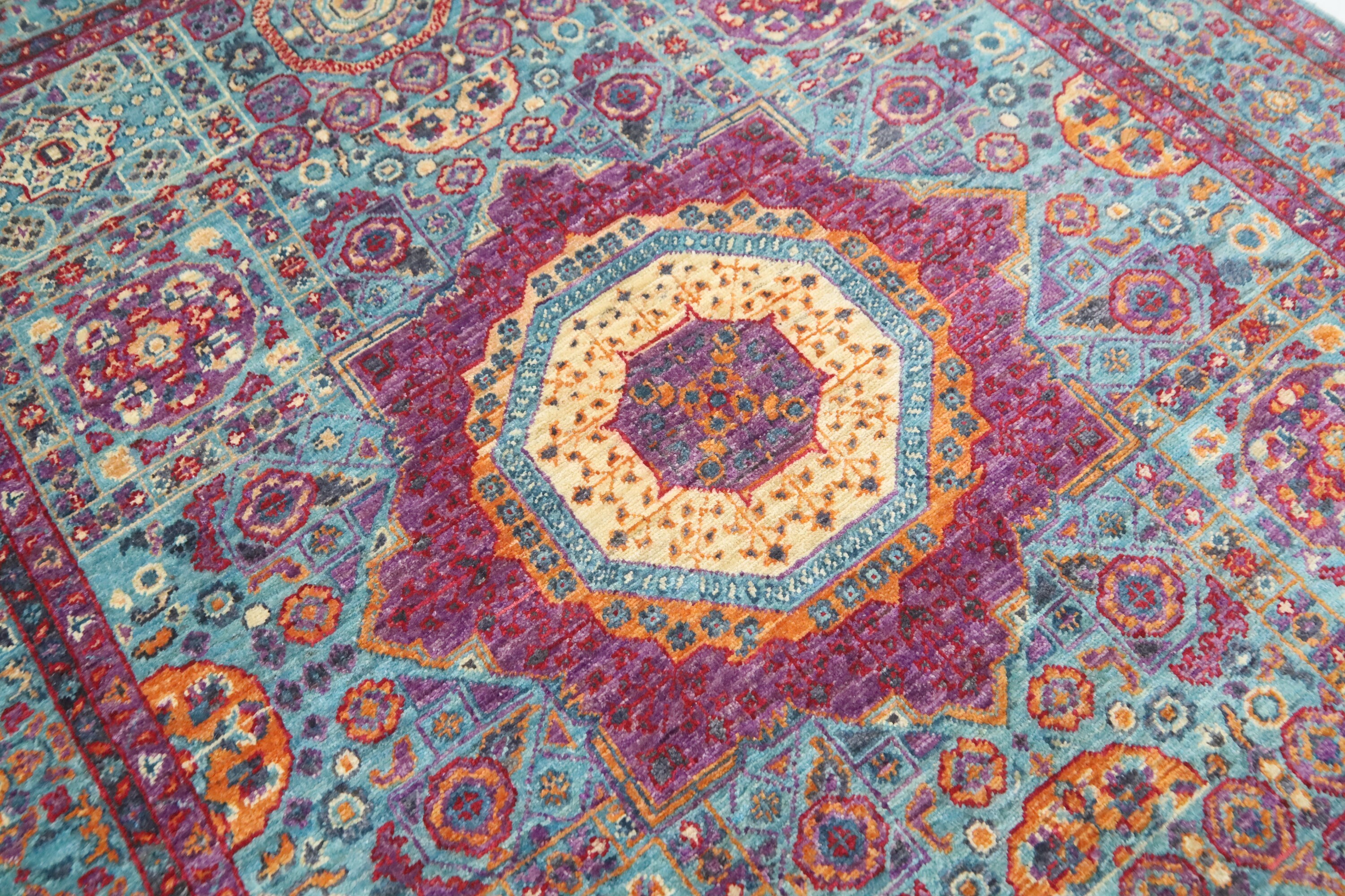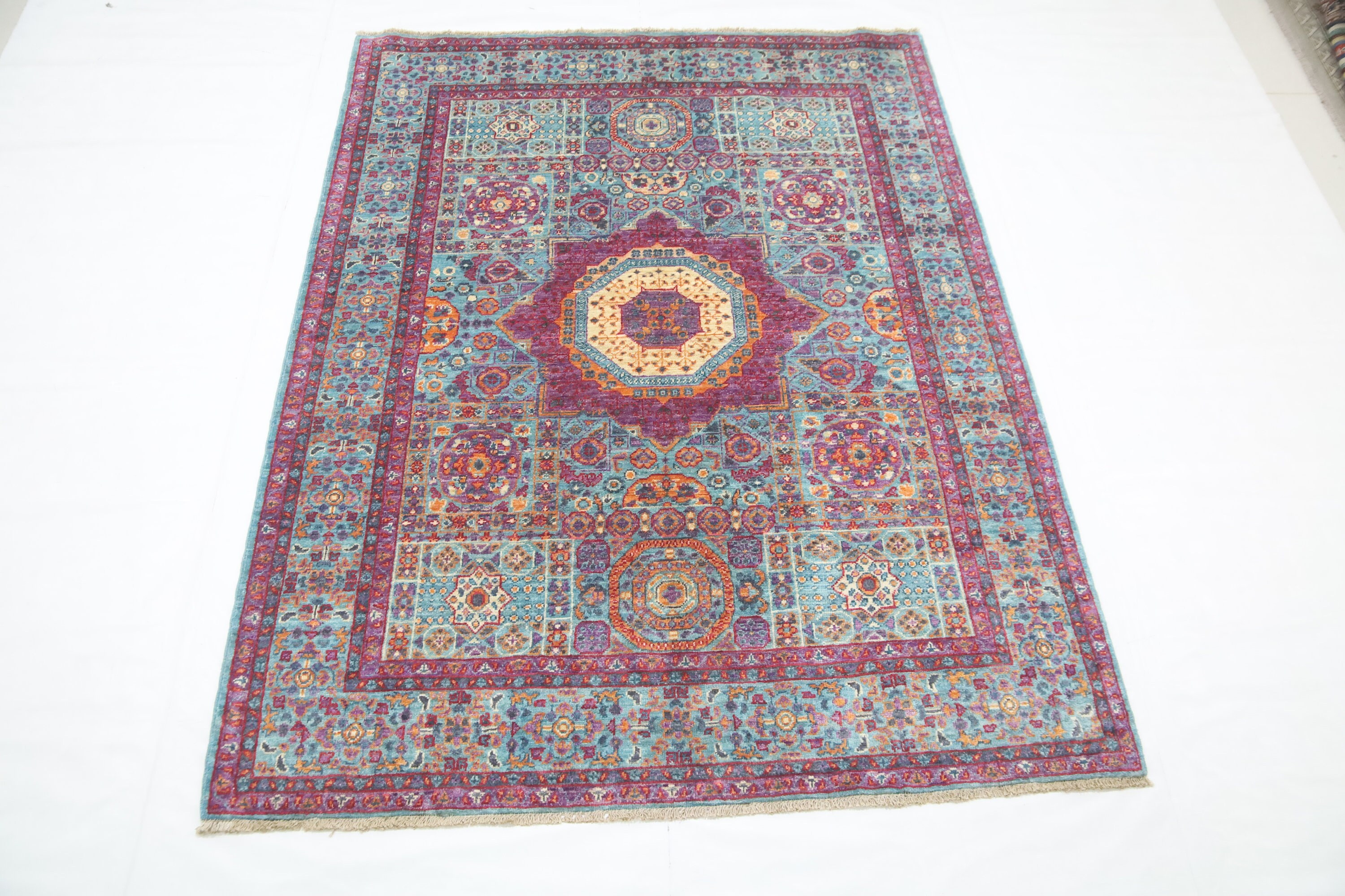 5x7 Feet Mamluk Area Rug - Turquoise Blue Turkish Hand Made Geometric High Quality Wool Rug - Bedroom Rug - Kitchen Rug - Hallway Rug