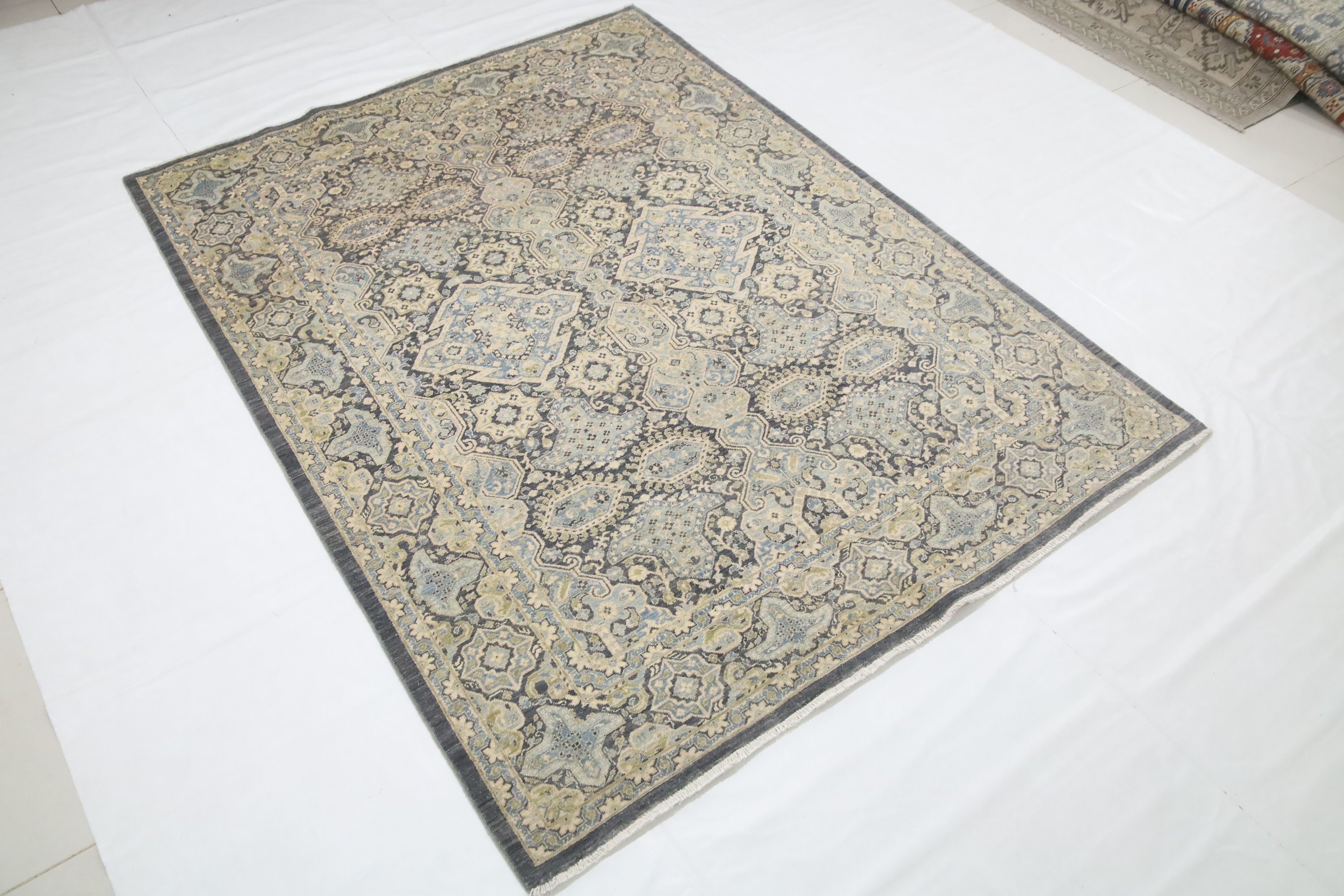 6x8 Turkish Mamluk Area Rug - gray Black Hand Made Traditional High Quality Wool Rug - Oriental Rug - Bedroom Rug - Living Room Rug