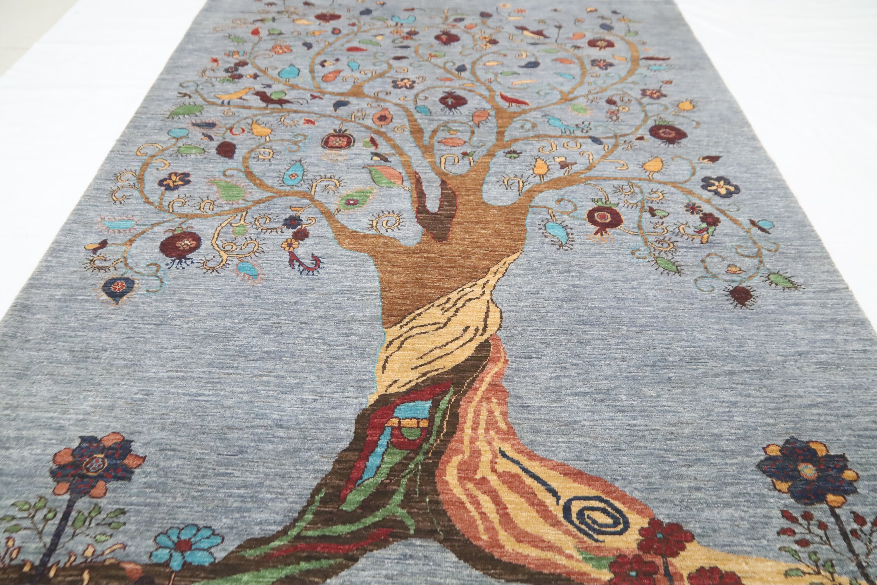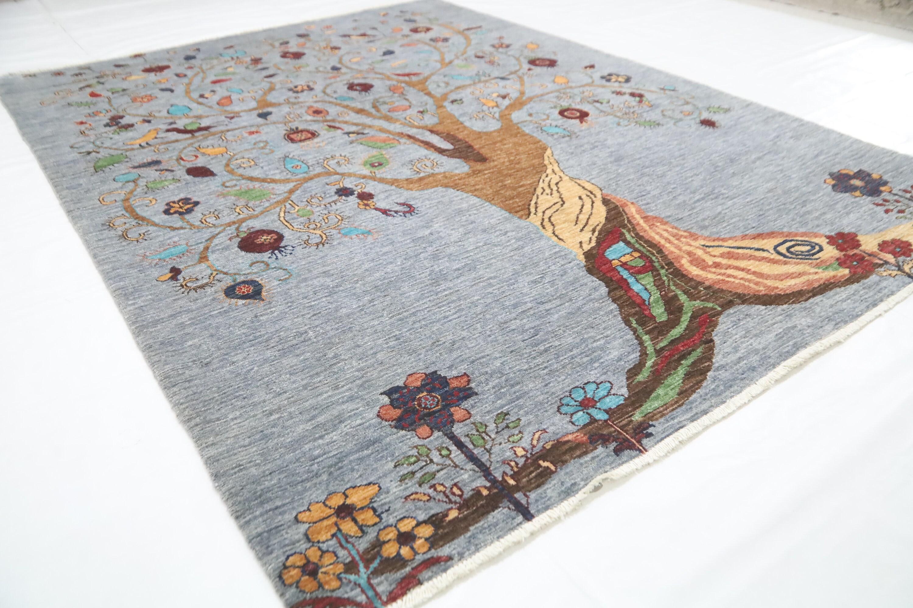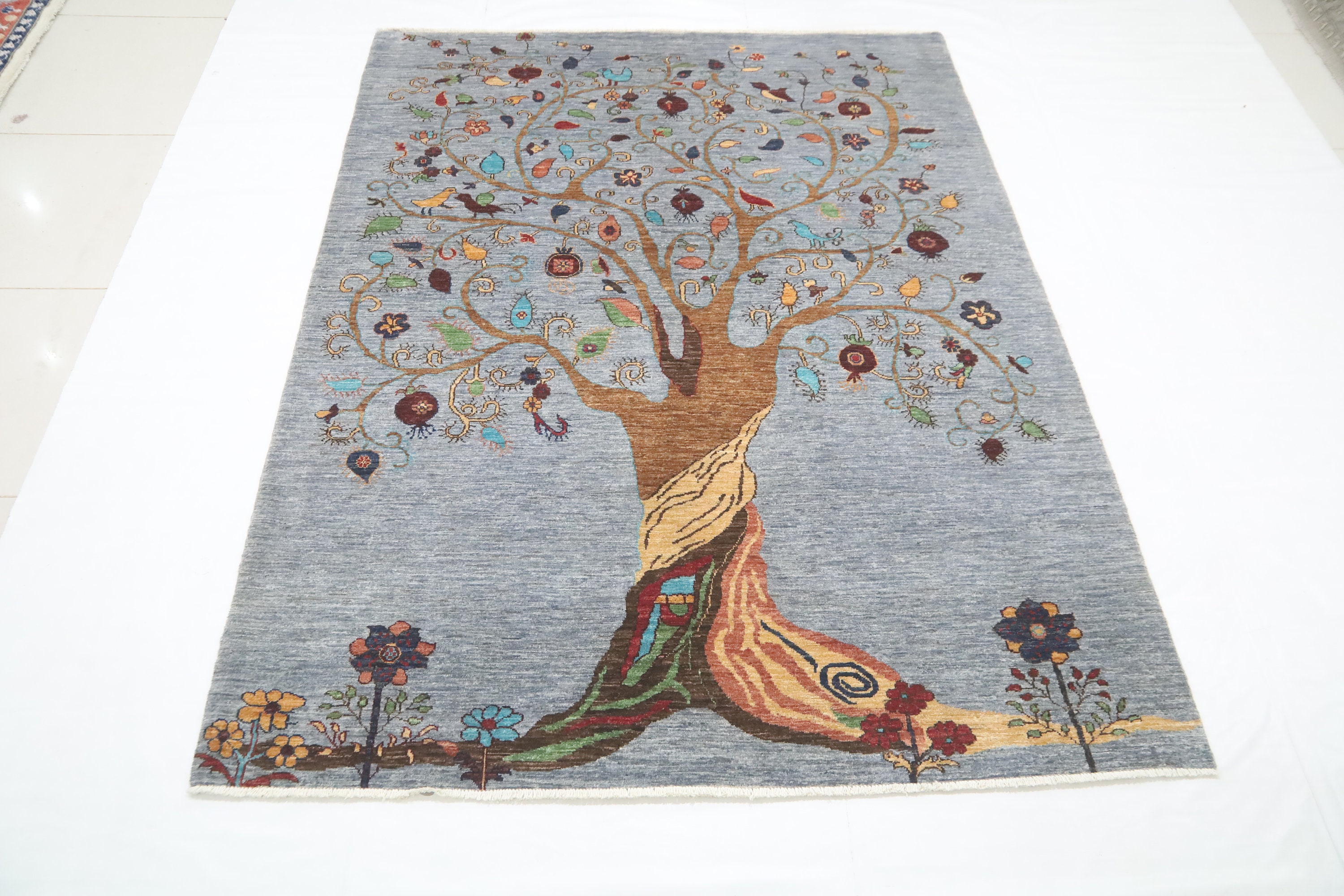6x8 Pomegranate Tree Of Life Gabbeh Area Rug - Gray Afghan Hand Made Tribal Fine Quality Wool Rug - Bedroom Rug - Living Room Rug - Wool Rug