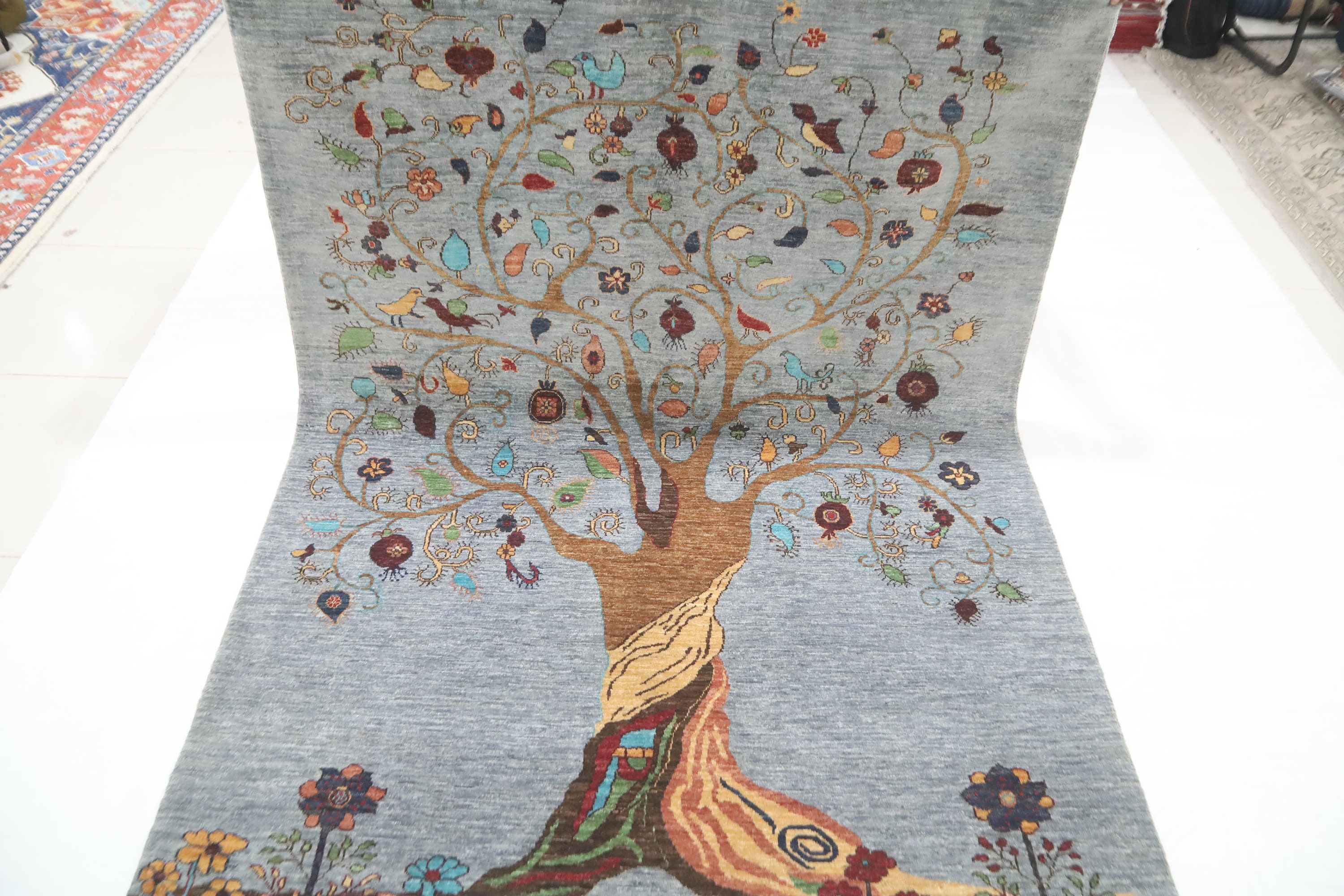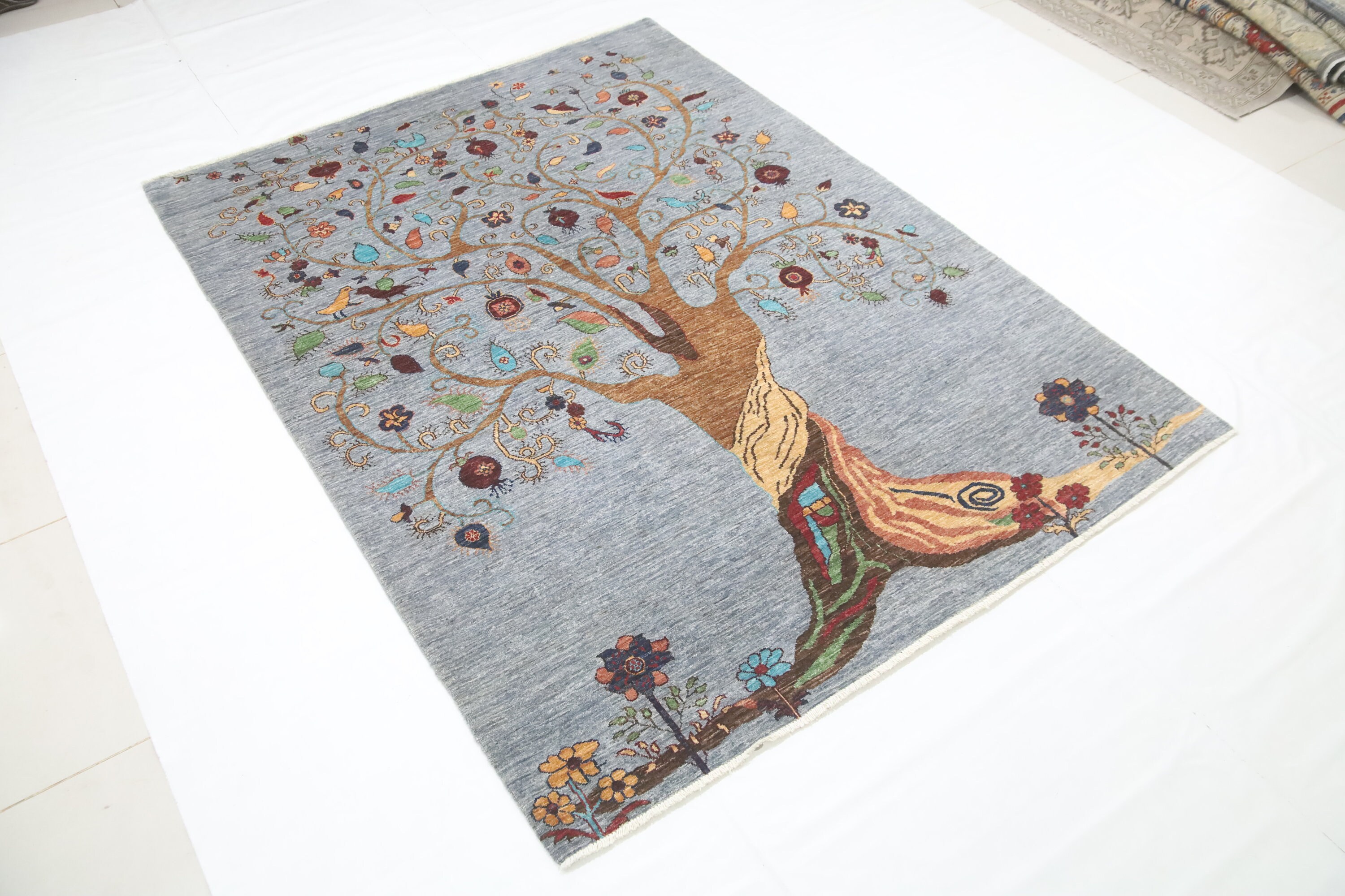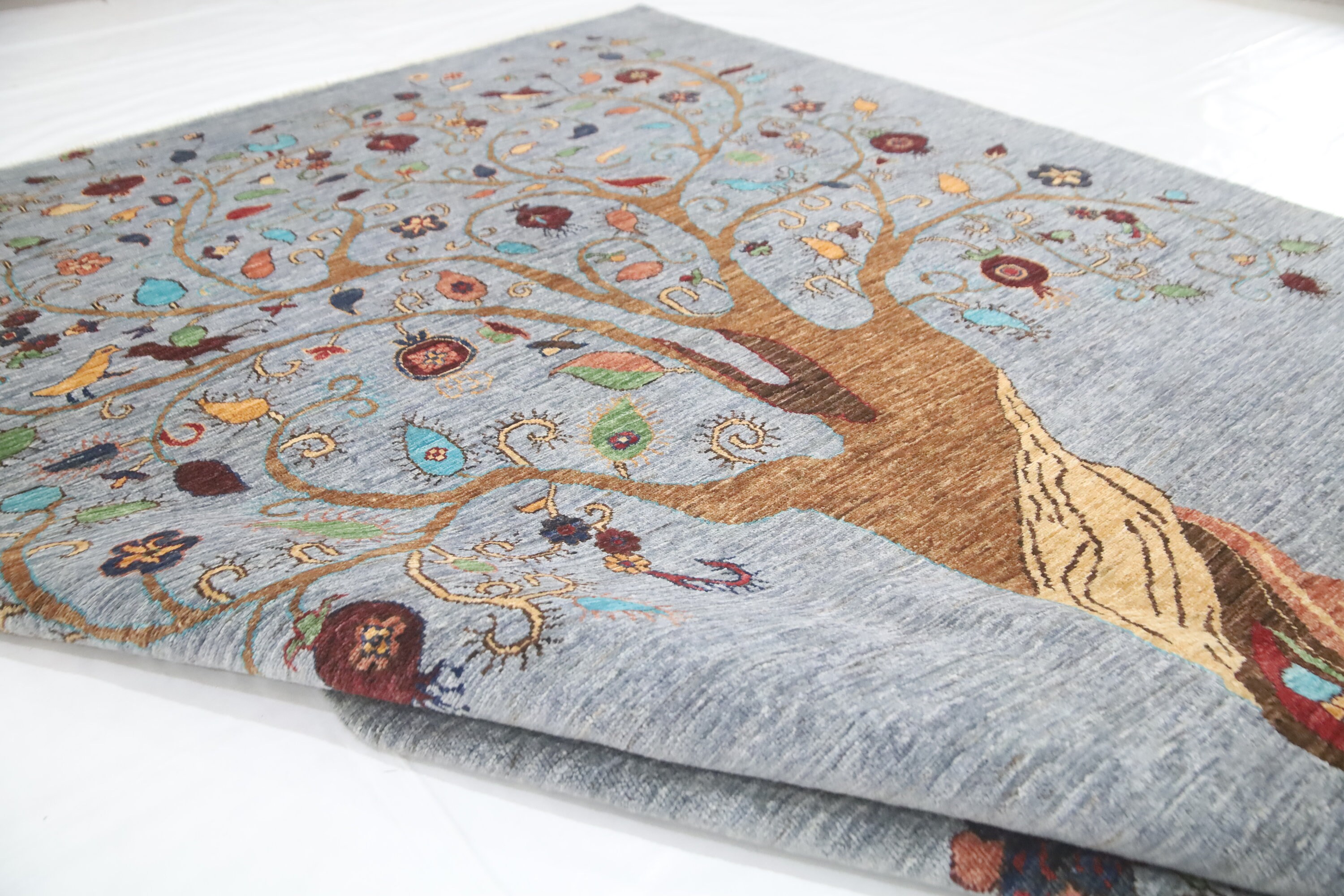 6x8 Pomegranate Tree Of Life Gabbeh Area Rug - Gray Afghan Hand Made Tribal Fine Quality Wool Rug - Bedroom Rug - Living Room Rug - Wool Rug