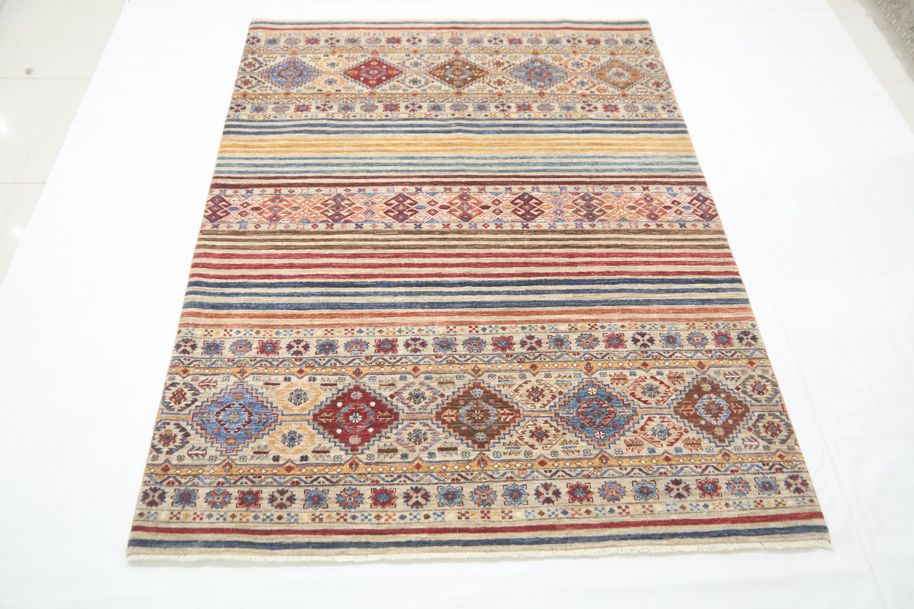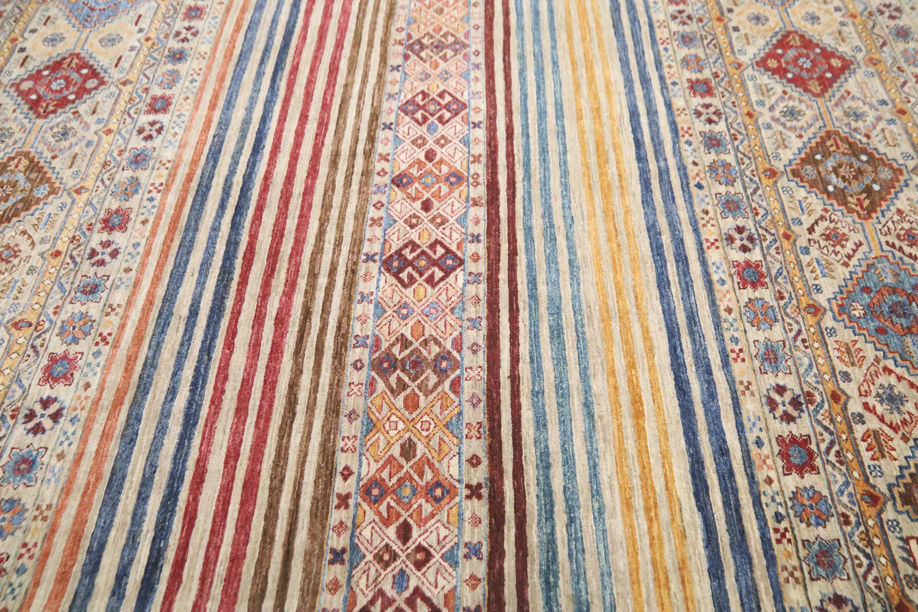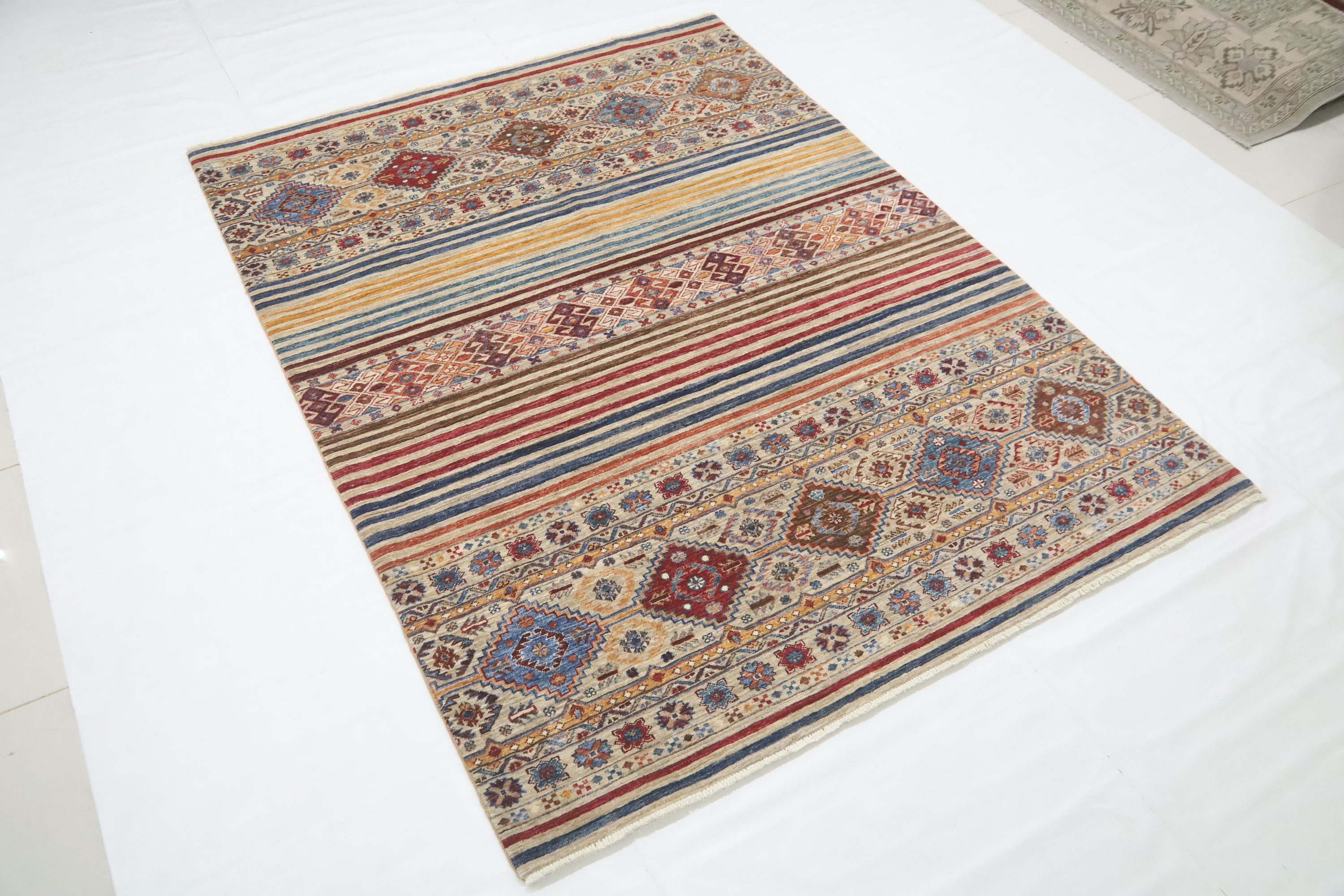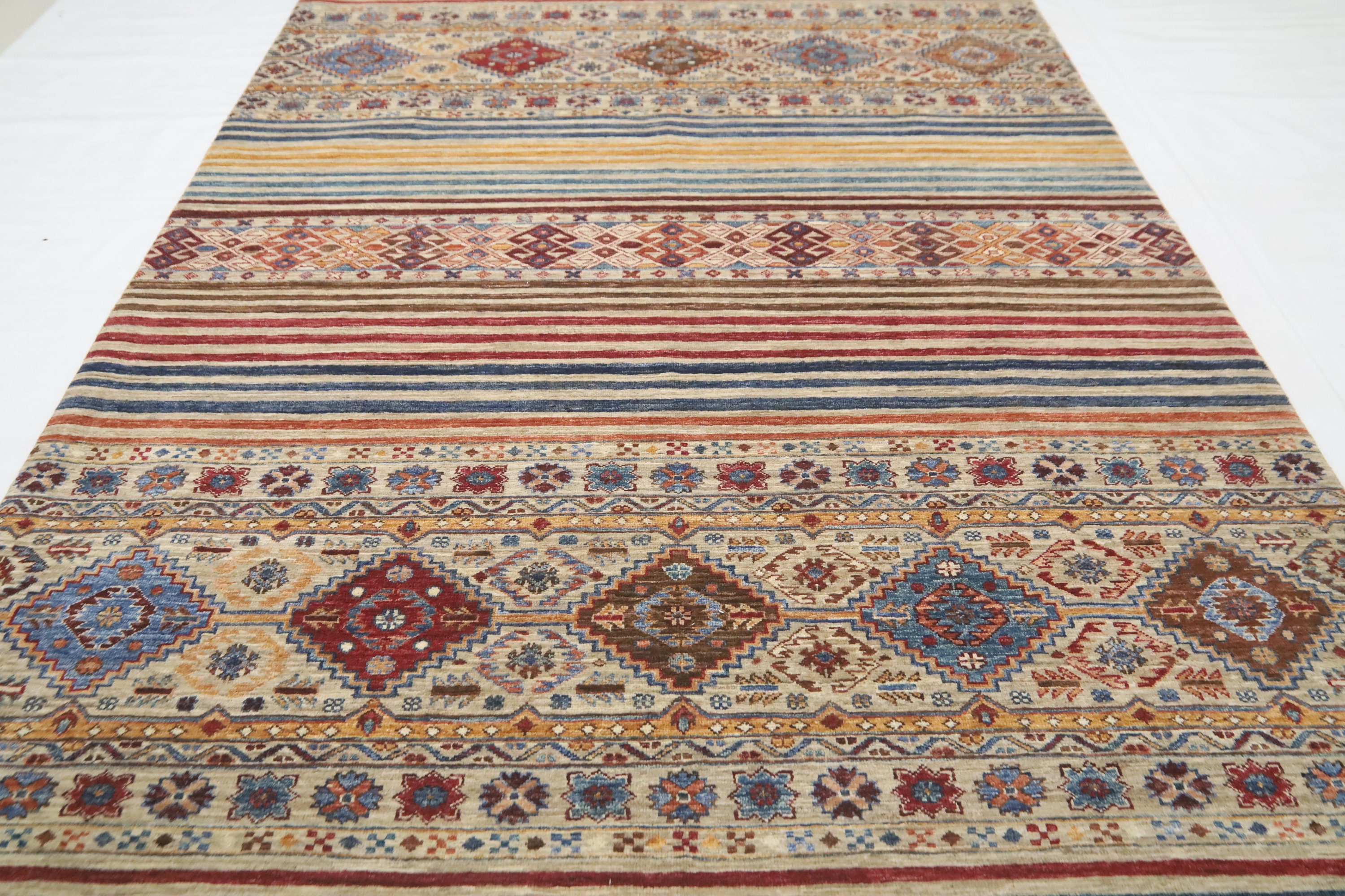 6x8 Khorjin Area Rug - Light Brown Afghan Hand Made Tribal Fine Quality Wool Rug - Striped Rug - Geometric Rug - Bedroom Rug - Office Rug
