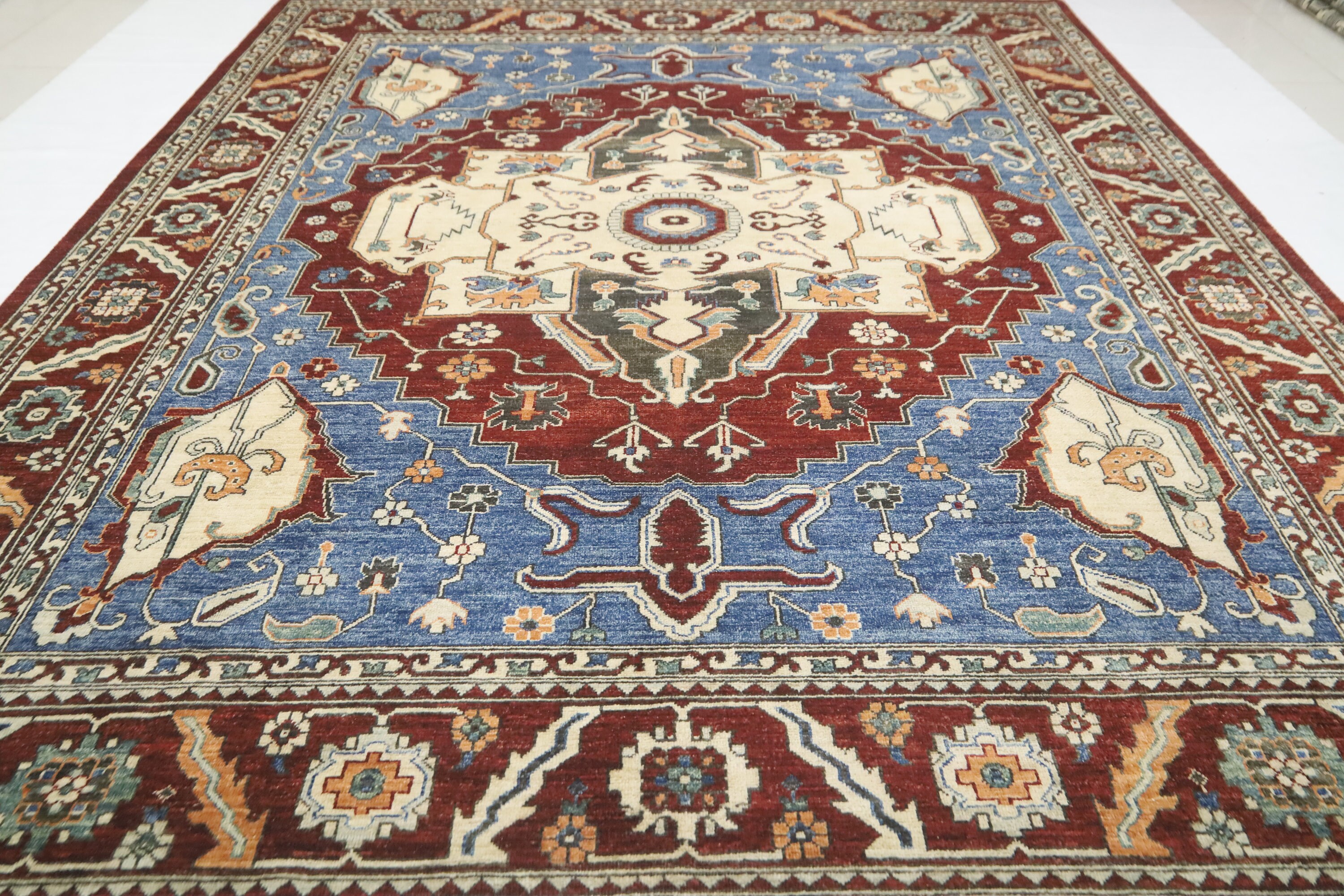 8x10 Heriz Fine Quality Area Rug - Blue Red Afghan Hand Made Traditional Organic Dye Wool Rug - Oriental Rug - Woolen Rug - Living Room Rug