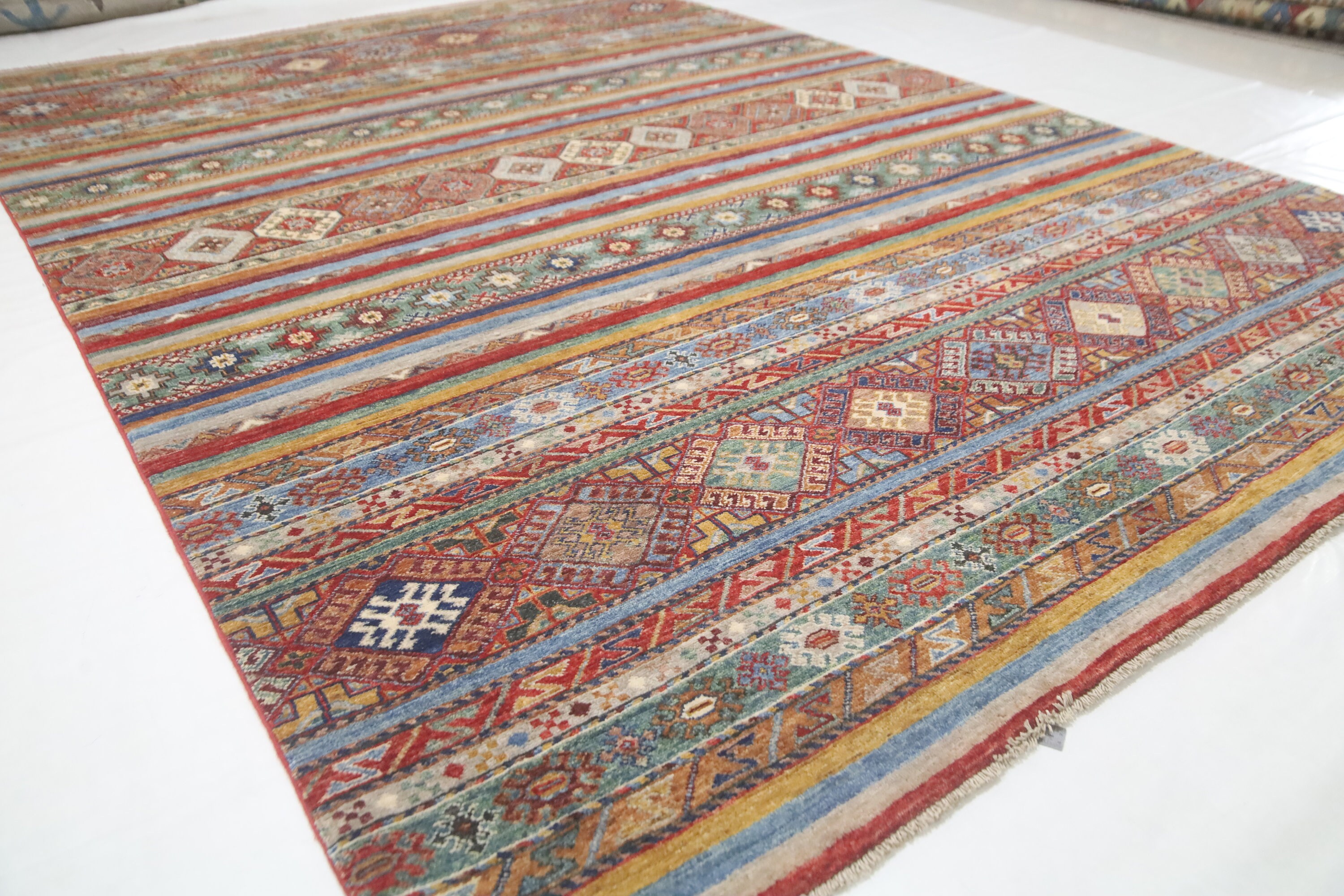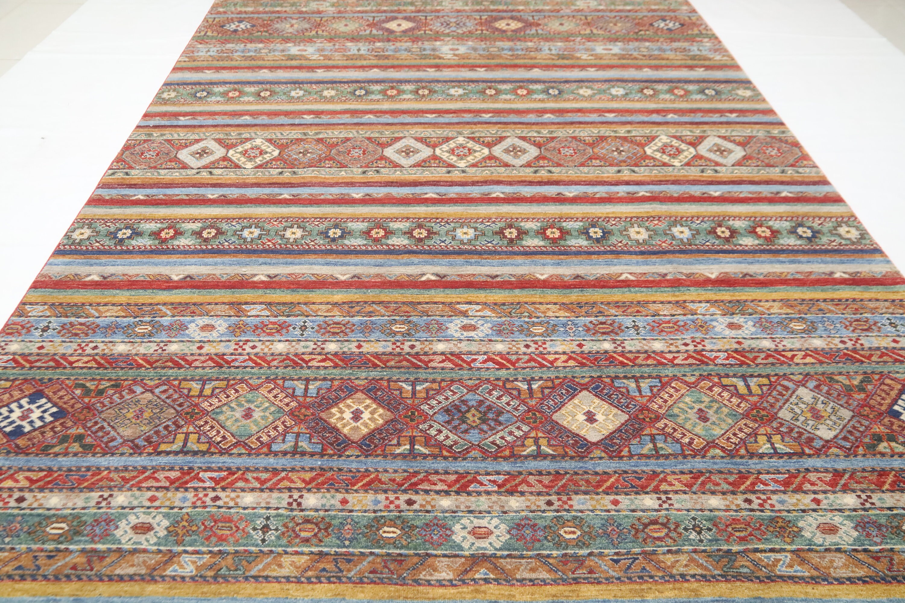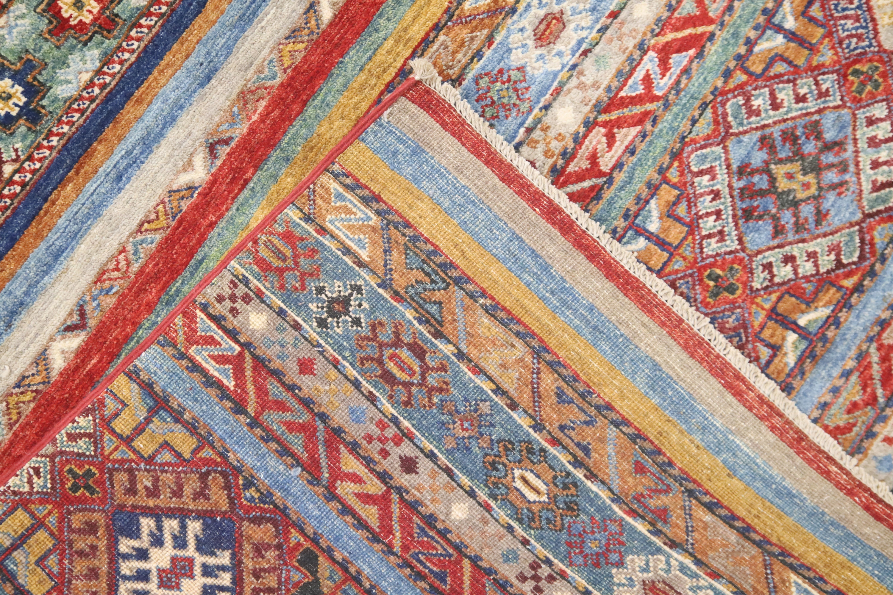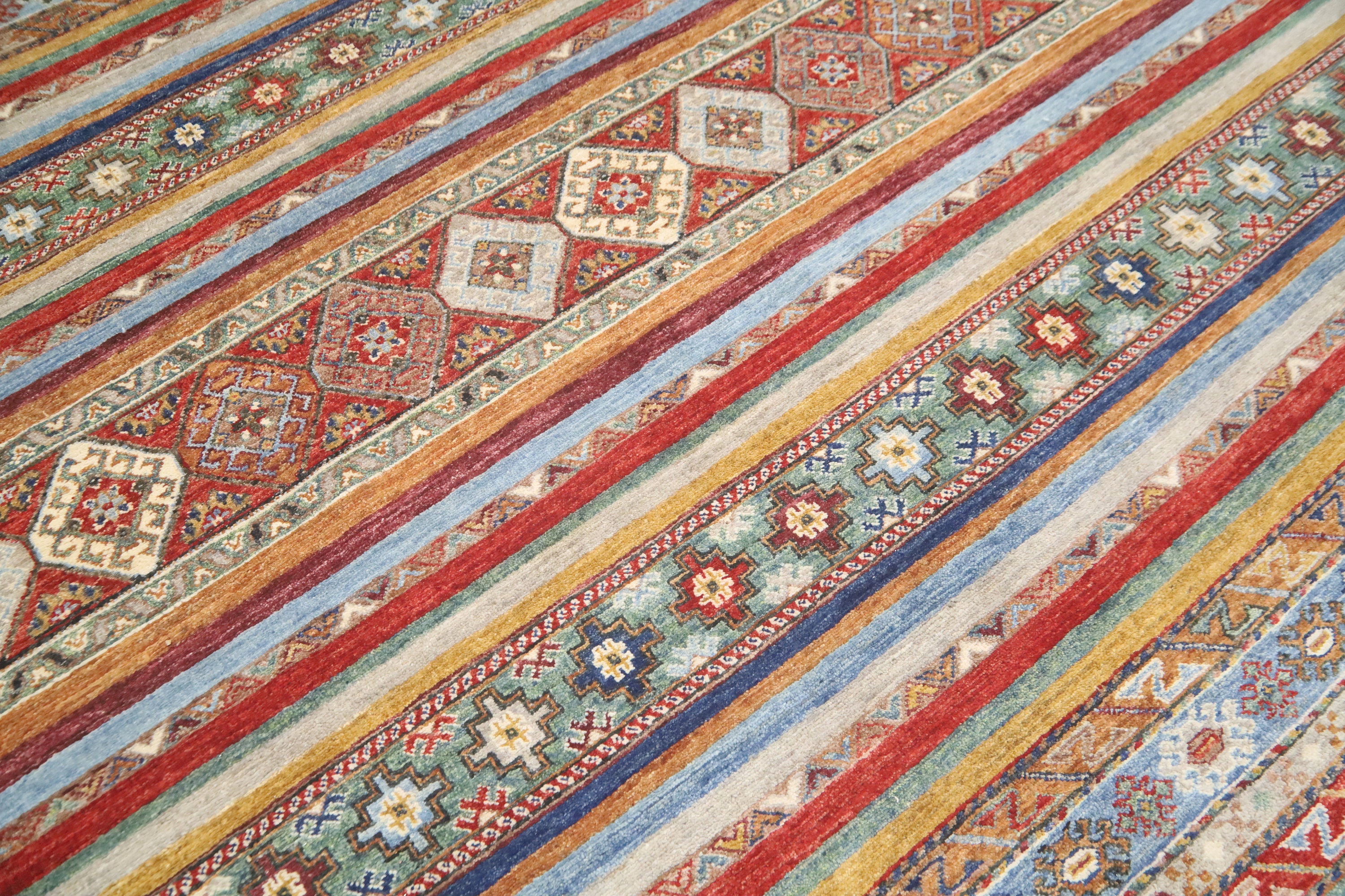 7x10 Tribal Khorjin Area Rug - Multi Color Afghan Hand Made Striped Organic Dye Wool Rug - Geometric Rug - Bedroom Rug - Traditional Rug