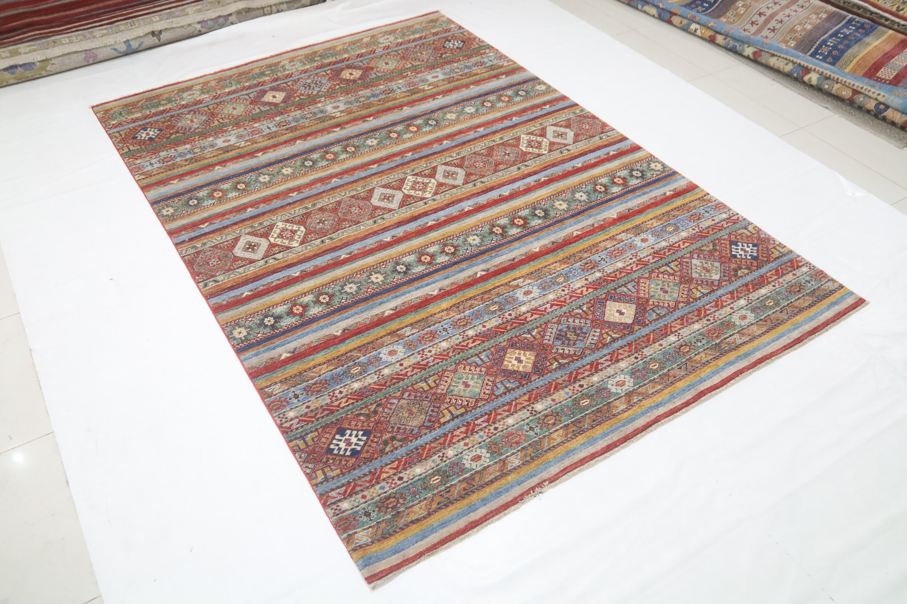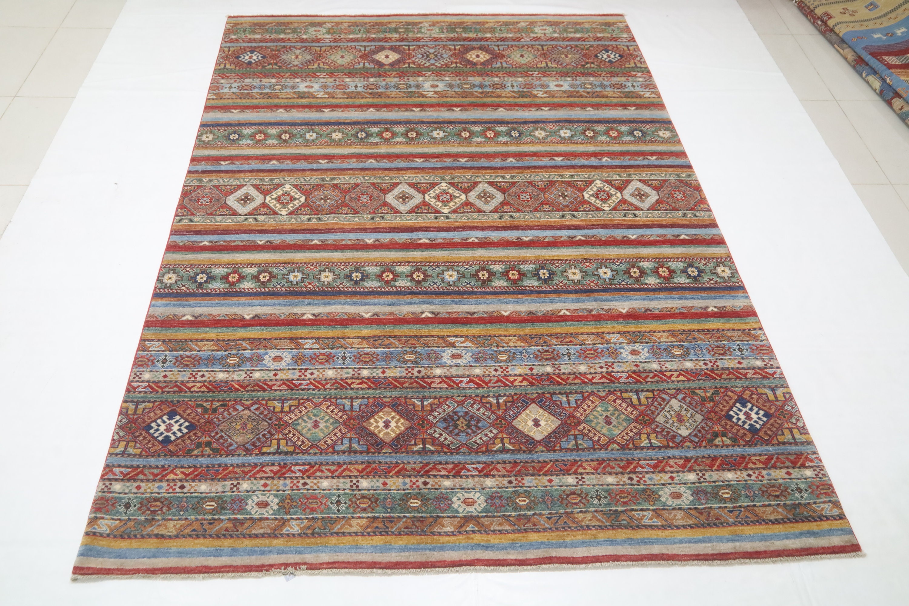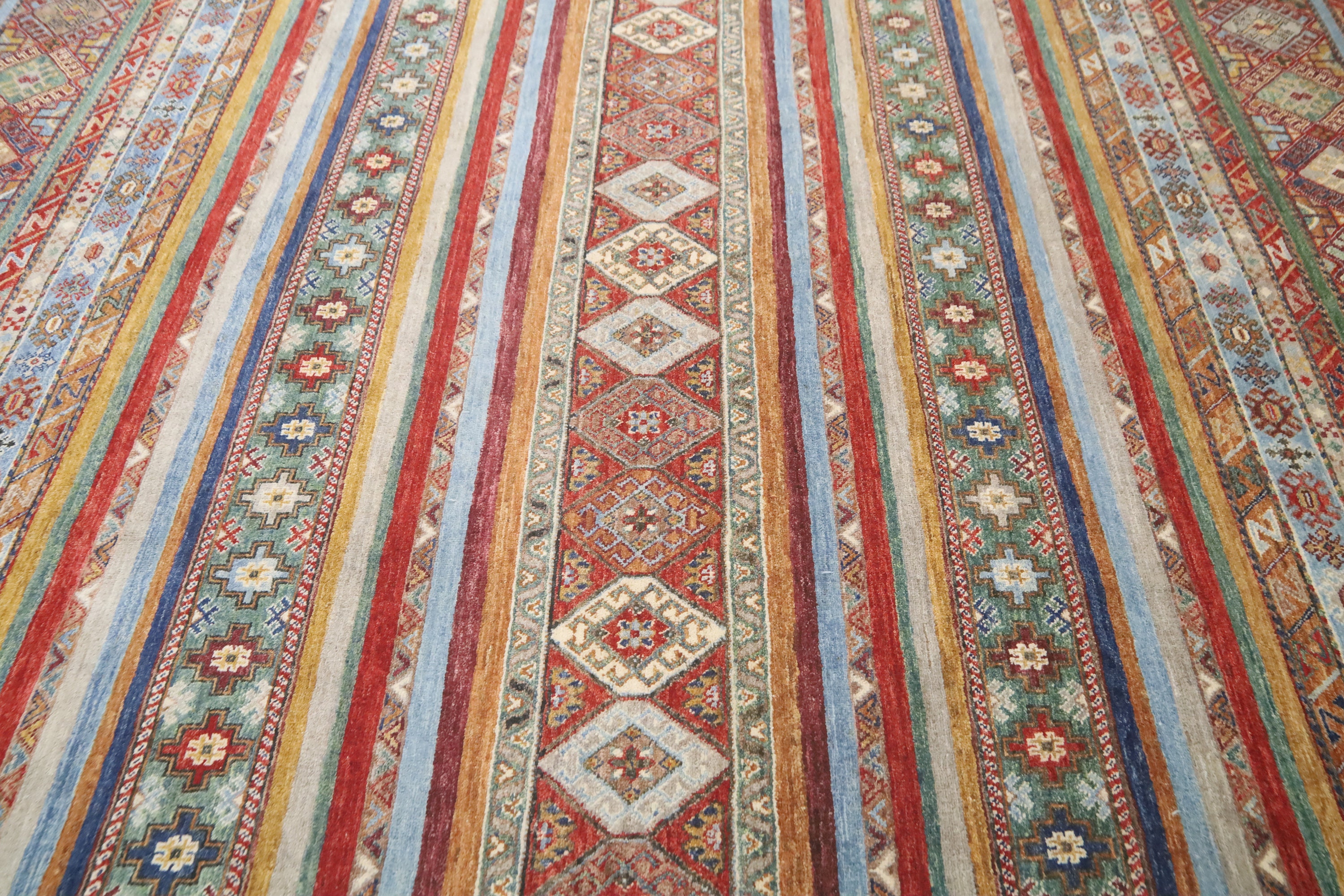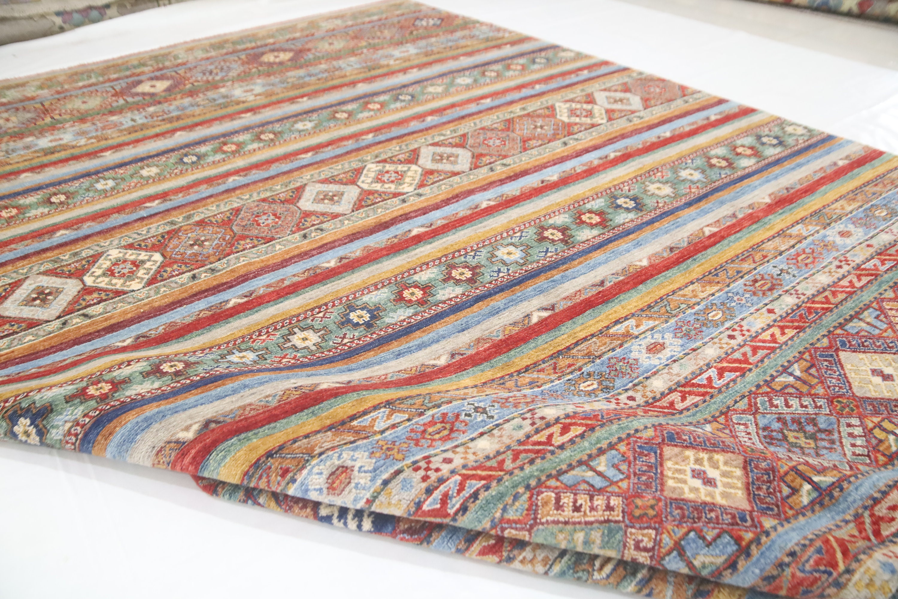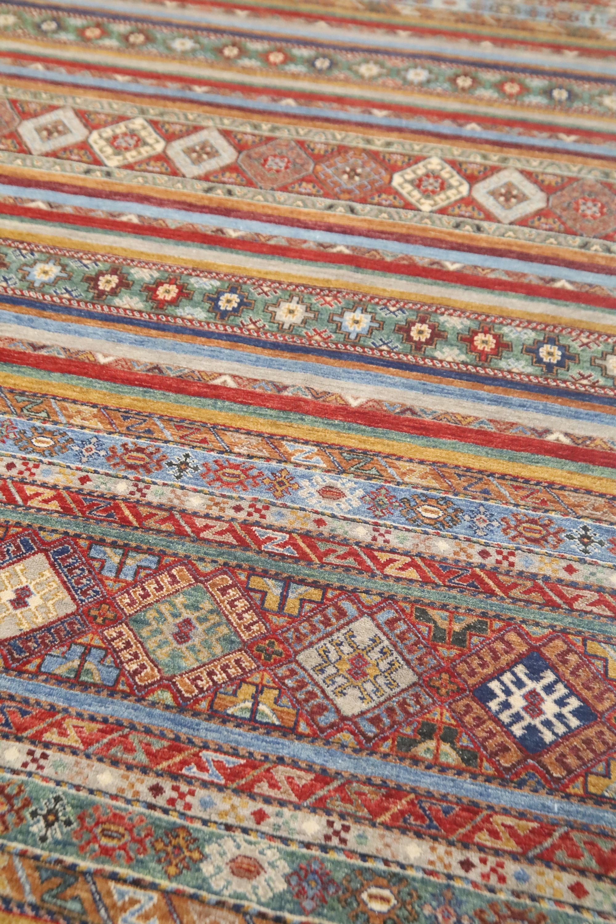 7x10 Tribal Khorjin Area Rug - Multi Color Afghan Hand Made Striped Organic Dye Wool Rug - Geometric Rug - Bedroom Rug - Traditional Rug