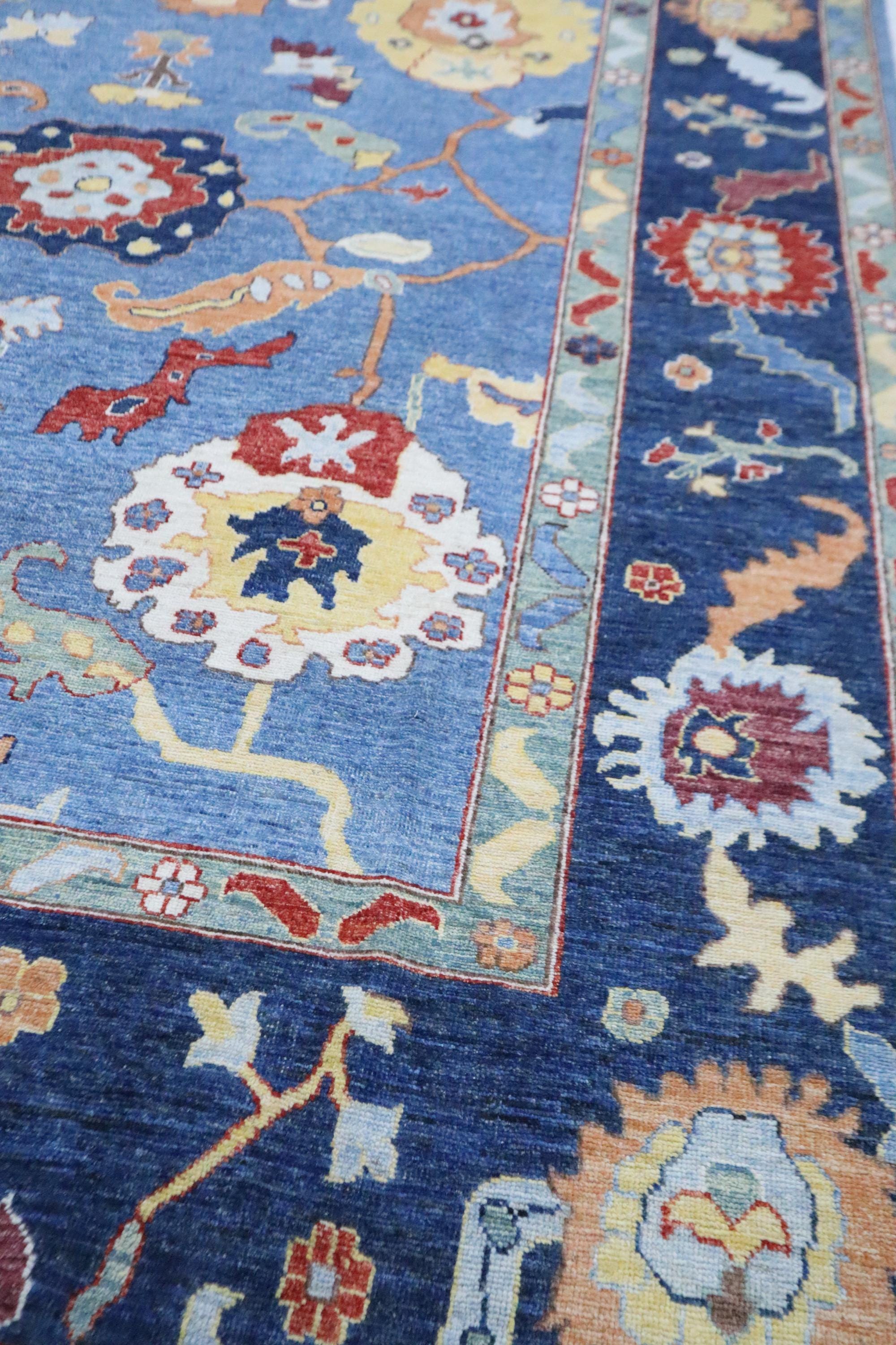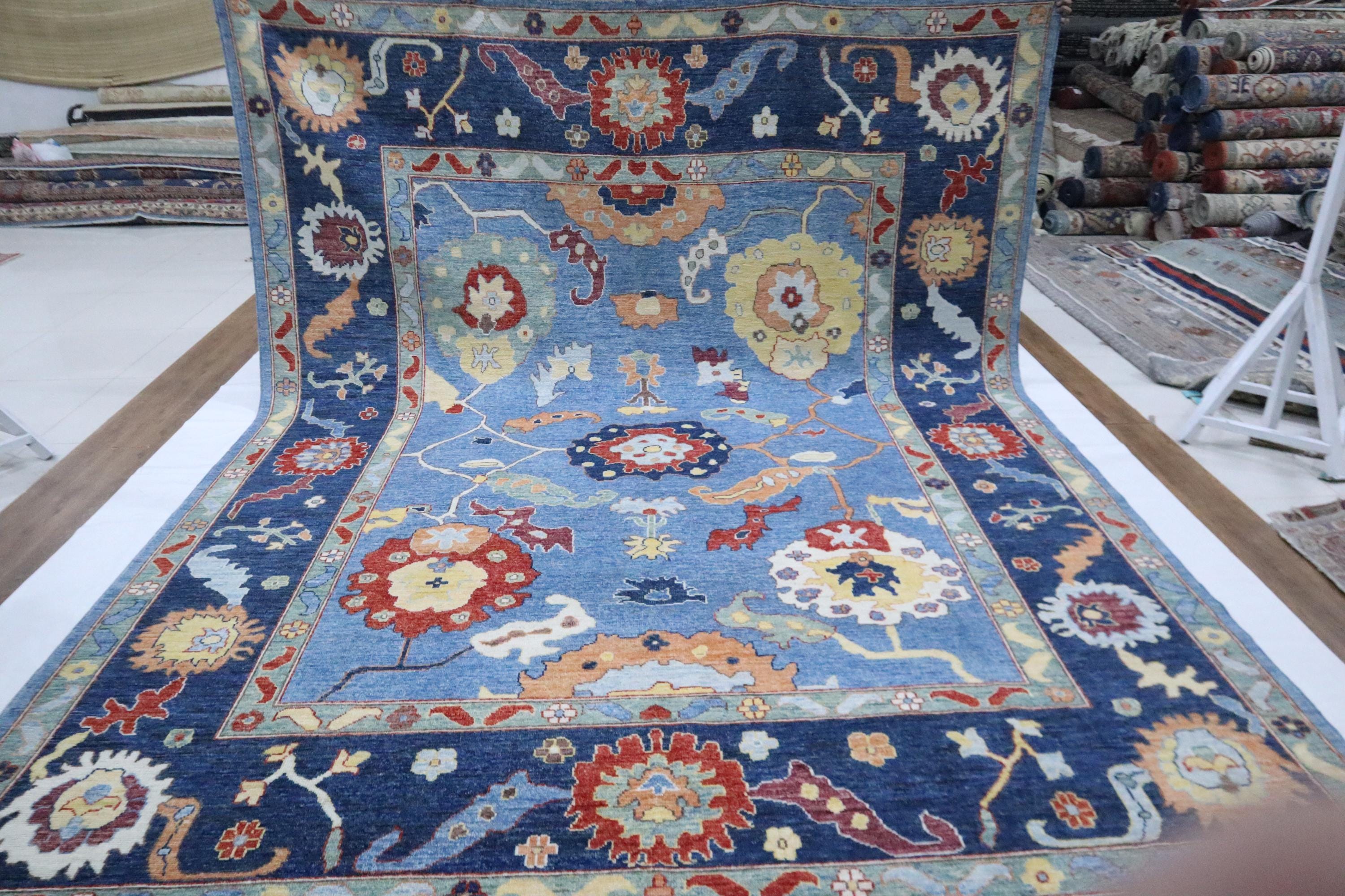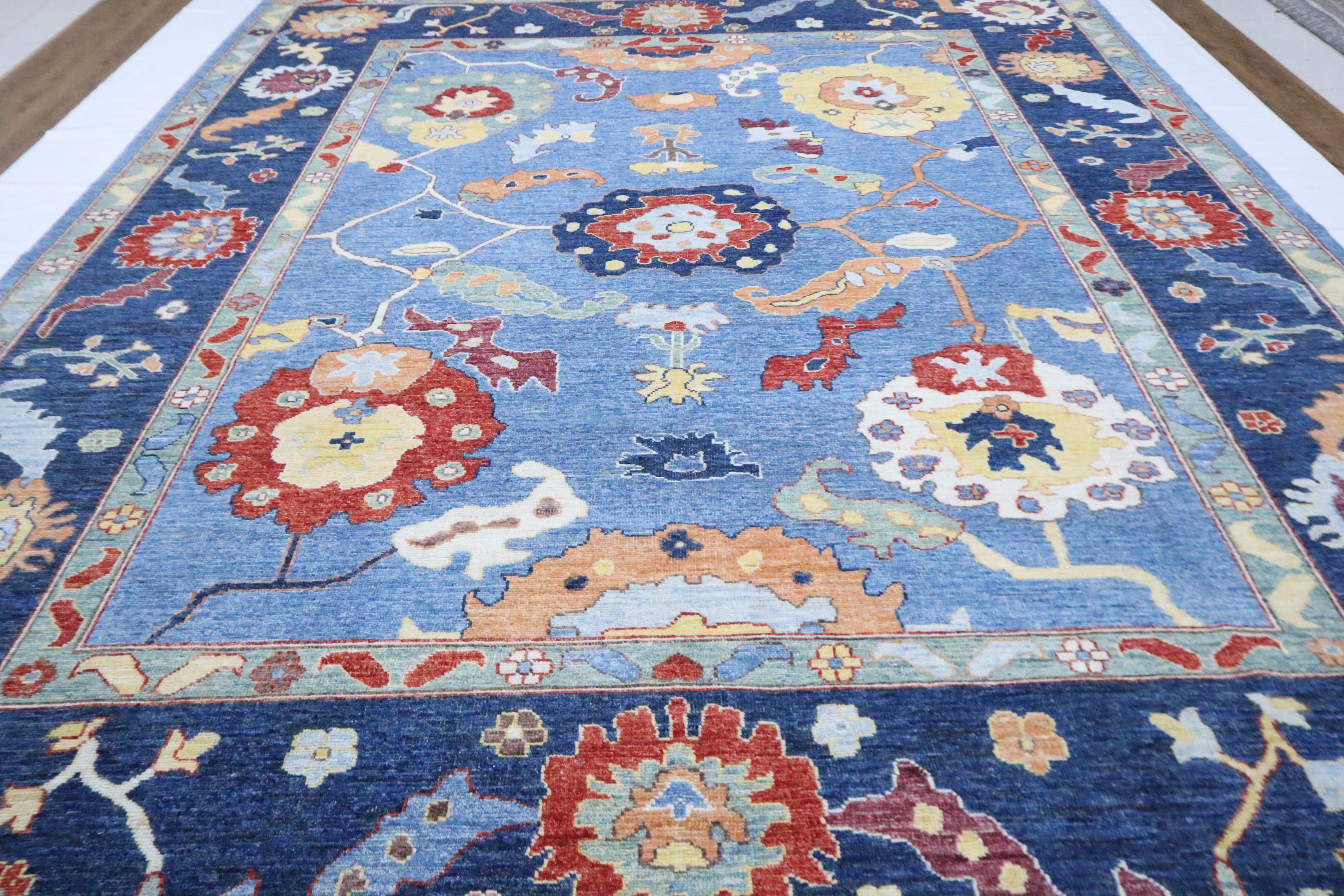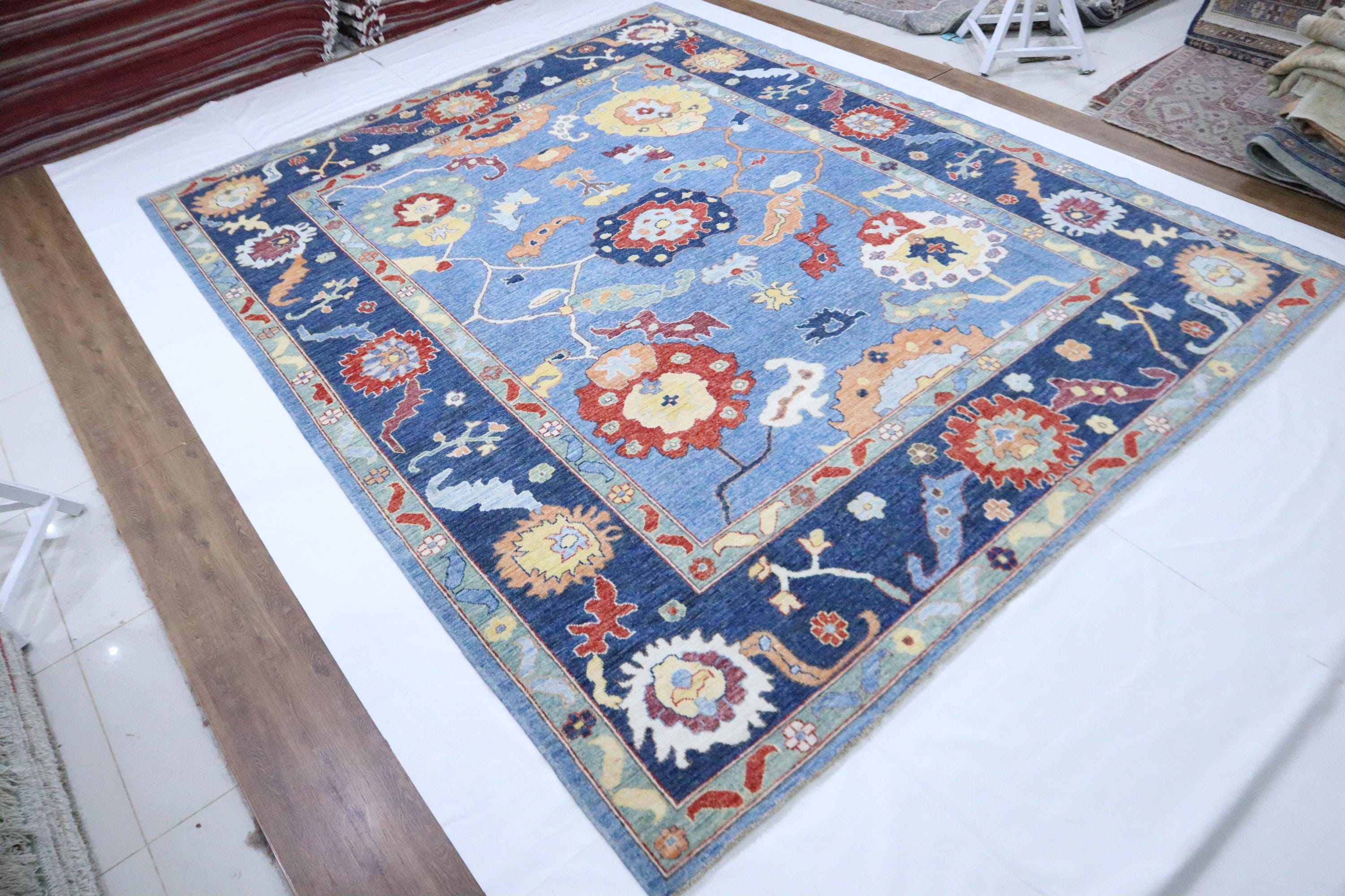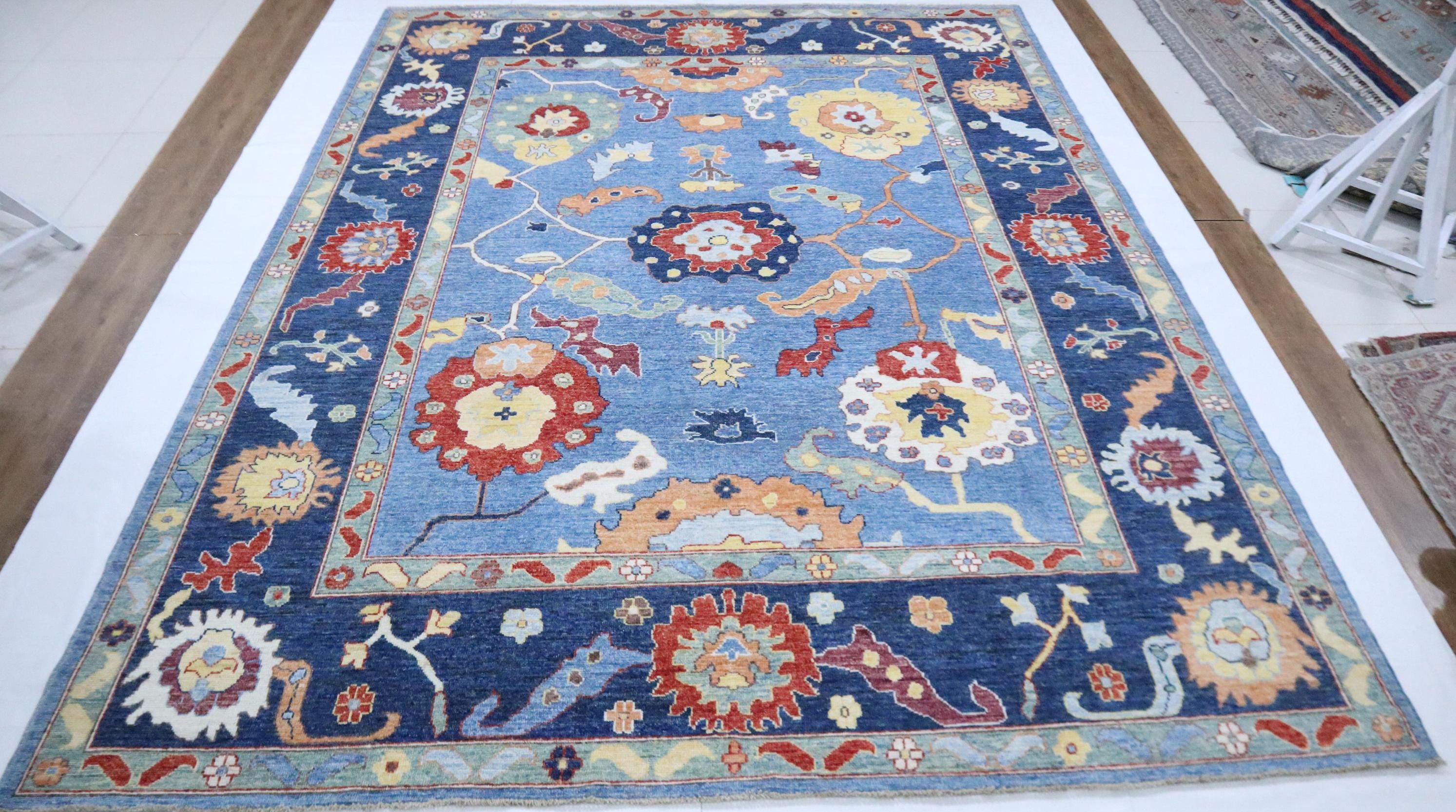9x12 Oushak Area Rug - Light Blue Turkish Hand Made Oriental Veg Dye Wool Rug - Oversize Rug - Living Room Rug - Dining Room Rug - Wool Rug
