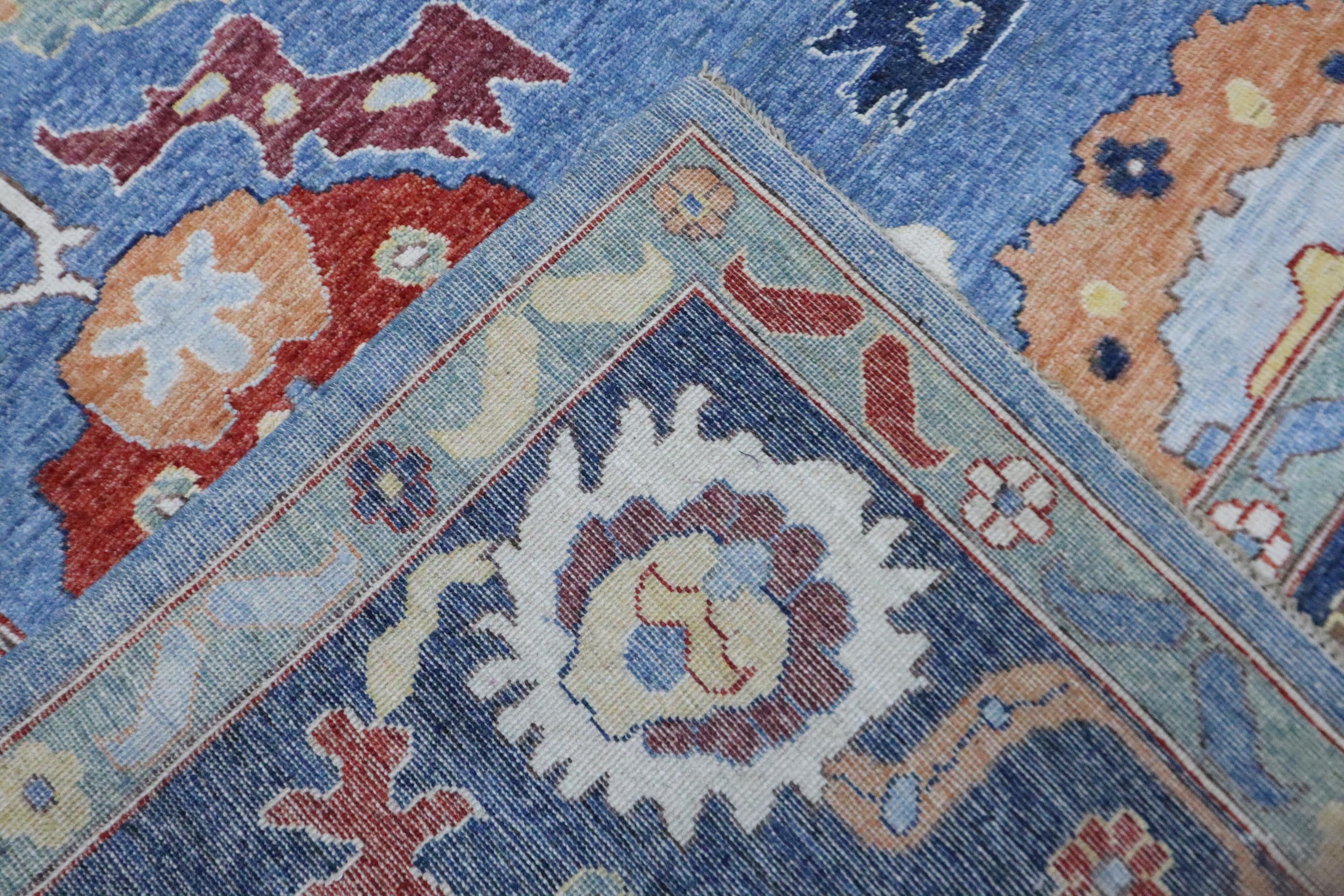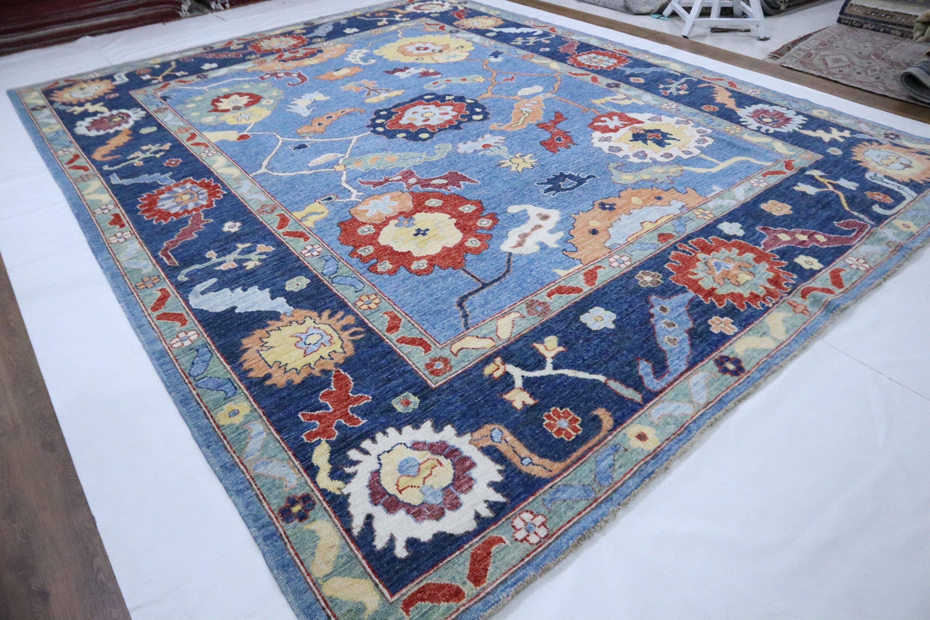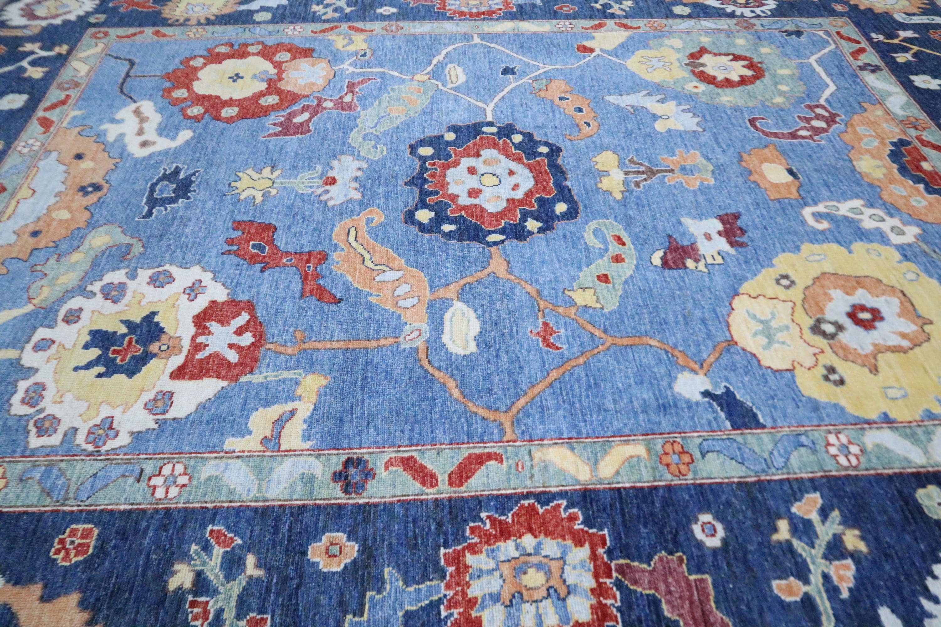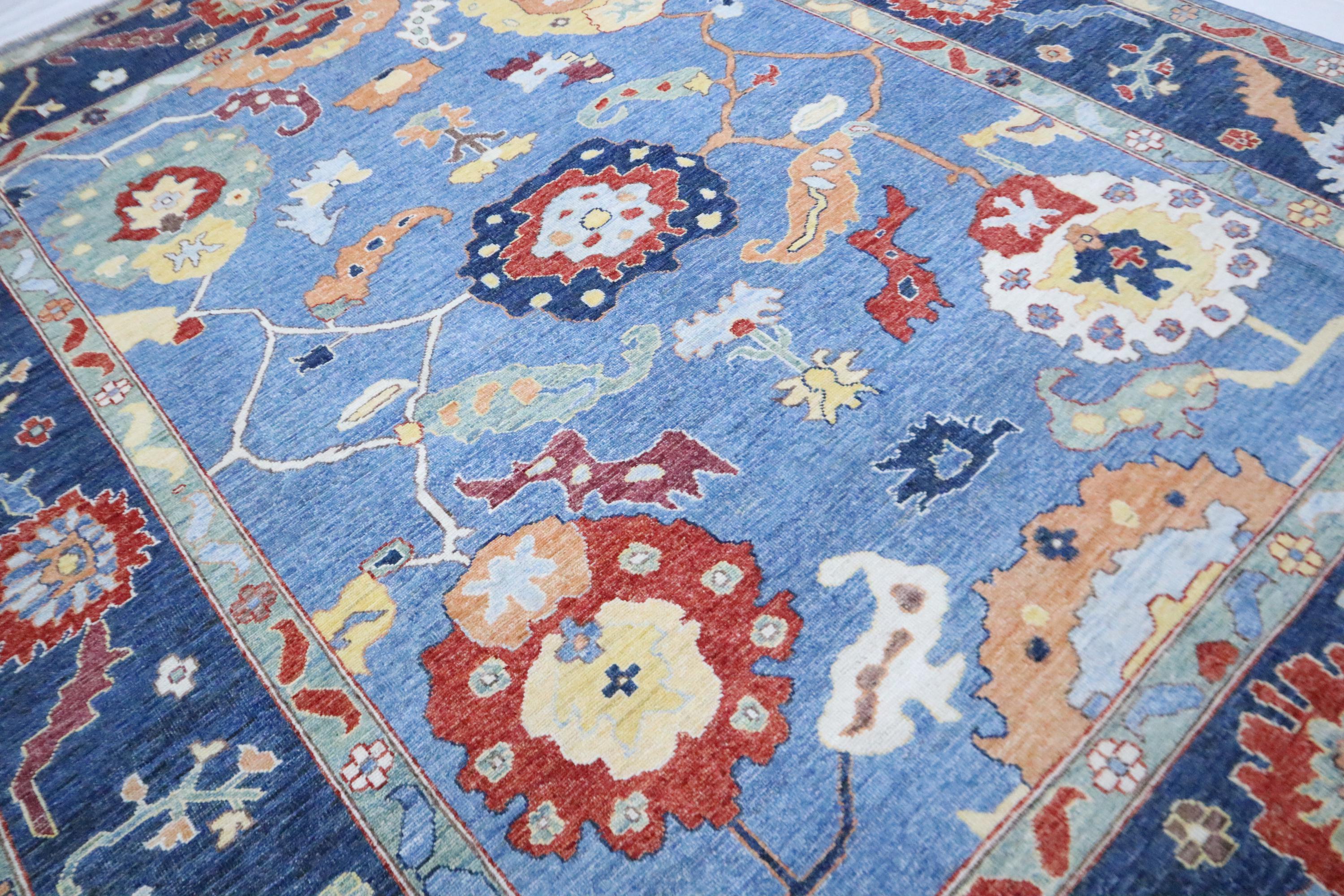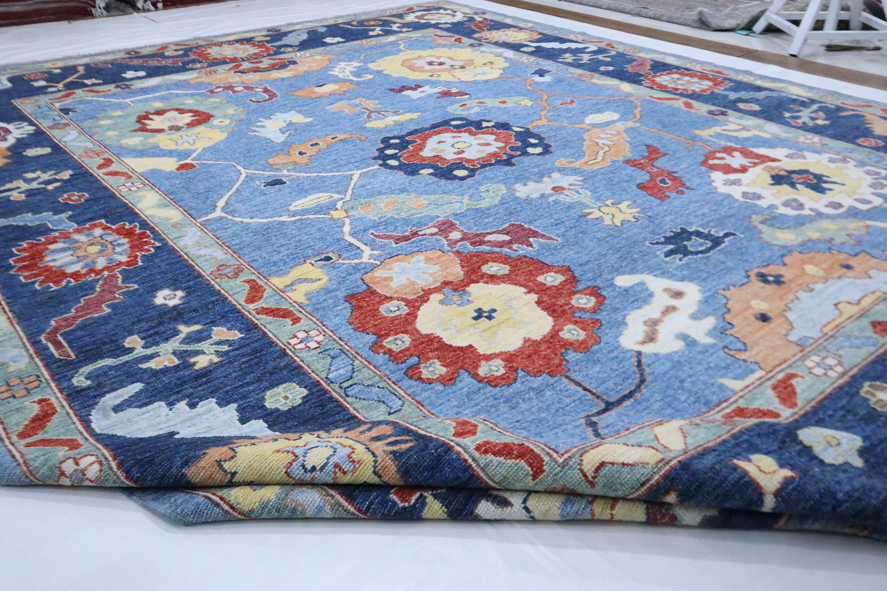 9x12 Oushak Area Rug - Light Blue Turkish Hand Made Oriental Veg Dye Wool Rug - Oversize Rug - Living Room Rug - Dining Room Rug - Wool Rug
