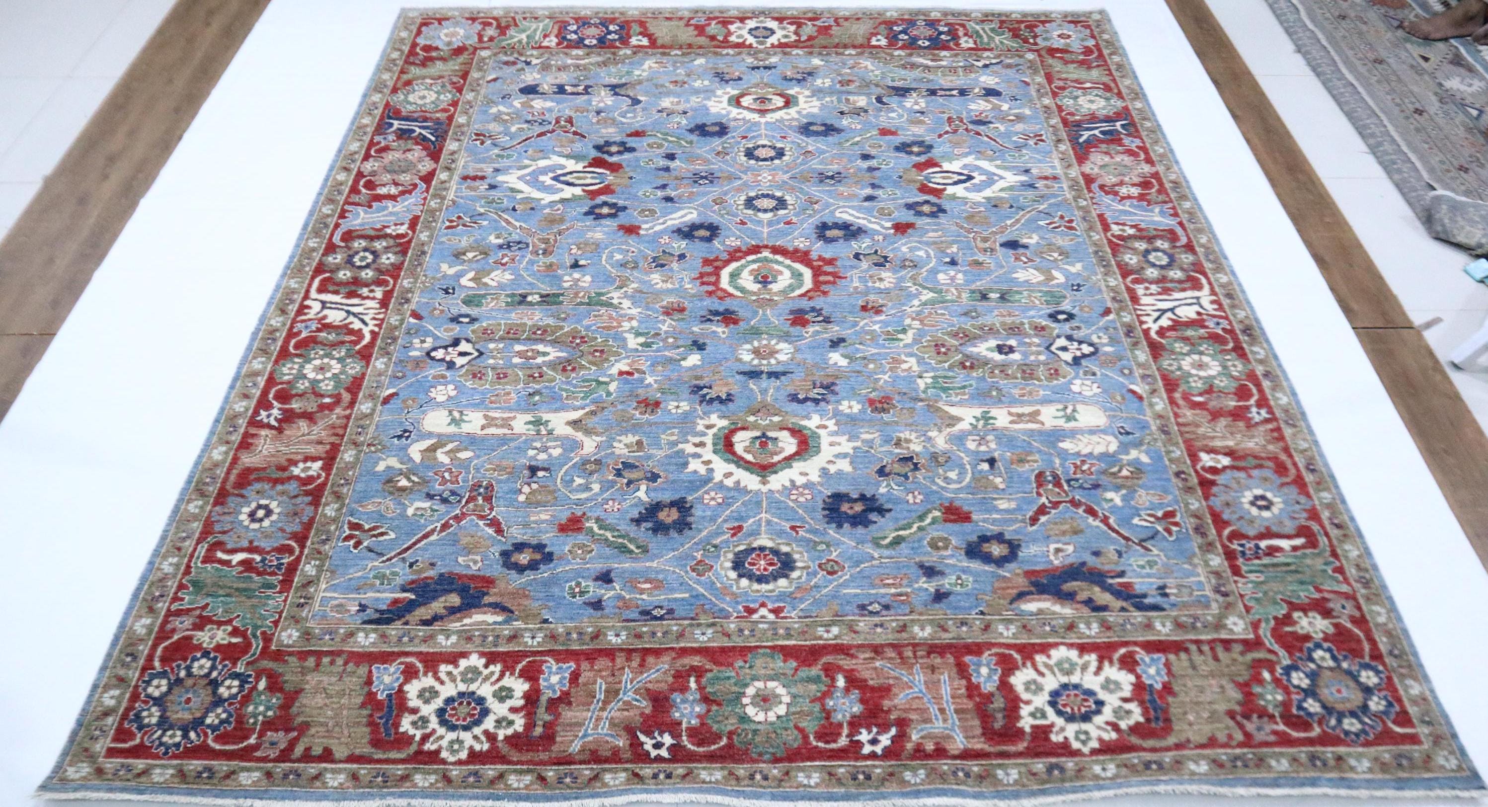 8x10 Bidjar Persian Style Area Rug - Light Blue Afghan Hand Made Floral Veg Dye Wool Rug - Traditional Rug - Living Room Rug - Bedroom Rug