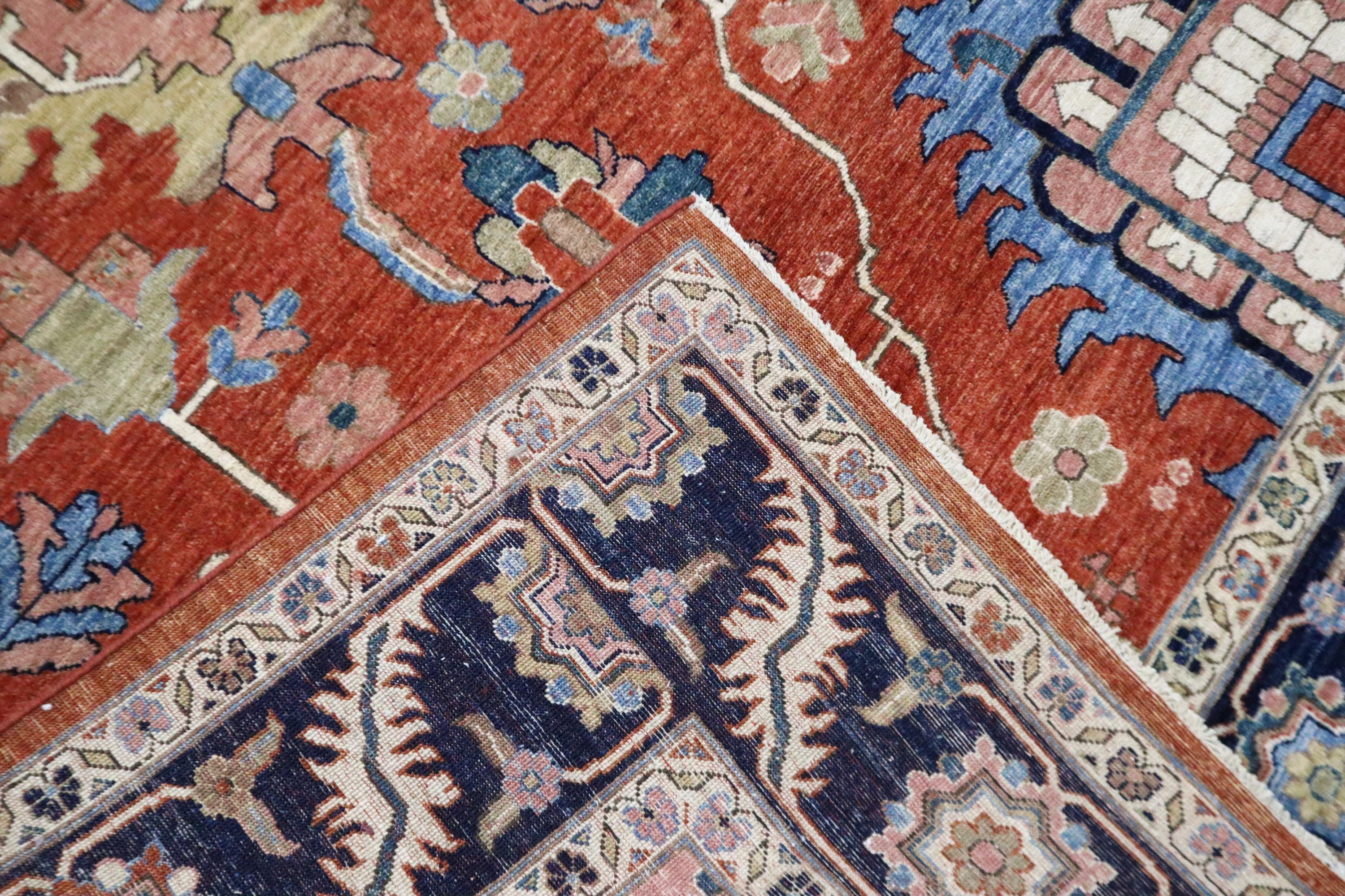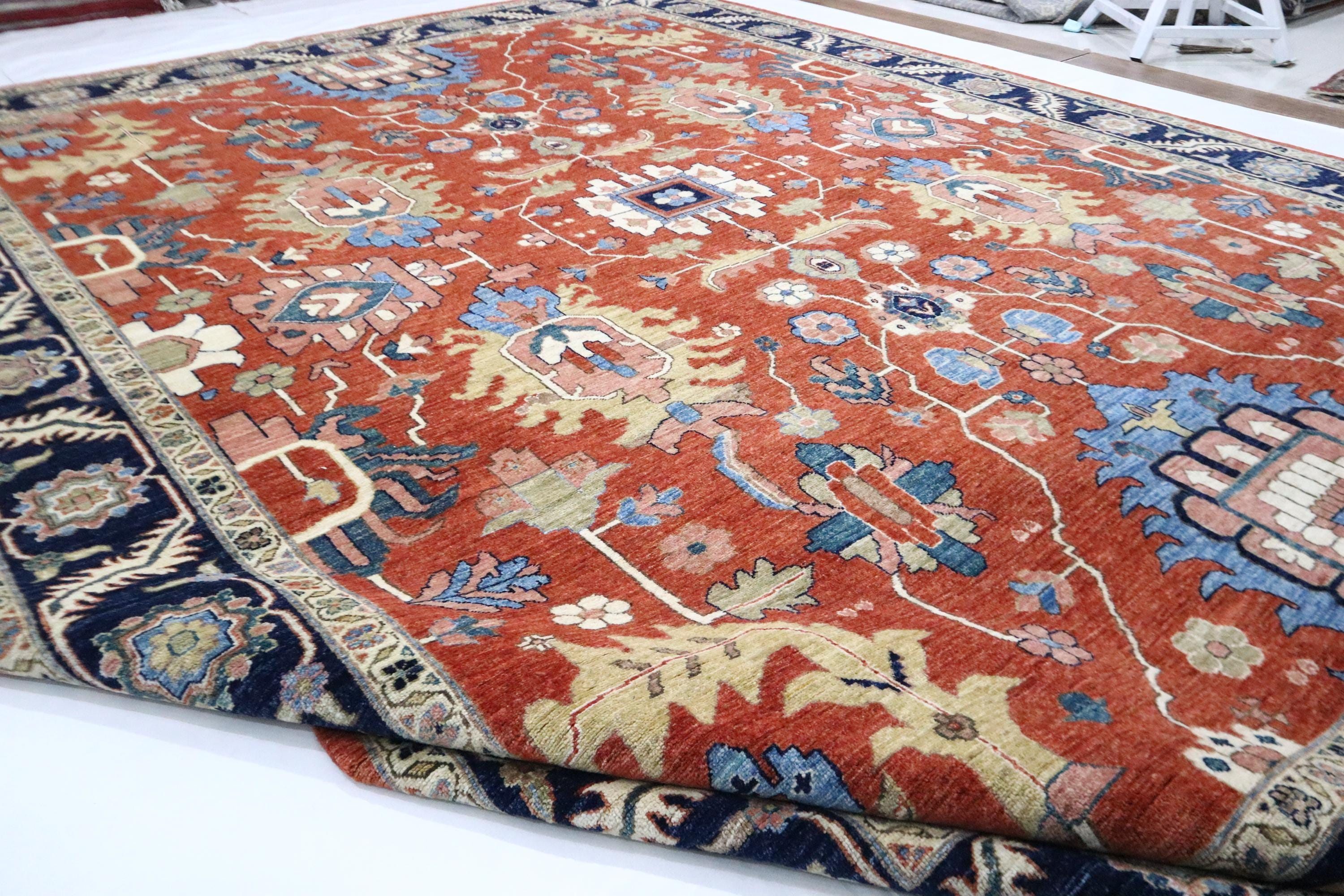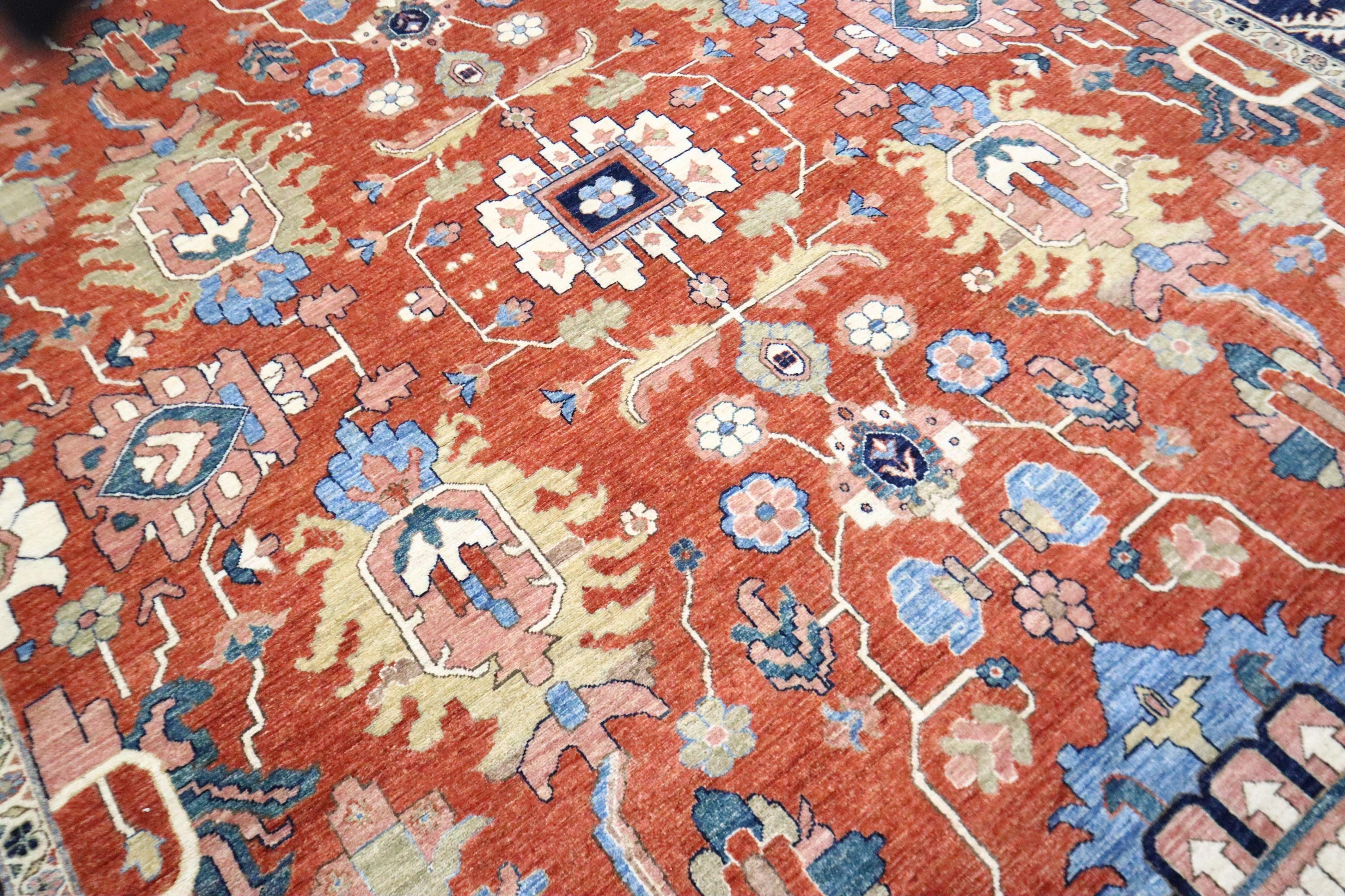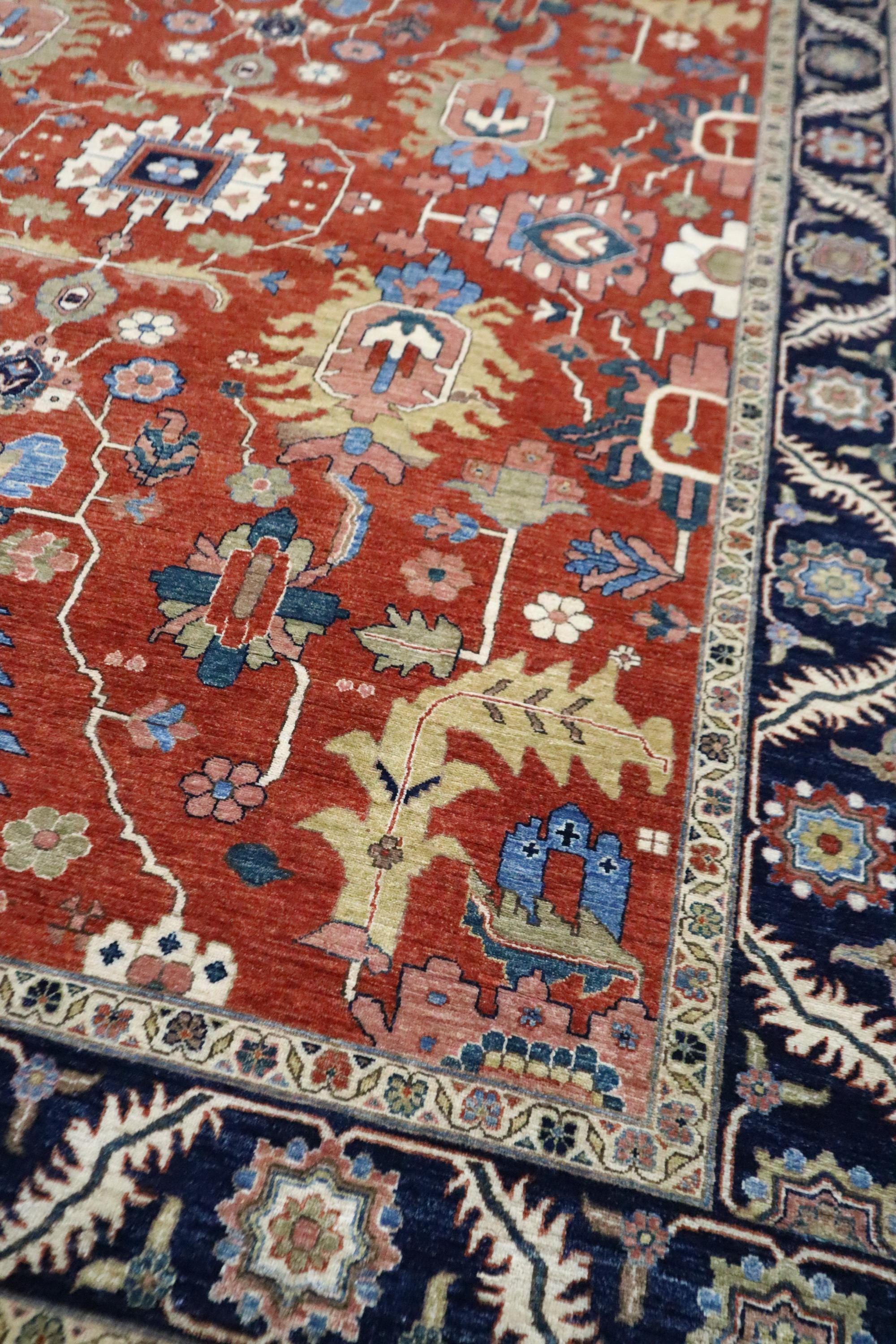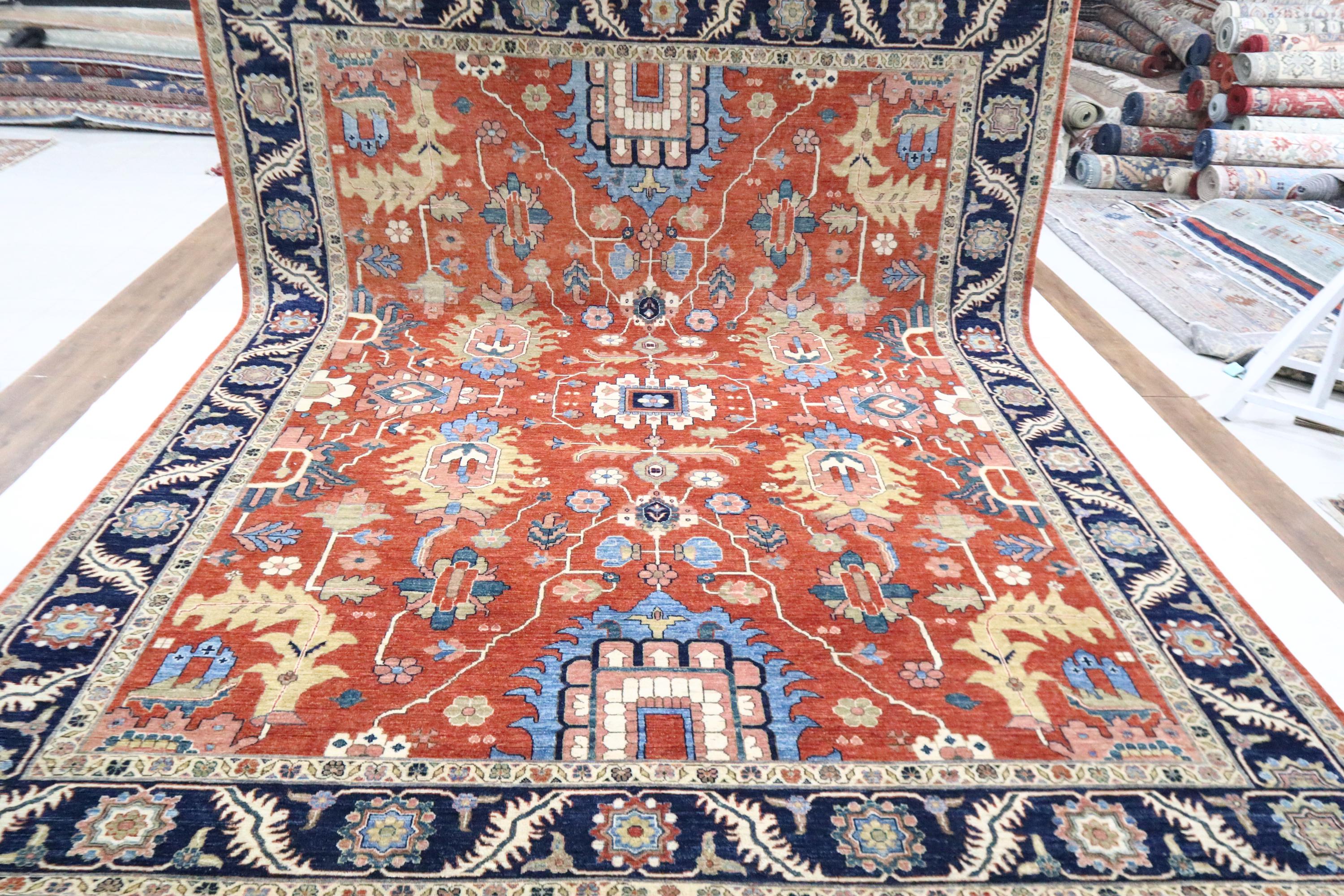 9x12 Serapi Area Rug - Red Blue Persian Style Afghan Handmade Geometric Fine Quality Wool Rug - Oriental Rug - Living Room Rug - Bedroom Rug