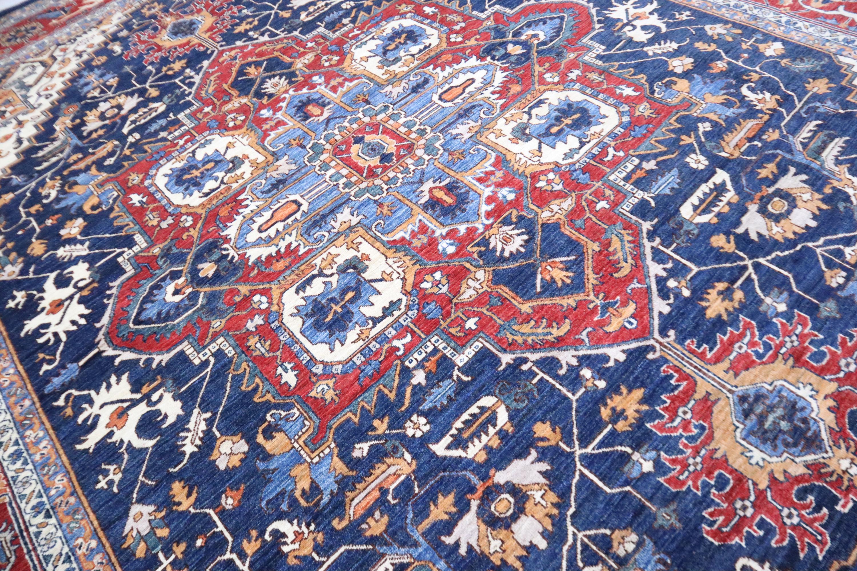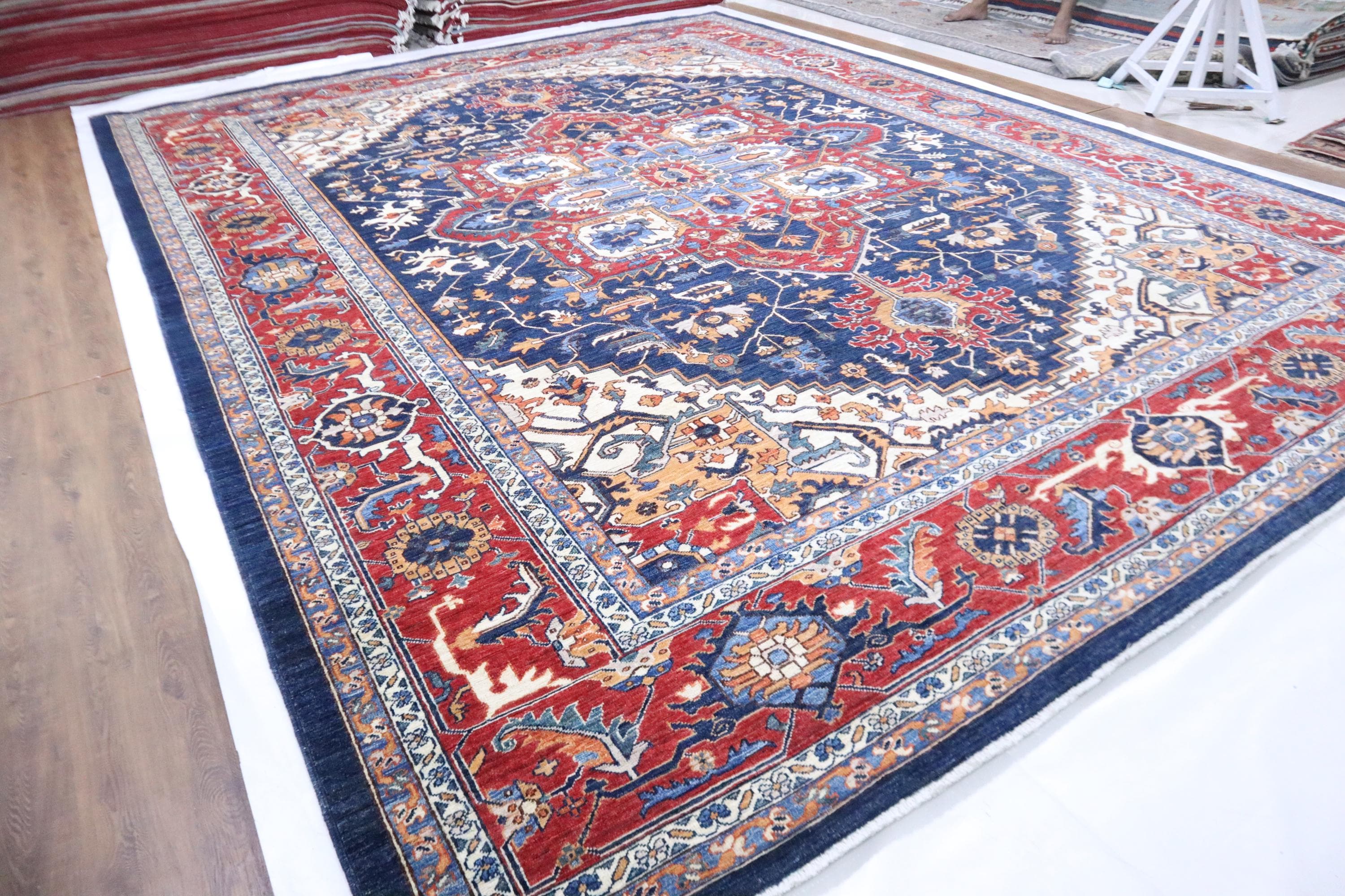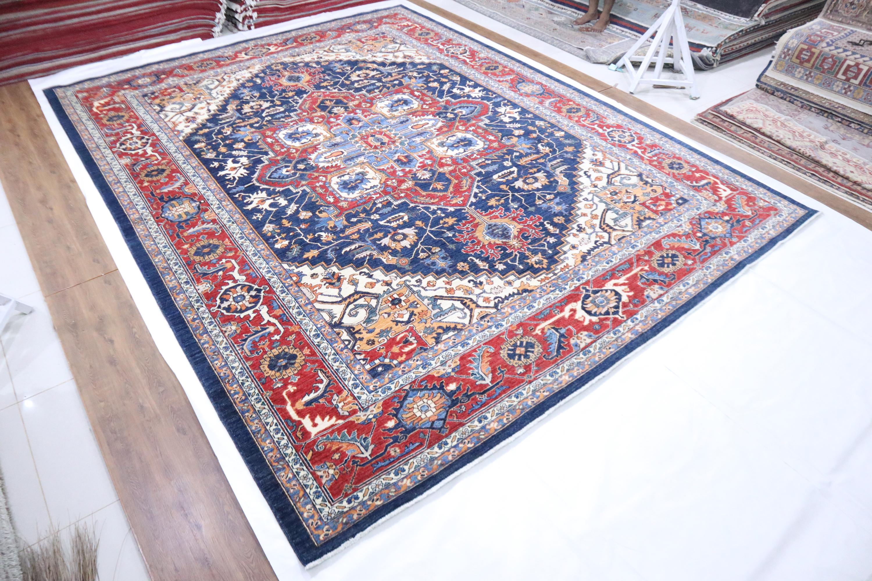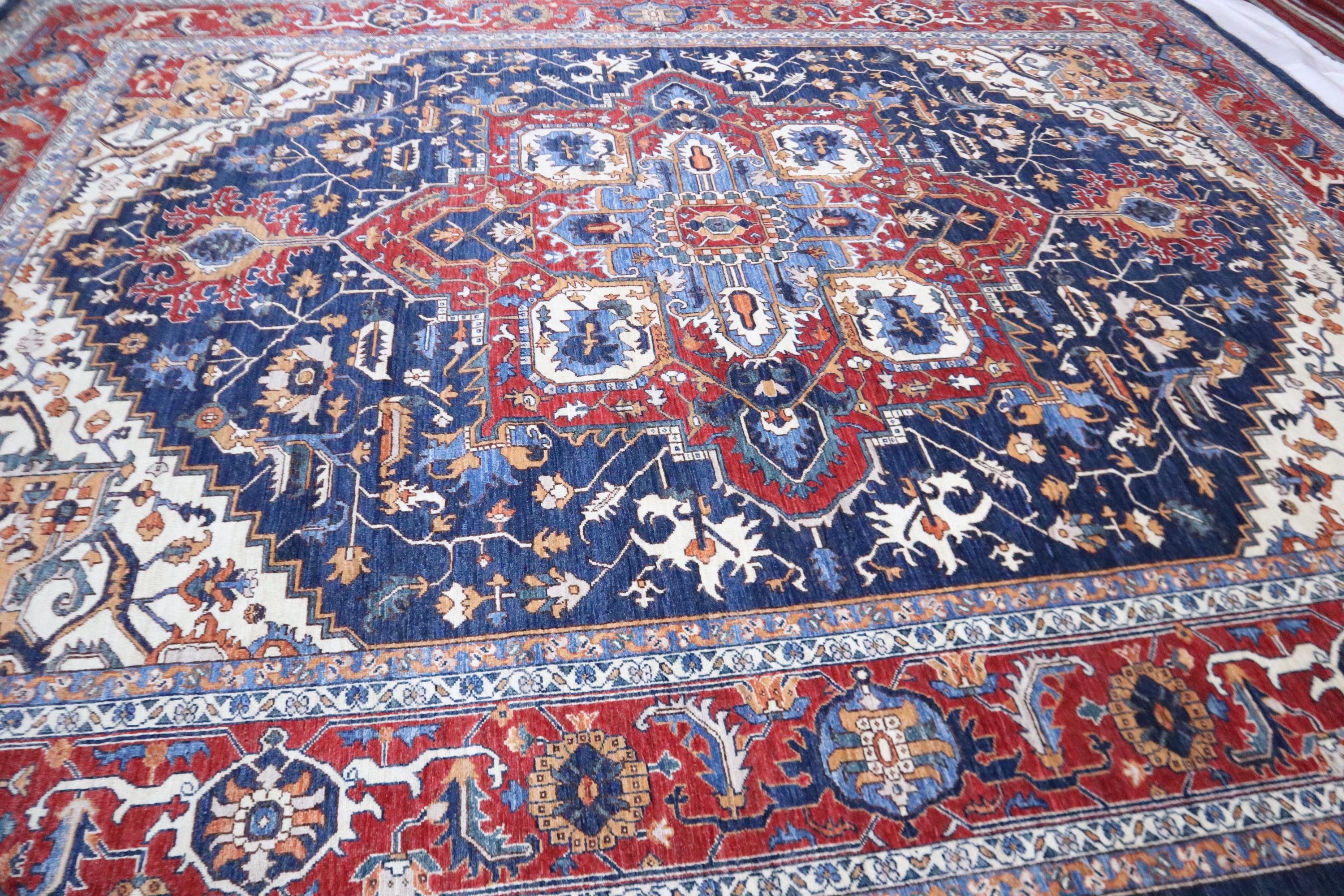 10x13 Heriz Area Rug - Blue Red Persian Style Afghan Handmade Medallion Fine Quality Wool Rug - Traditional Rug - Geometric Rug - Office Rug
