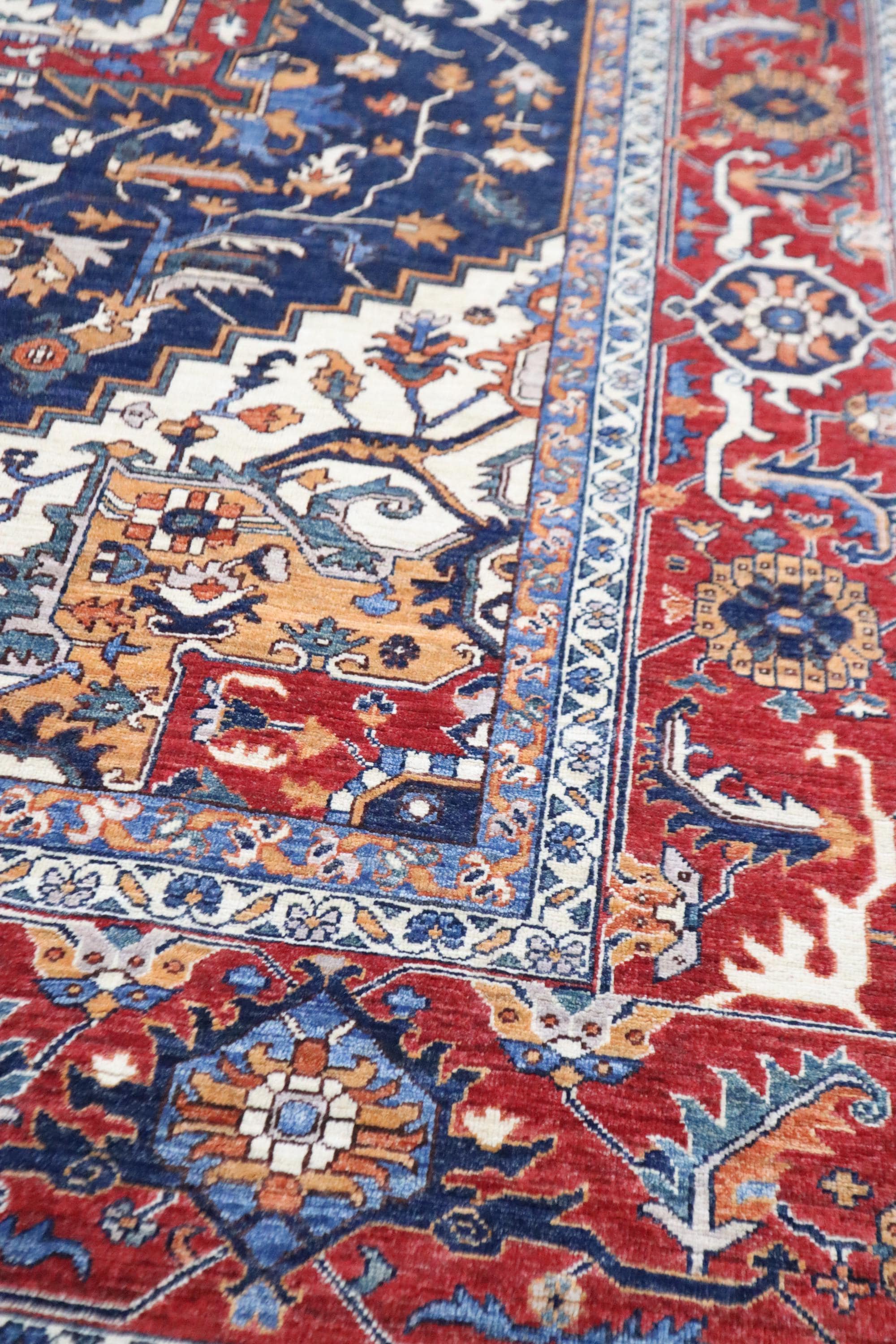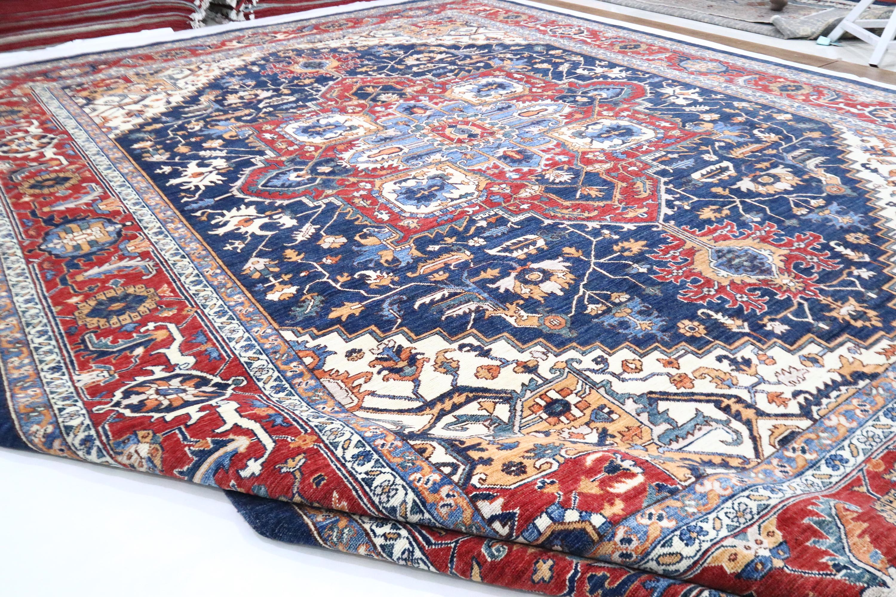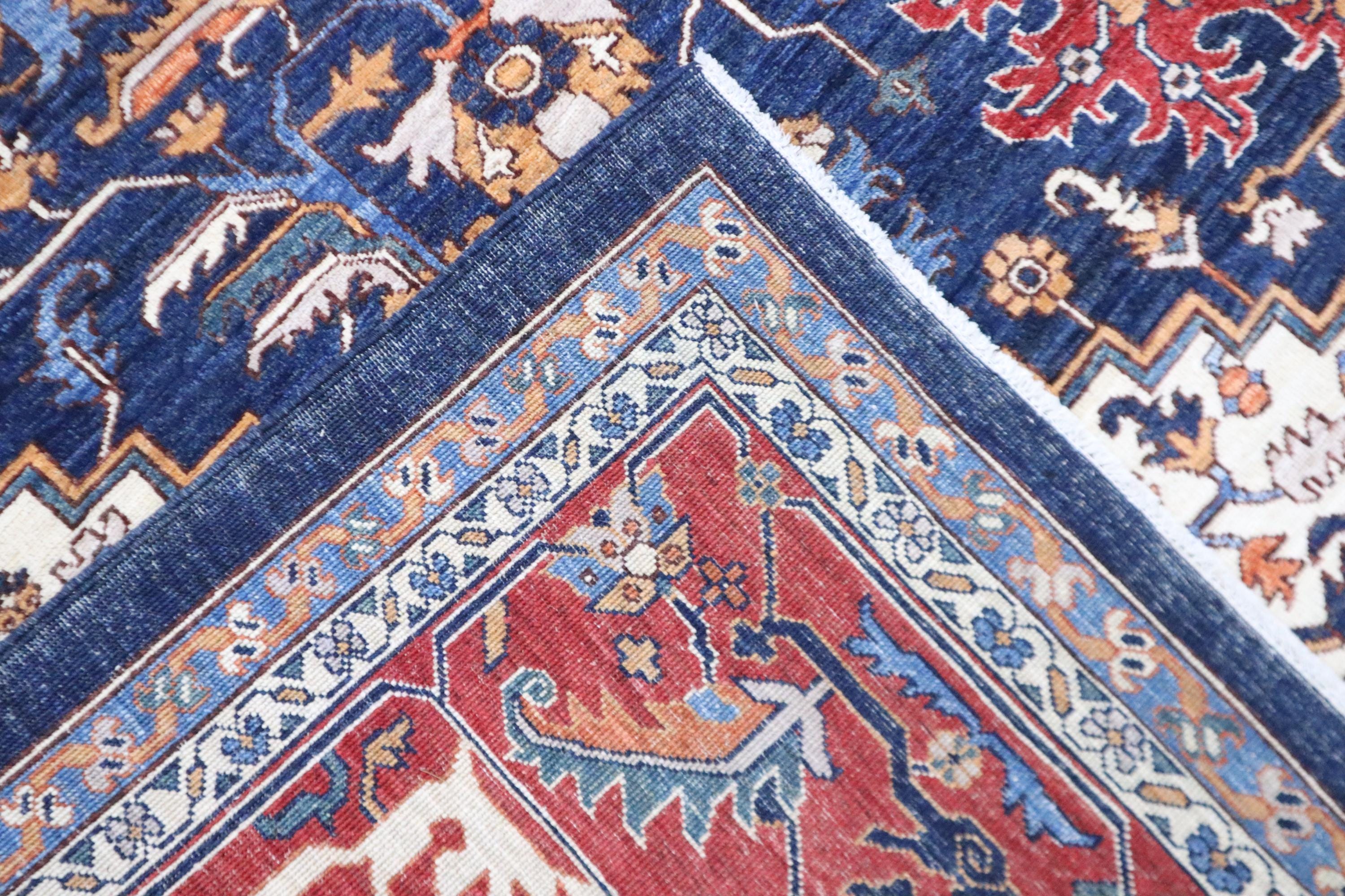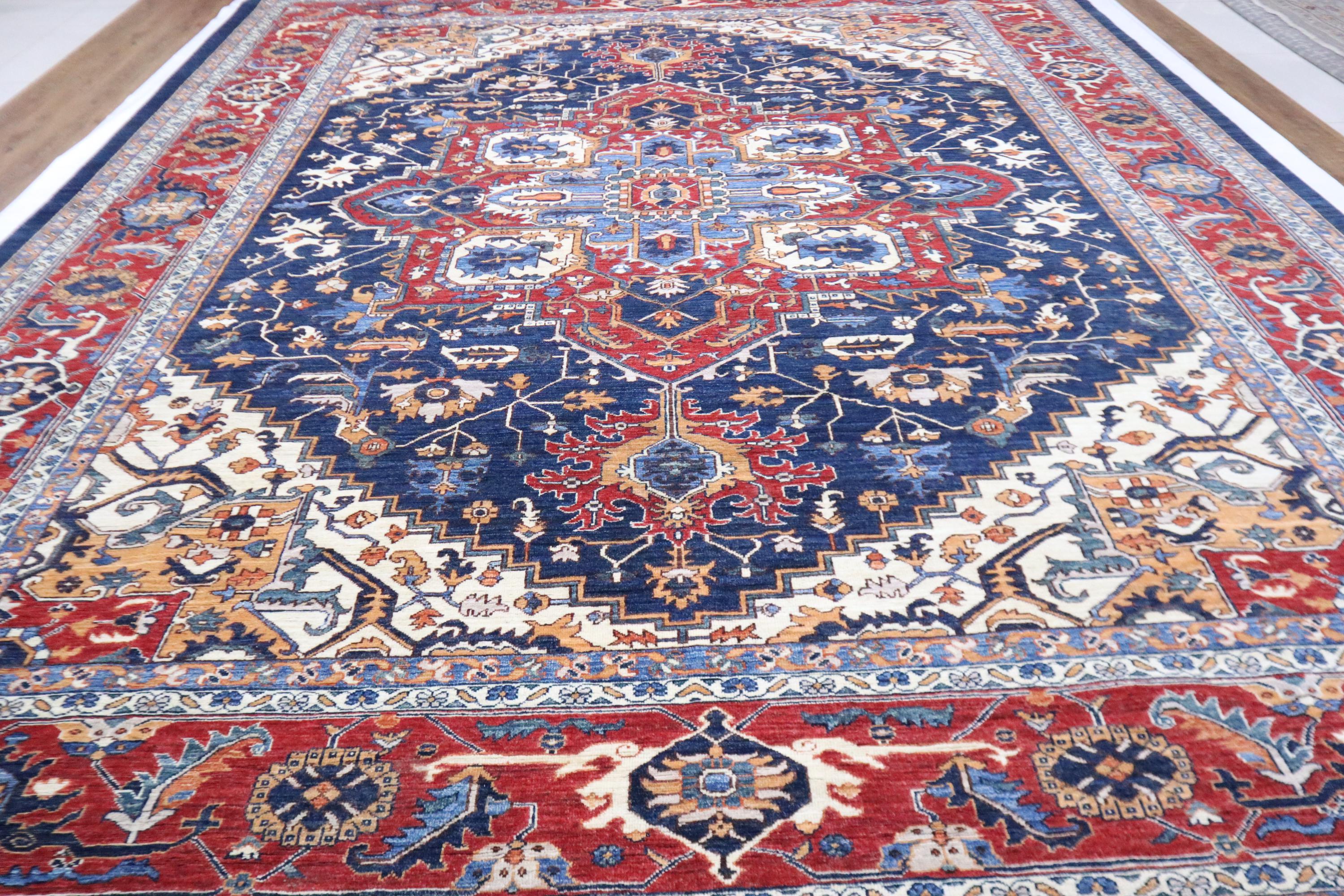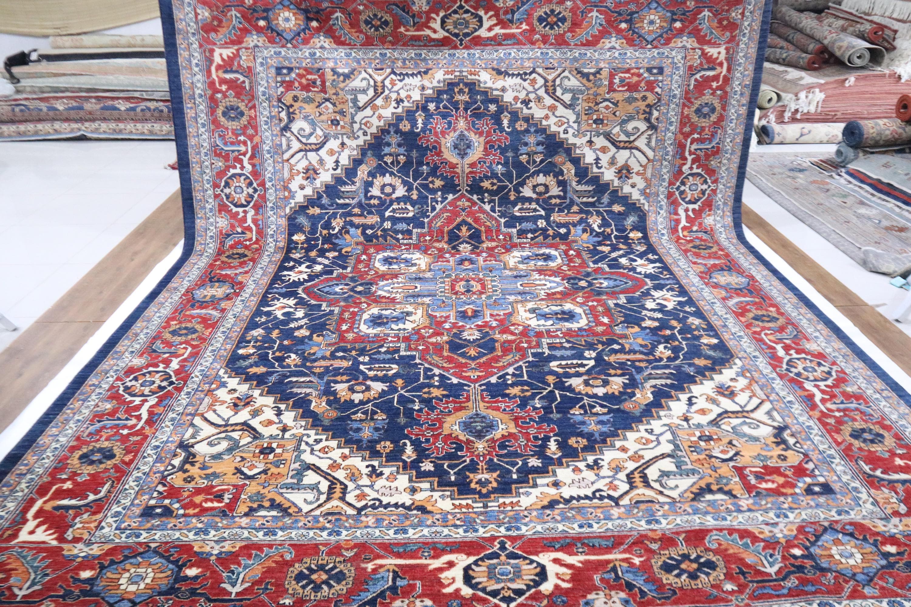 10x13 Heriz Area Rug - Blue Red Persian Style Afghan Handmade Medallion Fine Quality Wool Rug - Traditional Rug - Geometric Rug - Office Rug
