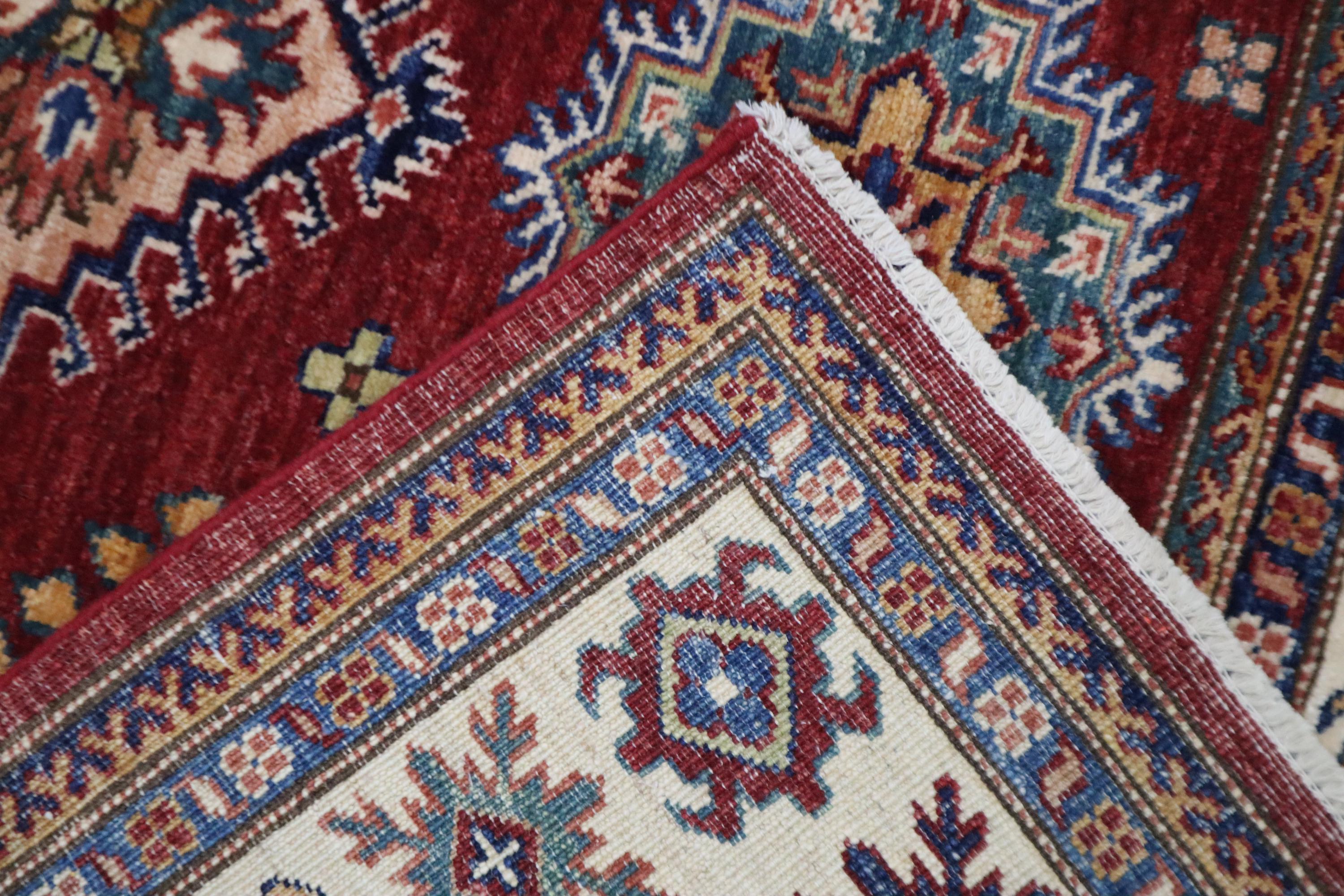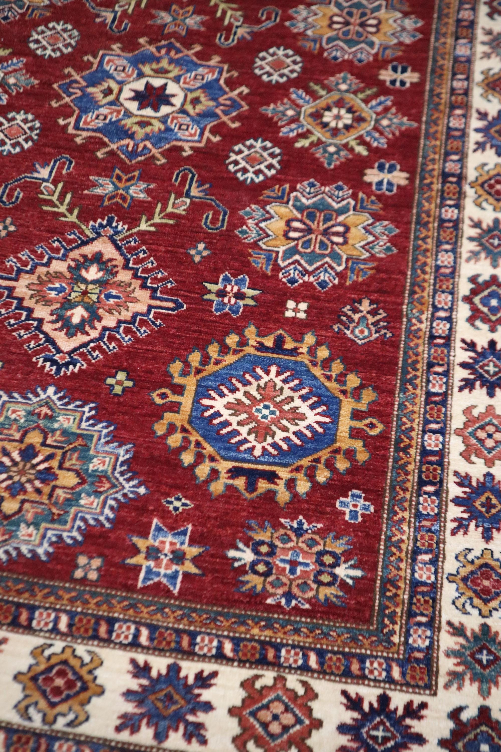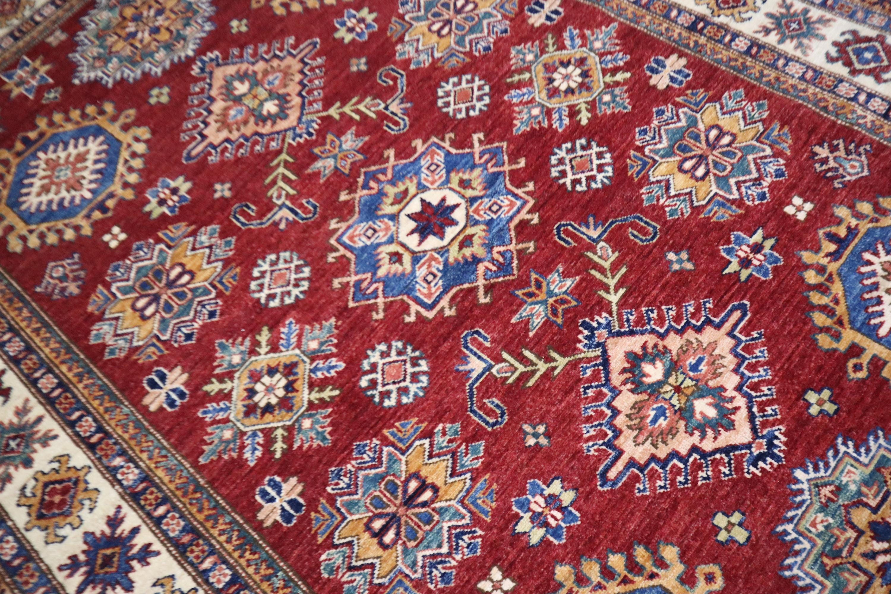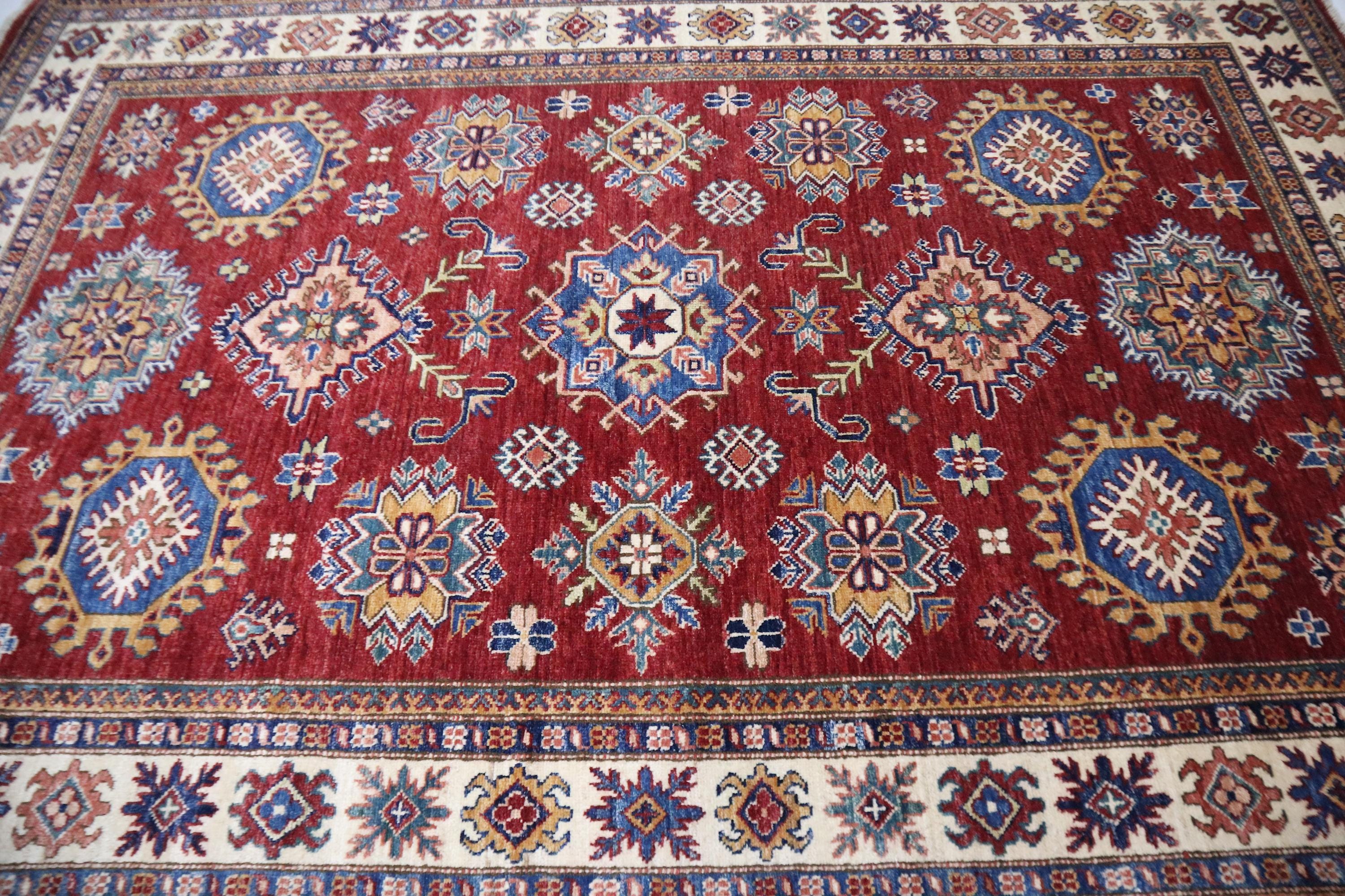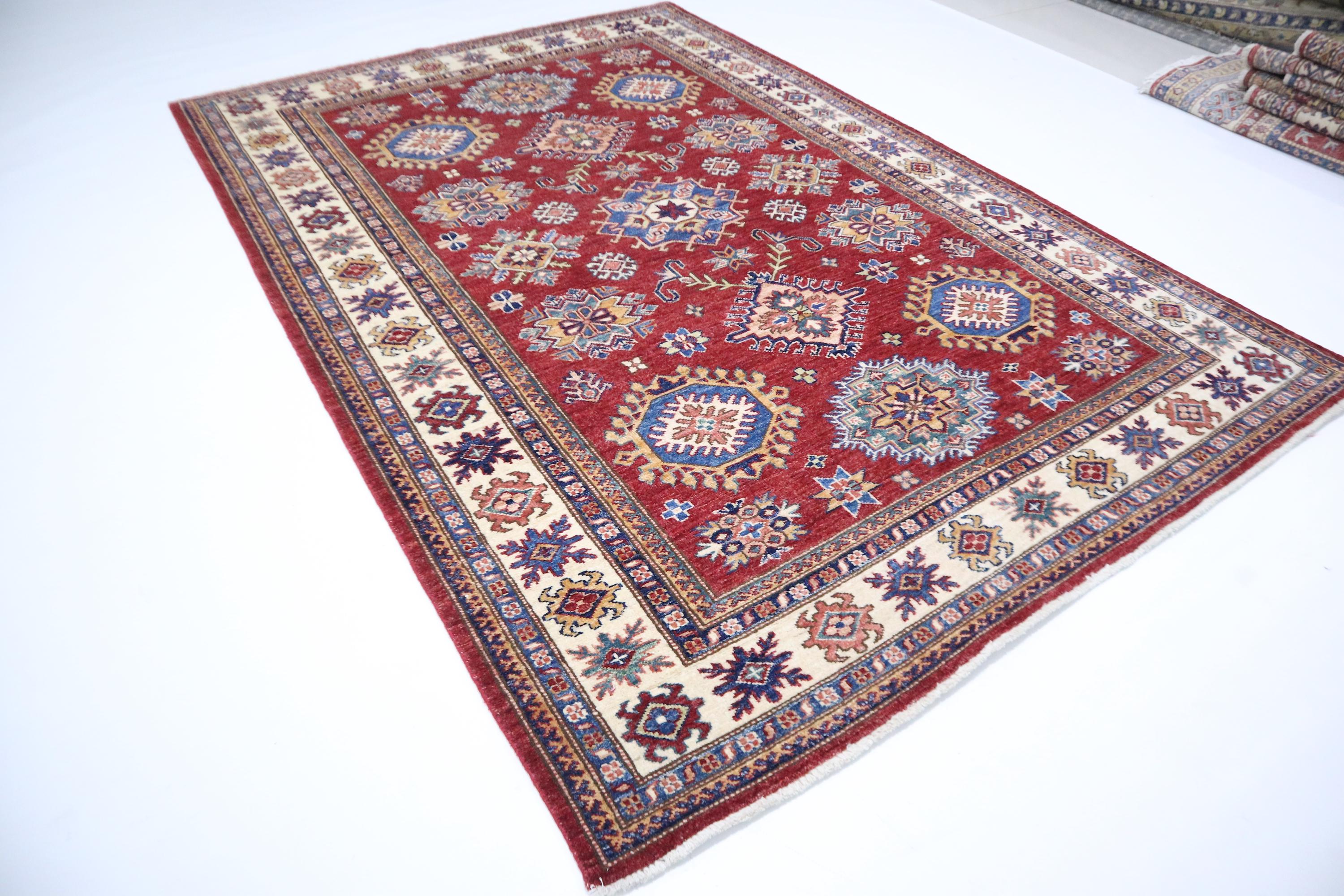 5x7 Ft Kazak Area Rug - Red Afghan Handmade Geometric Veg Dye Wool Rug - Traditional Rugs - Oriental Rugs - Bedroom Rug - Living Room Rug