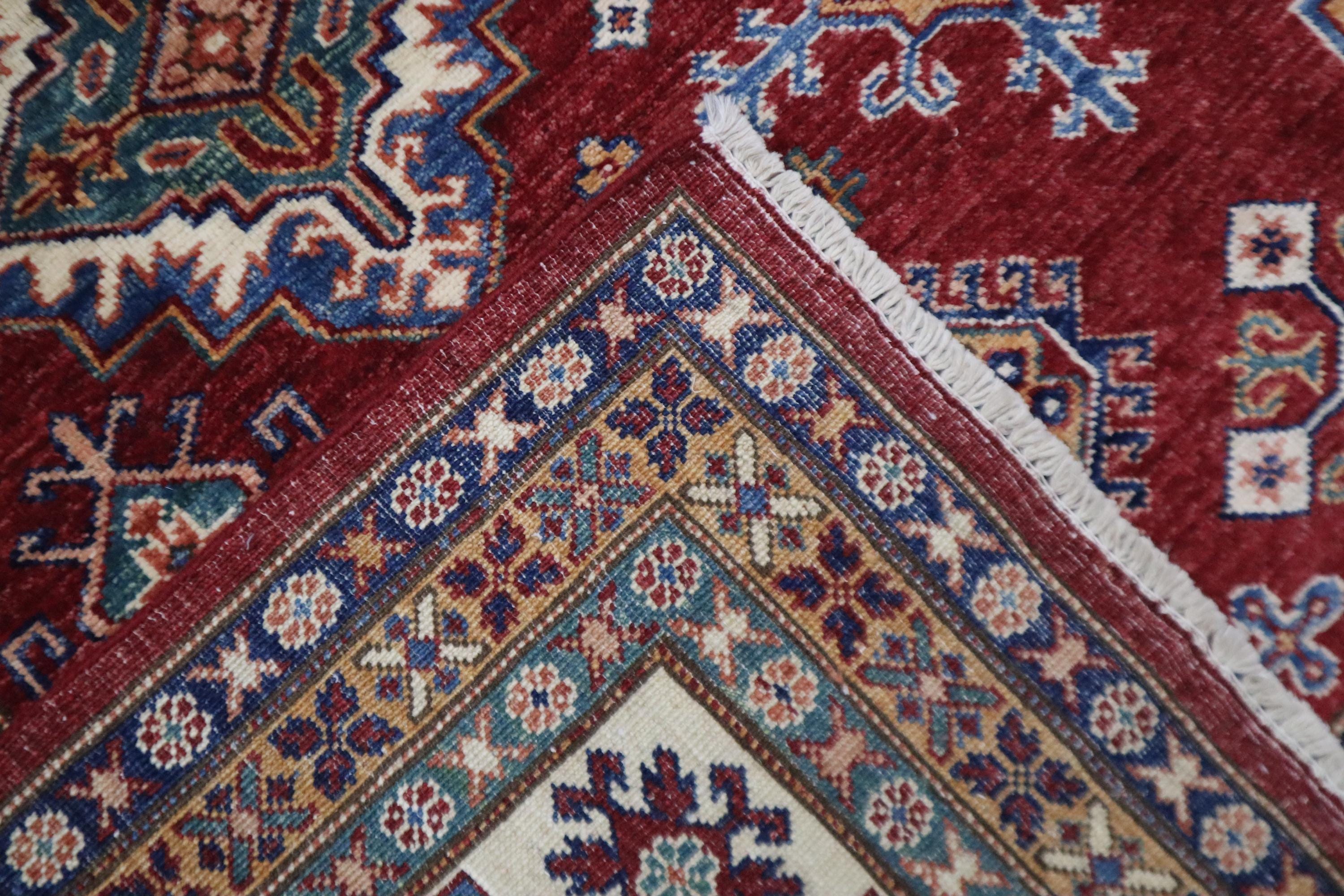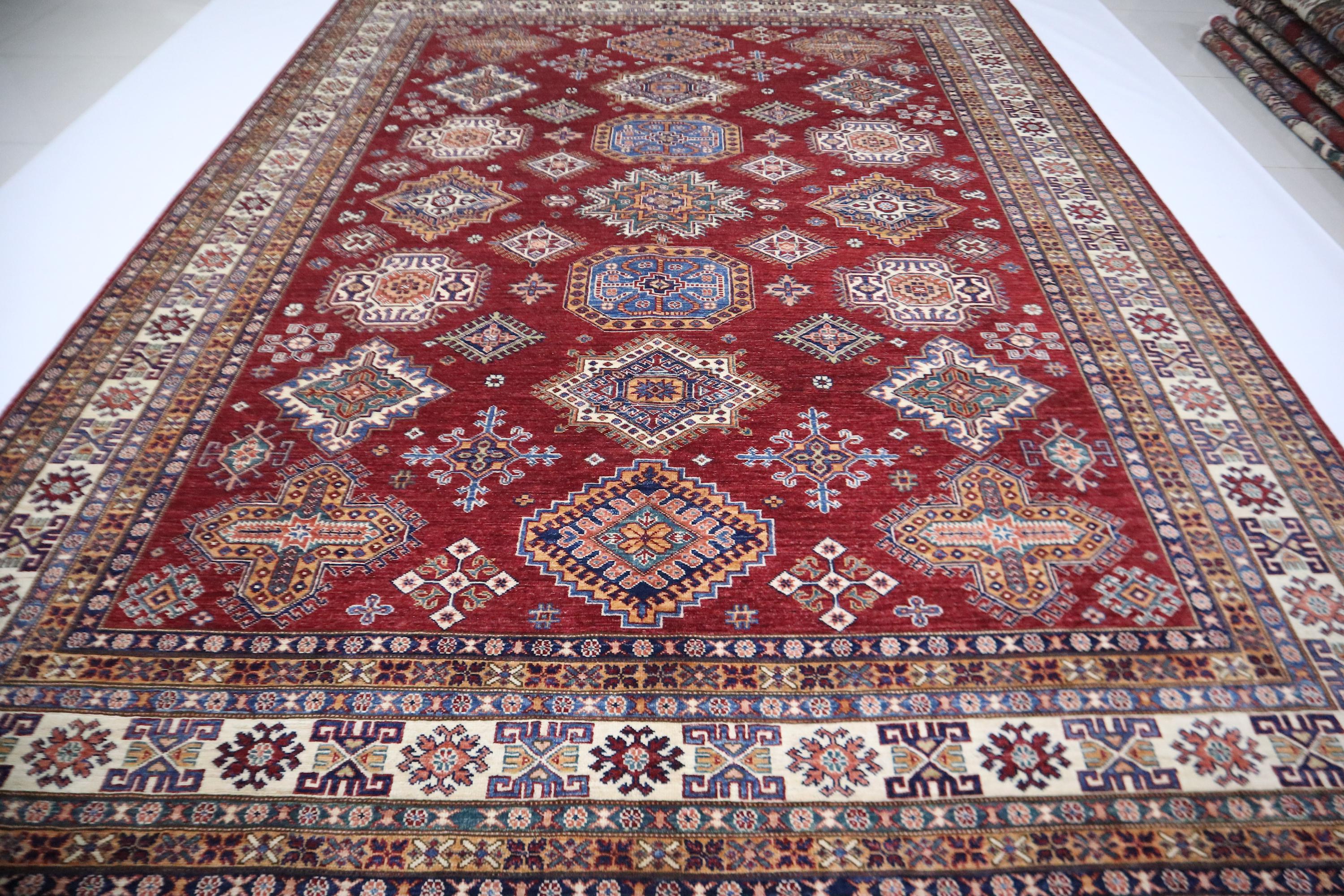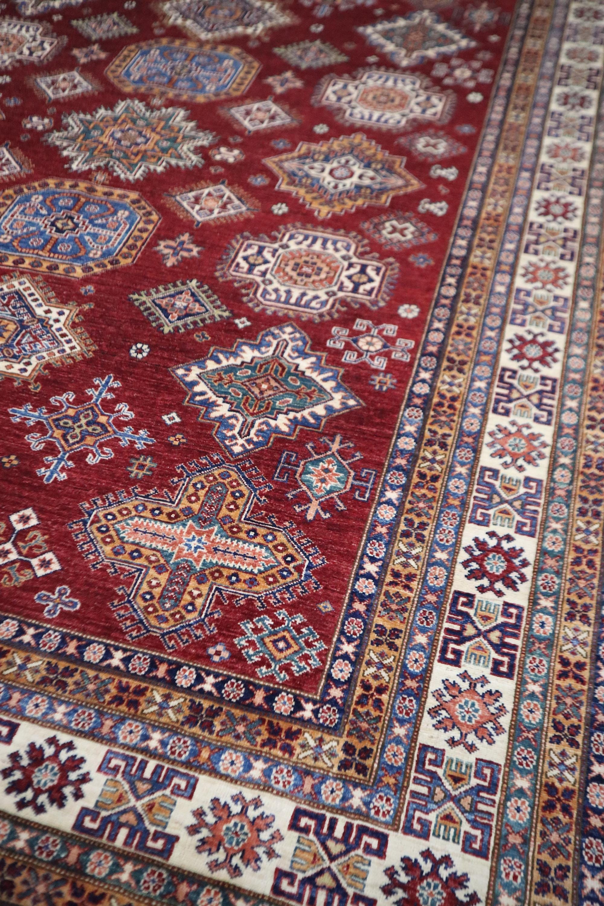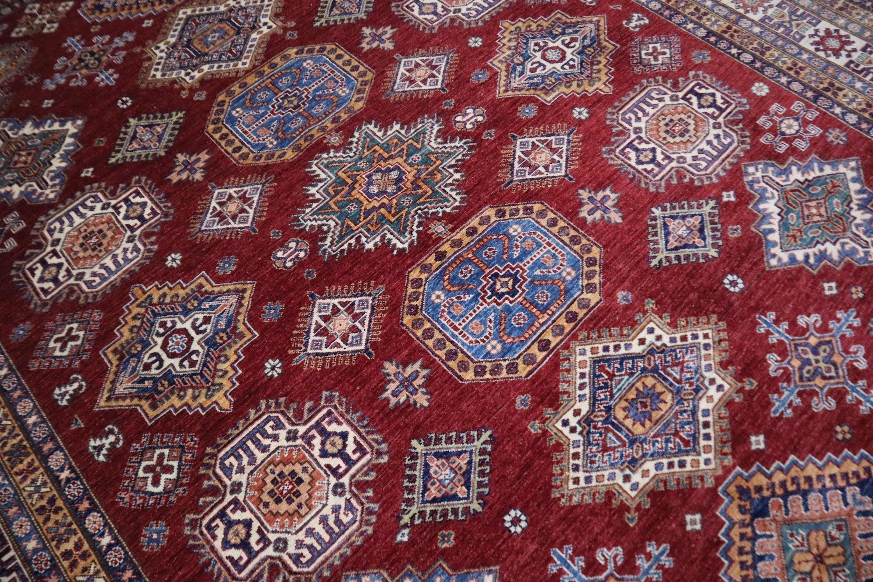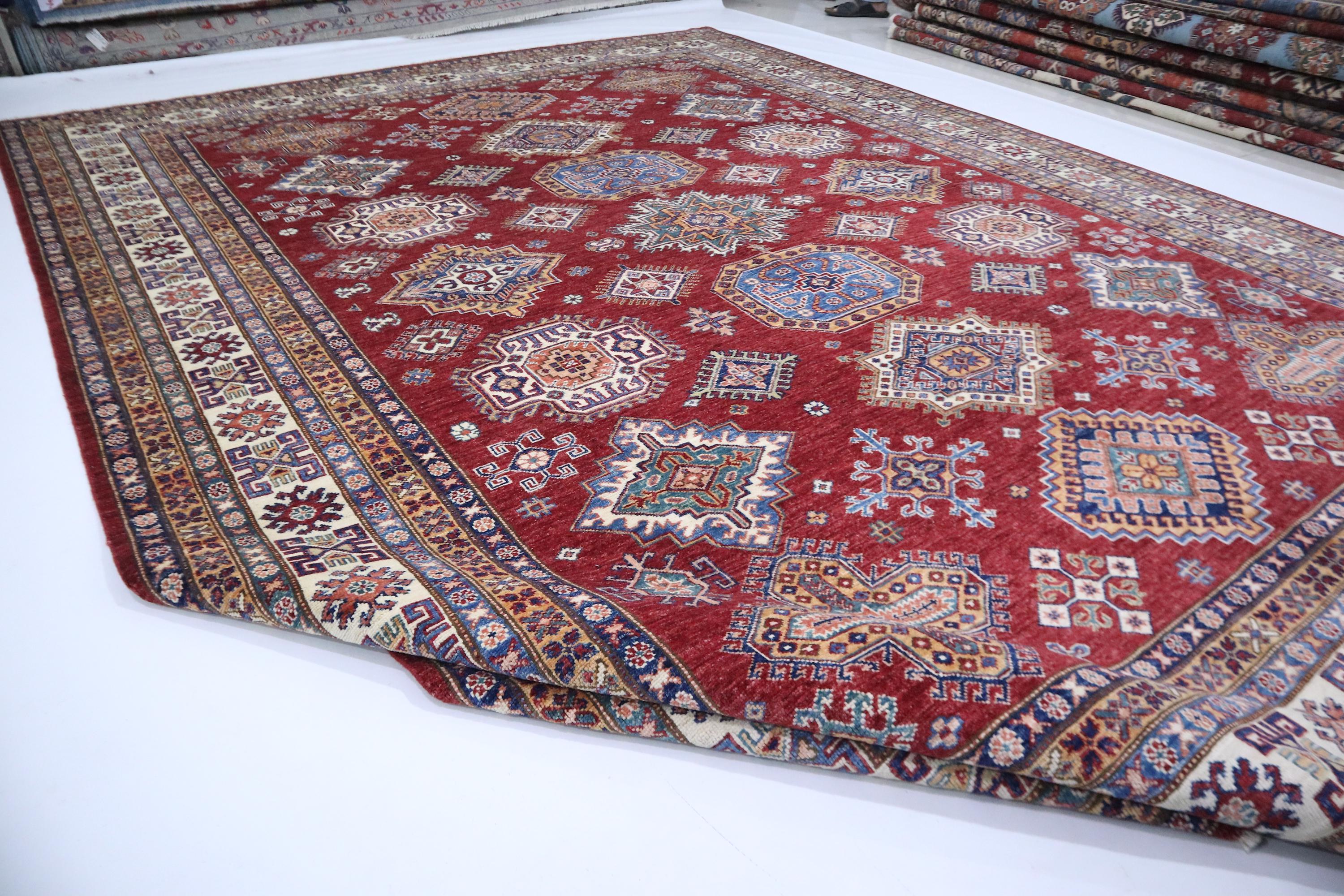 8x11 Kazak Area Rug - Red Afghan Handmade Caucasian Veg Dye Wool Rug - Geometric Design Rug - Traditional Design Rug - Living Room Rug