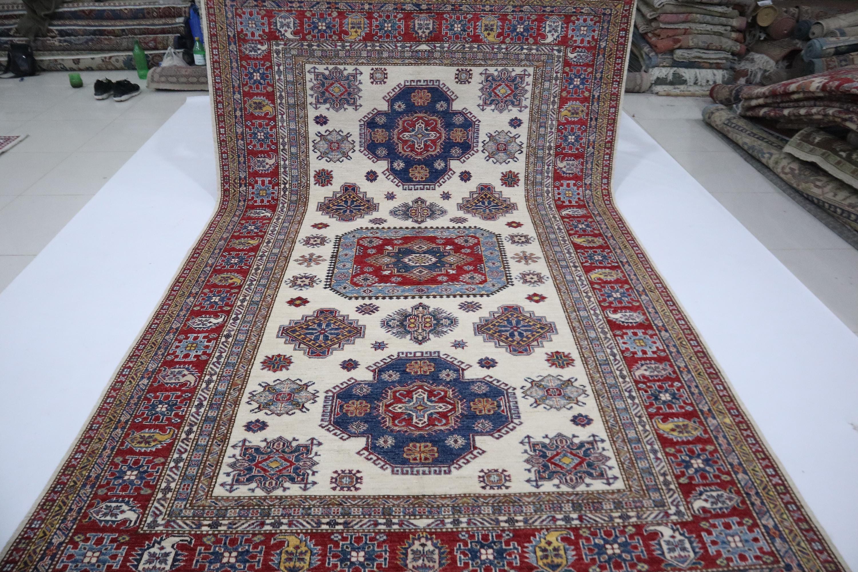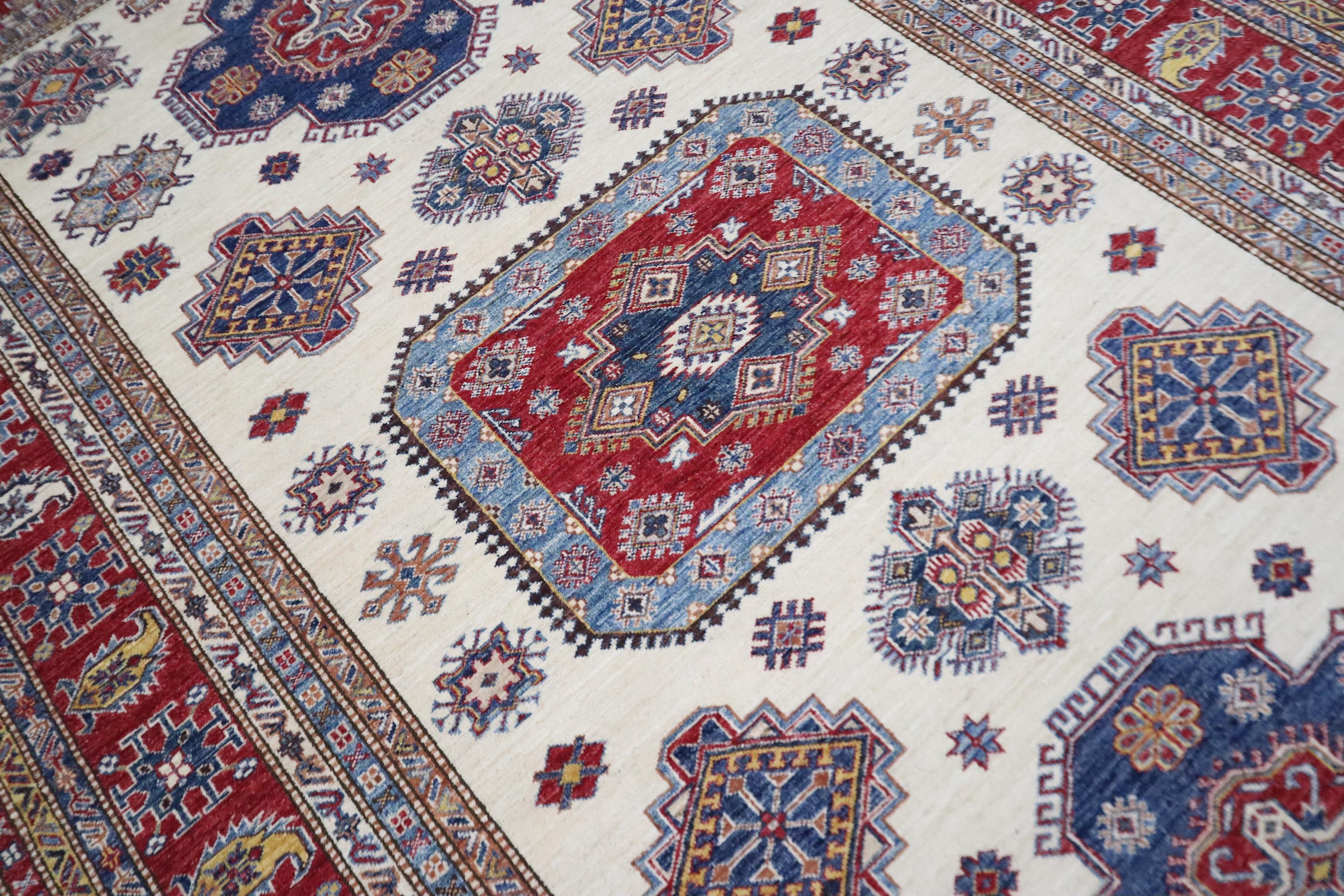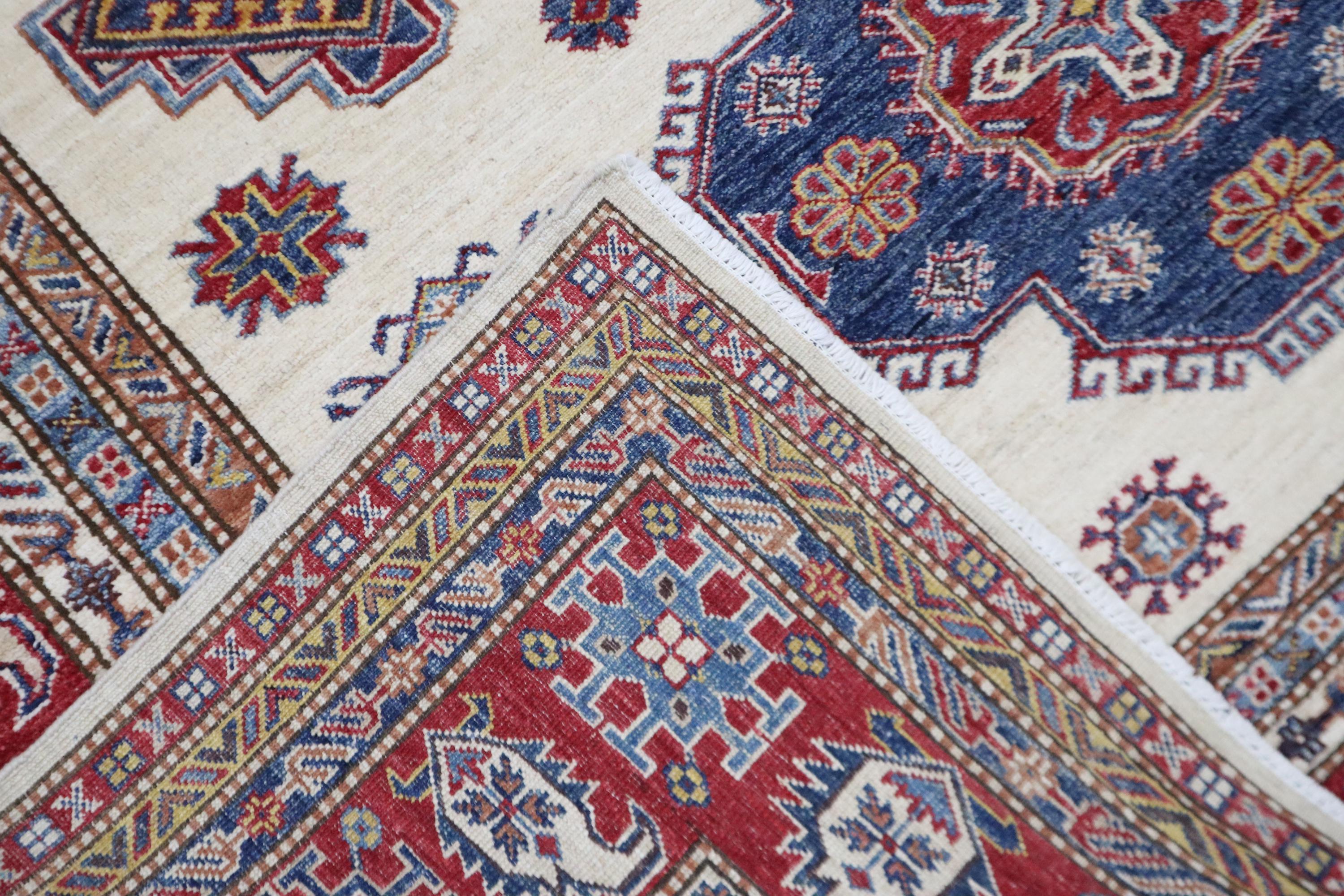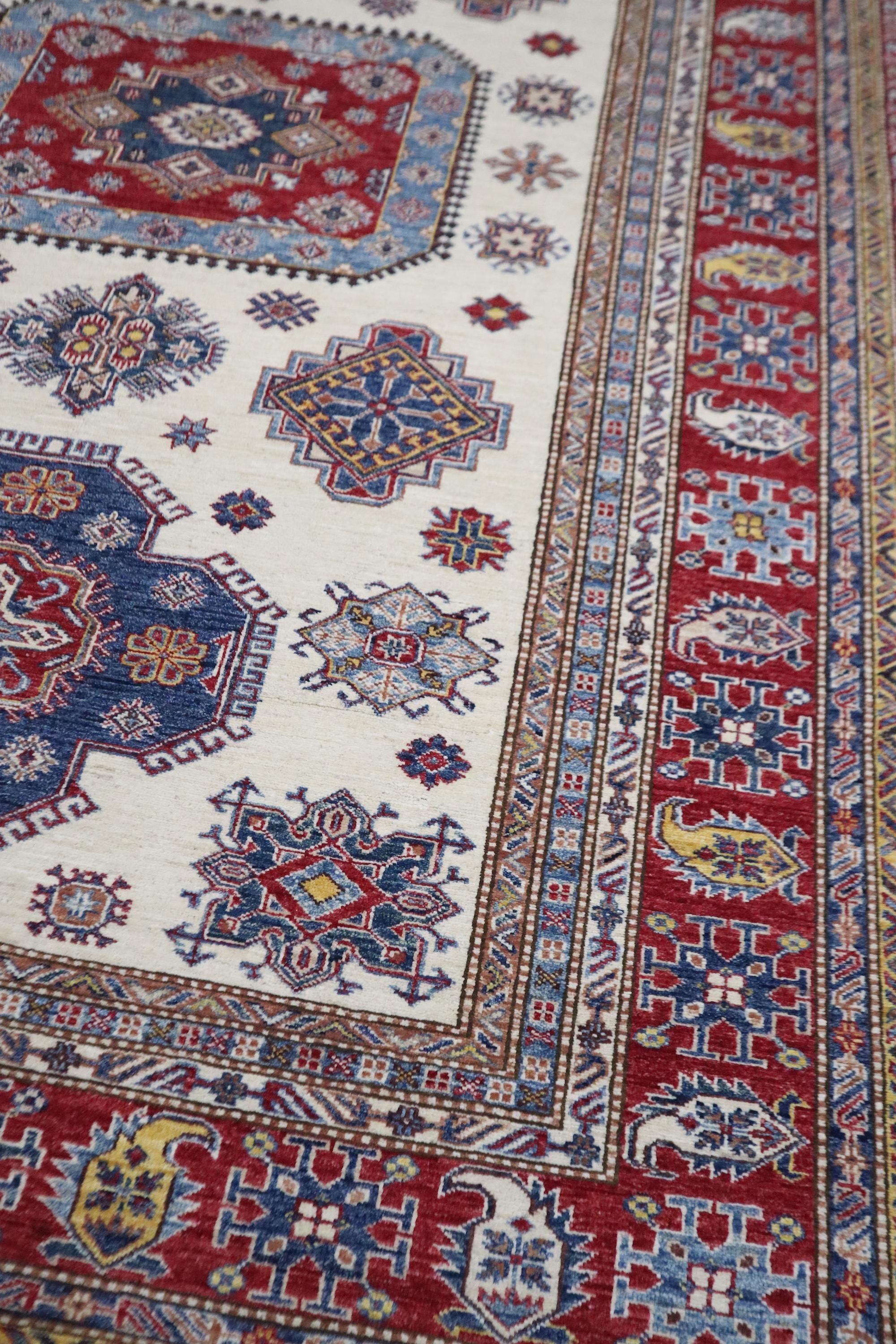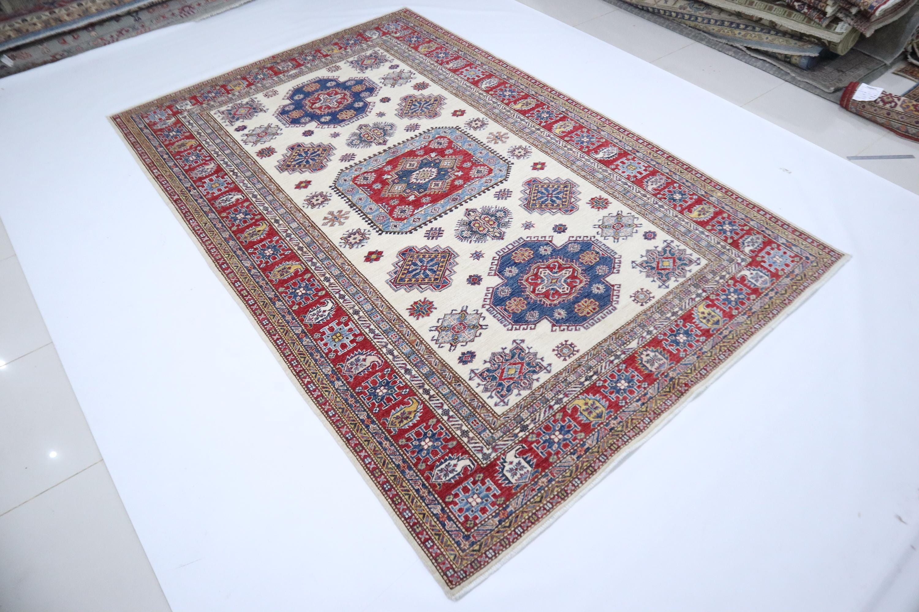 Hand Knotted 7x10 Kazak Area Rug - Beige Red Rug - Afghan Geometric Wool Rug - Traditional Rug - Bedroom Rug - Living Room Rug - Office Rug