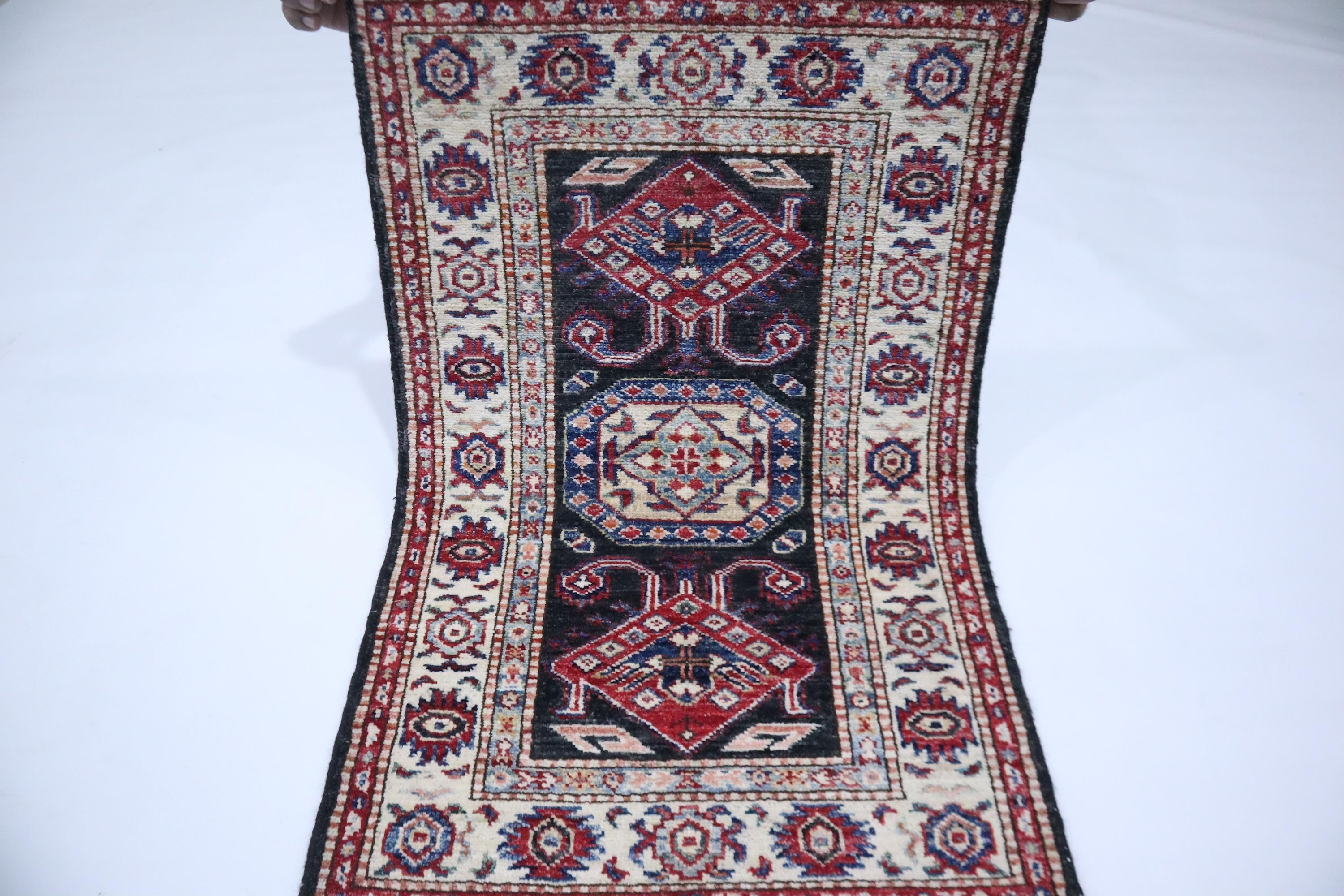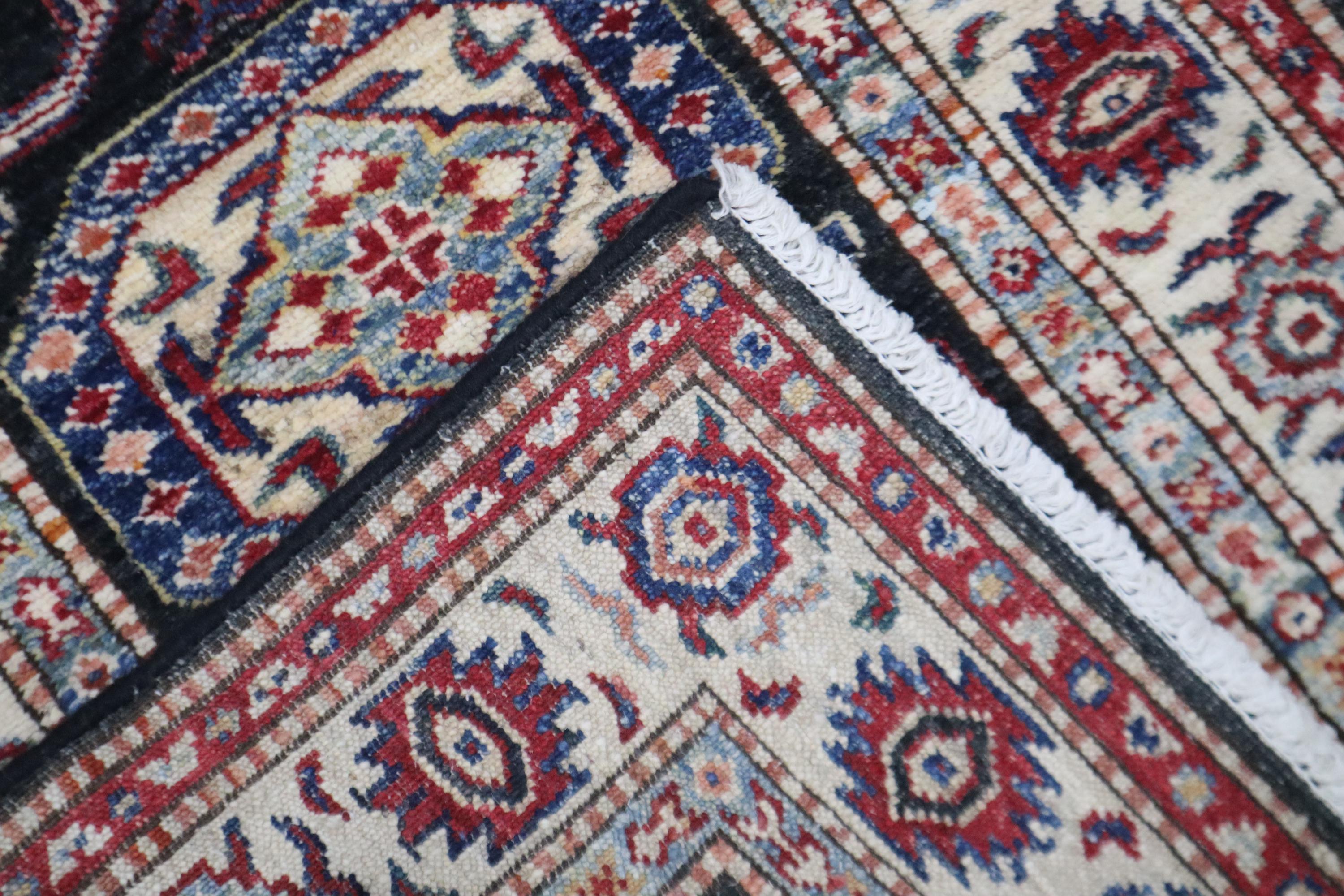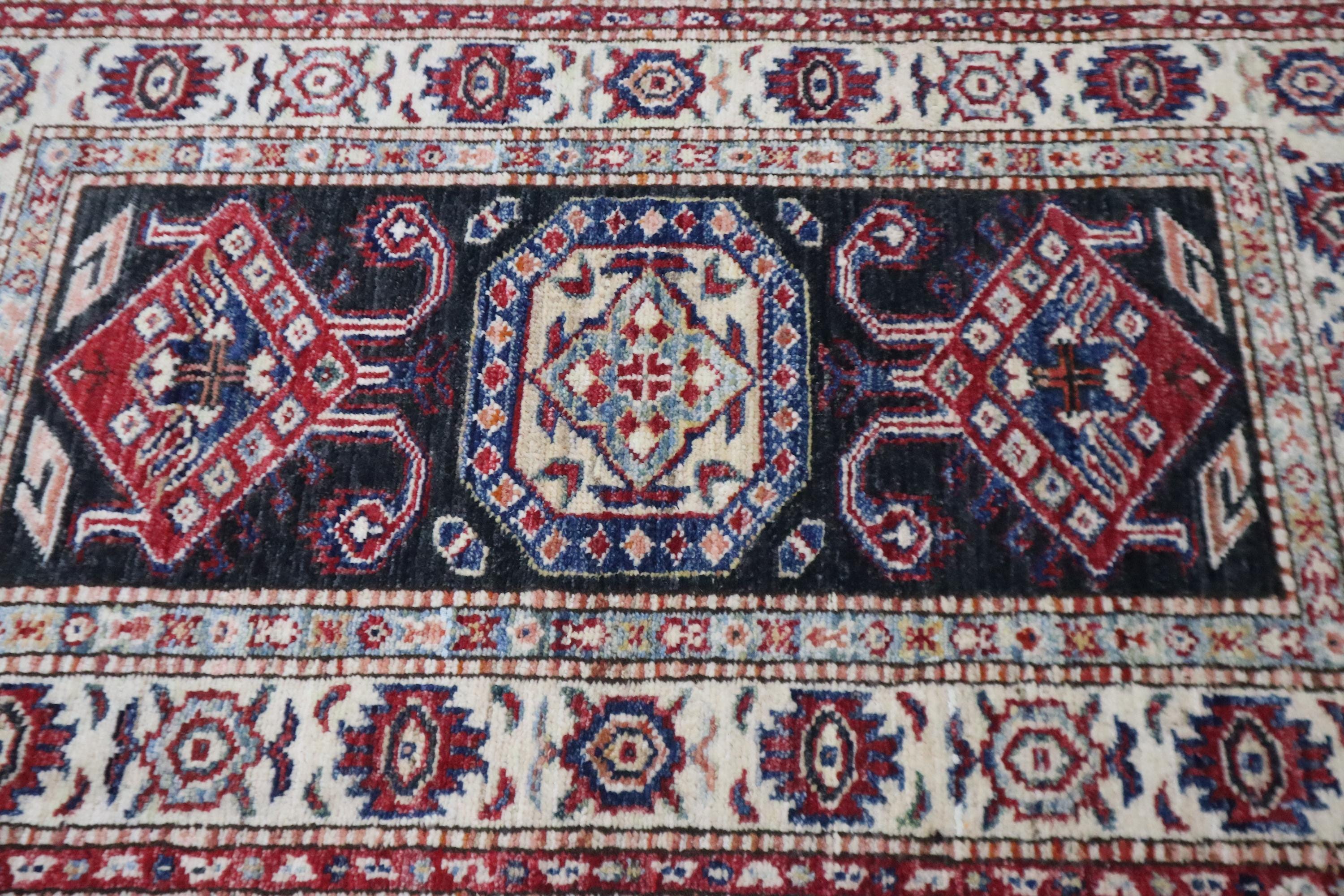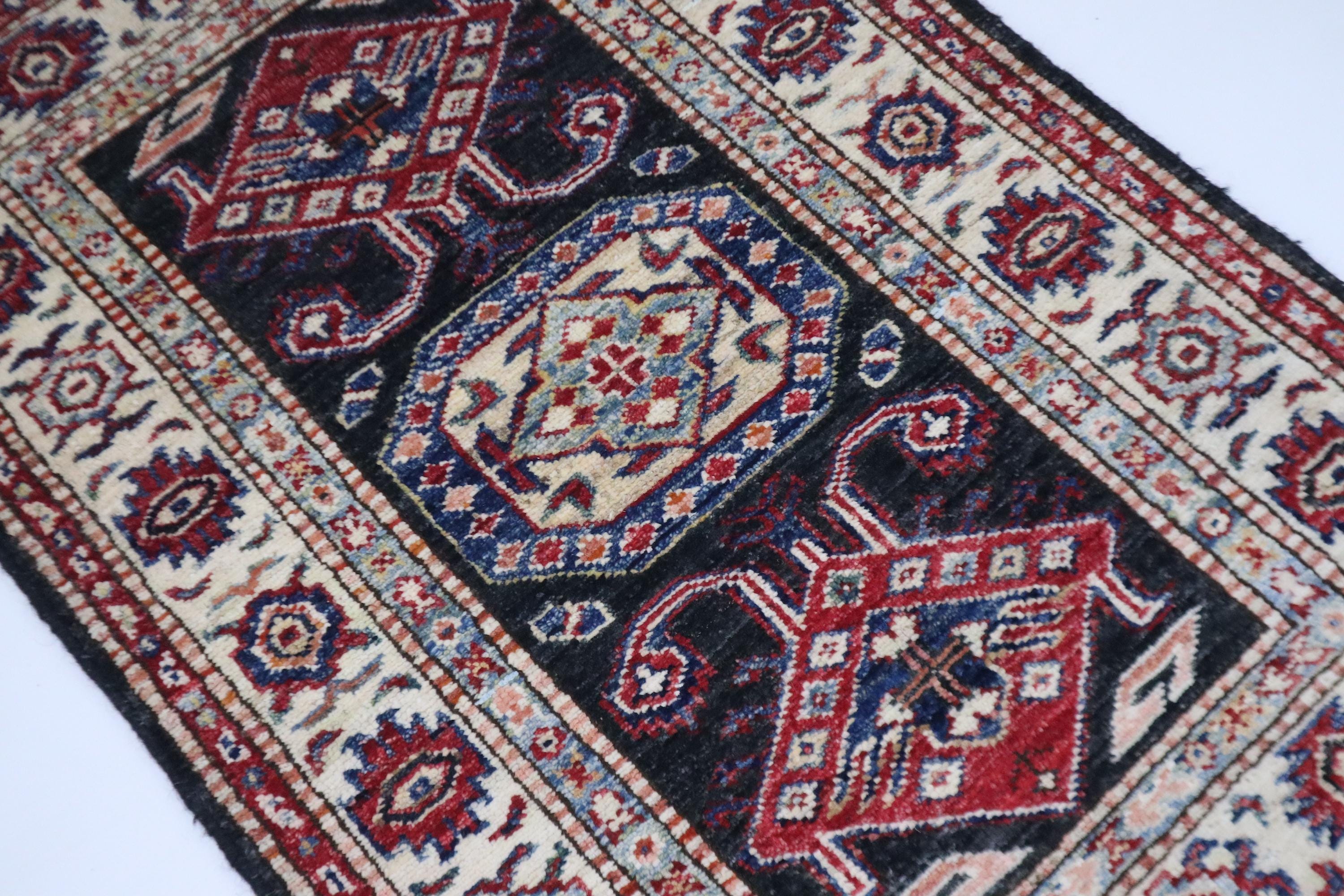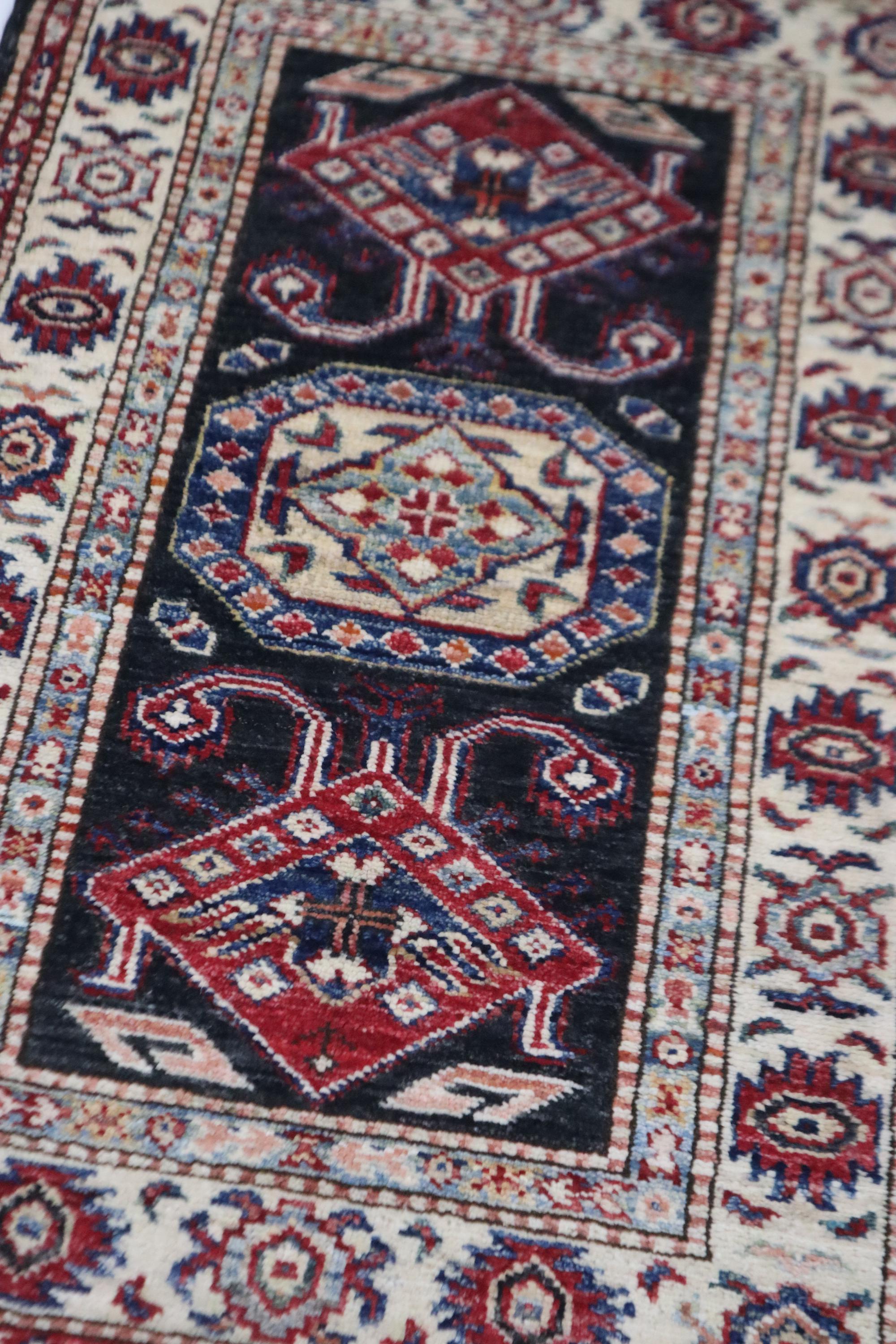 2x3 Black Kazak Area Rug - Afghan Hand Knotted Geometric Veg Dye Wool Rug - Caucasian Rug - Traditional Rug - Accent Rug - Dorm Rug - Rug