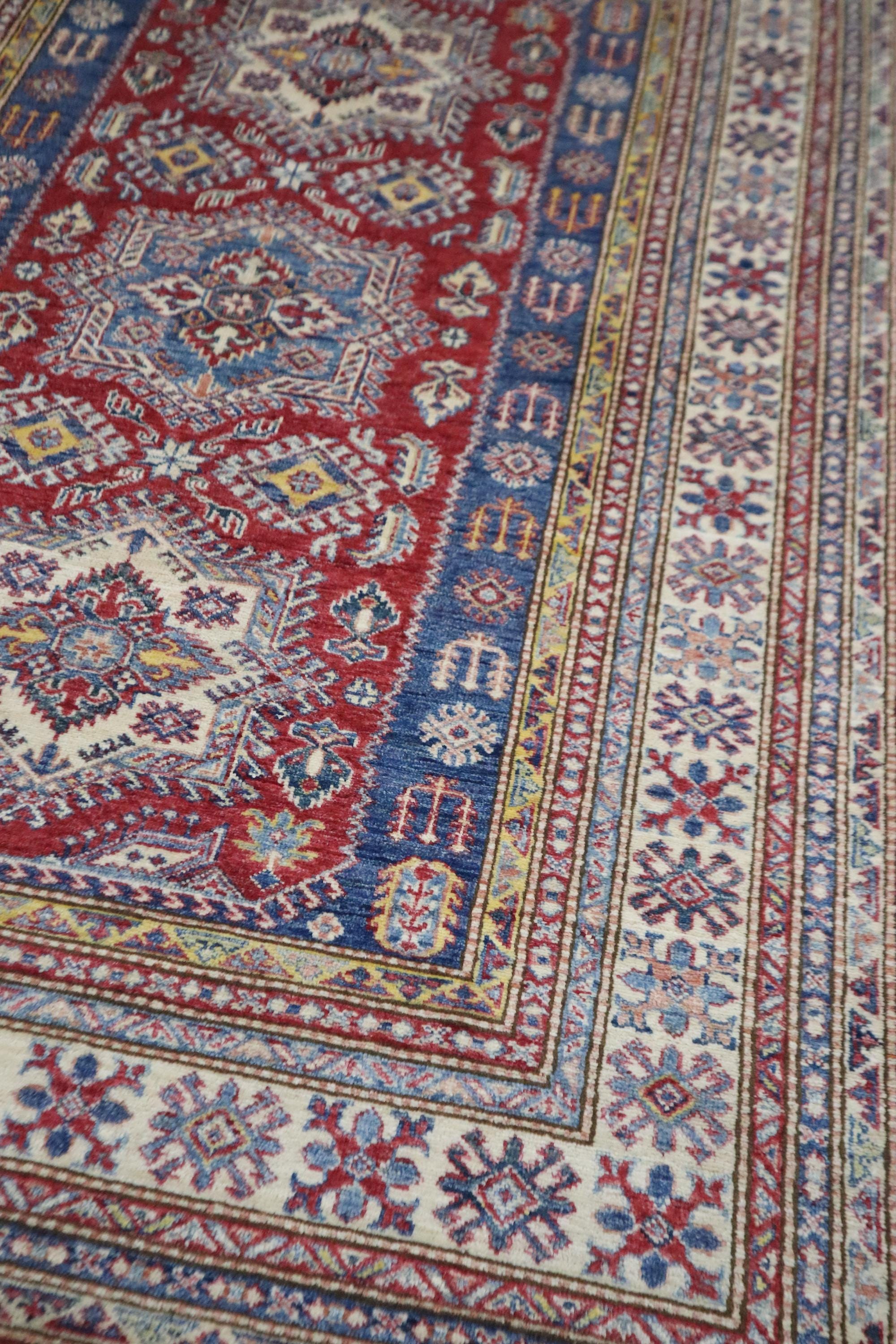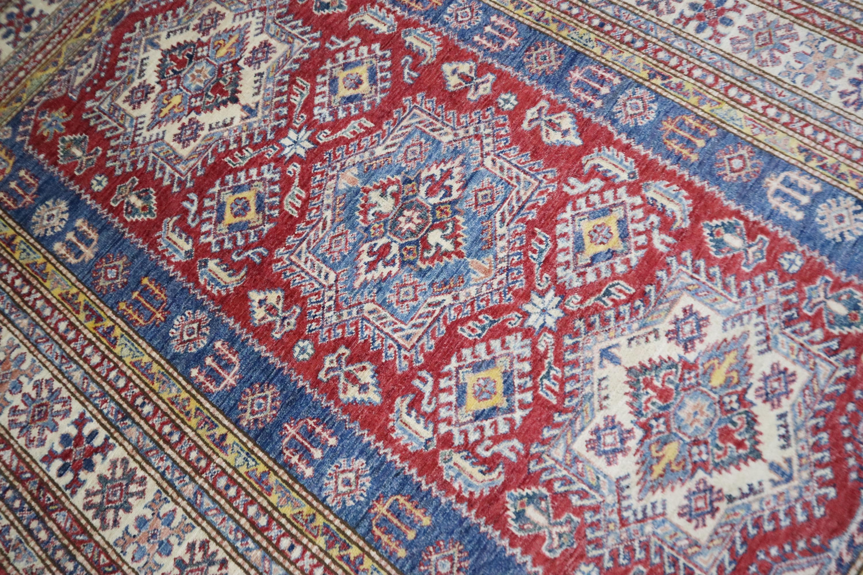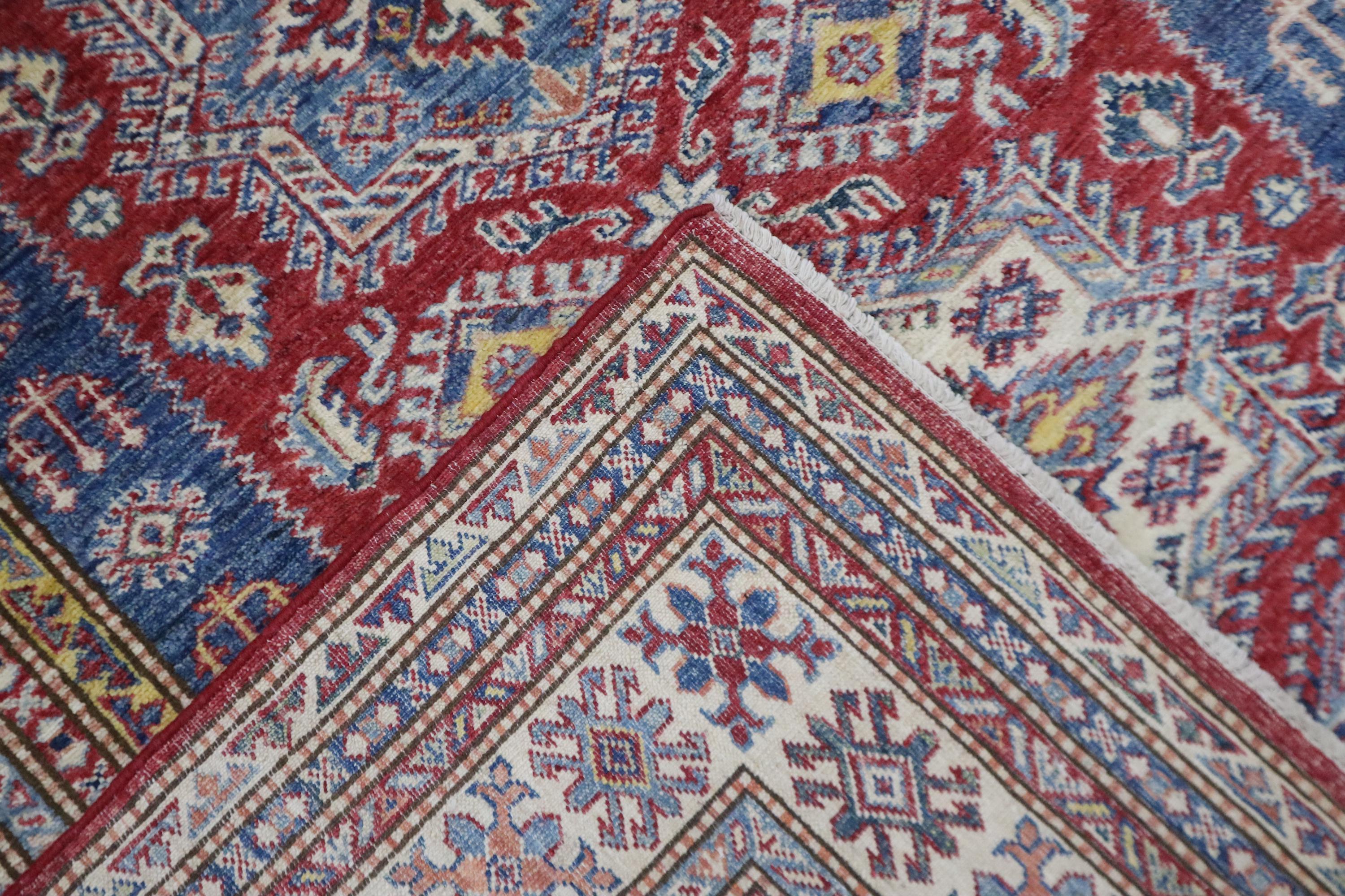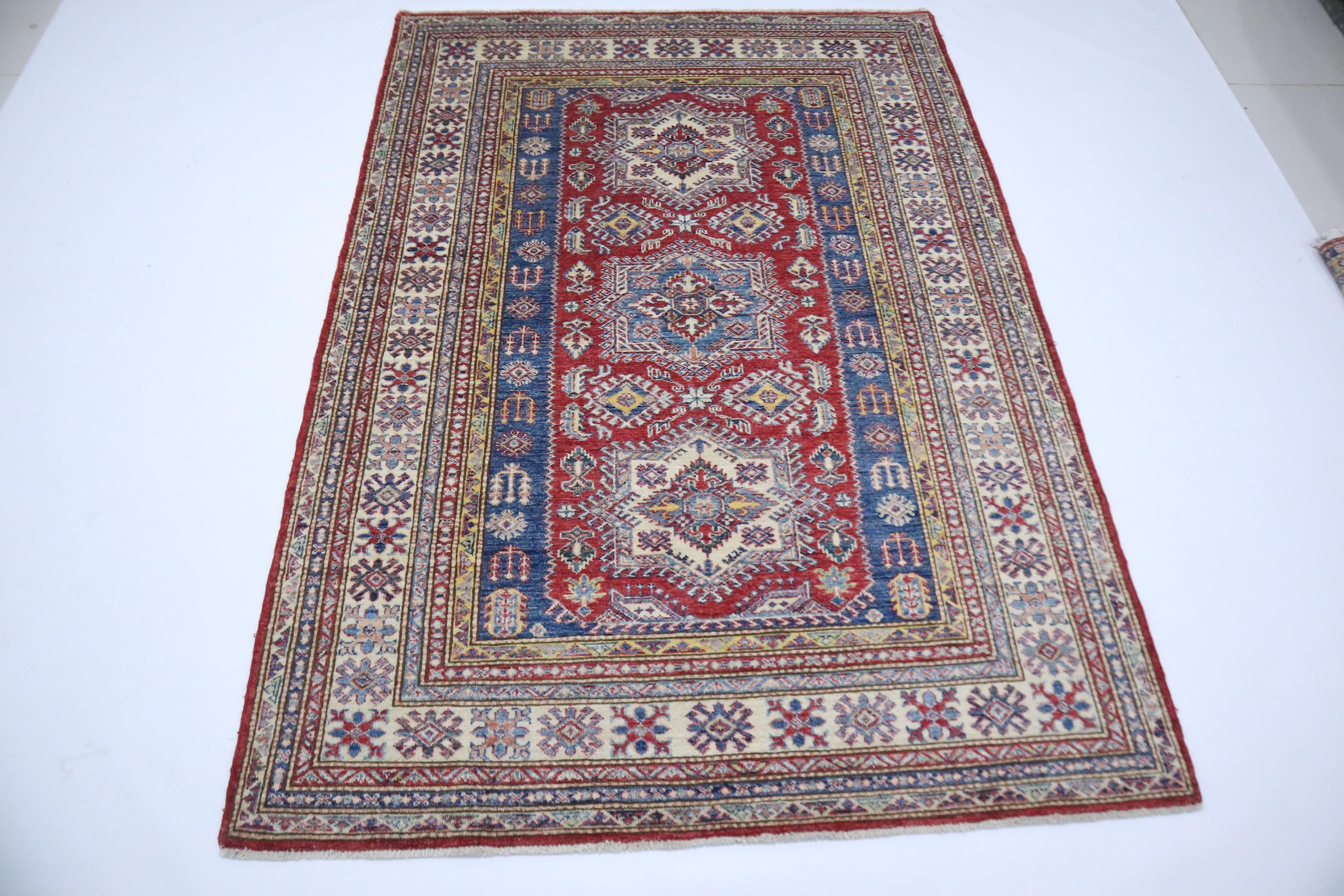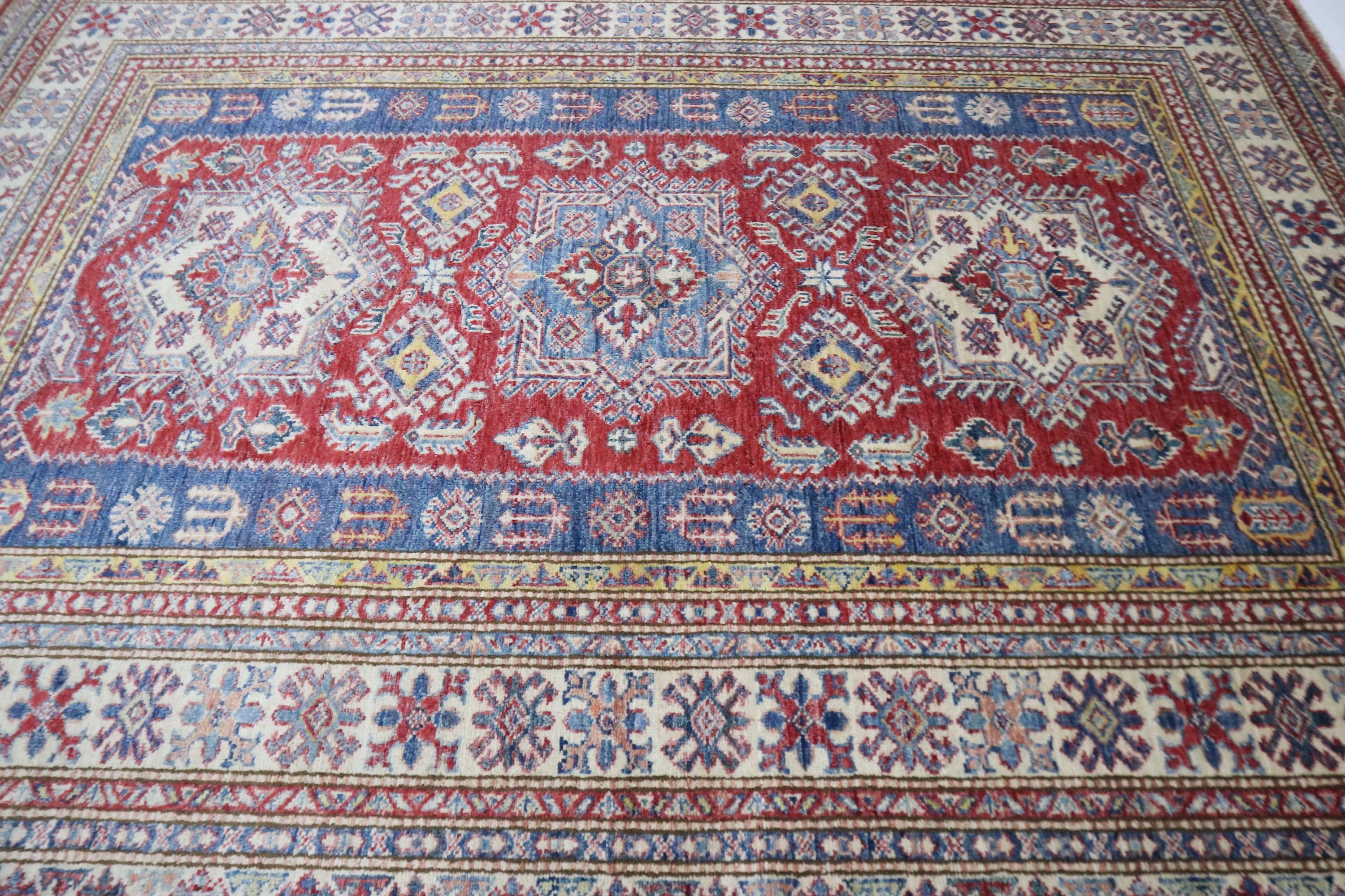 5x7 Ft Kazak Area Rug - Red Blue Afghan Handmade Traditional Organic Dye Wool Rug - Caucasian Rug - Oriental Rug - Bedroom Rug - Office Rug